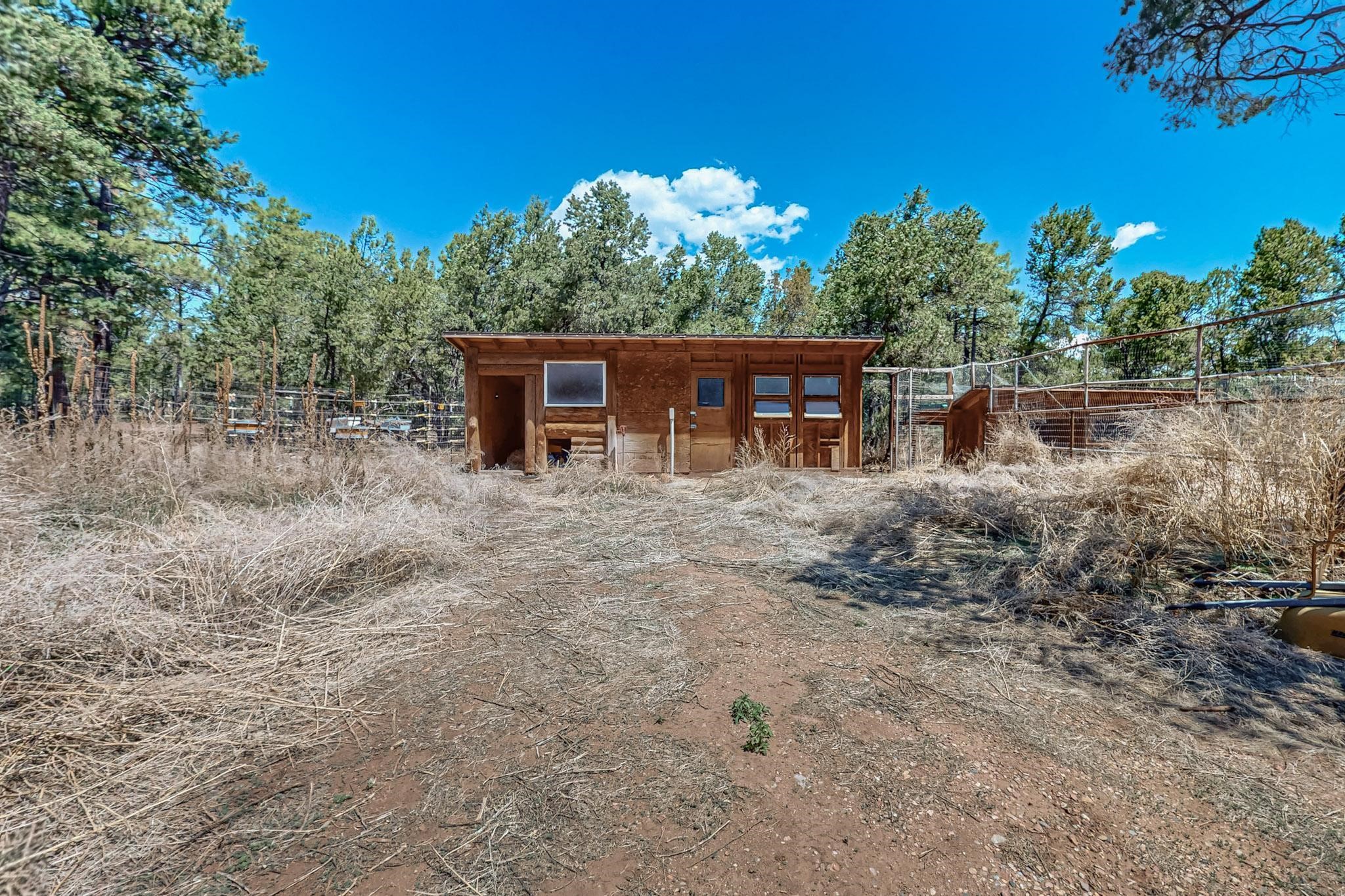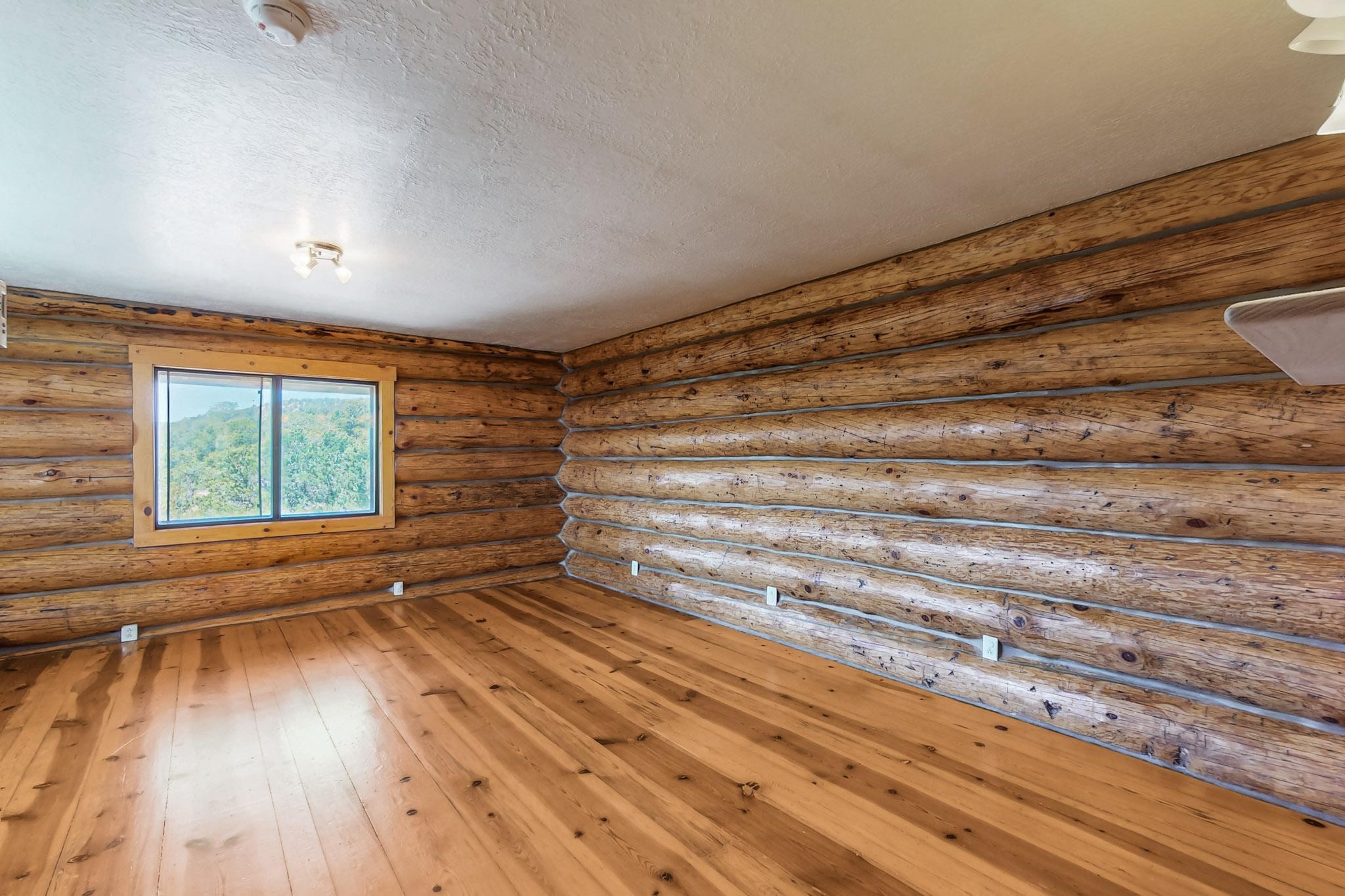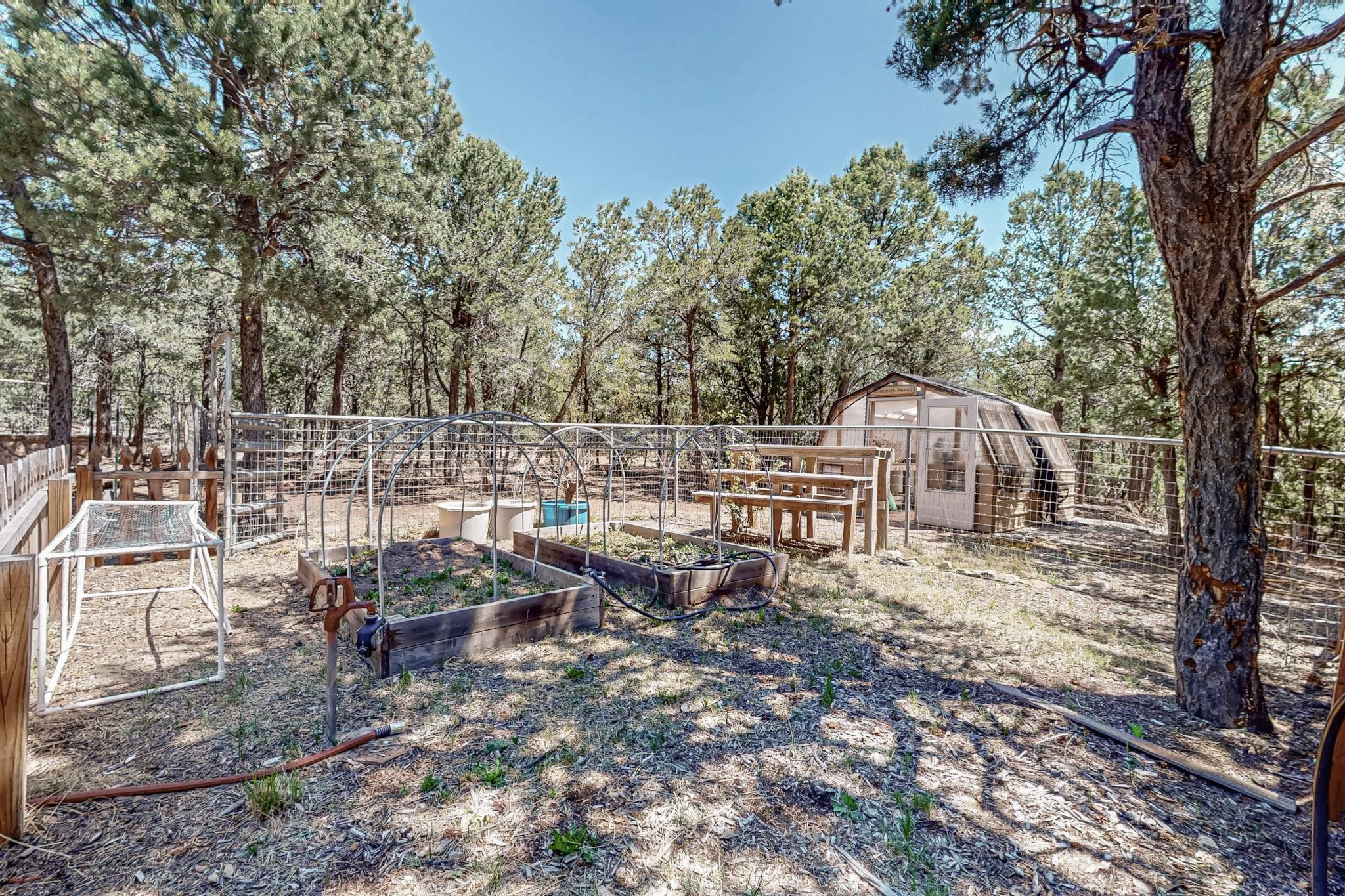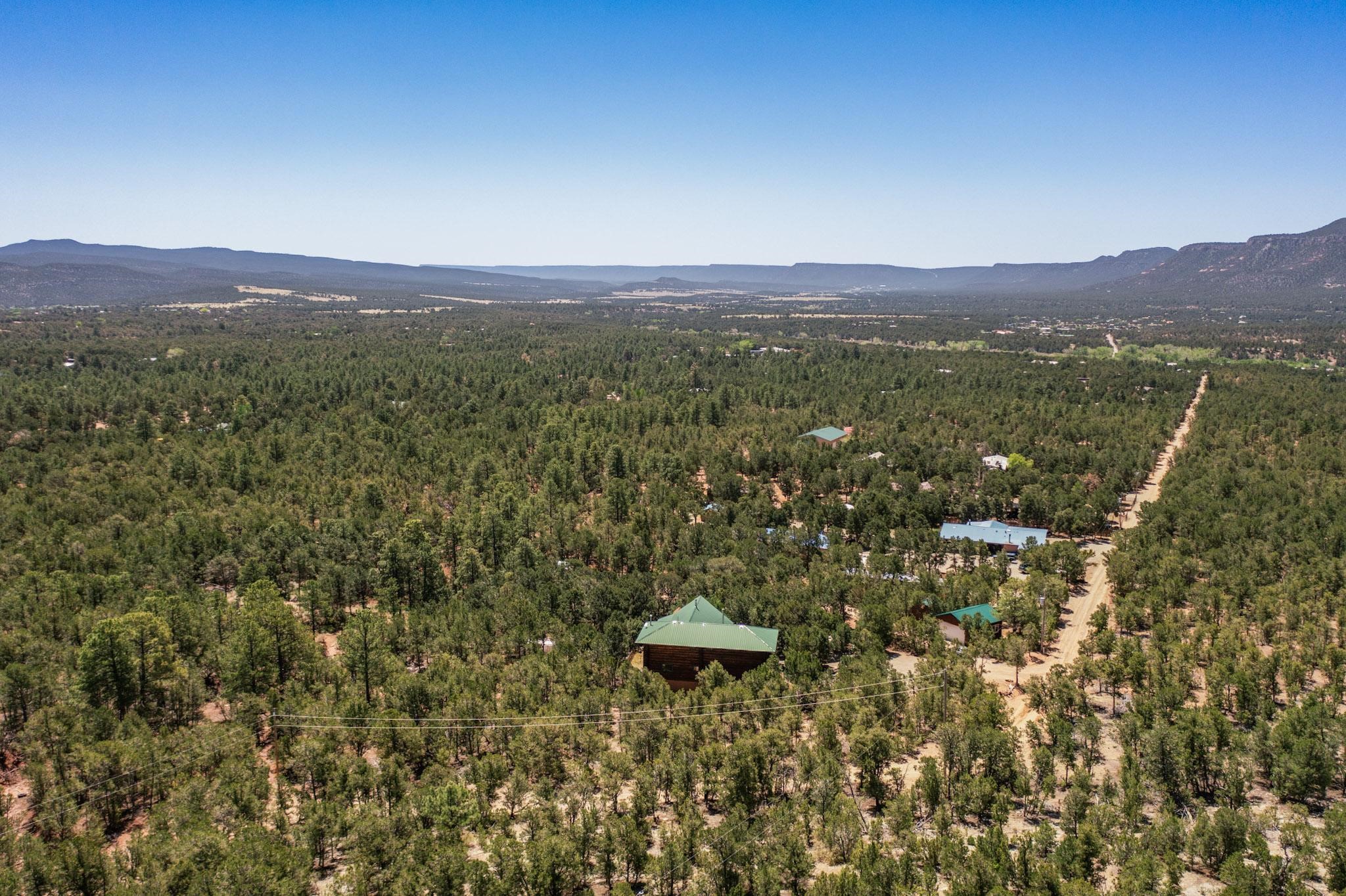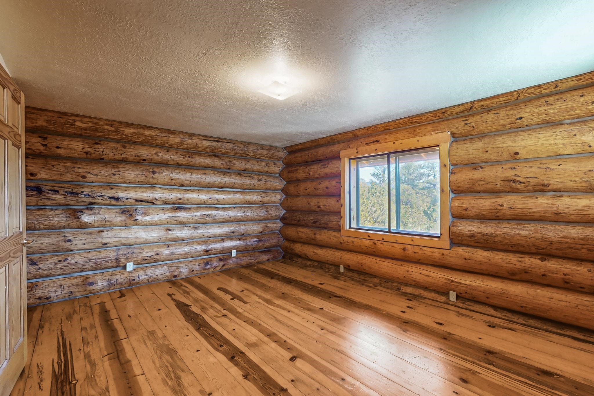 Beautiful custom built log cabin for sale on 5 gorgeous tree covered acres. The home features 5 bedrooms, 4 1/2 baths, chef's kitchen, expansive floor plan, a recently built workshop/studio, and expansive deck great for entertaining. The home is constructed using builder chosen 6-18 inch logs and features two in-home sprinkler systems. The property contains incredible landscaping and has potential for horses with ample storage and barns. There are two legal lots of record, a private well with water rights, chicken coop, greenhouse, fruit trees, sophisticated playground equipment, healthy Pion, Juniper trees, custom rock retaining walls, and graveled driveway. Conveniently located 30 minutes from downtown Santa Fe, this incredible property combines the best of rural living with easy access to amenities. Set up a showing today!