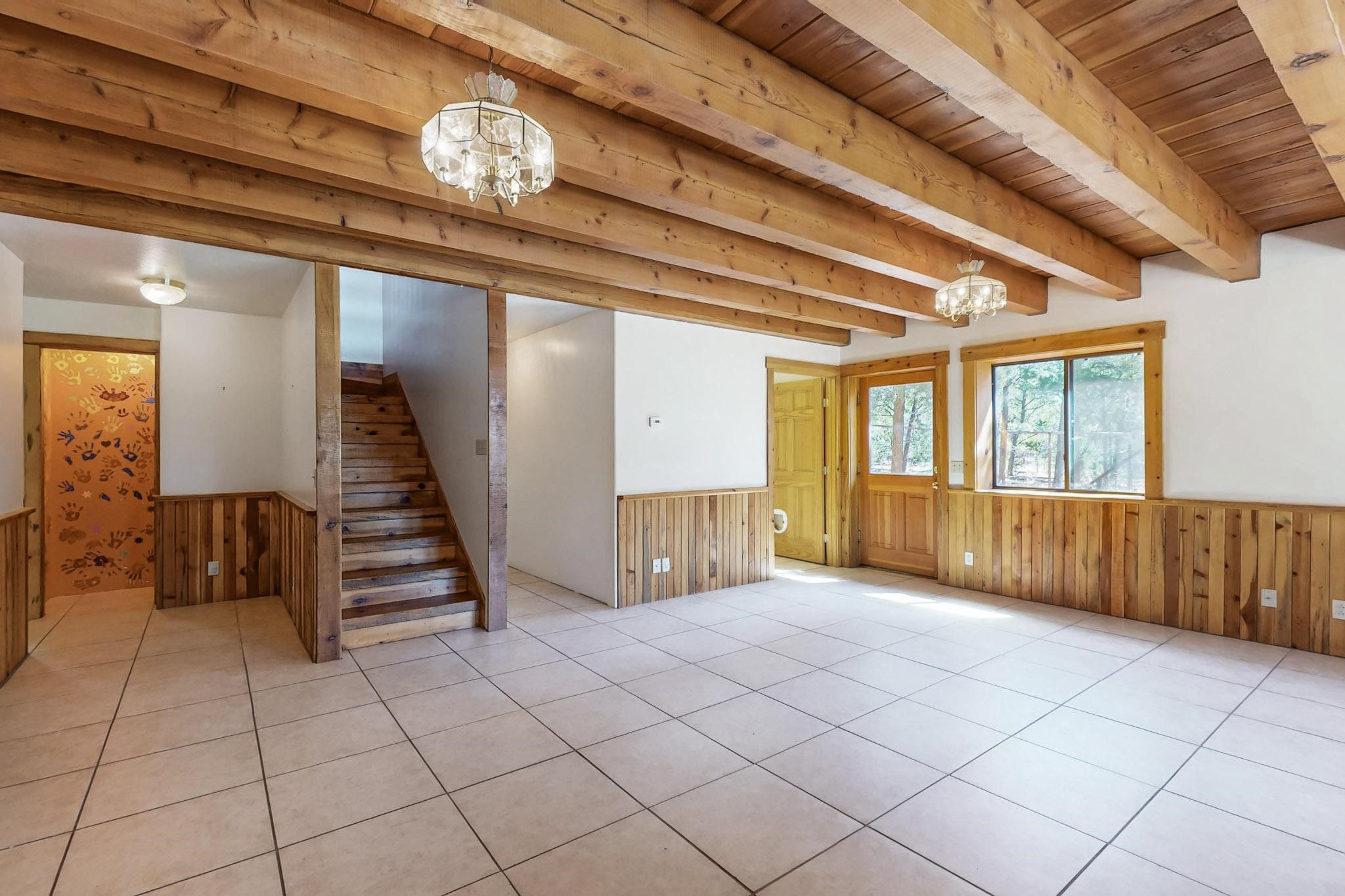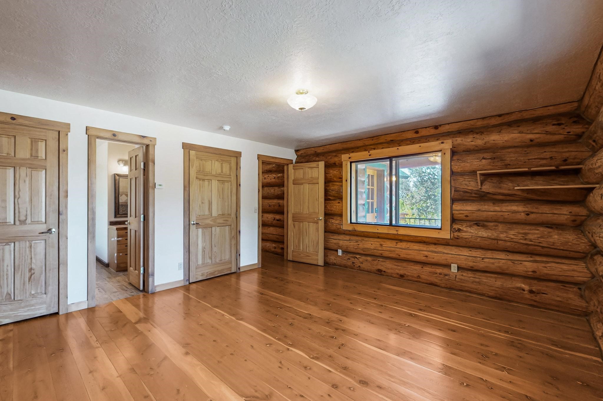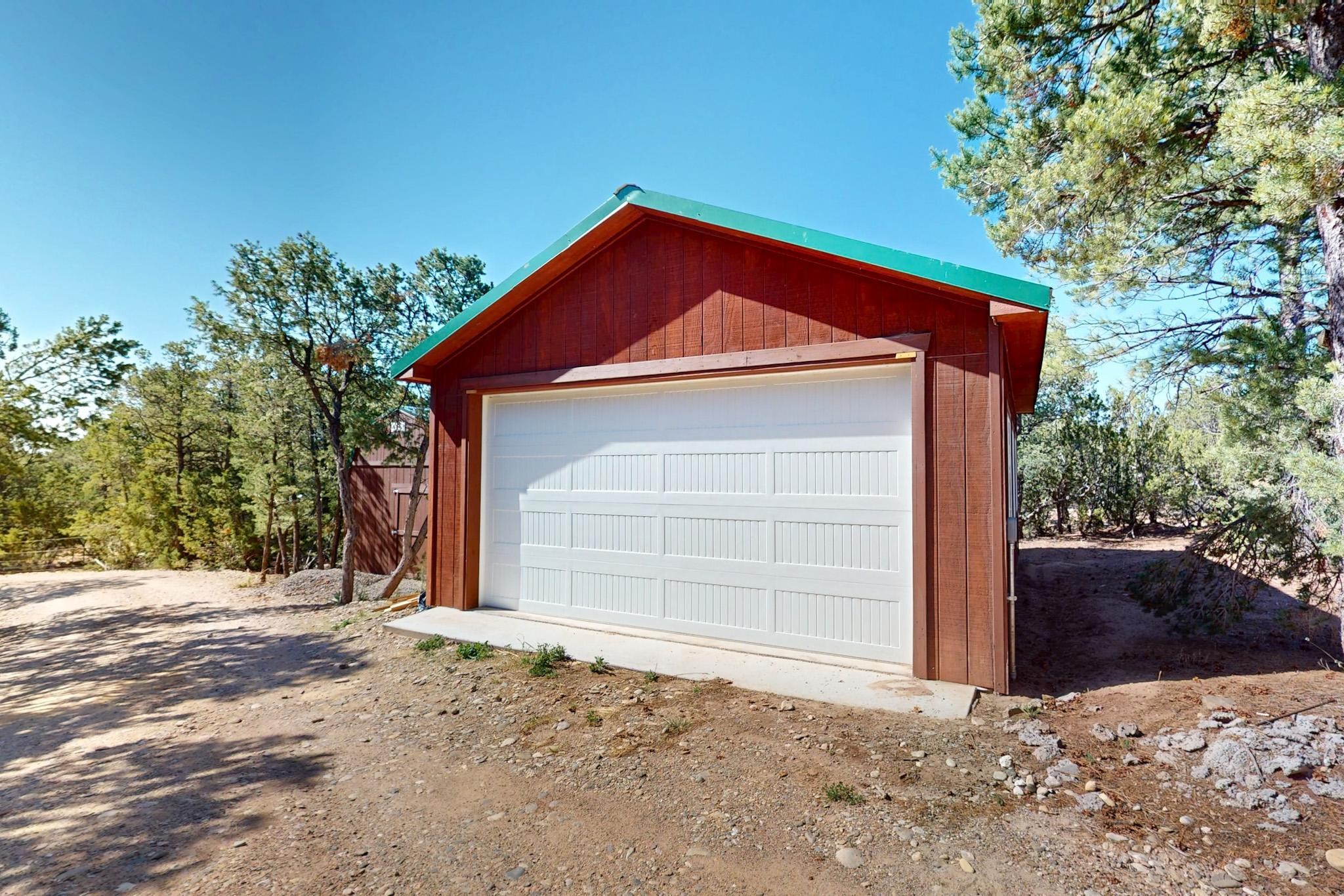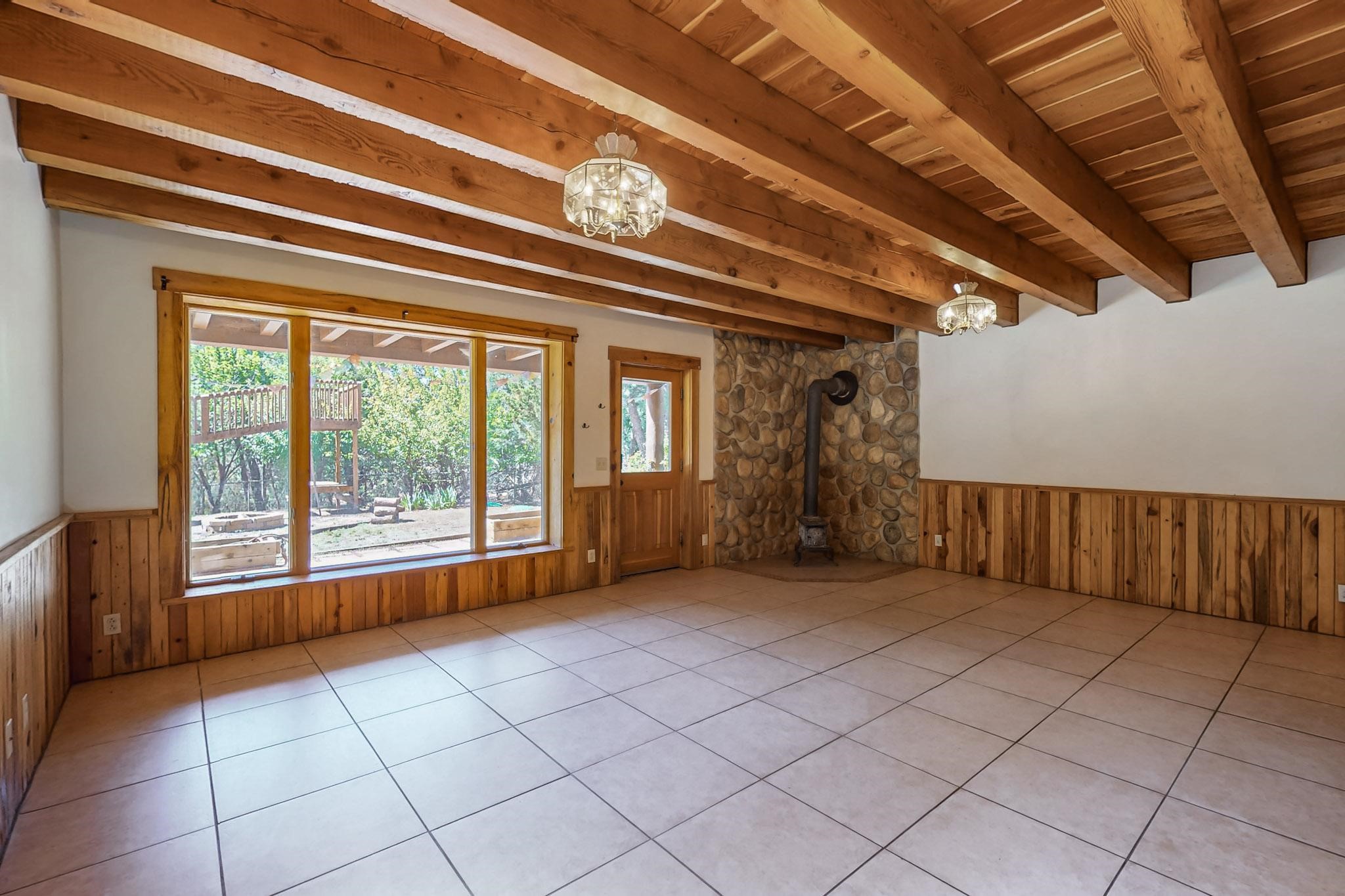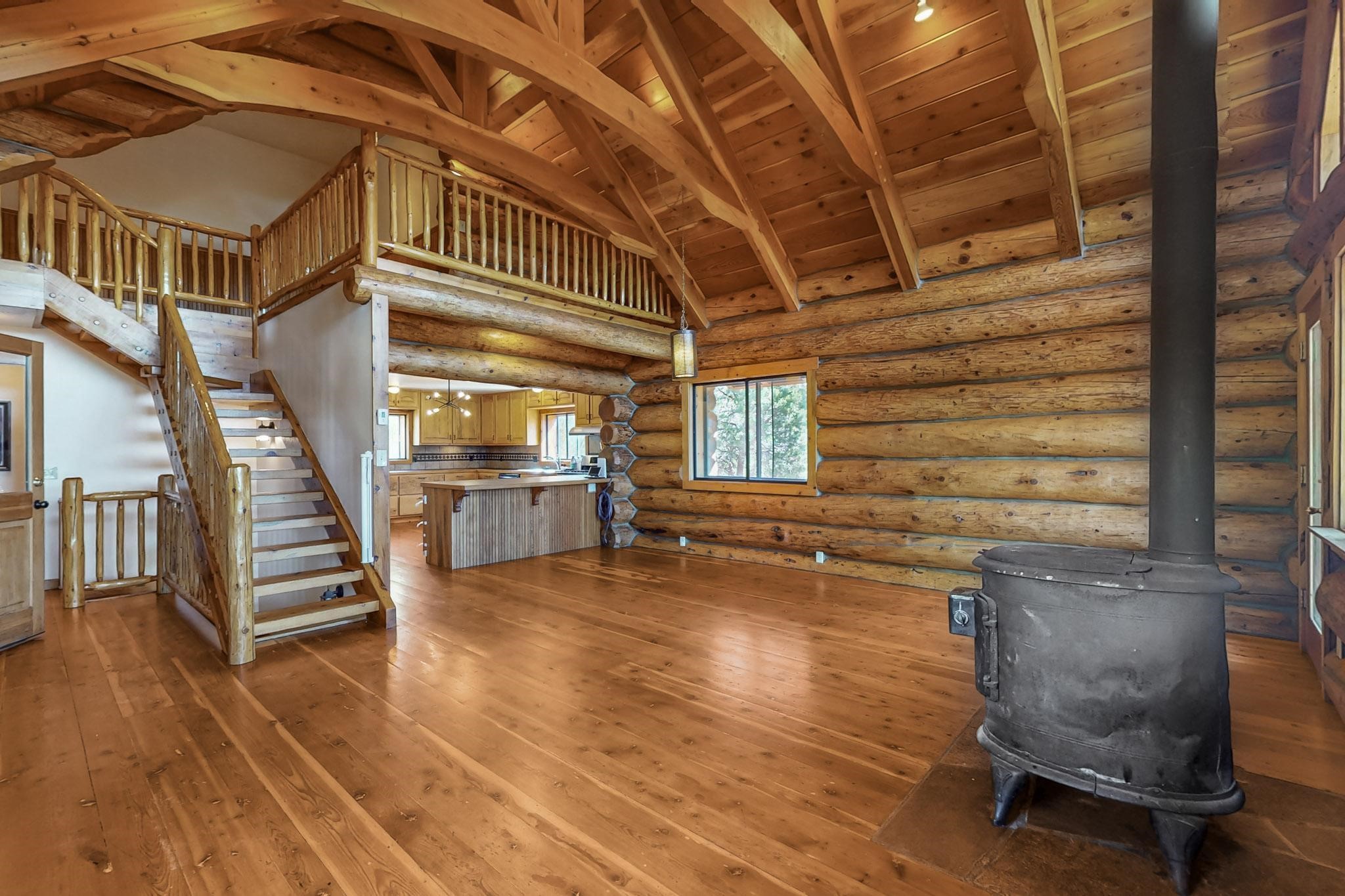 Beautiful custom built log cabin for sale on 5 gorgeous tree covered acres. The home features 5 bedrooms, 4 1/2 baths, chef's kitchen, expansive floor plan, a recently built workshop/studio, and expansive deck great for entertaining. The home is constructed using builder chosen 6-18 inch logs and features two in-home sprinkler systems. The property contains incredible landscaping and has potential for horses with ample storage and barns. There are two legal lots of record, a private well with water rights, chicken coop, greenhouse, fruit trees, sophisticated playground equipment, healthy Pion, Juniper trees, custom rock retaining walls, and graveled driveway. Conveniently located 30 minutes from downtown Santa Fe, this incredible property combines the best of rural living with easy access to amenities. Set up a showing today!