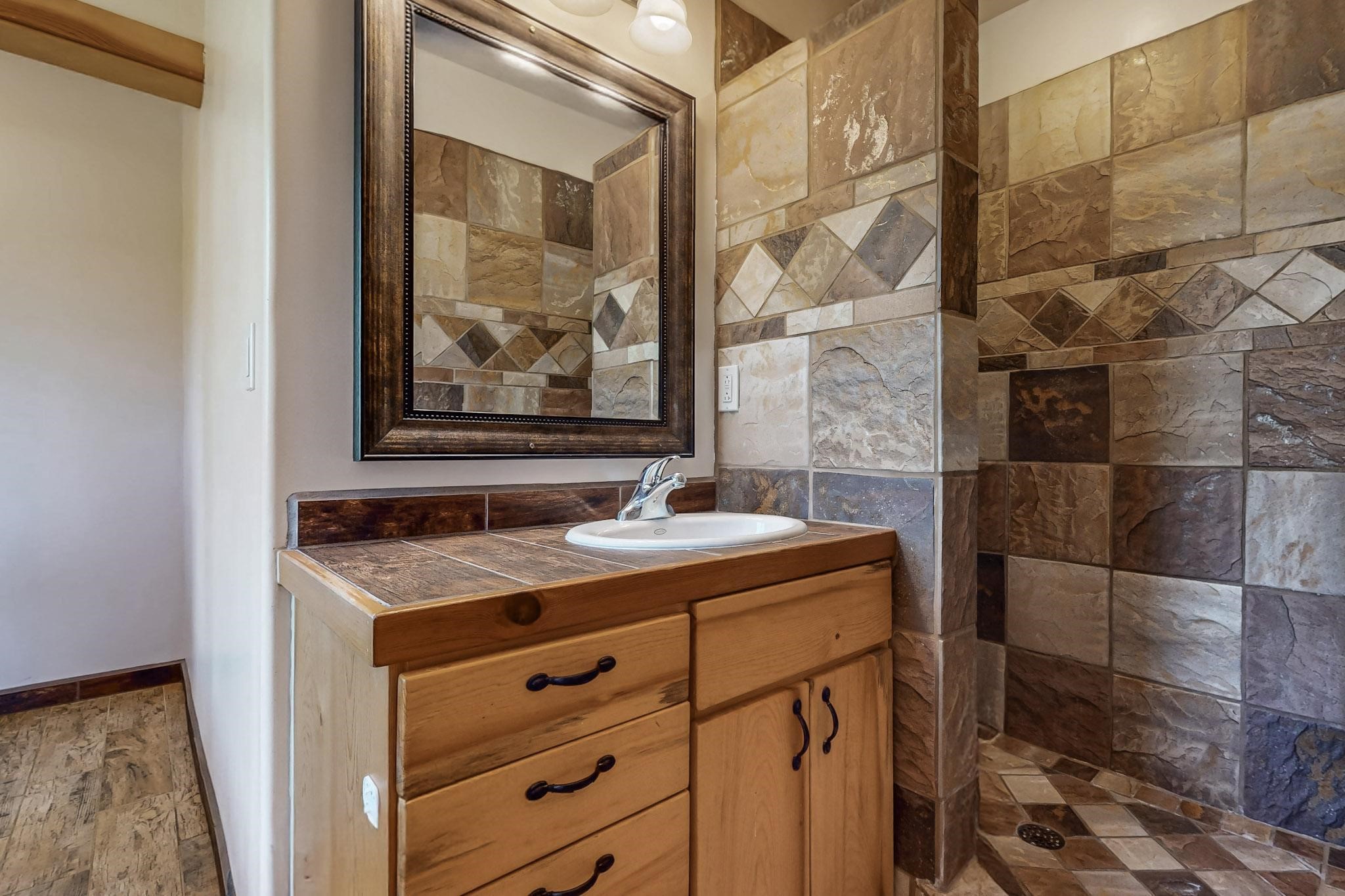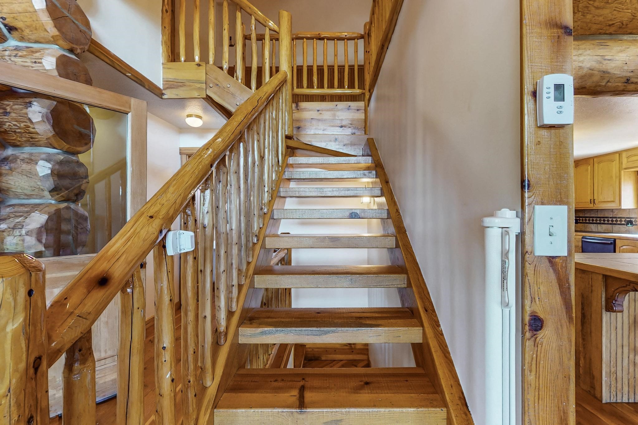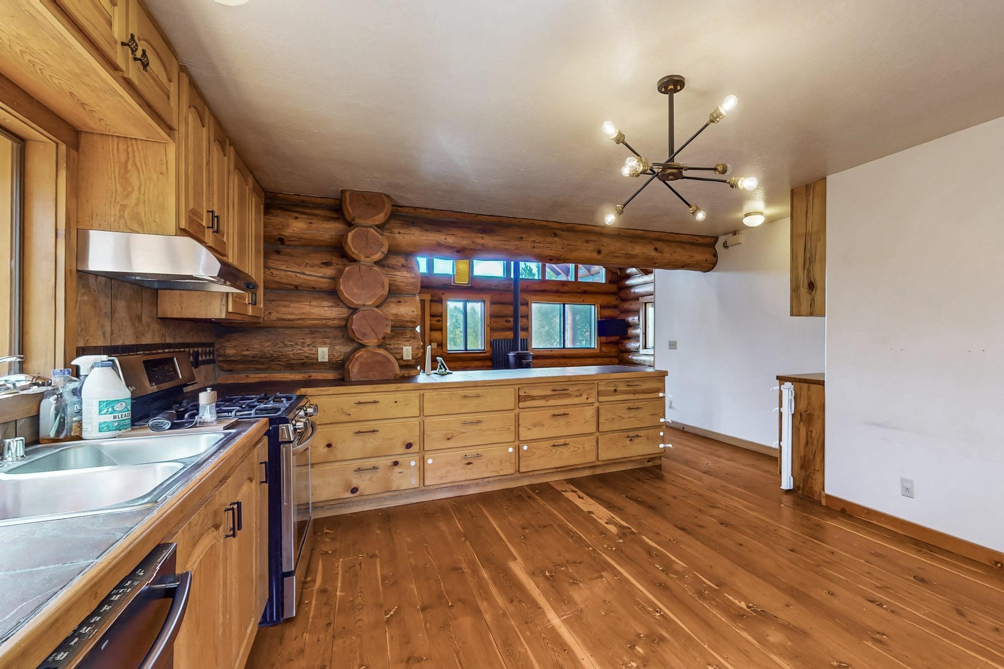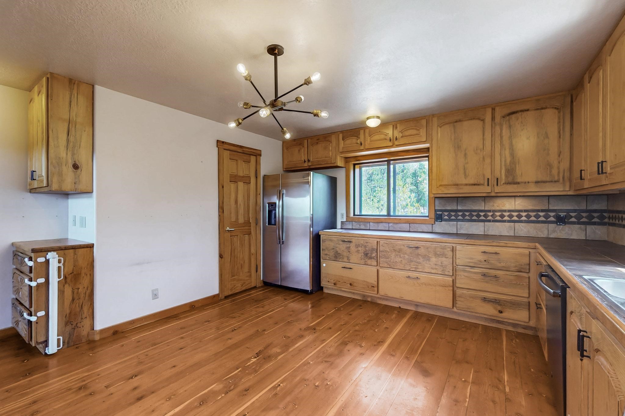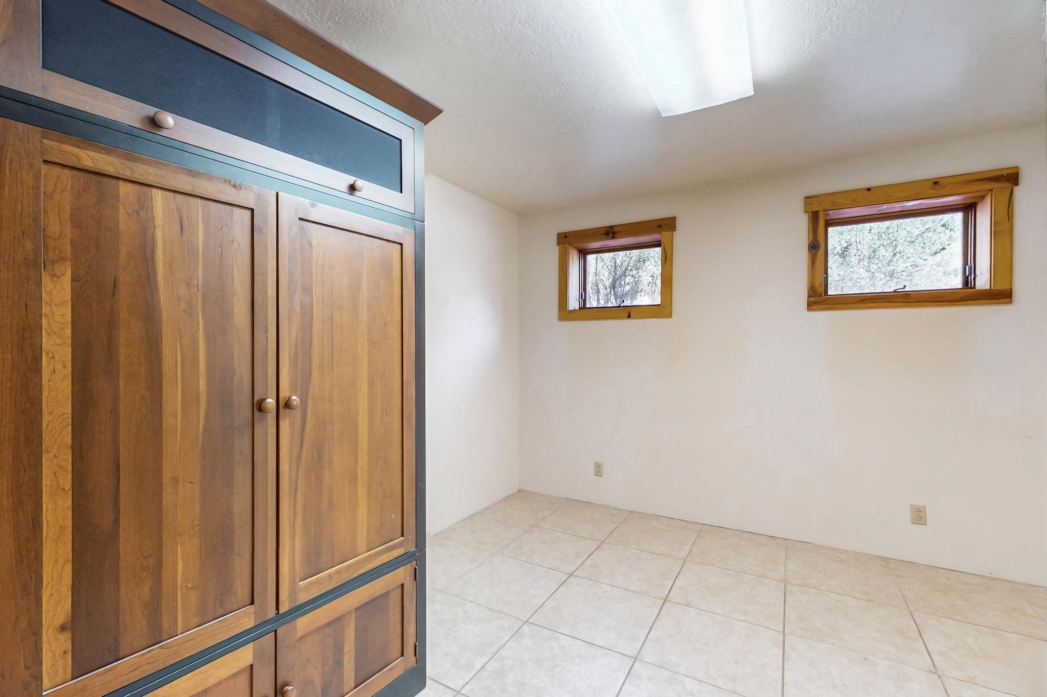 Beautiful custom built log cabin for sale on 5 gorgeous tree covered acres. The home features 5 bedrooms, 4 1/2 baths, chef's kitchen, expansive floor plan, a recently built workshop/studio, and expansive deck great for entertaining. The home is constructed using builder chosen 6-18 inch logs and features two in-home sprinkler systems. The property contains incredible landscaping and has potential for horses with ample storage and barns. There are two legal lots of record, a private well with water rights, chicken coop, greenhouse, fruit trees, sophisticated playground equipment, healthy Pion, Juniper trees, custom rock retaining walls, and graveled driveway. Conveniently located 30 minutes from downtown Santa Fe, this incredible property combines the best of rural living with easy access to amenities. Set up a showing today!