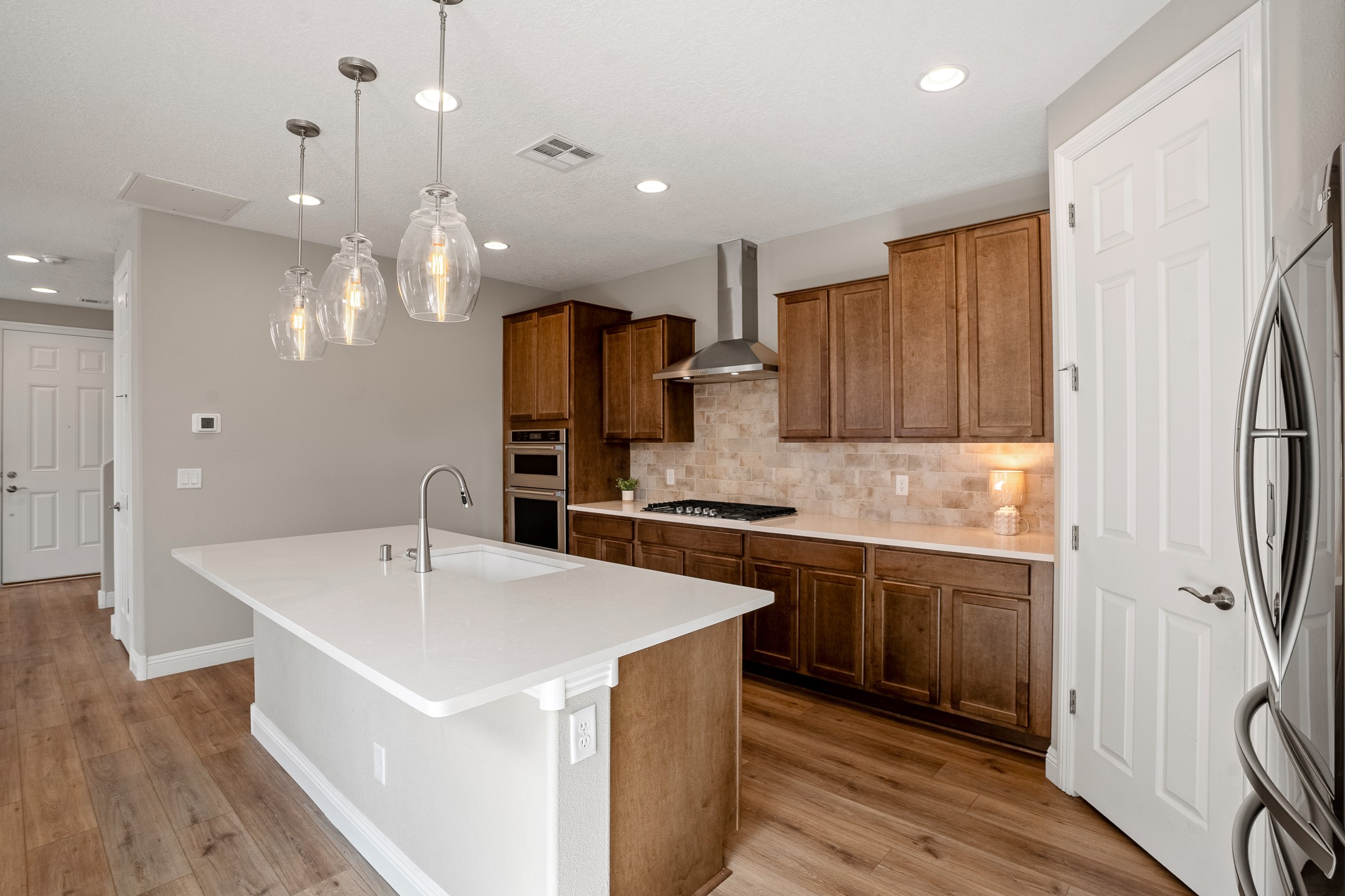 Experience Elevated Living in this Upgraded Pulte Senita Townhome. Step into effortless luxury and everyday convenience in this beautifully upgraded Pulte Senita model townhome. Designed with both comfort and style in mind, this spacious residence offers the perfect blend of modern elegance and functional living across two thoughtfully designed levels. The heart of the home is a chef's dream kitchen--equipped with premium KitchenAid appliances, including a six-burner cooktop, drawer microwave, and sleek quartz countertops. An oversized island and walk-in pantry add to the appeal, making this space perfect for entertaining or daily culinary adventures. A full-sized laundry room features newer LG washer and dryer units for your convenience, and a two-car garage provides ample storage and easy access. Upstairs, three generously sized bedrooms offer privacy and comfort for the whole family. The primary suite is a true retreat, boasting a spacious layout with a private sitting room or office area that opens to a serene balcony with city views. The en-suite bath is a spa-inspired oasis featuring a jetted soaking tub, double vanities, a separate glass-enclosed shower, and a private water closet, all connected to a large walk-in closet. From top to bottom, this townhome is crafted for those who appreciate luxury, space, and smart design--all just minutes from the best of city living: parks, shopping, dining, and even the new Presbyterian hospital.