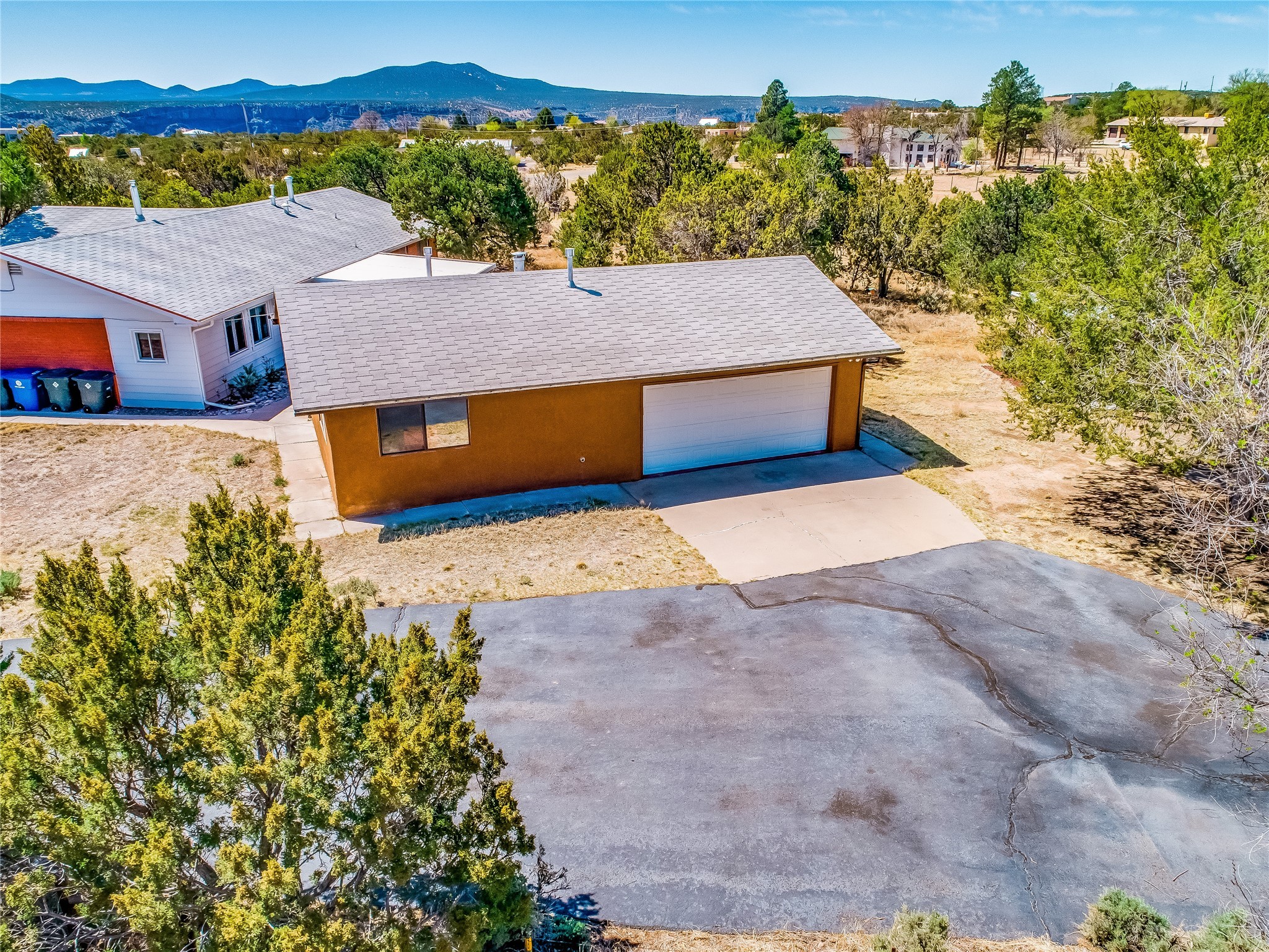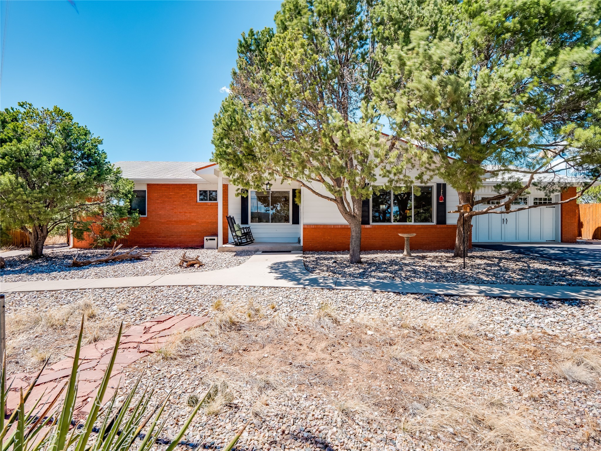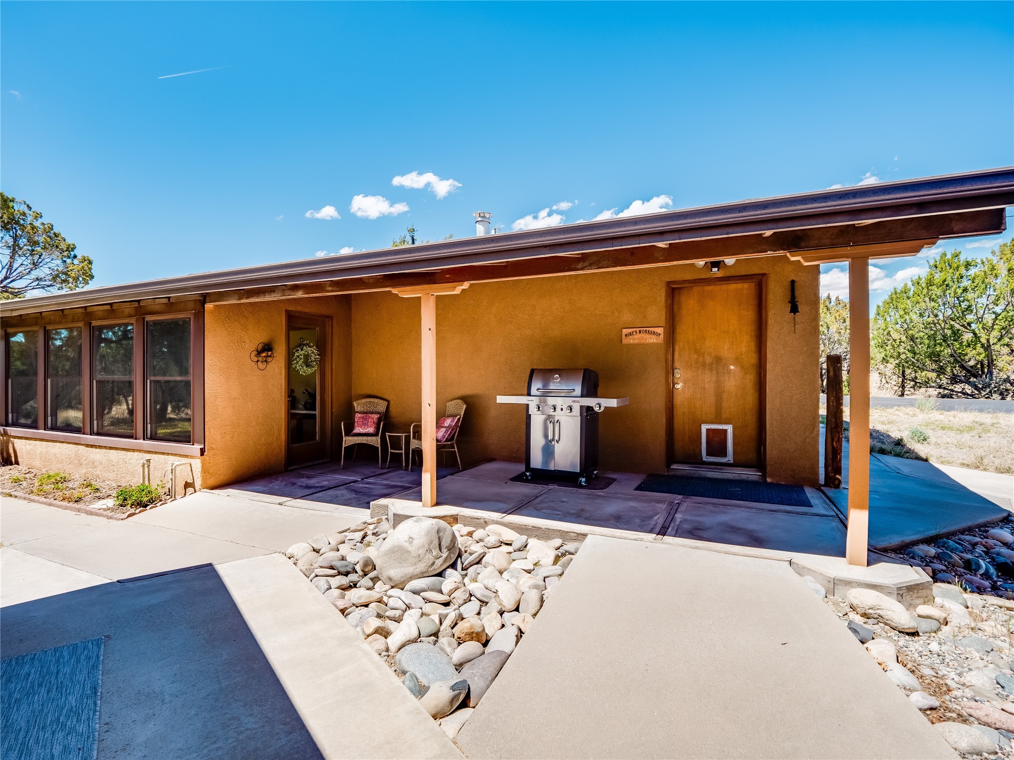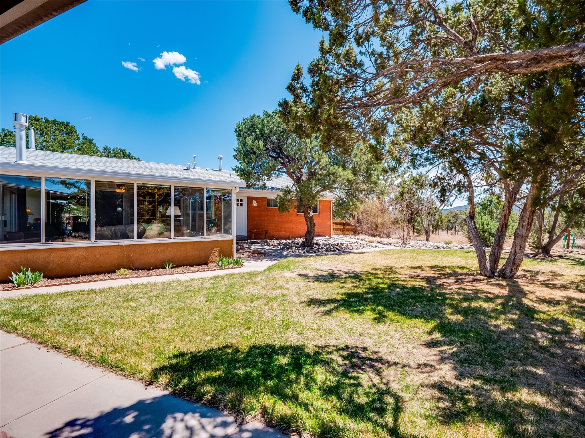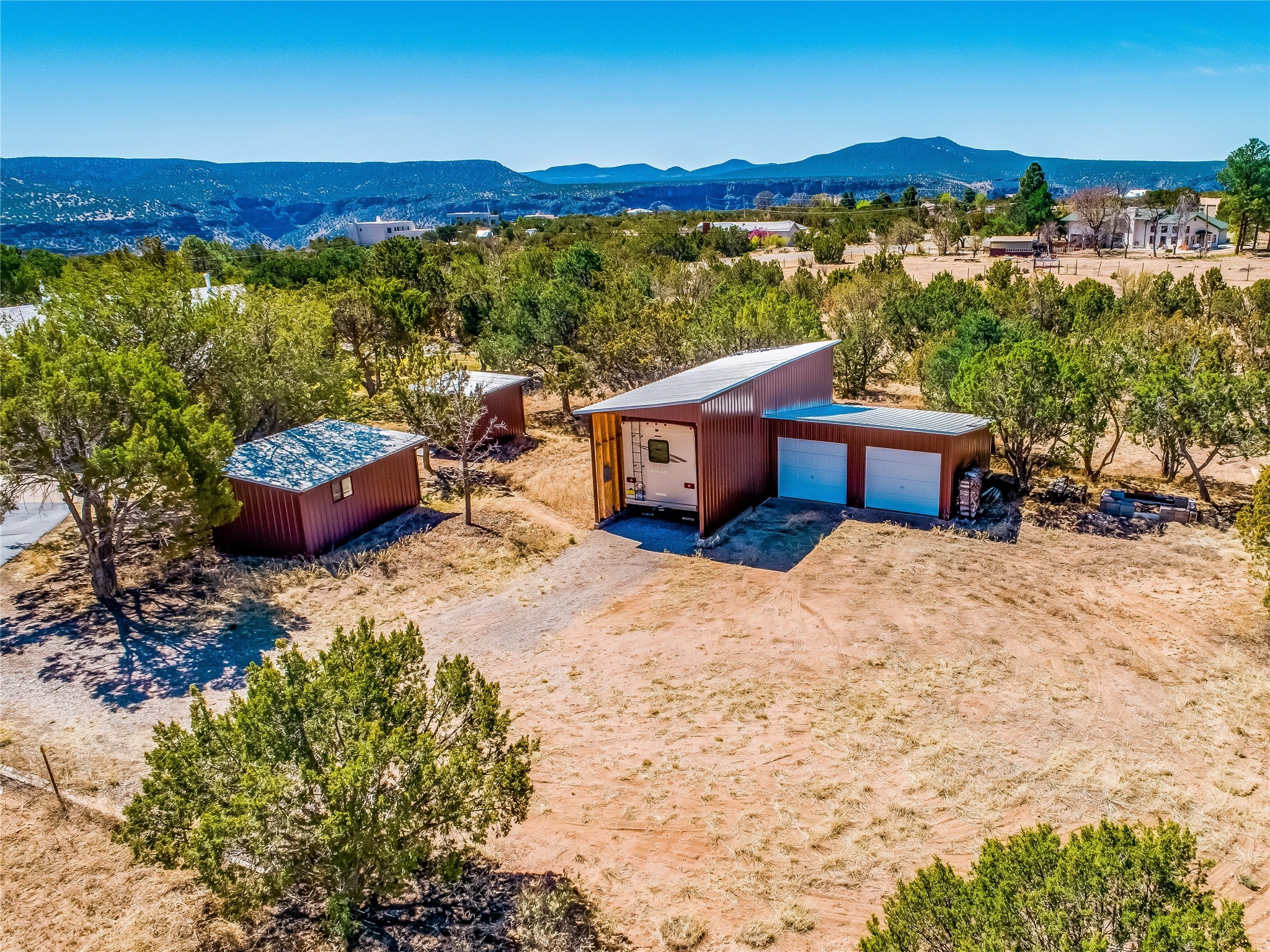 Tucked away in the desirable Pajarito Acres neighborhood, this stunning single-story home offers privacy, space, and versatility on 2.78 acres. A low-maintenance front yard with mature trees and shrubs offers a peaceful welcome and natural privacy. Inside you'll be welcomed by an expansive open floorplan designed for modern living and effortless entertaining. Gorgeous white oak flooring flows throughout, unifying each space with warmth and continuity. The living room, dining area, and kitchen connect openly, anchored by a cozy gas stove-style fireplace that provides a central gathering point. The completely remodeled gourmet kitchen is both functional and stylish, featuring sawn oak cabinetry, Corian counters, stainless steel appliances, and subway tile backsplash. With clear sightlines to both the living and dining areas, hosting guests or spending time with family feels natural and connected. Around the corner, the laundry area includes a stackable washer and dryer and convenient backyard access. Just off the dining room is a sun-filled family room with three walls of windows, gas stove and access to a backyard patio--perfect for indoor-outdoor living. Down the hall is a guest bedroom and a beautifully updated bathroom with a tiled shower/tub, glass enclosure, single sink vanity, and generous built-in cabinetry. The bright and spacious primary en-suite includes a spa-like bath with marble counters, a tiled walk-in shower, and built-in cabinets. Additional rooms include a dedicated office and a flexible bonus room. An attached two car garage with epoxy flooring. Outside, you'll find four additional structures: a huge workshop (plumbed with sewer, heated, electric, and compressed air) connected to a two-car garage, a heated greenhouse, a studio, a tool shed, and a 34-foot RV port--totaling 6 garage spaces. A unique haven for nature lovers, creatives, and entertainers. Too many upgrades to list--ask for the detailed spreadsheet and schedule your private tour today!