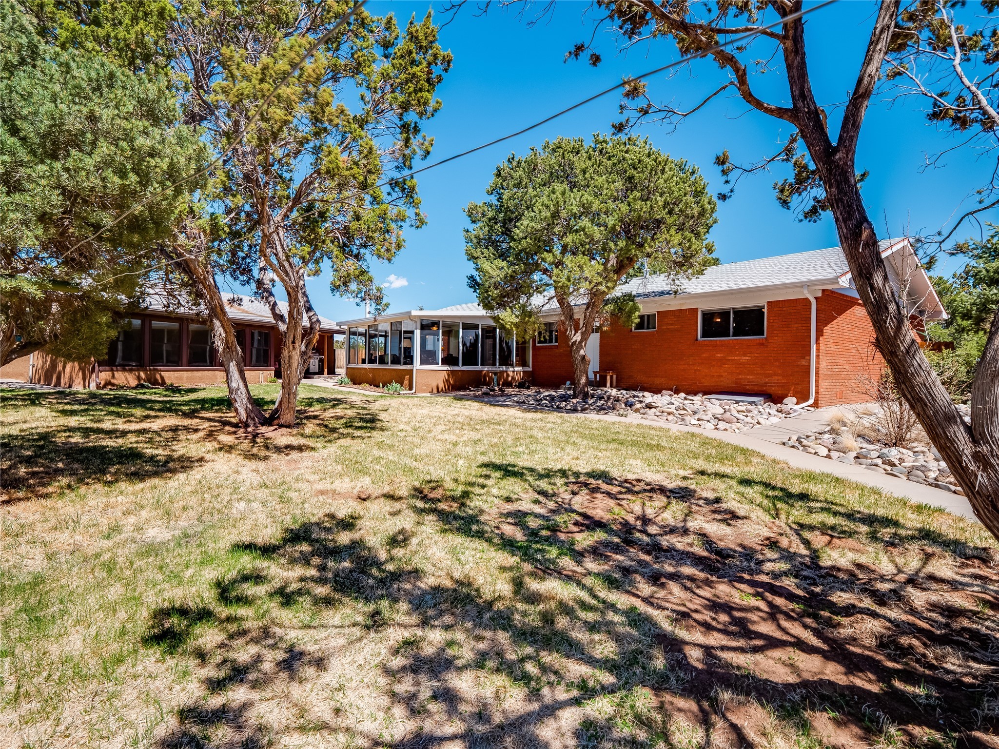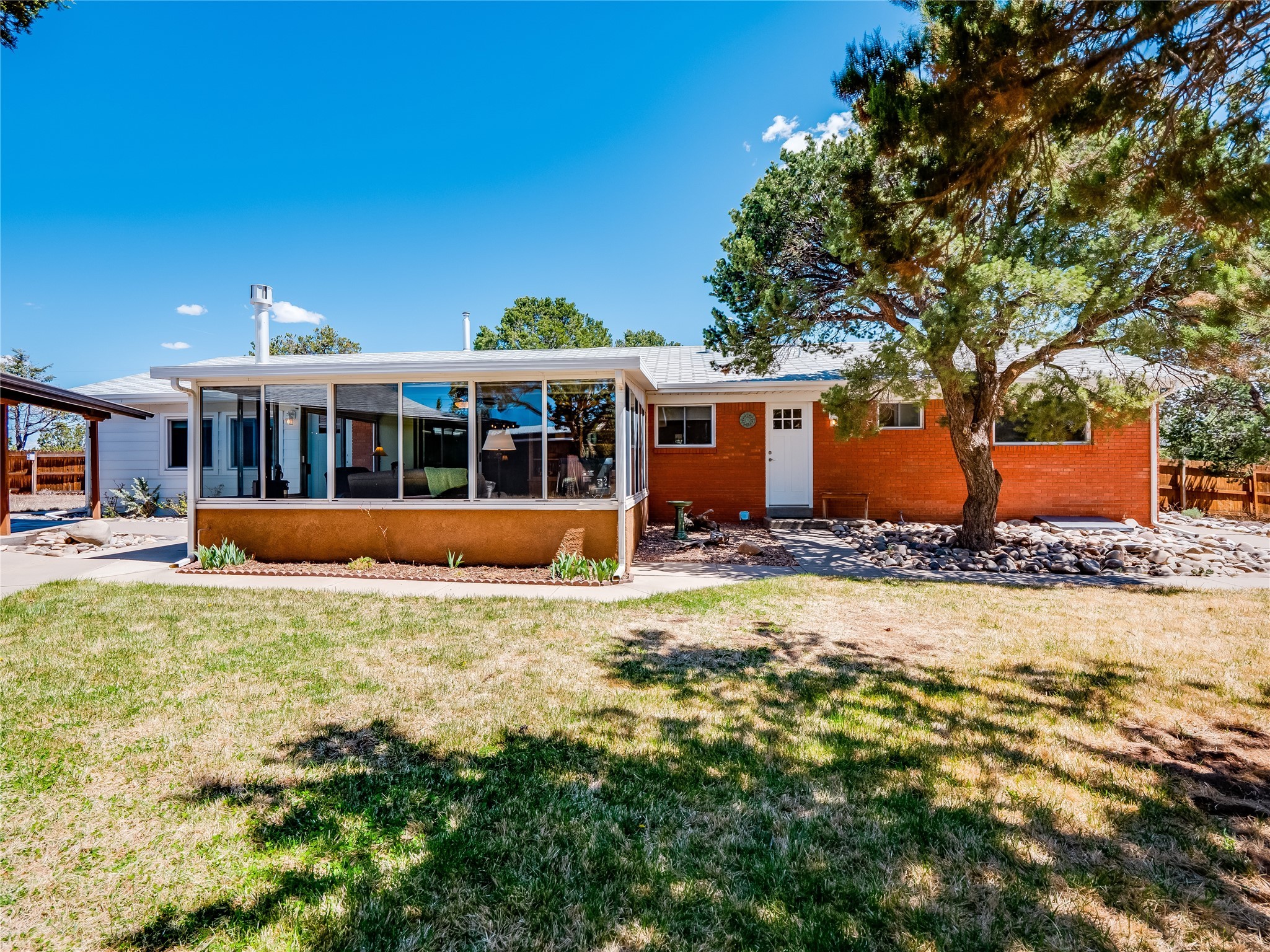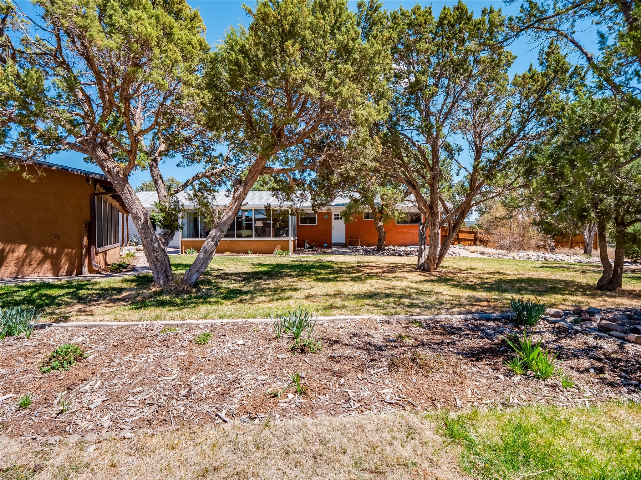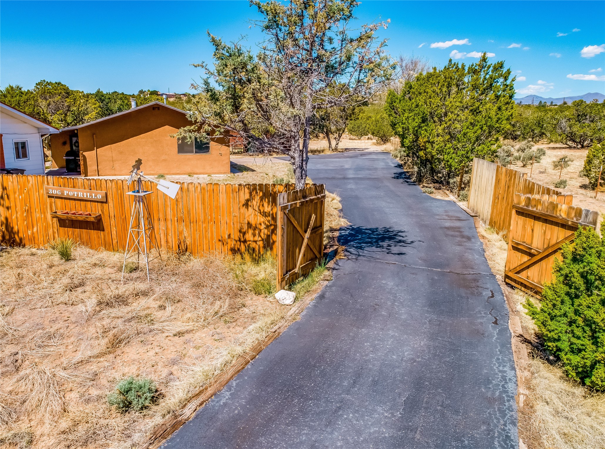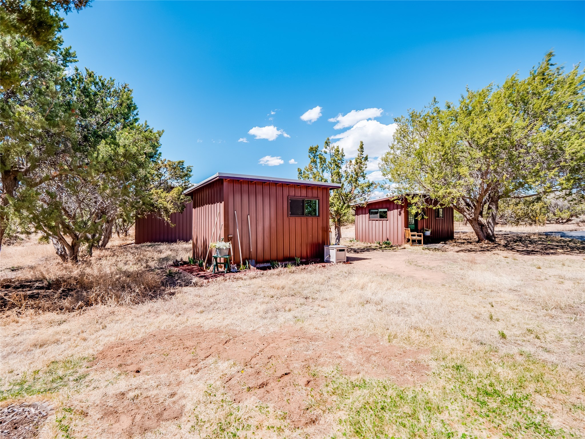 Tucked away in the desirable Pajarito Acres neighborhood, this stunning single-story home offers privacy, space, and versatility on 2.78 acres. A low-maintenance front yard with mature trees and shrubs offers a peaceful welcome and natural privacy. Inside you'll be welcomed by an expansive open floorplan designed for modern living and effortless entertaining. Gorgeous white oak flooring flows throughout, unifying each space with warmth and continuity. The living room, dining area, and kitchen connect openly, anchored by a cozy gas stove-style fireplace that provides a central gathering point. The completely remodeled gourmet kitchen is both functional and stylish, featuring sawn oak cabinetry, Corian counters, stainless steel appliances, and subway tile backsplash. With clear sightlines to both the living and dining areas, hosting guests or spending time with family feels natural and connected. Around the corner, the laundry area includes a stackable washer and dryer and convenient backyard access. Just off the dining room is a sun-filled family room with three walls of windows, gas stove and access to a backyard patio--perfect for indoor-outdoor living. Down the hall is a guest bedroom and a beautifully updated bathroom with a tiled shower/tub, glass enclosure, single sink vanity, and generous built-in cabinetry. The bright and spacious primary en-suite includes a spa-like bath with marble counters, a tiled walk-in shower, and built-in cabinets. Additional rooms include a dedicated office and a flexible bonus room. An attached two car garage with epoxy flooring. Outside, you'll find four additional structures: a huge workshop (plumbed with sewer, heated, electric, and compressed air) connected to a two-car garage, a heated greenhouse, a studio, a tool shed, and a 34-foot RV port--totaling 6 garage spaces. A unique haven for nature lovers, creatives, and entertainers. Too many upgrades to list--ask for the detailed spreadsheet and schedule your private tour today!