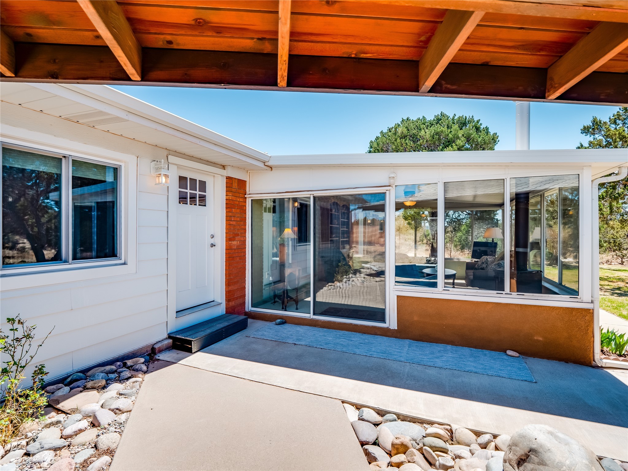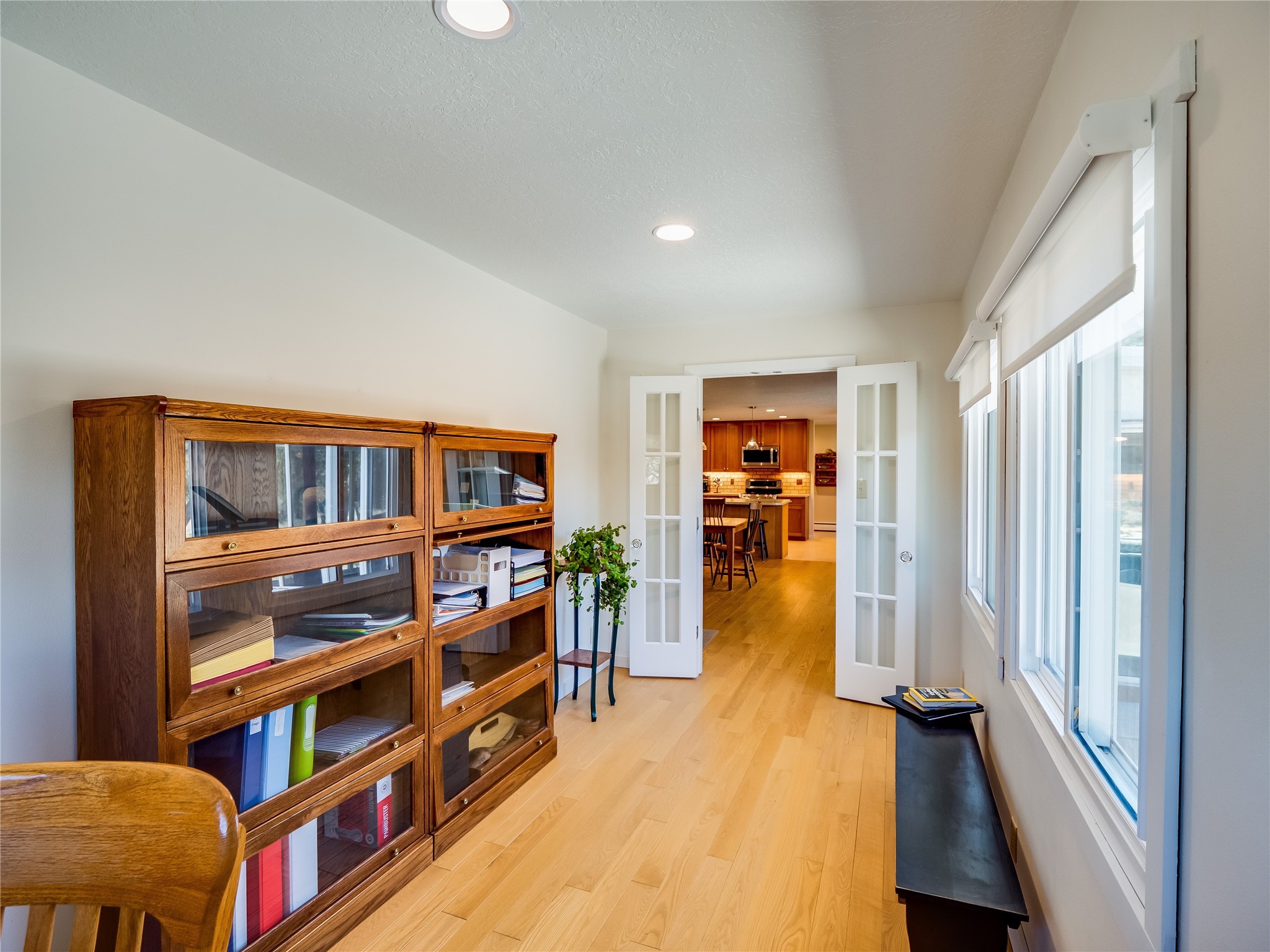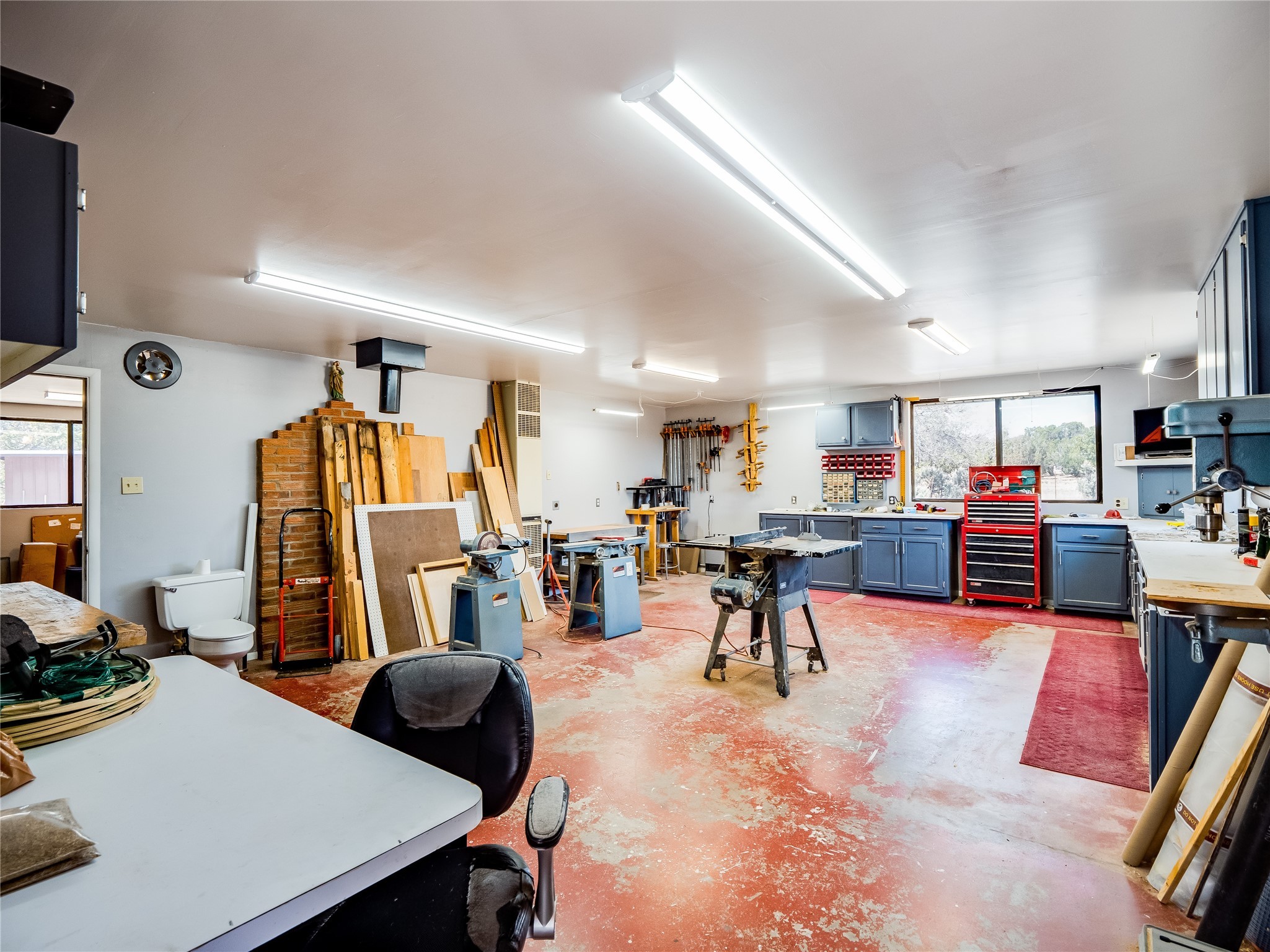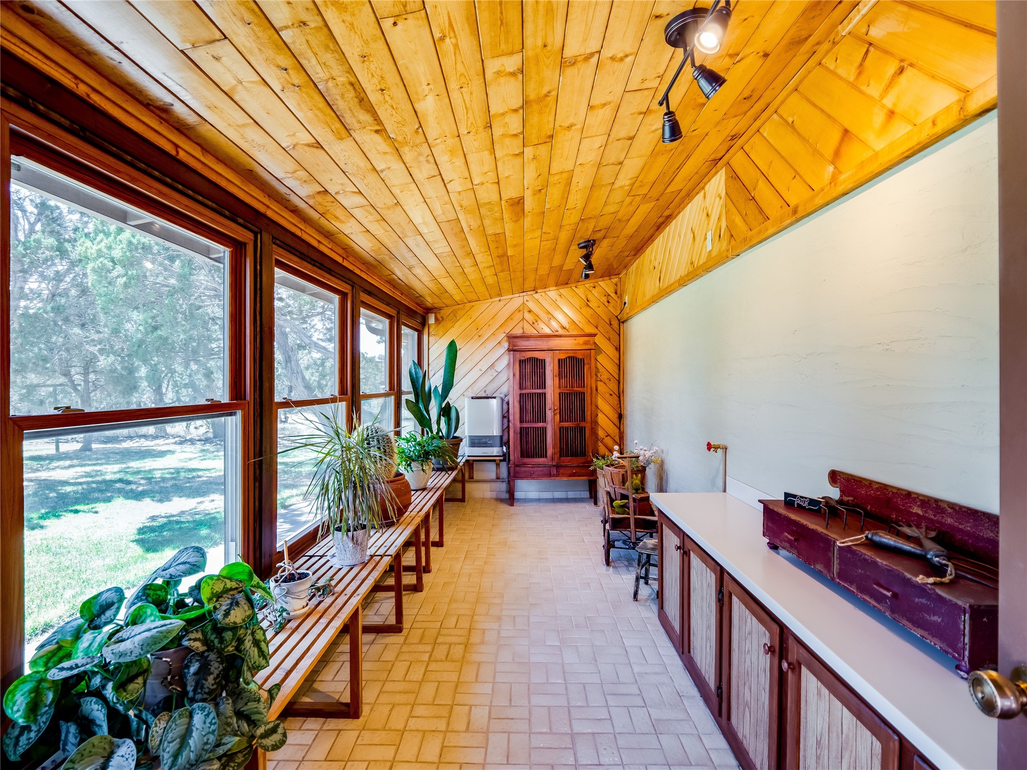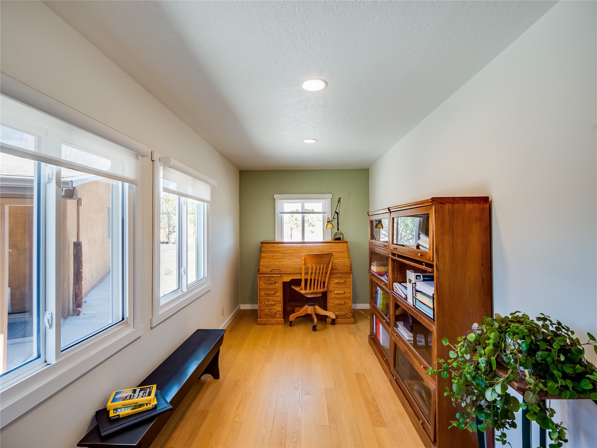 Tucked away in the desirable Pajarito Acres neighborhood, this stunning single-story home offers privacy, space, and versatility on 2.78 acres. A low-maintenance front yard with mature trees and shrubs offers a peaceful welcome and natural privacy. Inside you'll be welcomed by an expansive open floorplan designed for modern living and effortless entertaining. Gorgeous white oak flooring flows throughout, unifying each space with warmth and continuity. The living room, dining area, and kitchen connect openly, anchored by a cozy gas stove-style fireplace that provides a central gathering point. The completely remodeled gourmet kitchen is both functional and stylish, featuring sawn oak cabinetry, Corian counters, stainless steel appliances, and subway tile backsplash. With clear sightlines to both the living and dining areas, hosting guests or spending time with family feels natural and connected. Around the corner, the laundry area includes a stackable washer and dryer and convenient backyard access. Just off the dining room is a sun-filled family room with three walls of windows, gas stove and access to a backyard patio--perfect for indoor-outdoor living. Down the hall is a guest bedroom and a beautifully updated bathroom with a tiled shower/tub, glass enclosure, single sink vanity, and generous built-in cabinetry. The bright and spacious primary en-suite includes a spa-like bath with marble counters, a tiled walk-in shower, and built-in cabinets. Additional rooms include a dedicated office and a flexible bonus room. An attached two car garage with epoxy flooring. Outside, you'll find four additional structures: a huge workshop (plumbed with sewer, heated, electric, and compressed air) connected to a two-car garage, a heated greenhouse, a studio, a tool shed, and a 34-foot RV port--totaling 6 garage spaces. A unique haven for nature lovers, creatives, and entertainers. Too many upgrades to list--ask for the detailed spreadsheet and schedule your private tour today!