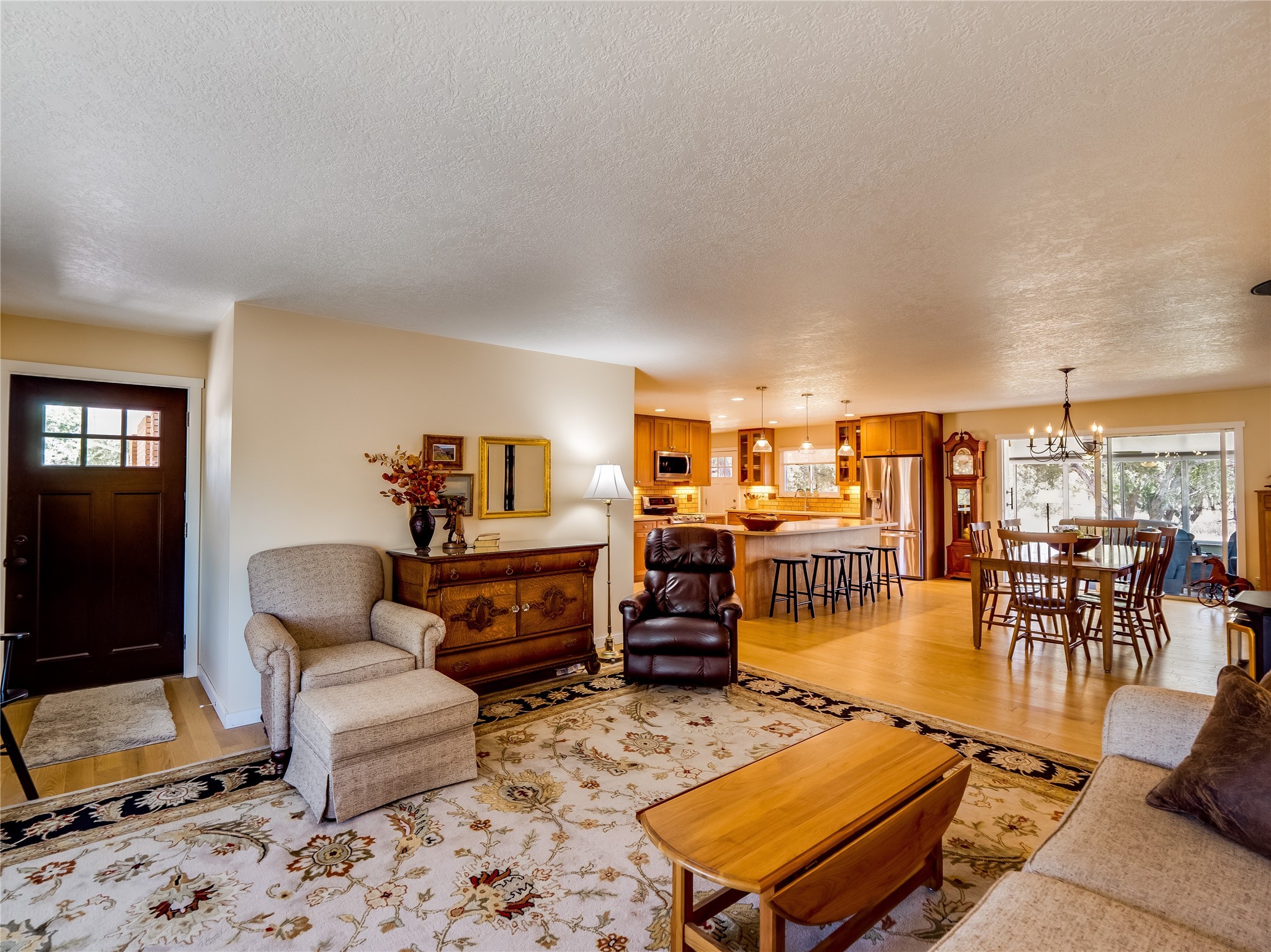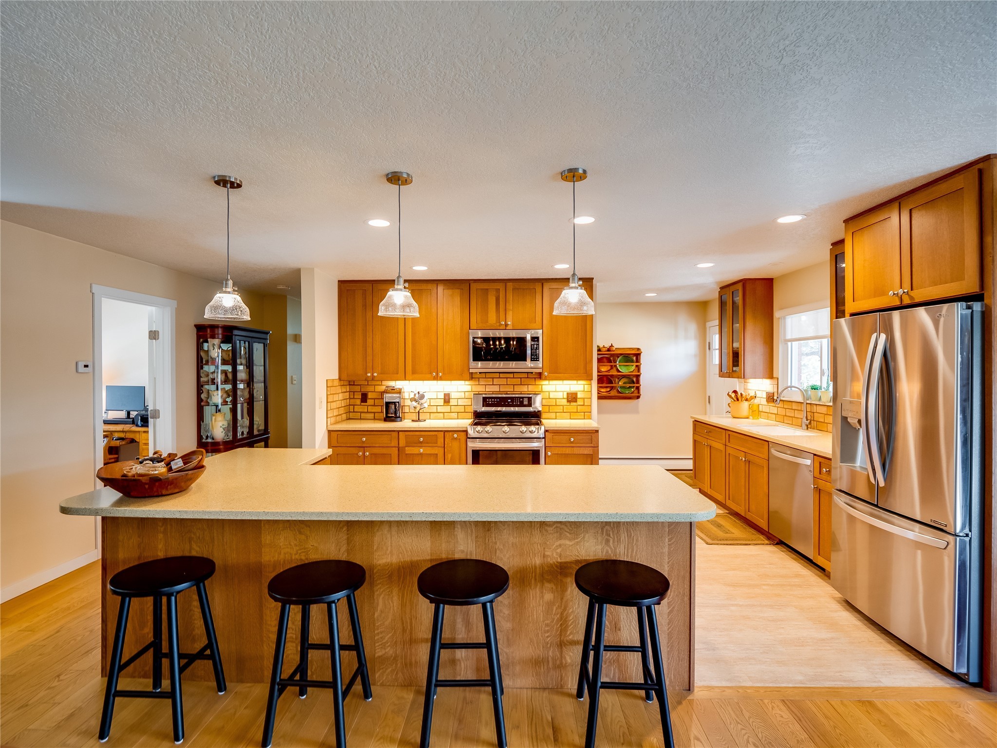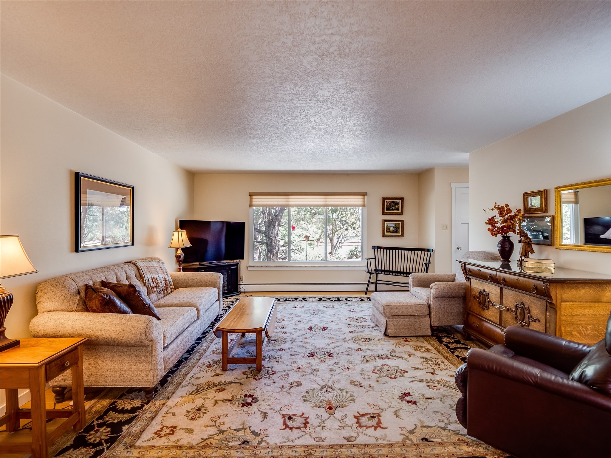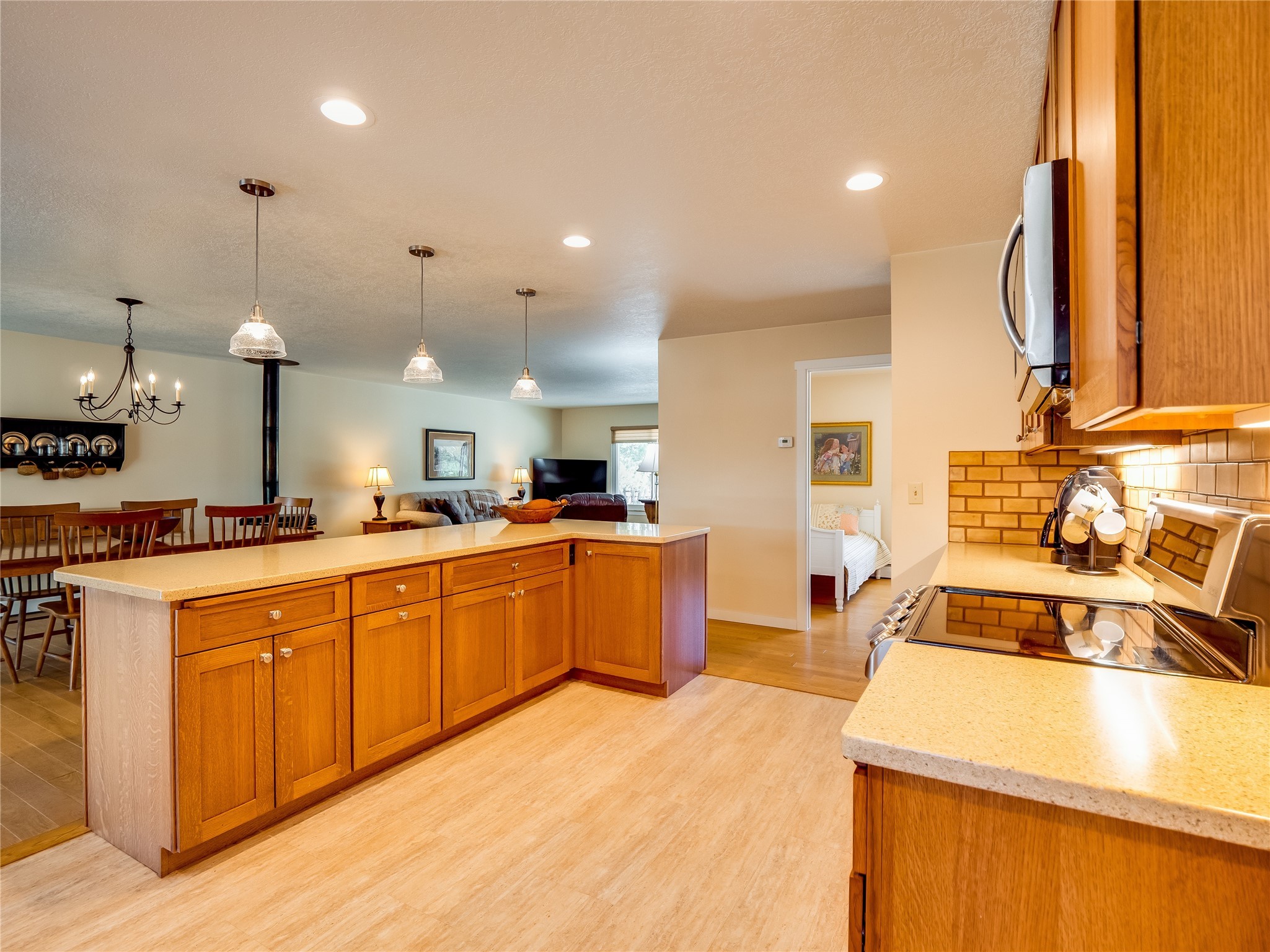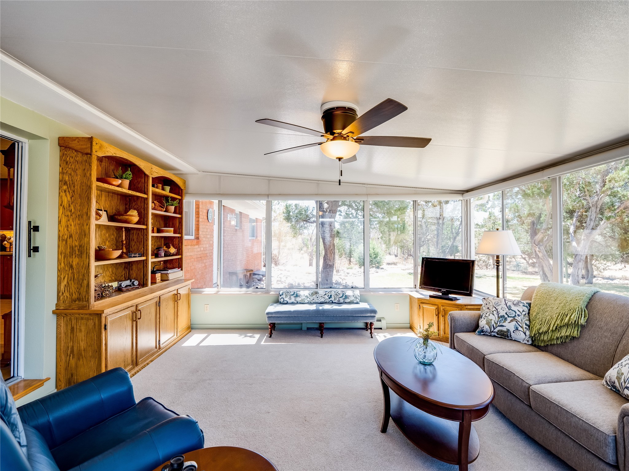 Tucked away in the desirable Pajarito Acres neighborhood, this stunning single-story home offers privacy, space, and versatility on 2.78 acres. A low-maintenance front yard with mature trees and shrubs offers a peaceful welcome and natural privacy. Inside you'll be welcomed by an expansive open floorplan designed for modern living and effortless entertaining. Gorgeous white oak flooring flows throughout, unifying each space with warmth and continuity. The living room, dining area, and kitchen connect openly, anchored by a cozy gas stove-style fireplace that provides a central gathering point. The completely remodeled gourmet kitchen is both functional and stylish, featuring sawn oak cabinetry, Corian counters, stainless steel appliances, and subway tile backsplash. With clear sightlines to both the living and dining areas, hosting guests or spending time with family feels natural and connected. Around the corner, the laundry area includes a stackable washer and dryer and convenient backyard access. Just off the dining room is a sun-filled family room with three walls of windows, gas stove and access to a backyard patio--perfect for indoor-outdoor living. Down the hall is a guest bedroom and a beautifully updated bathroom with a tiled shower/tub, glass enclosure, single sink vanity, and generous built-in cabinetry. The bright and spacious primary en-suite includes a spa-like bath with marble counters, a tiled walk-in shower, and built-in cabinets. Additional rooms include a dedicated office and a flexible bonus room. An attached two car garage with epoxy flooring. Outside, you'll find four additional structures: a huge workshop (plumbed with sewer, heated, electric, and compressed air) connected to a two-car garage, a heated greenhouse, a studio, a tool shed, and a 34-foot RV port--totaling 6 garage spaces. A unique haven for nature lovers, creatives, and entertainers. Too many upgrades to list--ask for the detailed spreadsheet and schedule your private tour today!