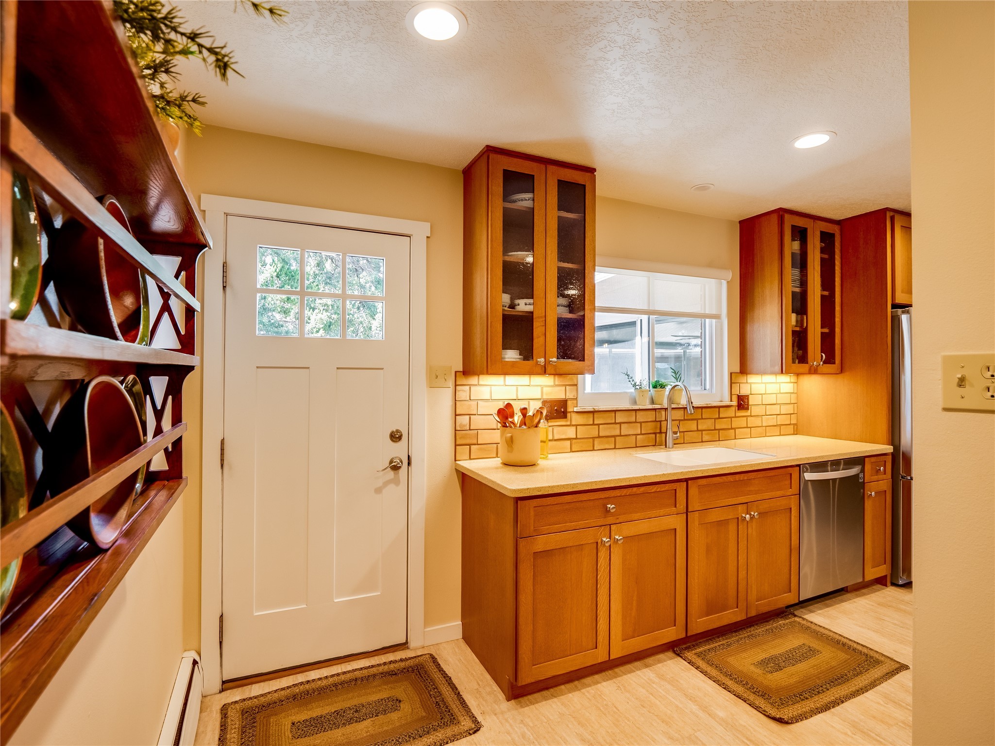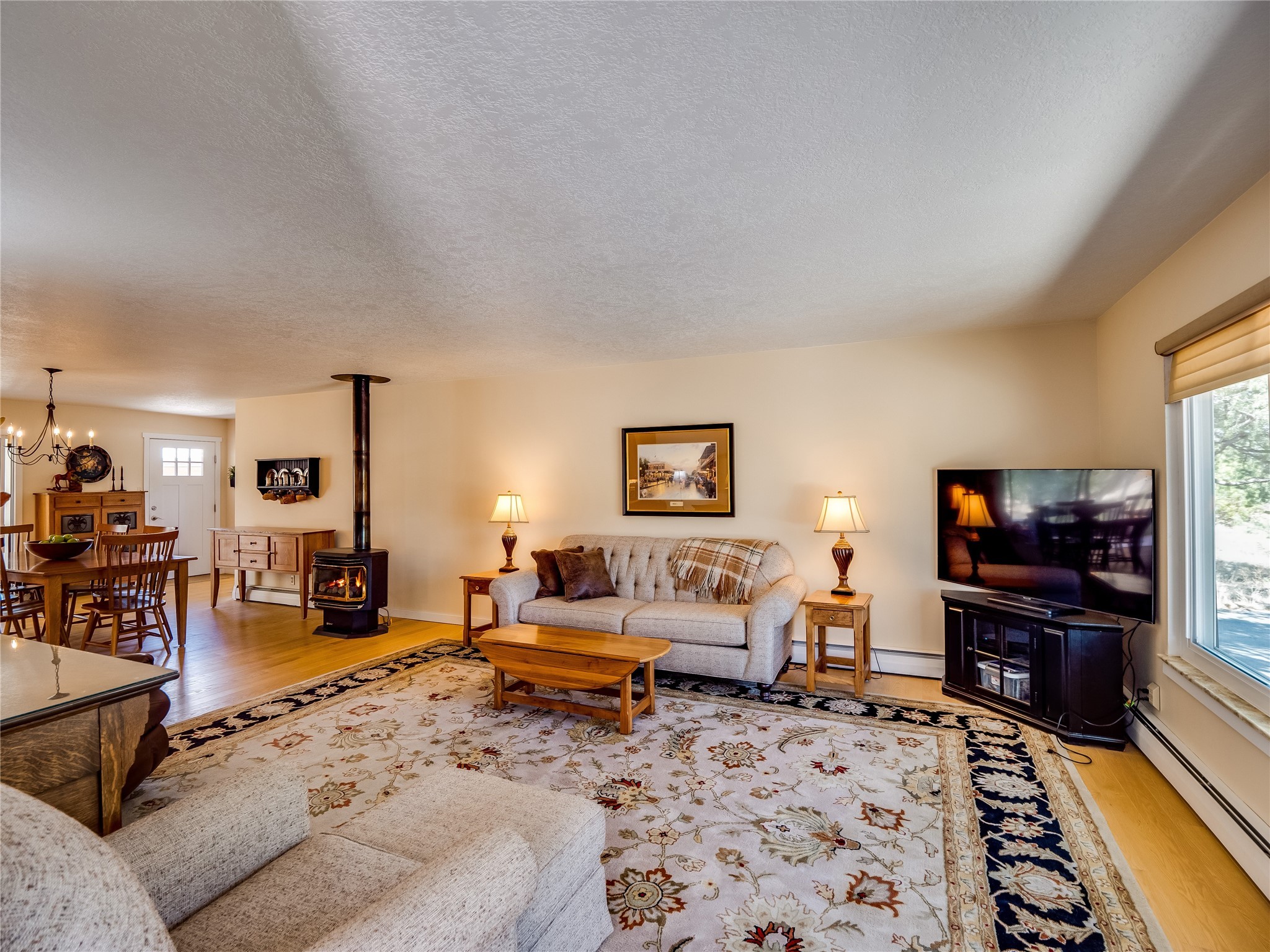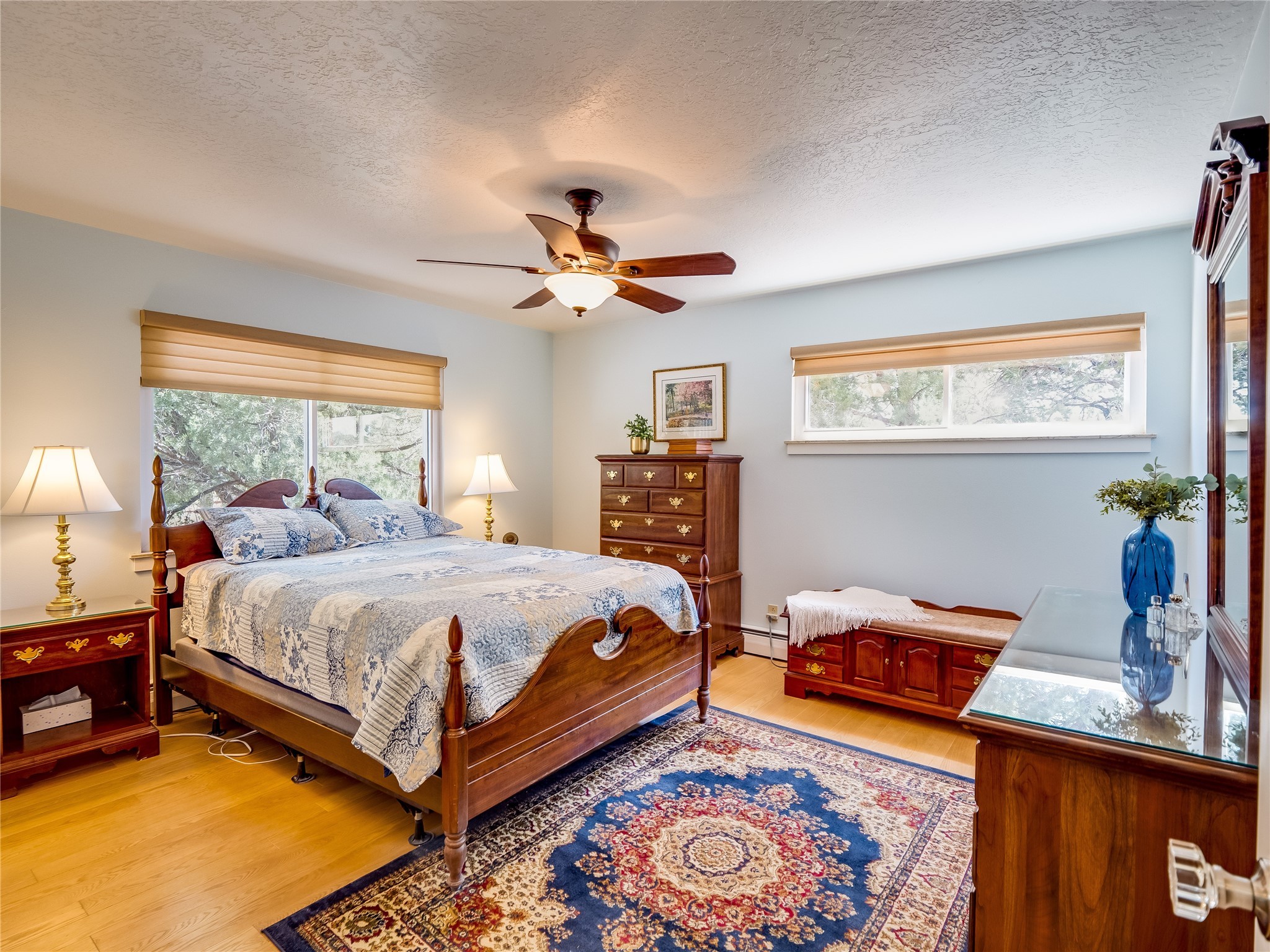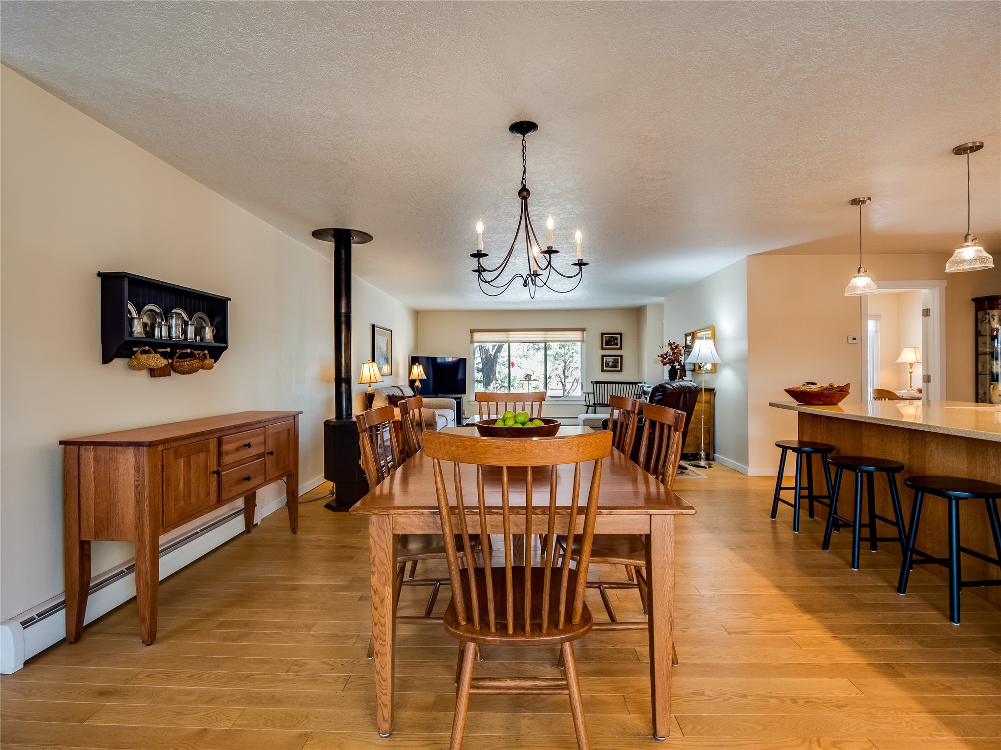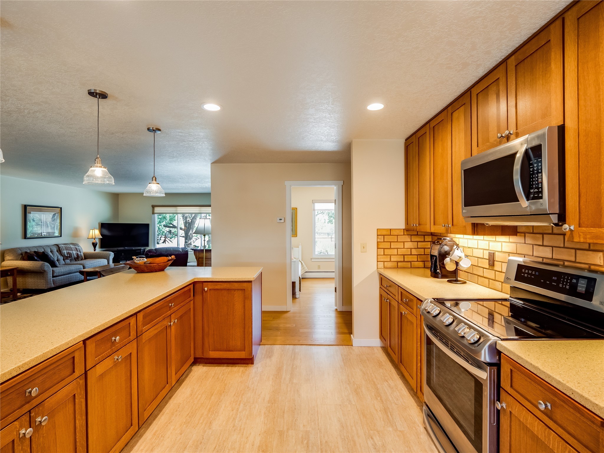 Tucked away in the desirable Pajarito Acres neighborhood, this stunning single-story home offers privacy, space, and versatility on 2.78 acres. A low-maintenance front yard with mature trees and shrubs offers a peaceful welcome and natural privacy. Inside you'll be welcomed by an expansive open floorplan designed for modern living and effortless entertaining. Gorgeous white oak flooring flows throughout, unifying each space with warmth and continuity. The living room, dining area, and kitchen connect openly, anchored by a cozy gas stove-style fireplace that provides a central gathering point. The completely remodeled gourmet kitchen is both functional and stylish, featuring sawn oak cabinetry, Corian counters, stainless steel appliances, and subway tile backsplash. With clear sightlines to both the living and dining areas, hosting guests or spending time with family feels natural and connected. Around the corner, the laundry area includes a stackable washer and dryer and convenient backyard access. Just off the dining room is a sun-filled family room with three walls of windows, gas stove and access to a backyard patio--perfect for indoor-outdoor living. Down the hall is a guest bedroom and a beautifully updated bathroom with a tiled shower/tub, glass enclosure, single sink vanity, and generous built-in cabinetry. The bright and spacious primary en-suite includes a spa-like bath with marble counters, a tiled walk-in shower, and built-in cabinets. Additional rooms include a dedicated office and a flexible bonus room. An attached two car garage with epoxy flooring. Outside, you'll find four additional structures: a huge workshop (plumbed with sewer, heated, electric, and compressed air) connected to a two-car garage, a heated greenhouse, a studio, a tool shed, and a 34-foot RV port--totaling 6 garage spaces. A unique haven for nature lovers, creatives, and entertainers. Too many upgrades to list--ask for the detailed spreadsheet and schedule your private tour today!