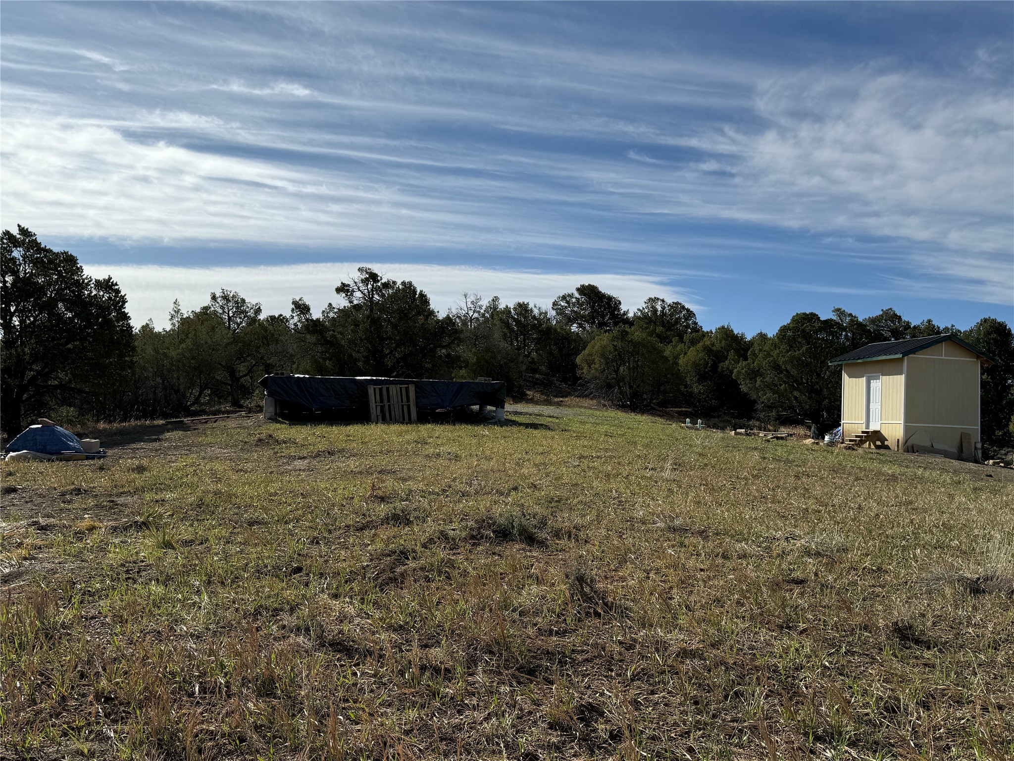 Rolling sunny meadows with views of a neighboring ranch and the surrounding mountainside. Much of the work has been done to include installed septic, Rutheron water membership as well being brought to the building site, a 10 x 10 shed that has been plumbed for a 3/4 bath that can be finished and used while building or extra guests, an RV septic pipe, 20 x 32 foundation, great for solar power. Ready to build the cabin/home of your dreams! Tall Ponderosa pines, Junipers & Oak give a feeling of seclusion. Both Heron & El Vado Lakes are just minutes away for boating and recreational fun! For those fly fishing enthusiasts, both the Chama & Brazos Rivers are also close by. Come see what the Chama area has to offer; it is a fun four season destination place!