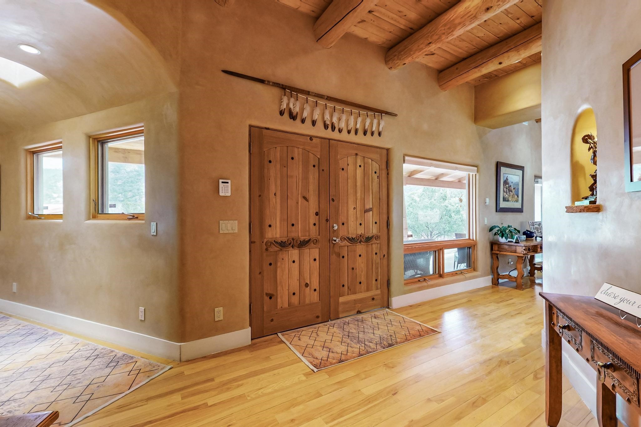 HUGE PRICE IMPROVEMENT! Welcome to 25 Old Santa Fe Way! This immaculately maintained home is nestled in the foothills of the Sangre de Cristo mountains but is less than 20 minutes away from the Santa Fe Plaza. This beautiful 3 bed, 3 bath home is found in the most serene setting. The spacious and cozy open concept living area is filled with light due to the generous windows! Prepare to be absolutely stunned by the view of the foothills from both inside and outside the home, and at nighttime, you will be delighted as the mountains are nothing short of magical! This lovely home has had many updates, such as NEW garage doors (2025), NEW stucco (2024), NEW roof (2024), NEW blinds (2024), and the primary bath was completely remodeled (2024). This home is move in ready and waiting for it's next family to call it home!