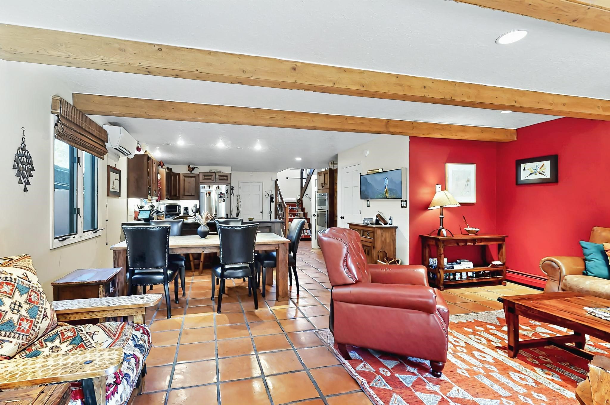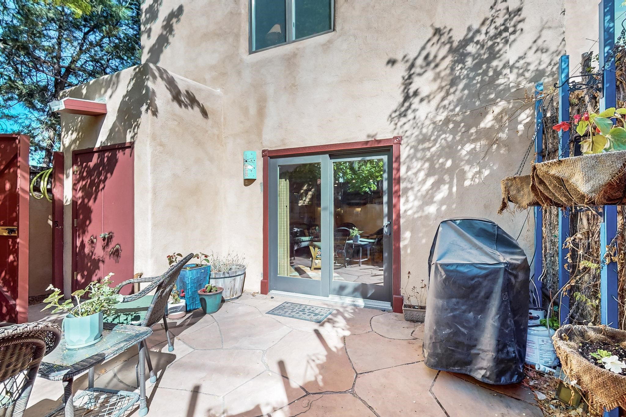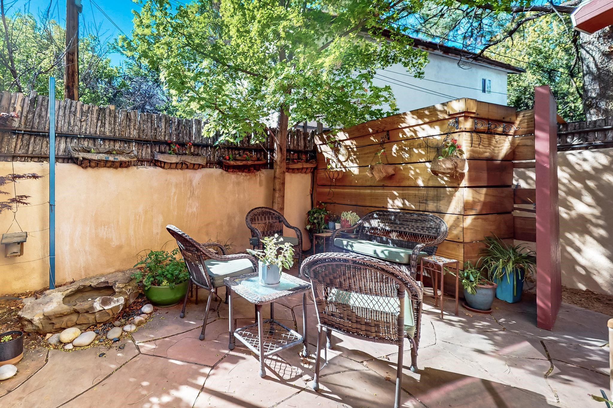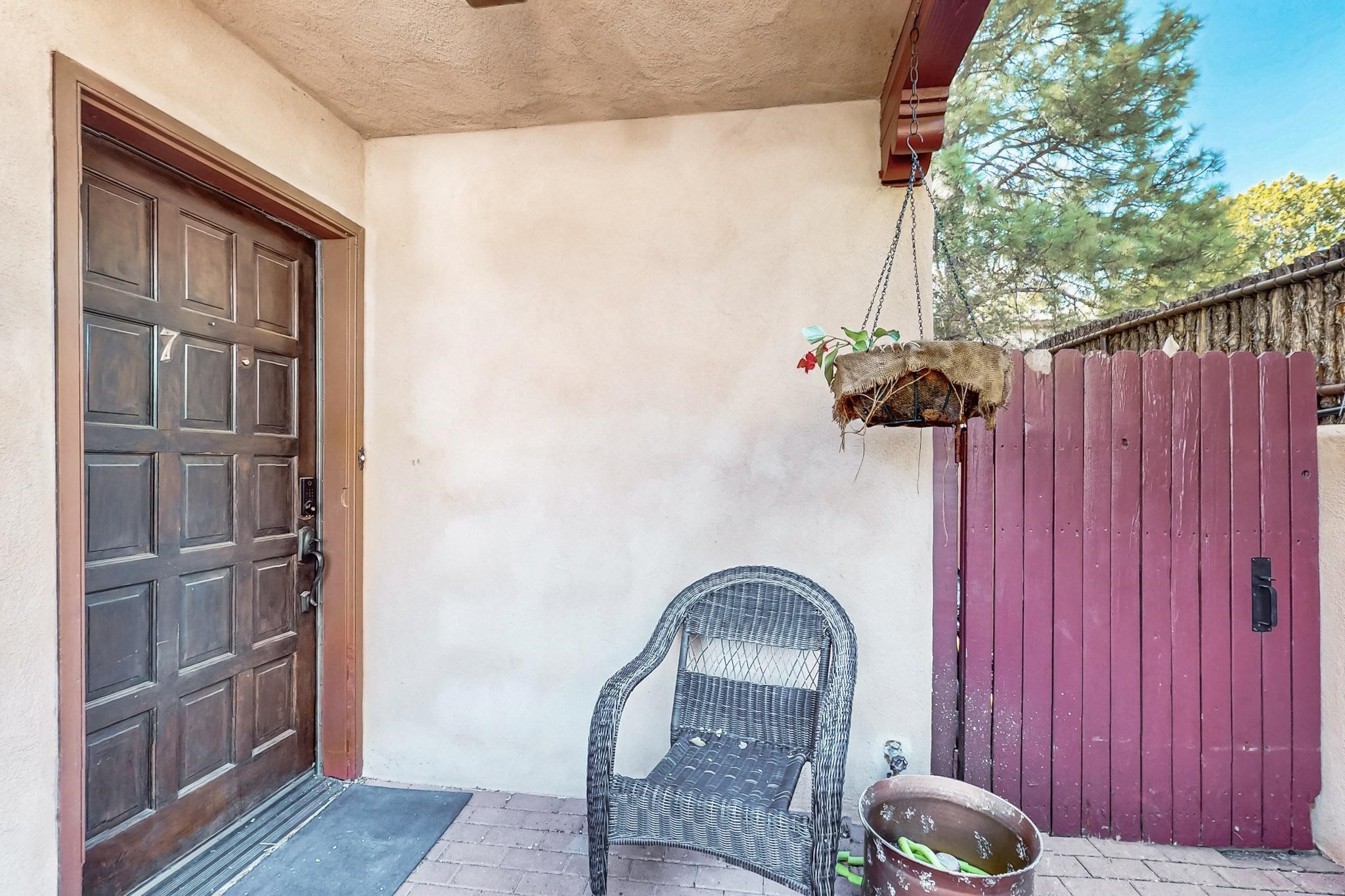 Stroll to the Plaza from this beautifully remodeled condo in a fabulous downtown location! This end unit is light and bright with plenty of windows. Close to the historic downtown area and right across from Fort Marcy Park, this lovely home has two generously sized bedrooms, both with walk-in closets. Downstairs has an open concept plan with a large kitchen, spacious living area with a corner Kiva, laundry room, and powder bath. Engineered wood floors throughout the home. No carpet. Mini-splits in the bedrooms and living area. Enjoy summer outdoor dining in the fabulous private courtyard, accessed through a new Andersen sliding glass door. Take a short walk to shopping and fine dining. A quick drive leads to some of the greatest hiking trails around. Whether looking for a vacation property or a place to call home, this could be the perfect spot.