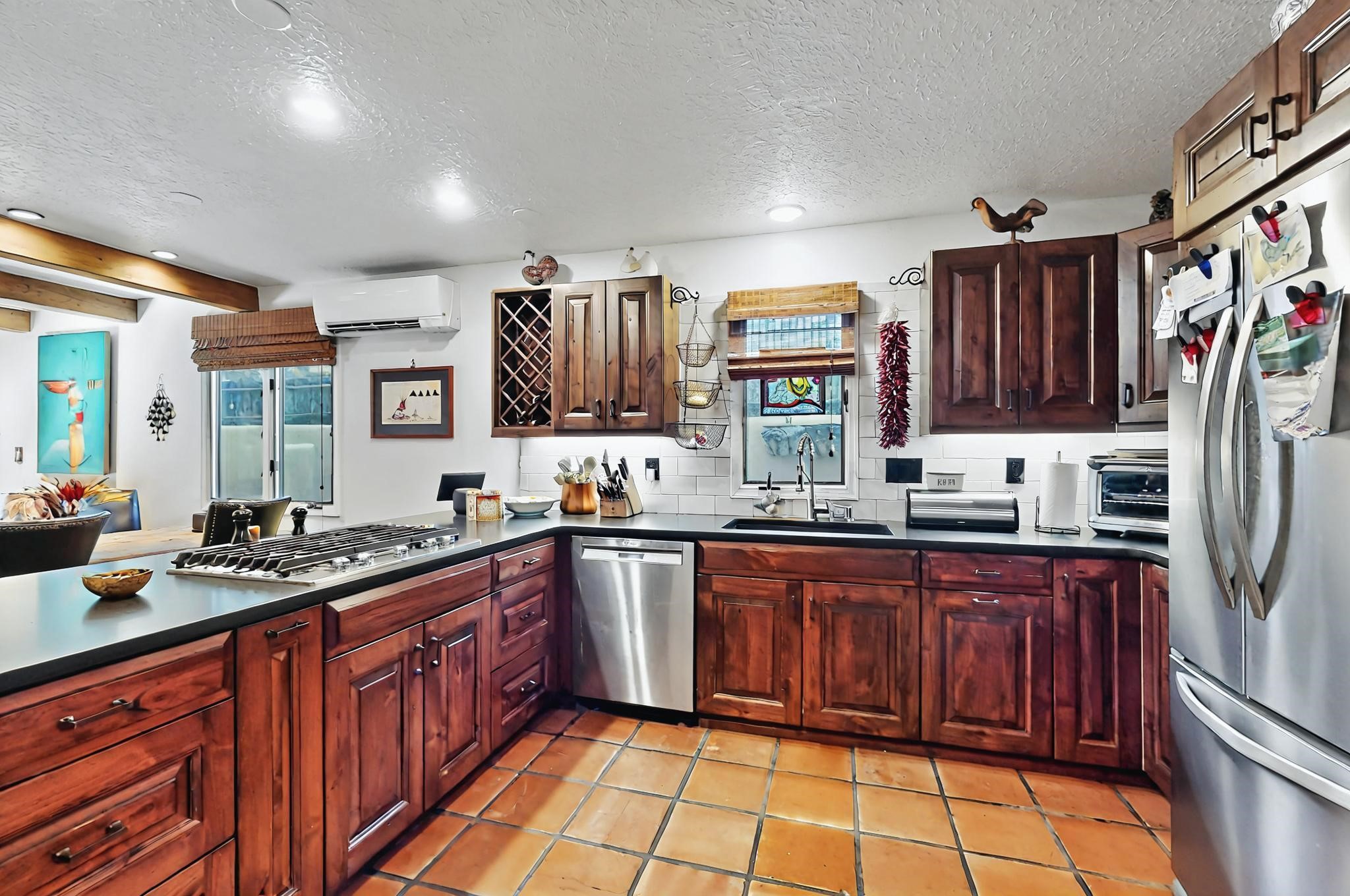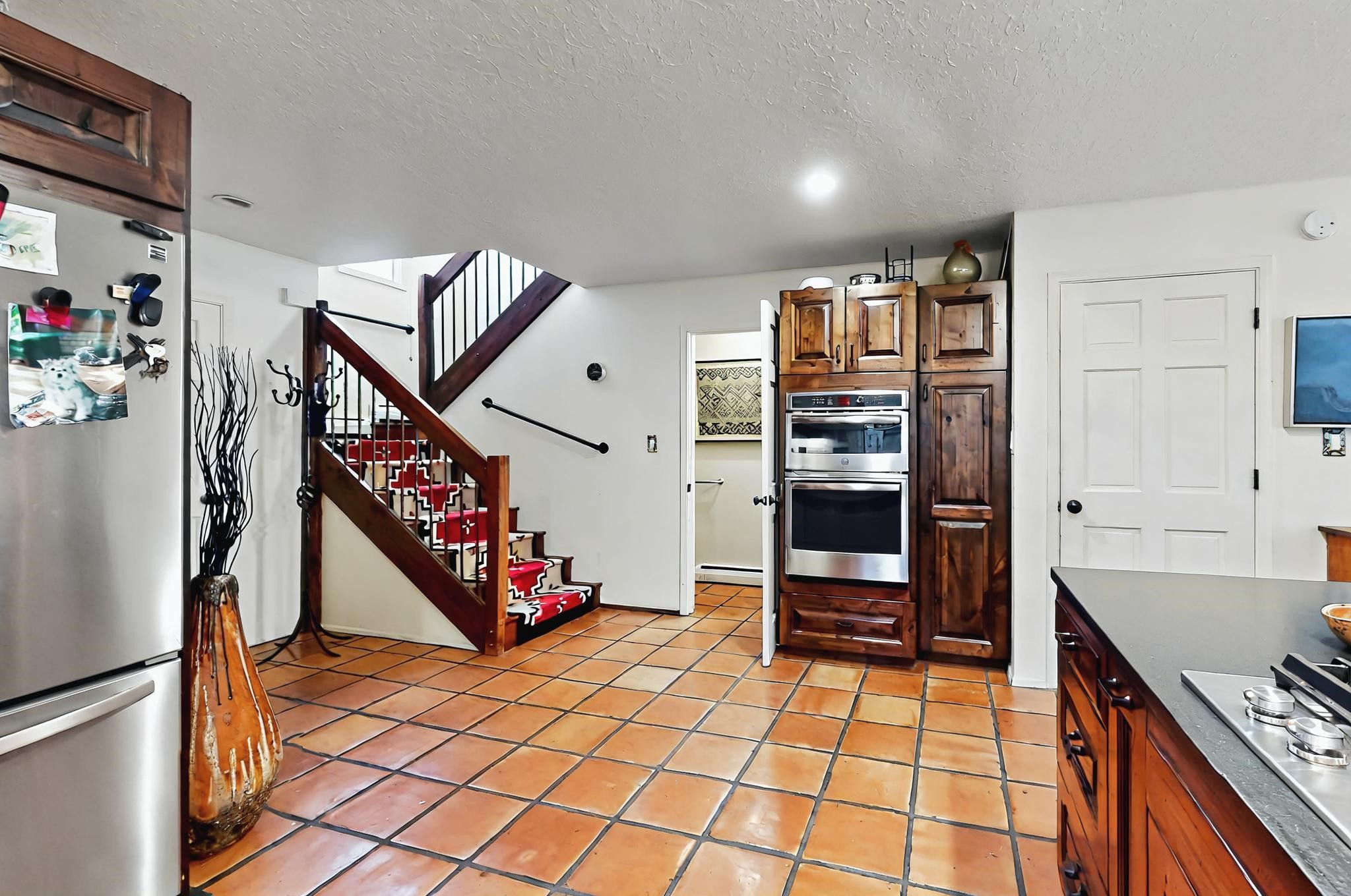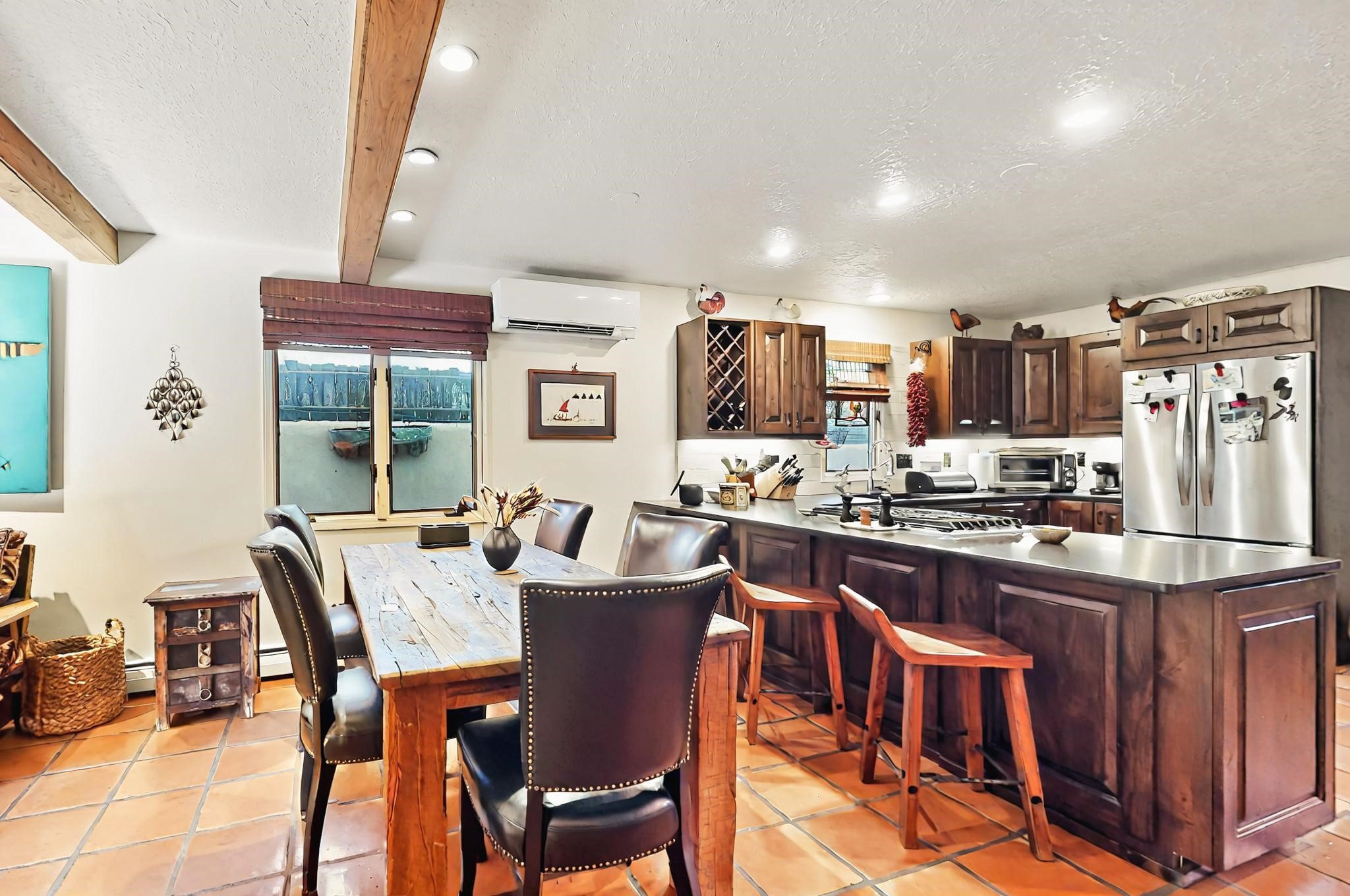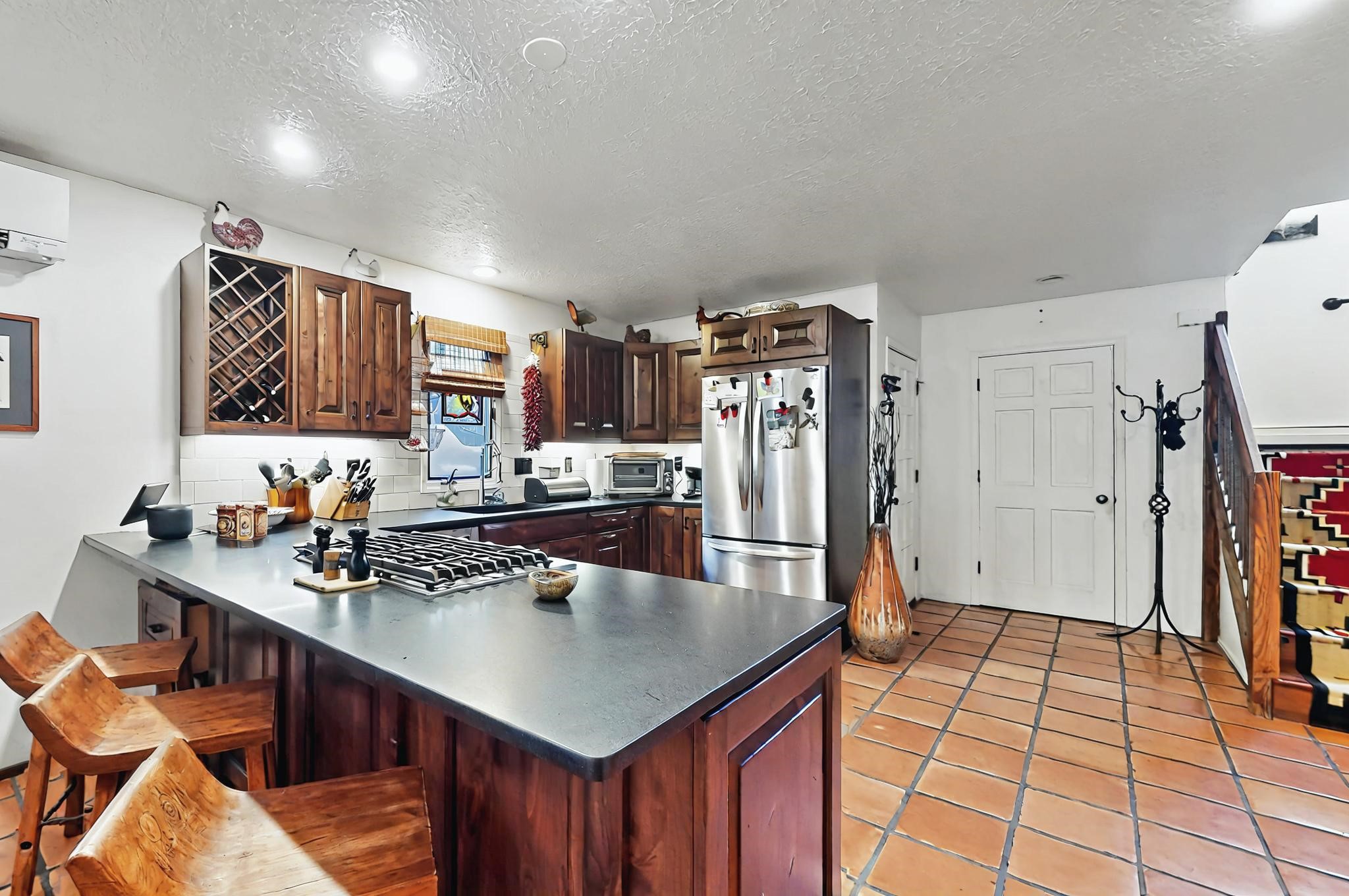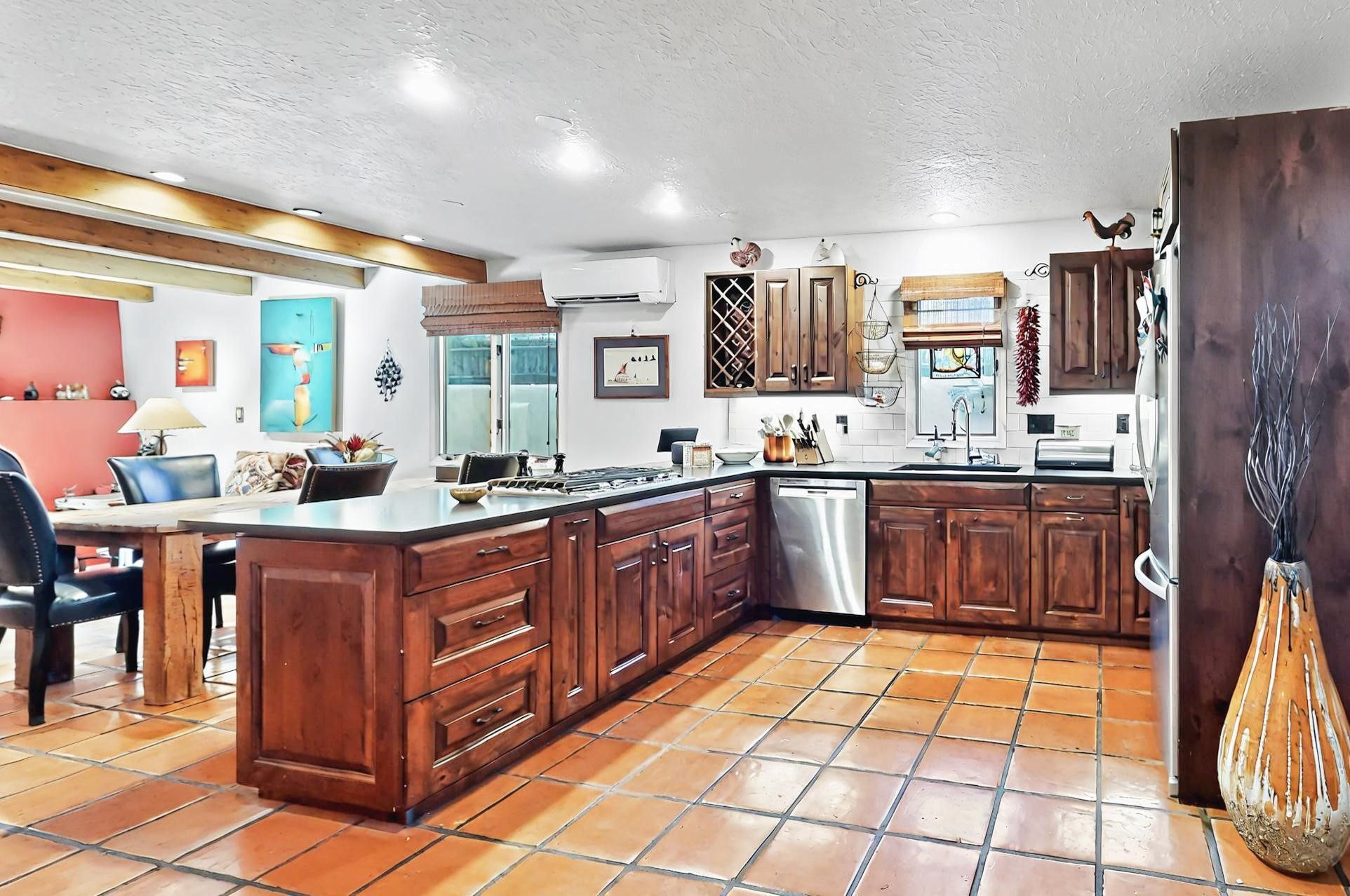 Stroll to the Plaza from this beautifully remodeled condo in a fabulous downtown location! This end unit is light and bright with plenty of windows. Close to the historic downtown area and right across from Fort Marcy Park, this lovely home has two generously sized bedrooms, both with walk-in closets. Downstairs has an open concept plan with a large kitchen, spacious living area with a corner Kiva, laundry room, and powder bath. Engineered wood floors throughout the home. No carpet. Mini-splits in the bedrooms and living area. Enjoy summer outdoor dining in the fabulous private courtyard, accessed through a new Andersen sliding glass door. Take a short walk to shopping and fine dining. A quick drive leads to some of the greatest hiking trails around. Whether looking for a vacation property or a place to call home, this could be the perfect spot.