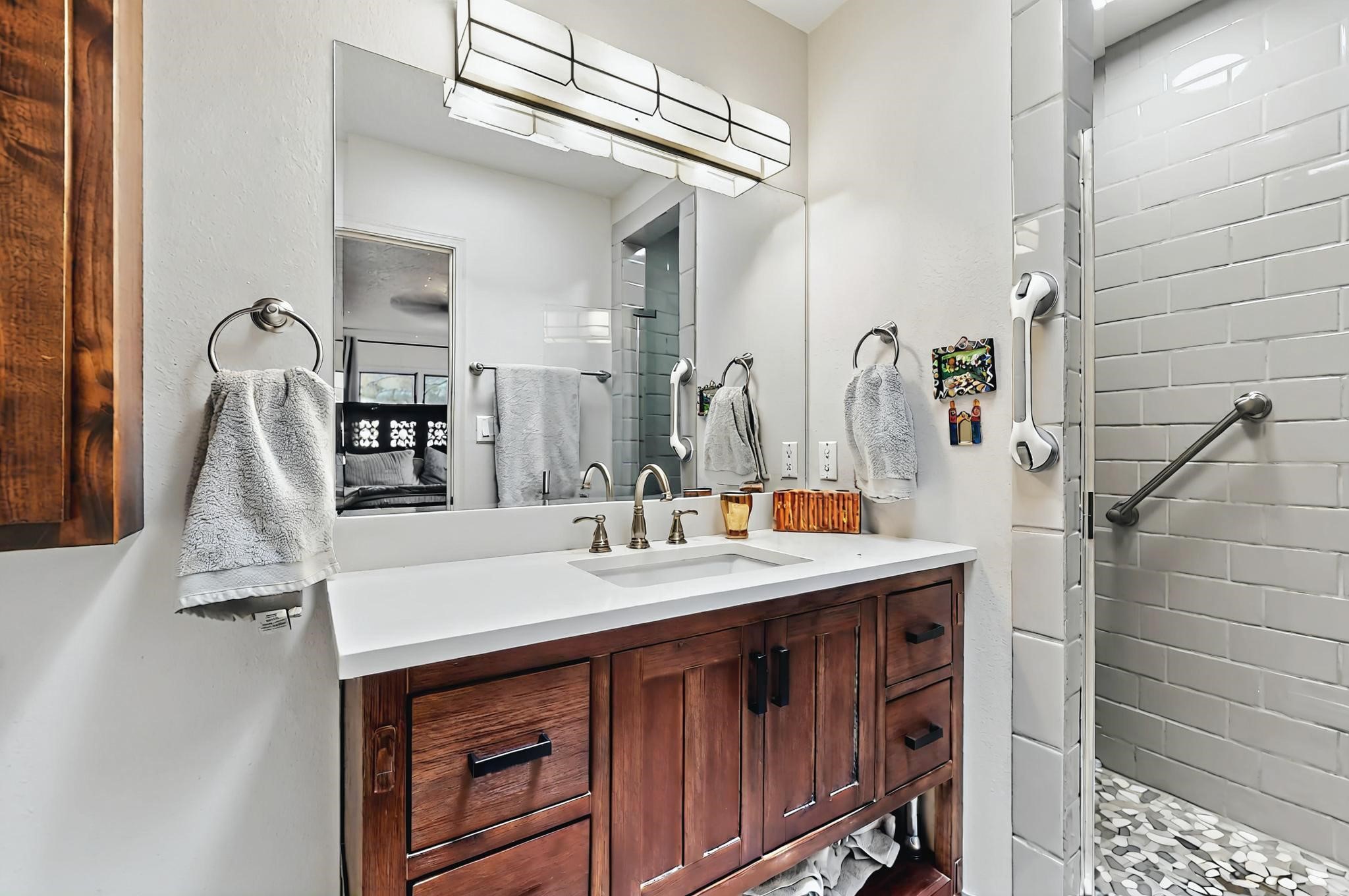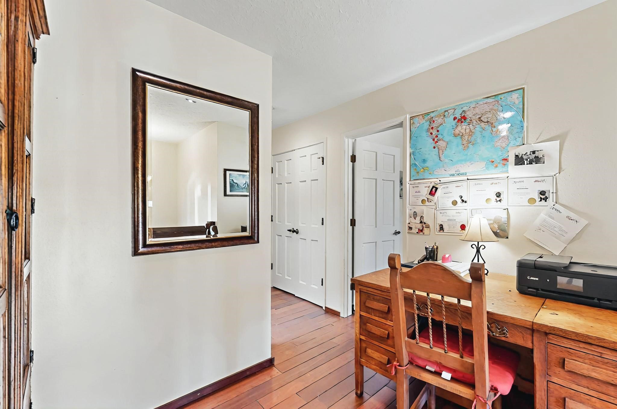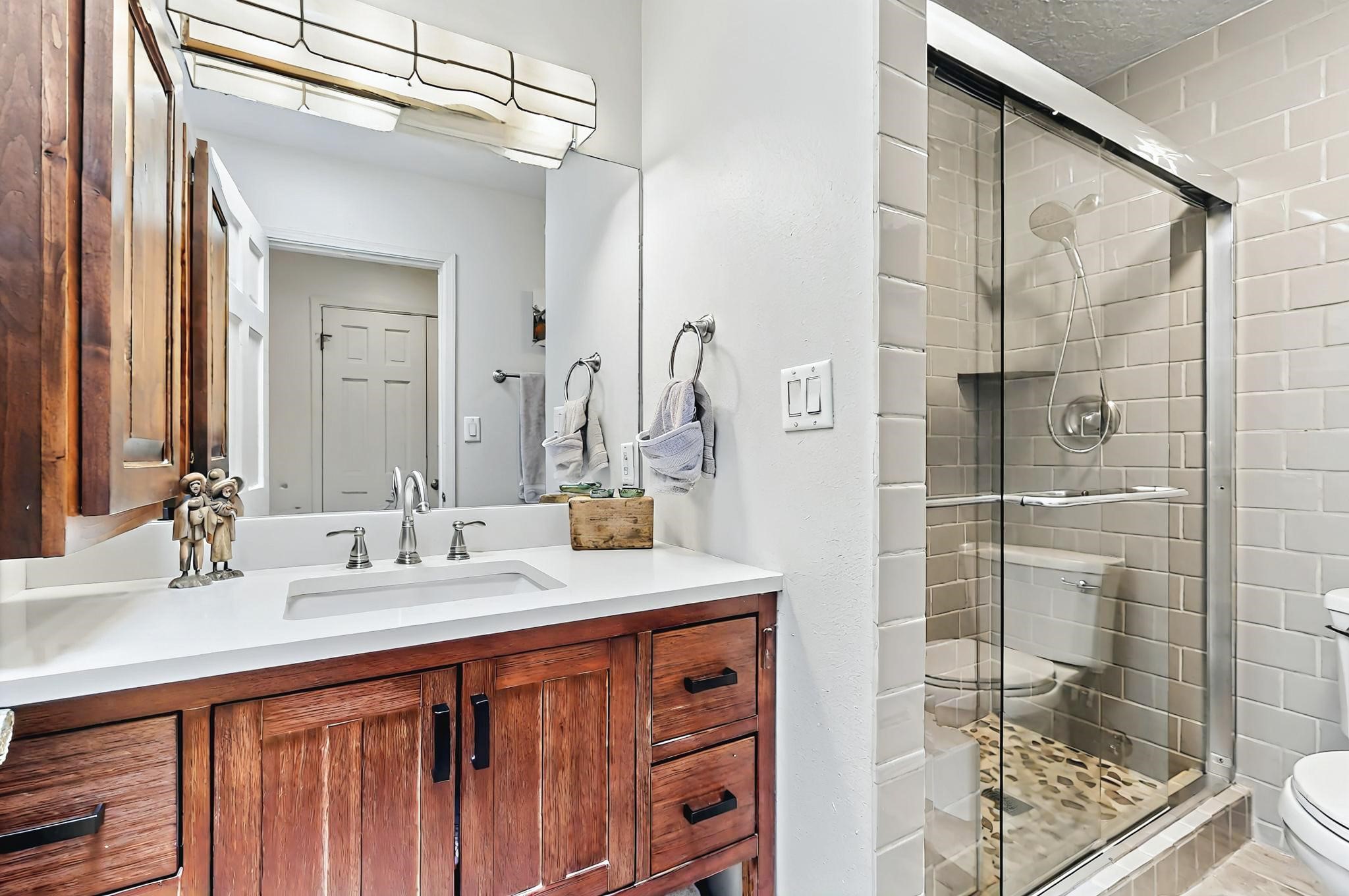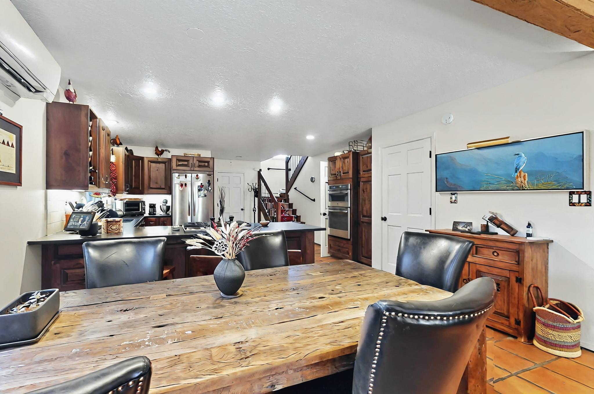 Stroll to the Plaza from this beautifully remodeled condo in a fabulous downtown location! This end unit is light and bright with plenty of windows. Close to the historic downtown area and right across from Fort Marcy Park, this lovely home has two generously sized bedrooms, both with walk-in closets. Downstairs has an open concept plan with a large kitchen, spacious living area with a corner Kiva, laundry room, and powder bath. Engineered wood floors throughout the home. No carpet. Mini-splits in the bedrooms and living area. Enjoy summer outdoor dining in the fabulous private courtyard, accessed through a new Andersen sliding glass door. Take a short walk to shopping and fine dining. A quick drive leads to some of the greatest hiking trails around. Whether looking for a vacation property or a place to call home, this could be the perfect spot.