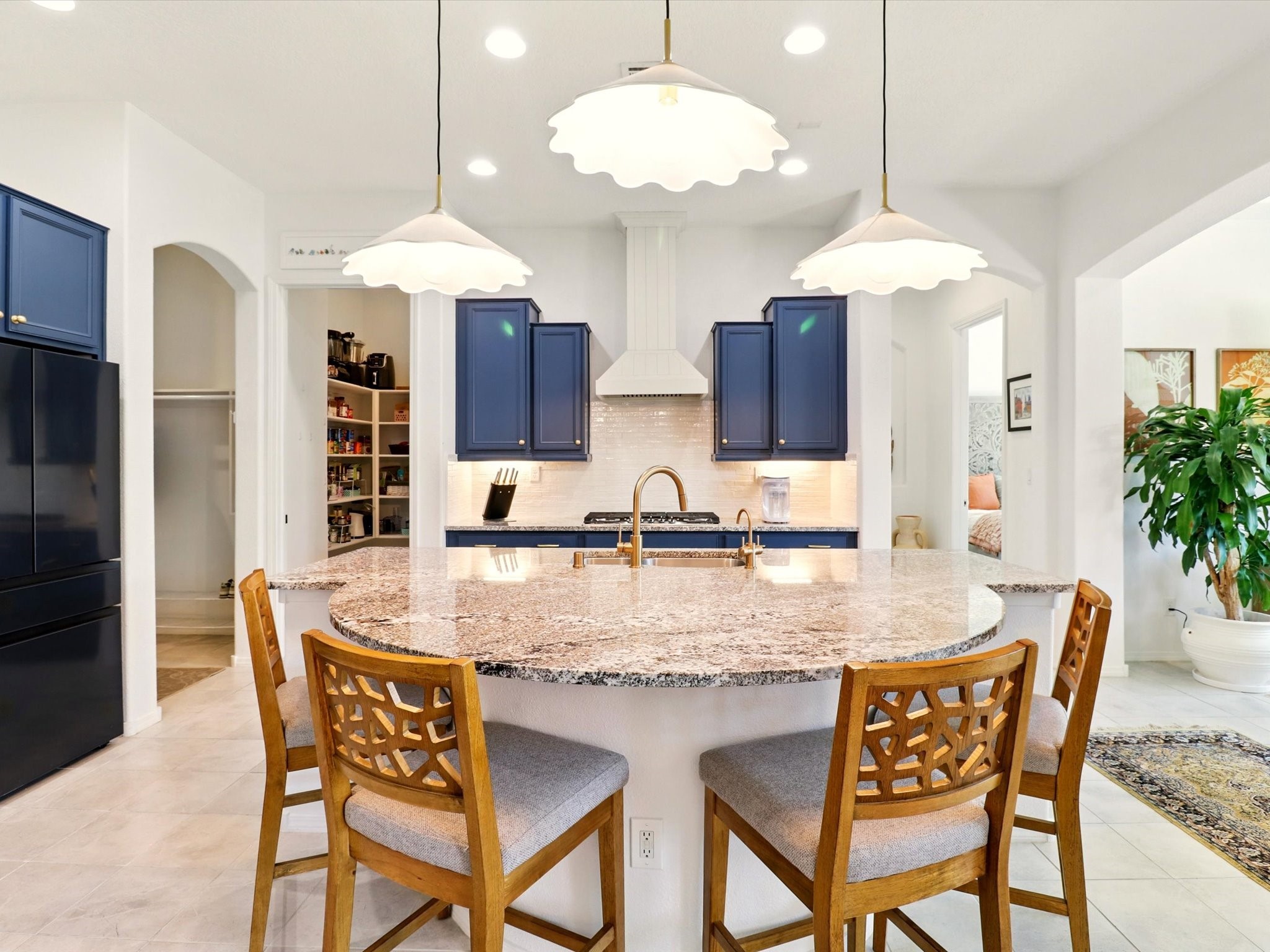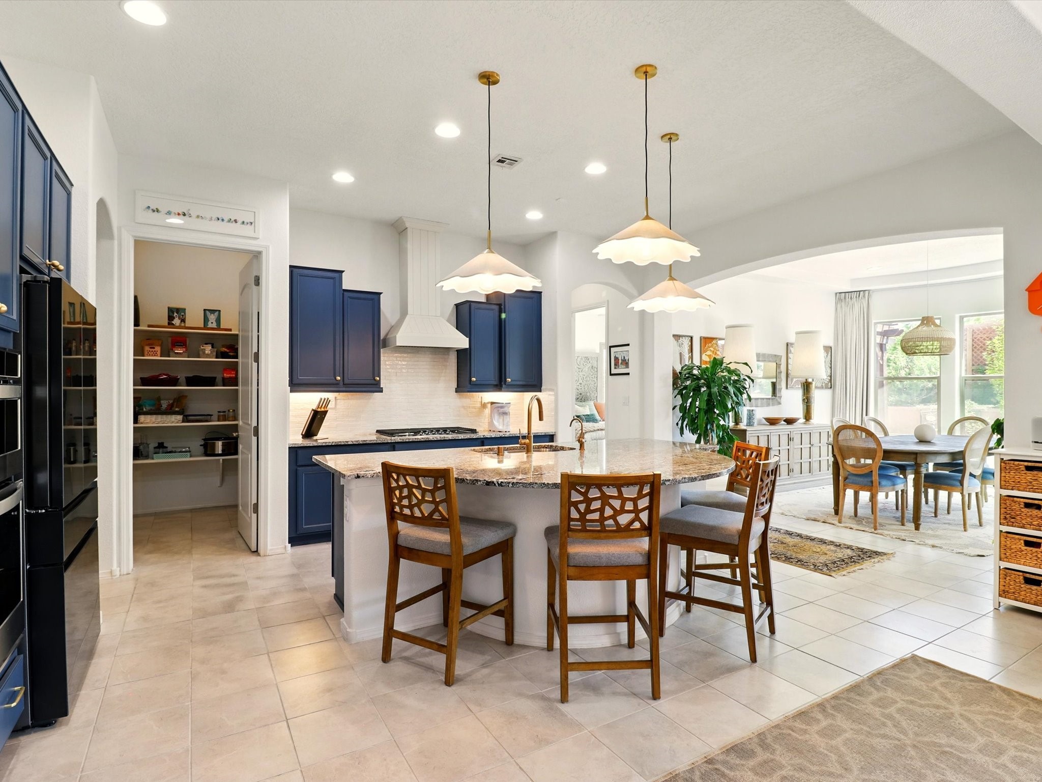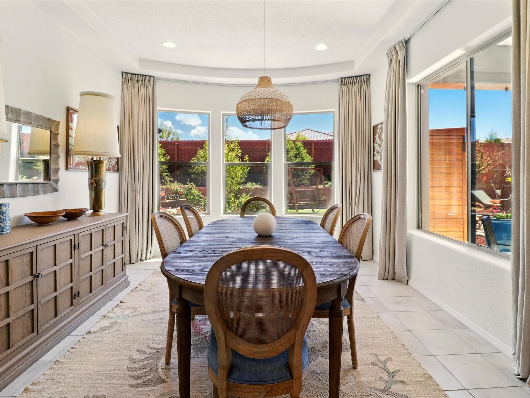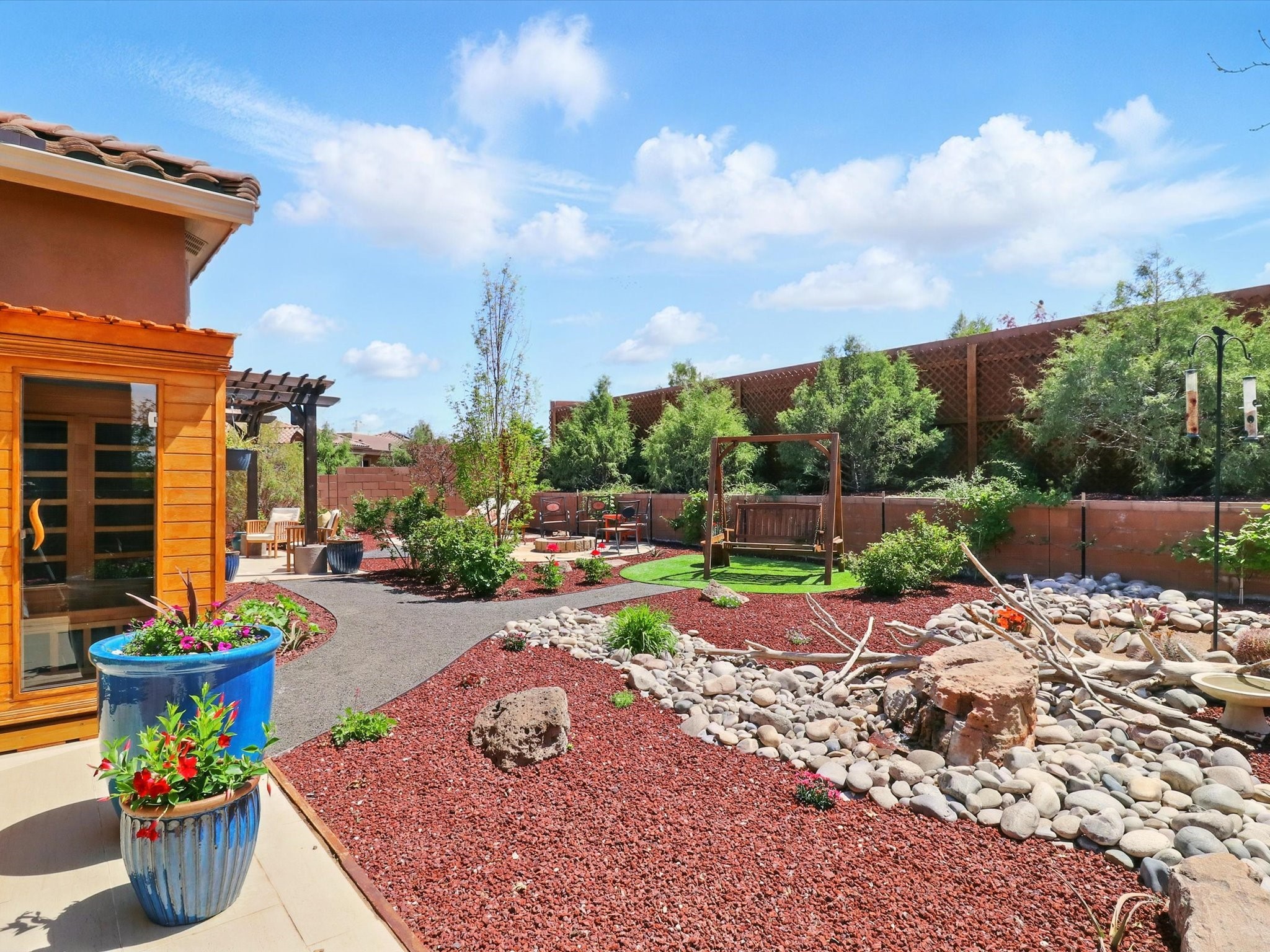 Welcome to a perfect blend of style and functionality in this beautifully appointed 3-bedroom, 2-bath home located in the highly desirable Las Soleras community. From the moment you enter, you're welcomed by a bright, versatile flex room--ideal for a home office, studio, or den--setting the tone for the open-concept living space that follows.Soaked in natural light, the spacious living and dining areas flow seamlessly into a chef-inspired kitchen featuring an in-wall Whirlpool oven and microwave combo, a sleek Samsung refrigerator, gas stovetop, and ample cabinetry for all your storage needs. A large pantry adds even more convenience for the home cook or entertainer.The generously sized primary suite offers a peaceful retreat with added Custom sliding doors that lead directly to the backyard. Step outside into your own private haven--beautifully landscaped with gravel and greenery, and extended for true outdoor living with a built-in fireplace, perfect for Santa Fe evenings under the stars.Situated on a .23-acre lot with a two-car garage, this home offers space, comfort, and thoughtful upgrades throughout.