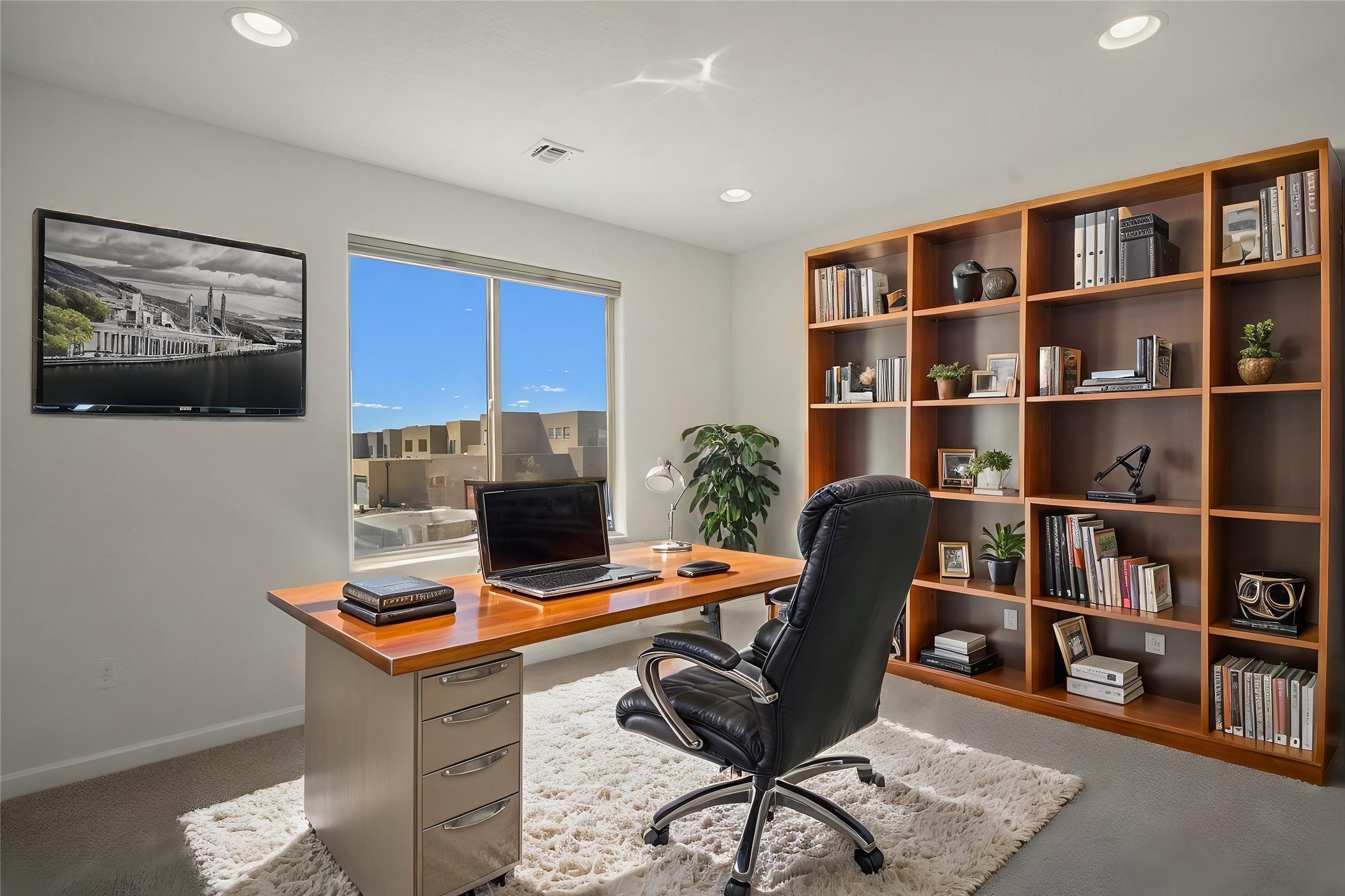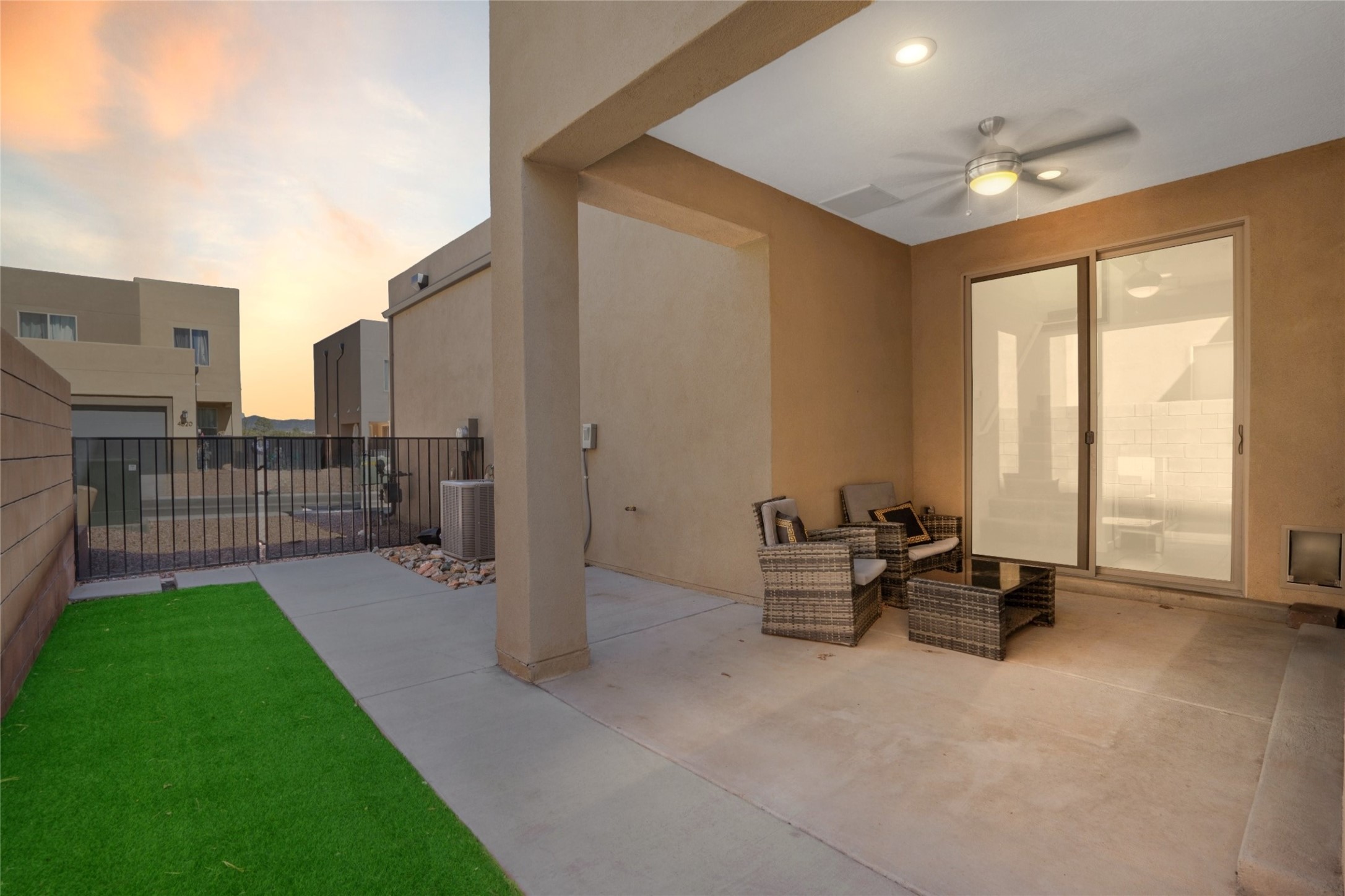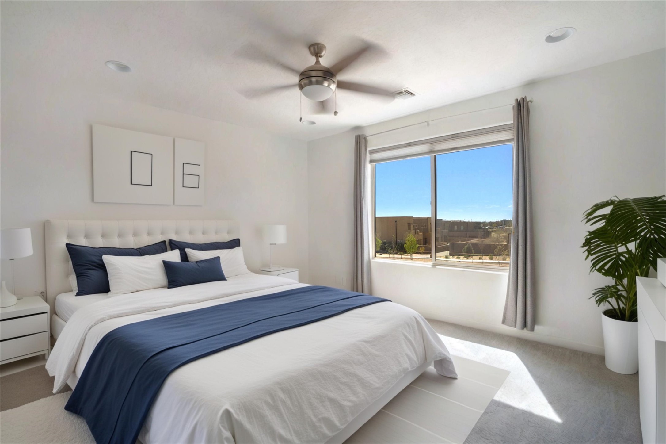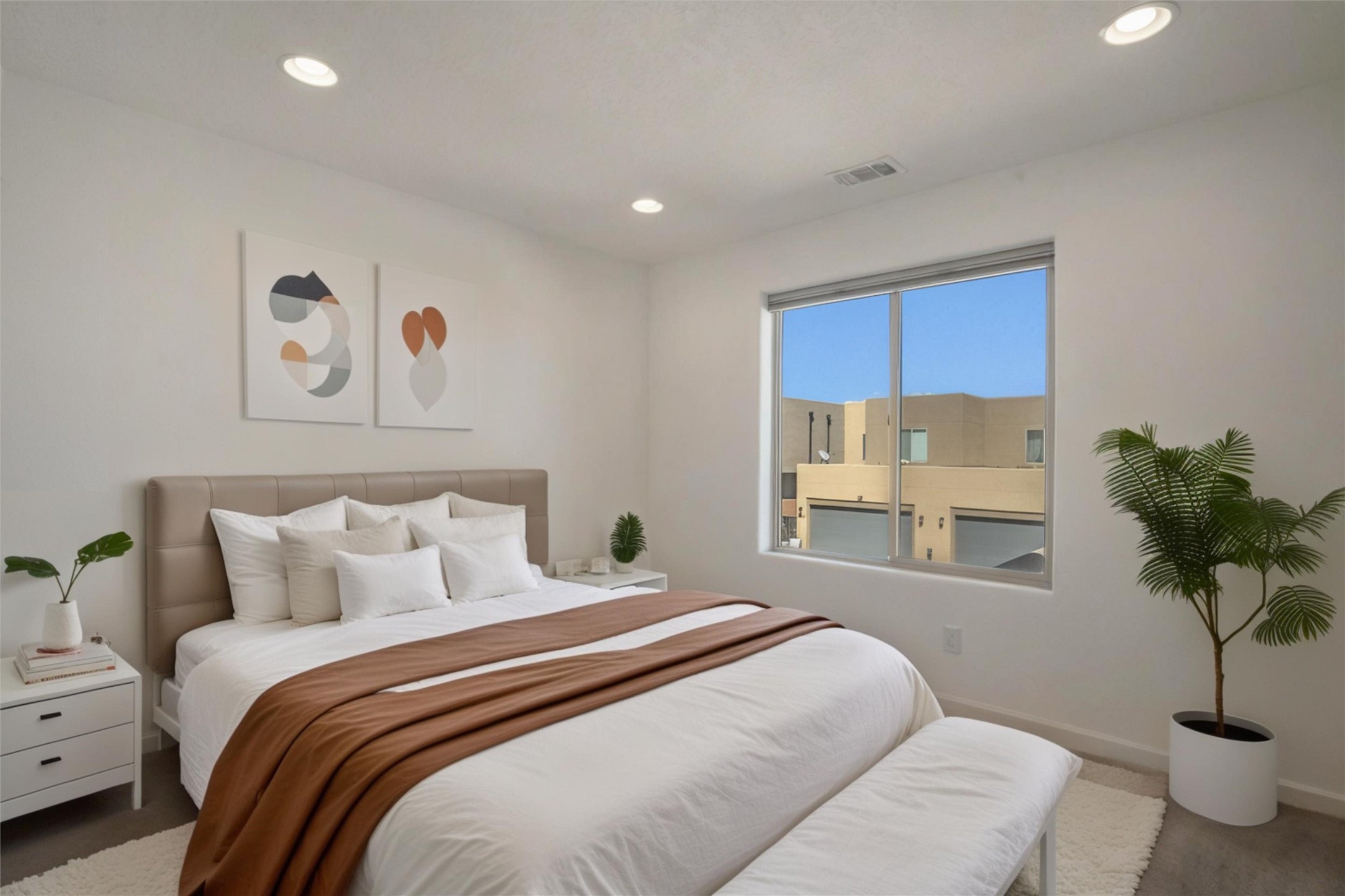 Discover modern living in the heart of Santa Fe's Villas de Los Soleras neighborhood. This recently built townhouse, constructed in 2020, offers a perfect blend of comfort and style. Spanning 2 stories and 1609sq ft, this home boasts 3 bedrooms & 2.5 baths, providing ample space for family living or entertaining guests. Step inside to find a thoughtfully designed interior, featuring tile & carpet flooring, creating an elegant & easy-to-maintain living space. The kitchen is a chef's delight, equipped with updated stainless-steel appliances that combine functionality with contemporary aesthetics. Embrace the New Mexico climate with a covered patio, perfect for outdoor relaxation or al fresco dining, as well as a walled yard. Convenience is key in this townhouse, with a 2-car garage providing secure parking & additional storage space. The home is equipped with gas-forced-air heating and central air-conditioning, ensuring year-round comfort regardless of the season. Located in a vibrant community, residents can enjoy nearby amenities such as Villa Linda Park, just a short distance away, offering green spaces for recreation & relaxation. For those who love shopping, Santa Fe Place Mall is conveniently close, providing a variety of retail options. This townhouse represents the perfect opportunity to experience contemporary living in a desirable Santa Fe location. With its modern features, spacious layout, and proximity to local attractions, this home is ideal for those seeking a comfortable and convenient lifestyle in the enchanting Southwest.