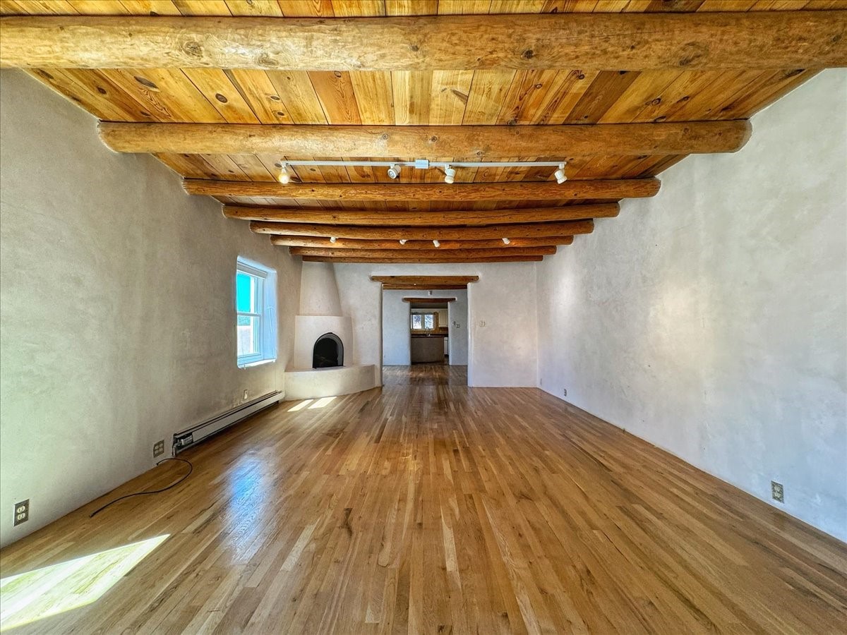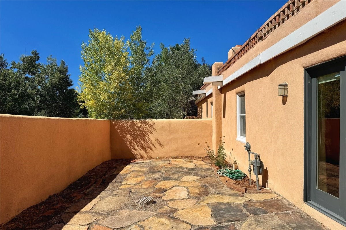 Charming Historic Adobe Home in Santa Fe's East SideNestled in the heart of Santa Fe's coveted historic Eastside, this classic territorial style, all-adobe home, built in the 1900s, offers timeless character and exceptional location. Just a short stroll from iconic Canyon Road, this unique property includes a beautifully maintained main residence and a detached casita, large basement with bathroom and 5 parking spaces. Main house is two bedrooms, 2 baths with kiva fireplace, original wood floors, plaster walls and traditional viga ceilings that exudes Santa Fe style. The brick-floored portal and multiple patios with adobe walls offer lovely options for outdoor living areas. Main house also features an 885 sq ft basement with separate exterior entrance, bathroom and multiple rooms for added possibilities for studio, office or remodel into living space.Property also includes a detached two-bedroom, one-bath casita--perfect for guests or as a proven income-producing rental - with a remodeled contemporary kitchen and utilities separately metered.This rare find blends convenience with traditional Southwestern charm and is a truly special opportunity to own a piece of Santa Fe history with strong rental potential and unbeatable walkability.Price subject to existing lienholder for short sale.