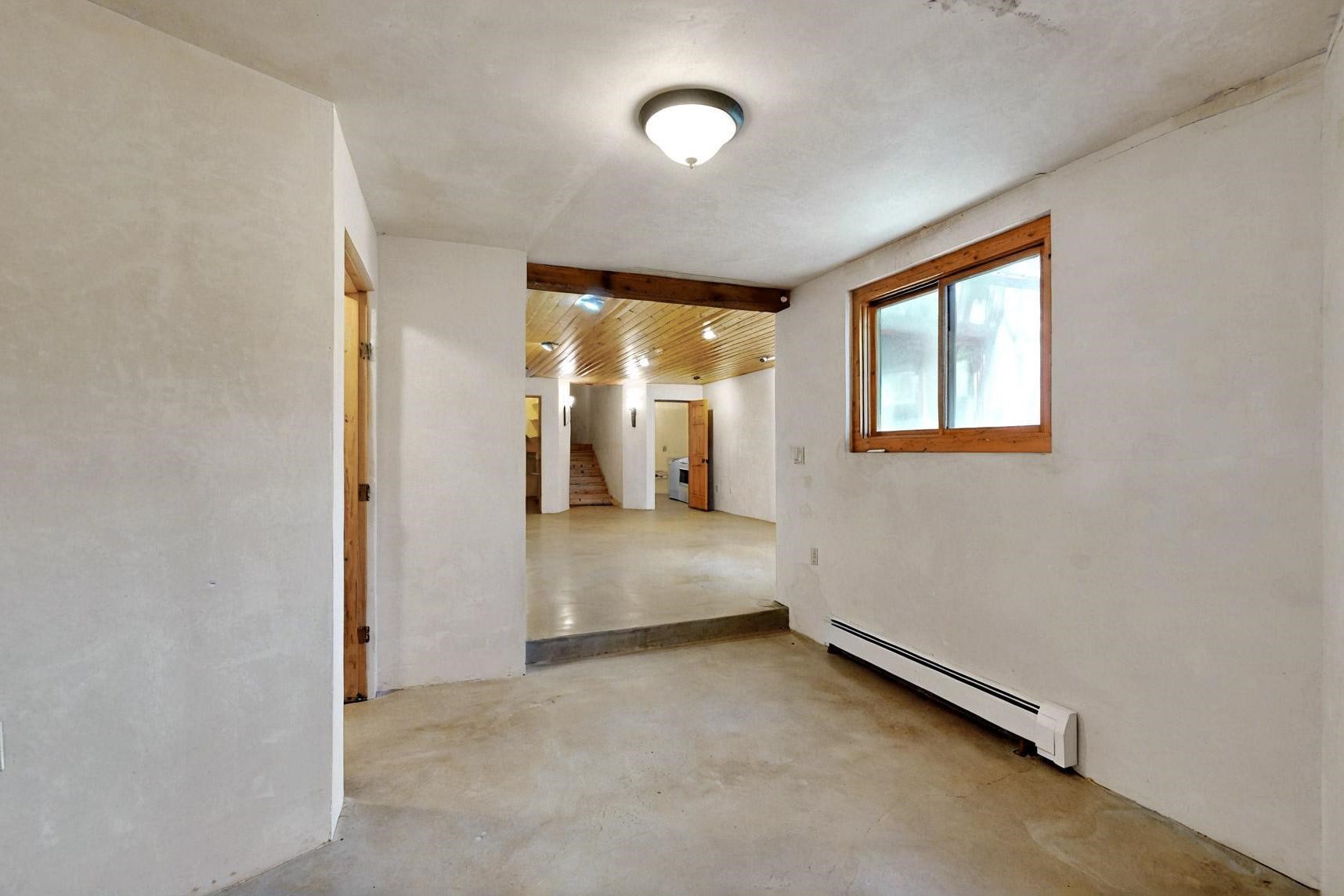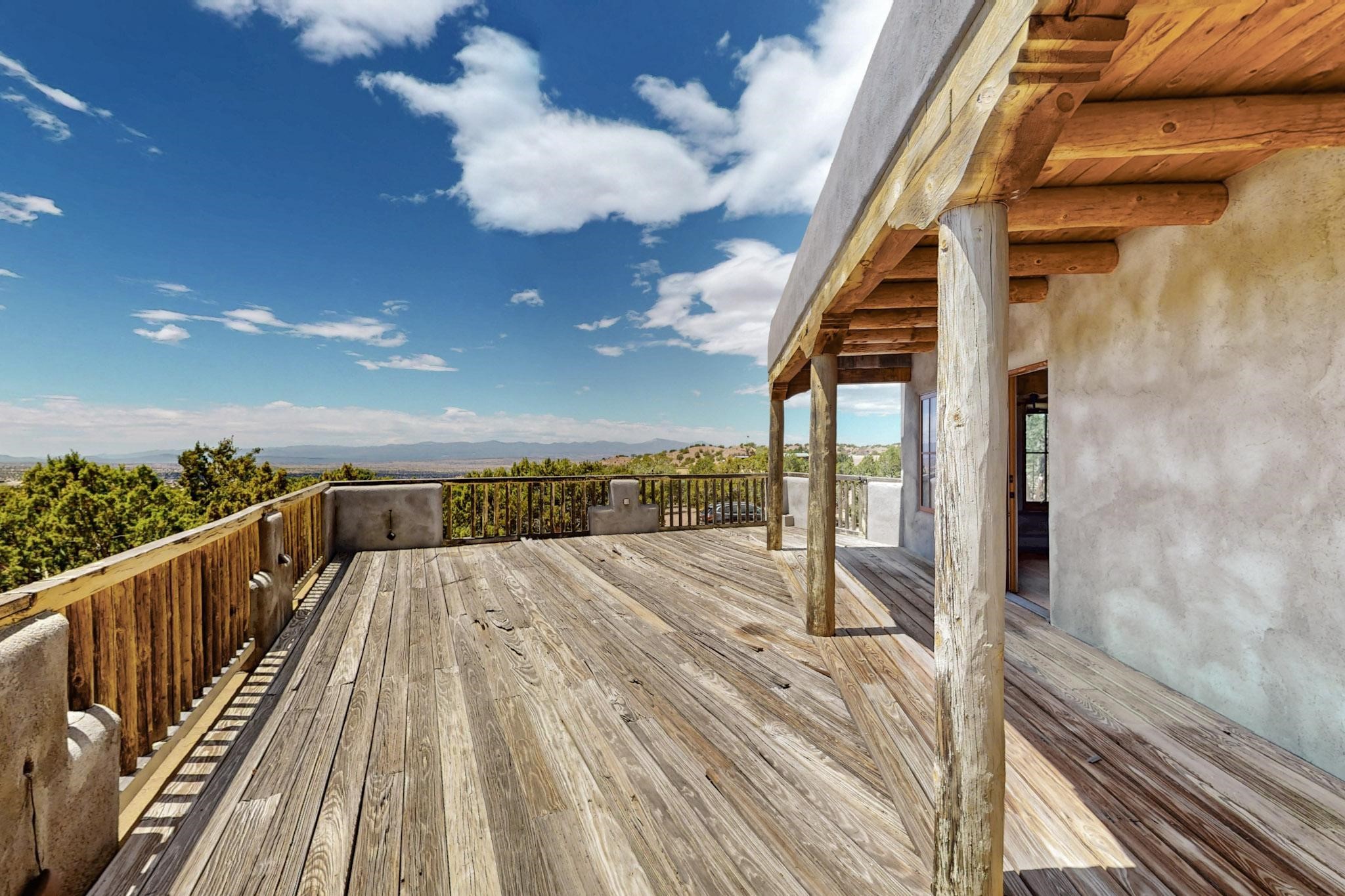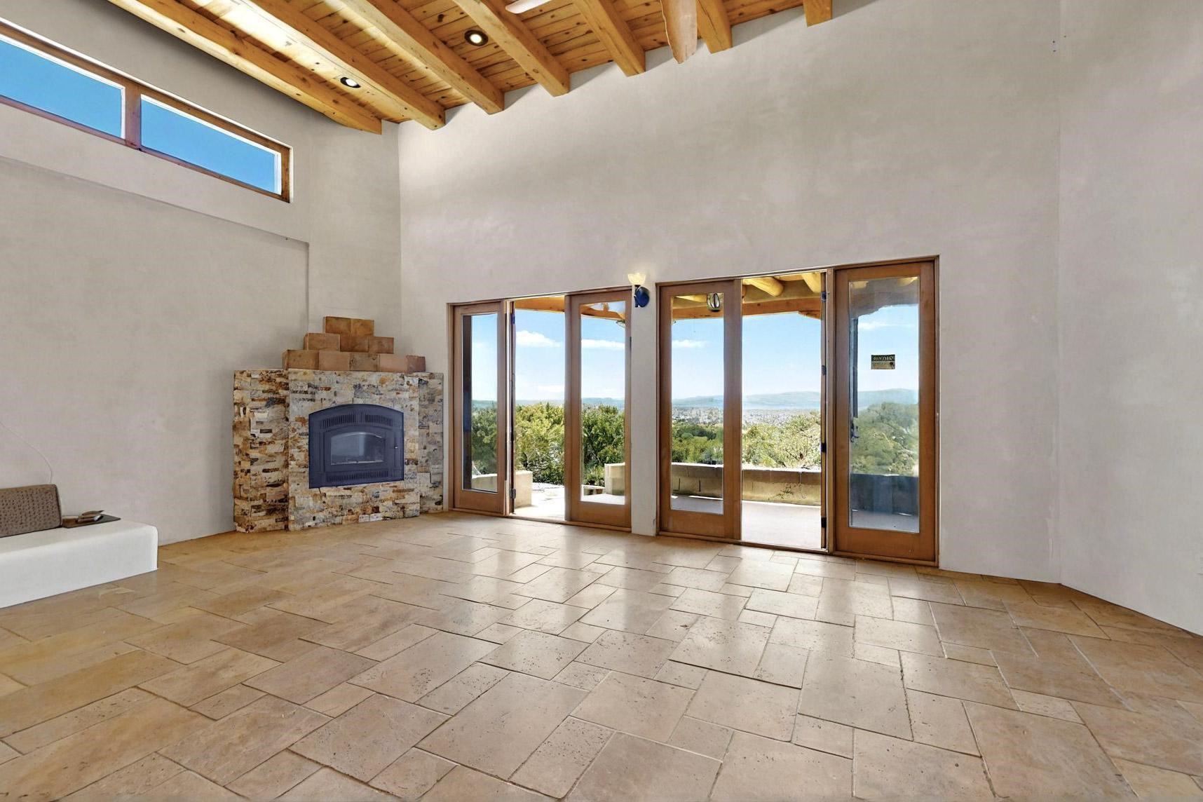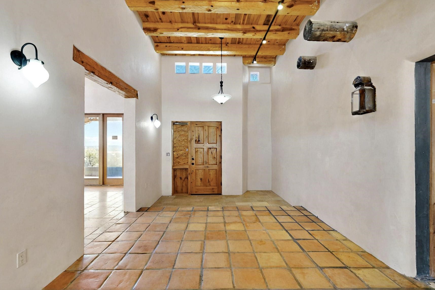 Contractors and Investors - Exceptional Opportunity. Discover endless potential at 5 Camino Sin Ganas, a unique and spacious property nestled in the peaceful and picturesque community of Tesuque. Situated on a 1.91-acre lot, this residence offers 4,522 square feet of living space--an ideal canvas for investors, contractors, or anyone looking to renovate or customize a home to their vision. The heart of the home is the expansive great room, showcasing soaring 16-foot ceilings, clerestory windows, and elegant French doors that flood the space with natural light. From here, take in stunning mountain and high-desert views, perfectly framed by the home's elevated position and carried through to the side view deck, ideal for outdoor relaxation or entertaining. Interior highlights include in-floor radiant heating, a mix of wood and tile flooring, and plastered walls throughout. Additional features include a two-car garage and a side viewing deck off both the primary suite and a secondary bedroom. This is a rare opportunity to invest in one of Tesuque's most sought-after areas. Whether you're restoring, remodeling, or reimagining, 5 Camino Sin Ganas is ready for your vision.