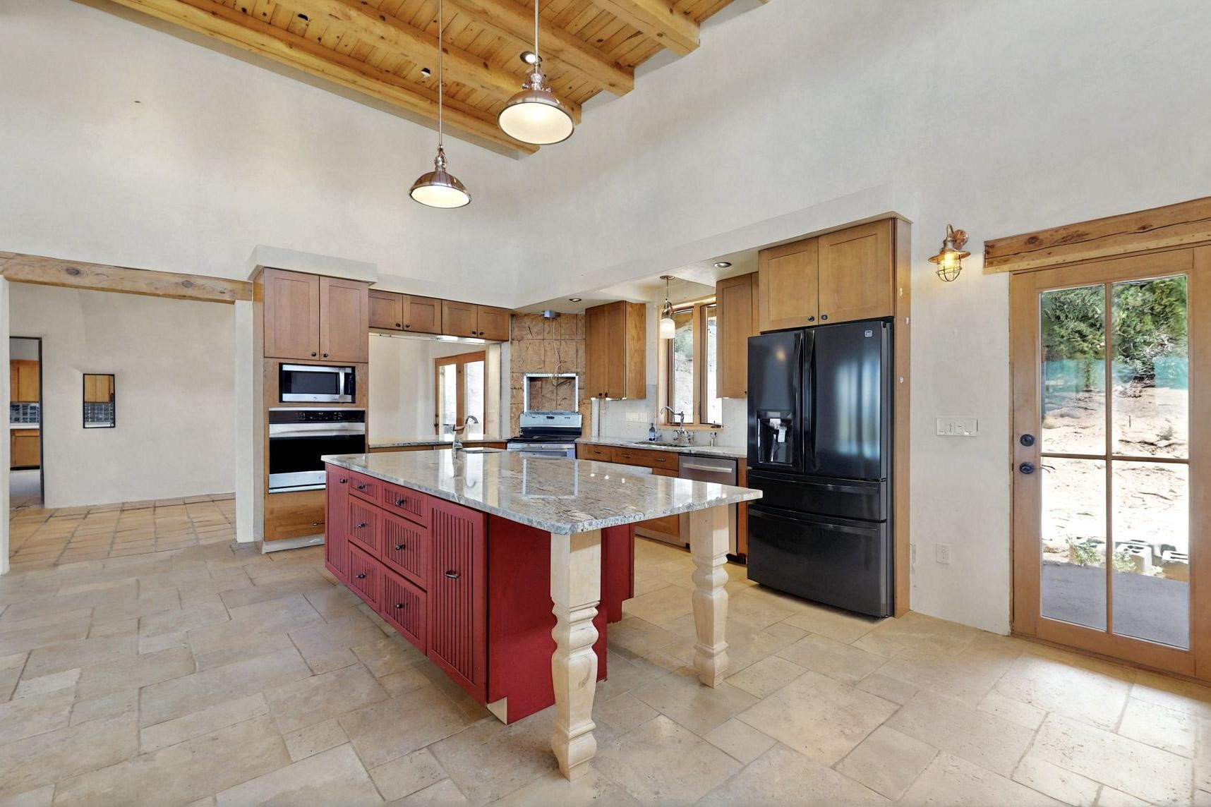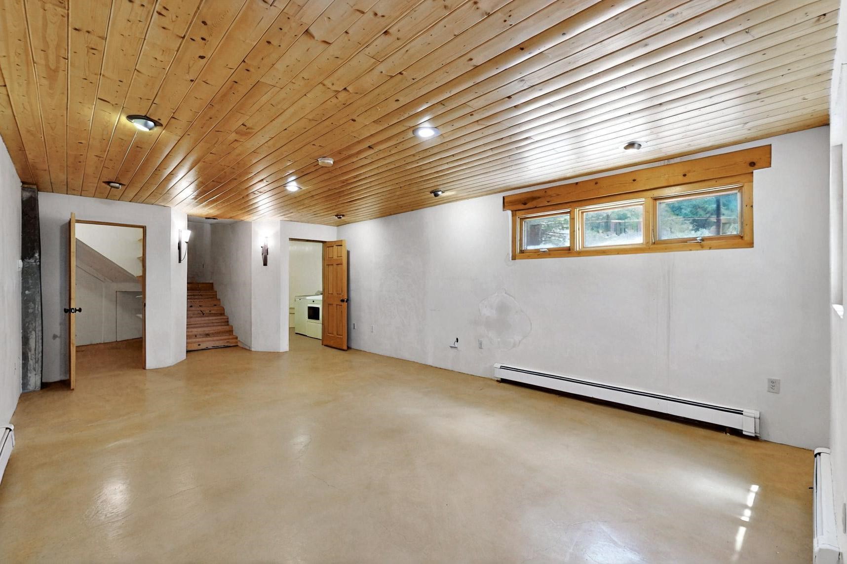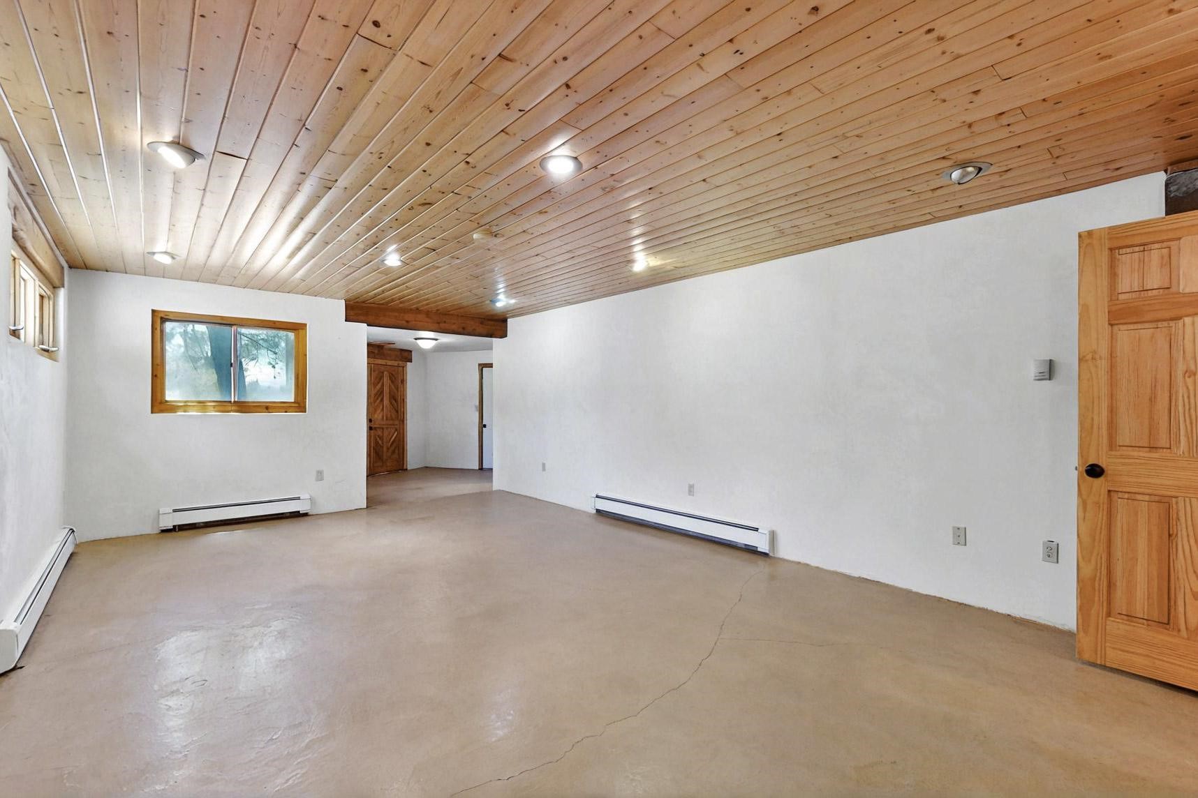 Contractors and Investors - Exceptional Opportunity. Discover endless potential at 5 Camino Sin Ganas, a unique and spacious property nestled in the peaceful and picturesque community of Tesuque. Situated on a 1.91-acre lot, this residence offers 4,522 square feet of living space--an ideal canvas for investors, contractors, or anyone looking to renovate or customize a home to their vision. The heart of the home is the expansive great room, showcasing soaring 16-foot ceilings, clerestory windows, and elegant French doors that flood the space with natural light. From here, take in stunning mountain and high-desert views, perfectly framed by the home's elevated position and carried through to the side view deck, ideal for outdoor relaxation or entertaining. Interior highlights include in-floor radiant heating, a mix of wood and tile flooring, and plastered walls throughout. Additional features include a two-car garage and a side viewing deck off both the primary suite and a secondary bedroom. This is a rare opportunity to invest in one of Tesuque's most sought-after areas. Whether you're restoring, remodeling, or reimagining, 5 Camino Sin Ganas is ready for your vision.