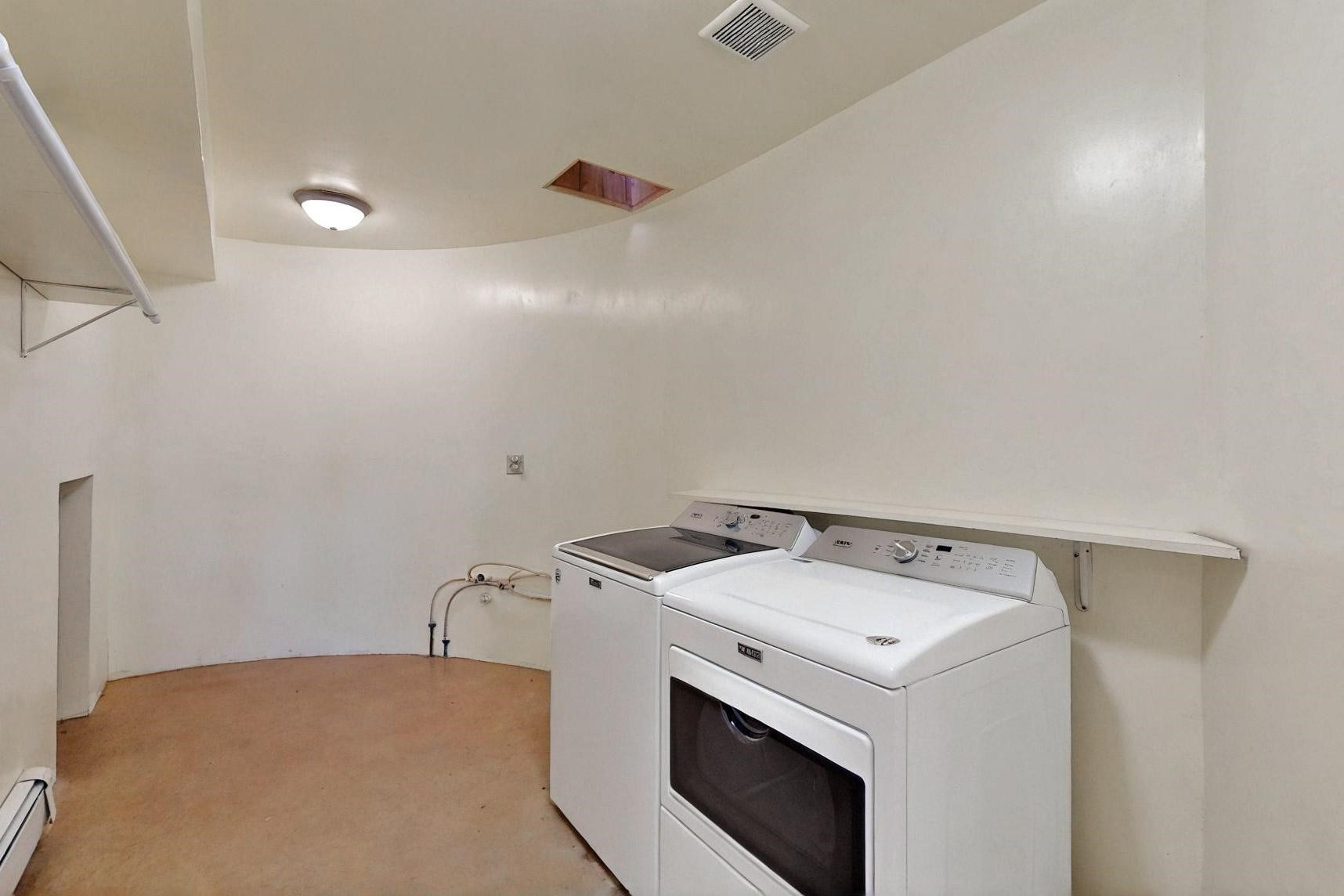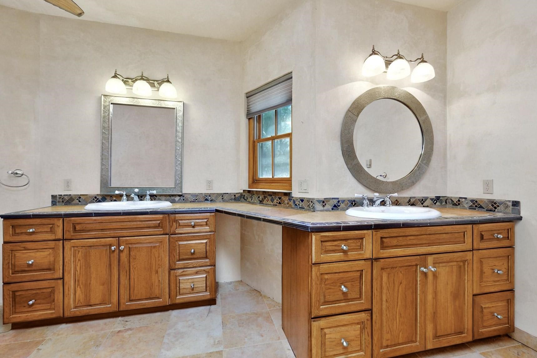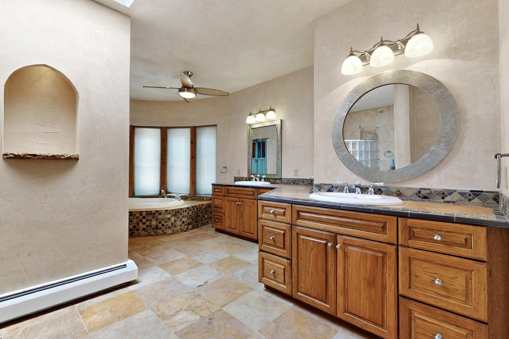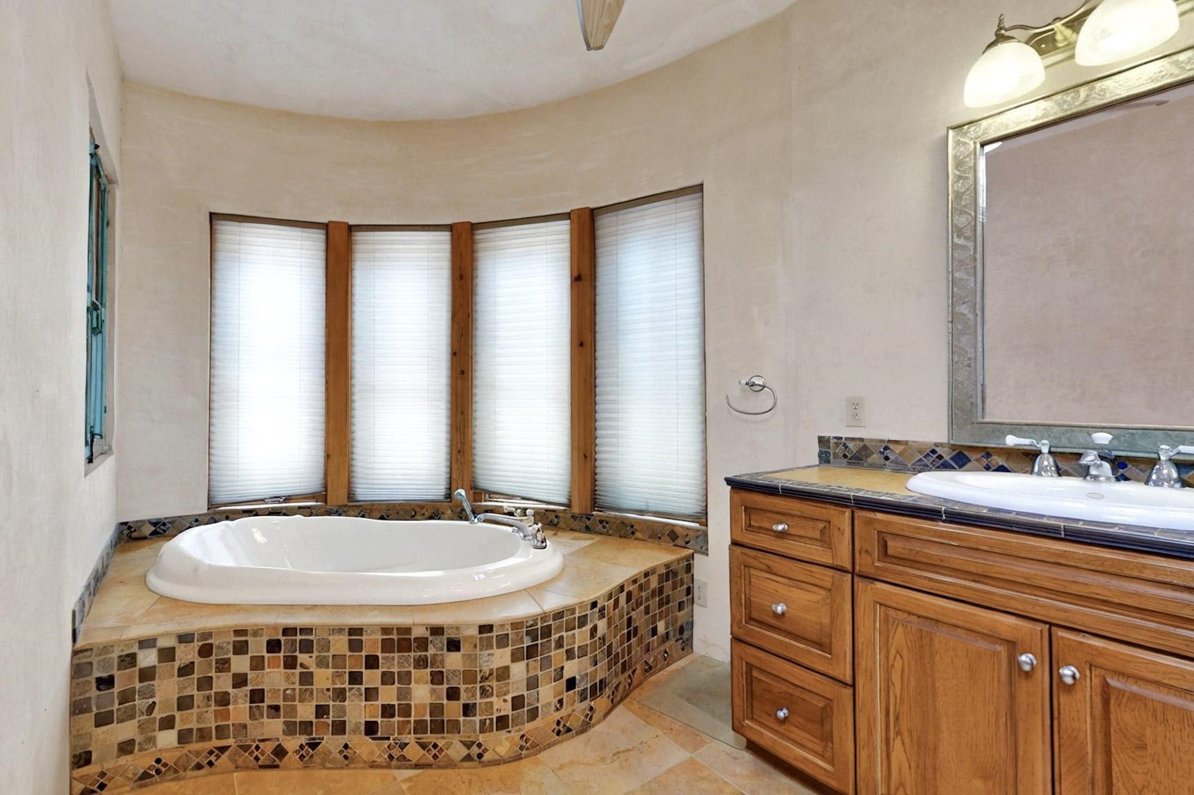 Contractors and Investors - Exceptional Opportunity. Discover endless potential at 5 Camino Sin Ganas, a unique and spacious property nestled in the peaceful and picturesque community of Tesuque. Situated on a 1.91-acre lot, this residence offers 4,522 square feet of living space--an ideal canvas for investors, contractors, or anyone looking to renovate or customize a home to their vision. The heart of the home is the expansive great room, showcasing soaring 16-foot ceilings, clerestory windows, and elegant French doors that flood the space with natural light. From here, take in stunning mountain and high-desert views, perfectly framed by the home's elevated position and carried through to the side view deck, ideal for outdoor relaxation or entertaining. Interior highlights include in-floor radiant heating, a mix of wood and tile flooring, and plastered walls throughout. Additional features include a two-car garage and a side viewing deck off both the primary suite and a secondary bedroom. This is a rare opportunity to invest in one of Tesuque's most sought-after areas. Whether you're restoring, remodeling, or reimagining, 5 Camino Sin Ganas is ready for your vision.