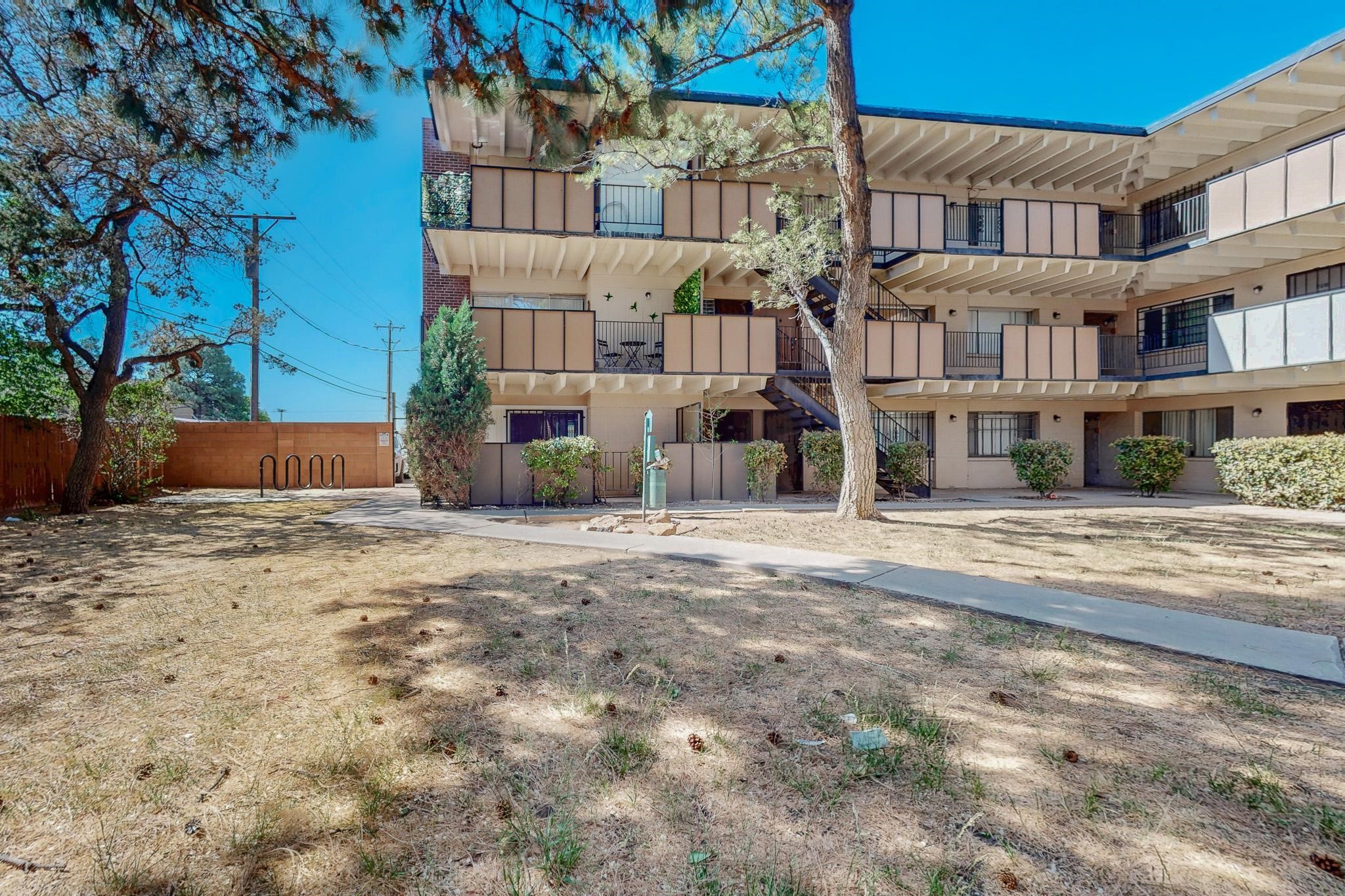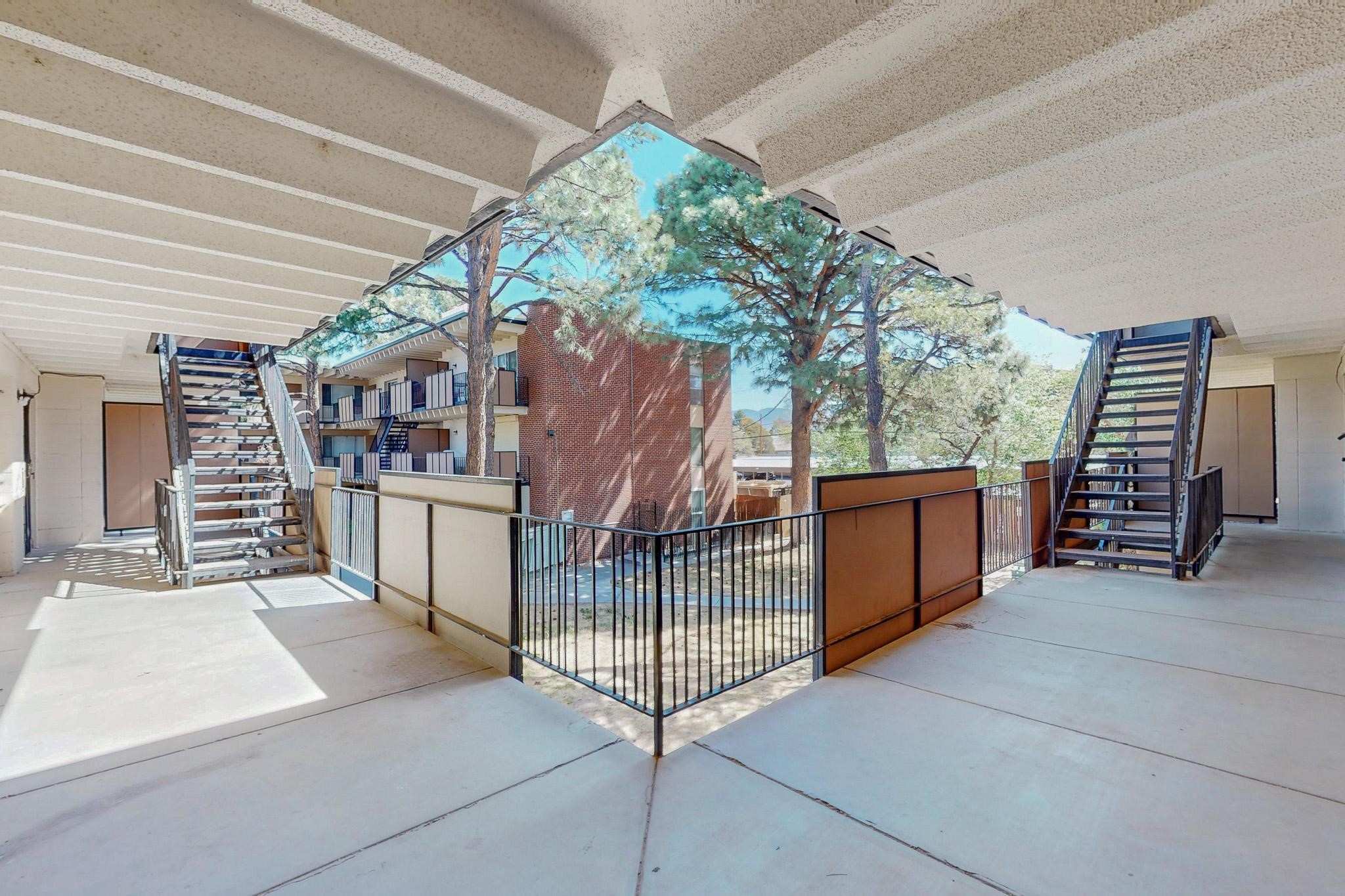 All utilities (except electric) covered by HOA! Explore the comfort and convenience of condo living at Moana Condominiums! This well-kept unit features two spacious bedrooms and an updated full bathroom with modern tile flooring and a stylish vanity. The large eat-in kitchen opens to the living room, making it great for everyday living or hosting guests. Step outside onto the private balcony to enjoy some fresh air. A washer and dryer are included for added ease. The gated community offers resident-only parking, and a central courtyard. Located just minutes from Kirtland Air Force Base, the airport, and downtown Albuquerque, this condo is perfectly positioned for work or play.