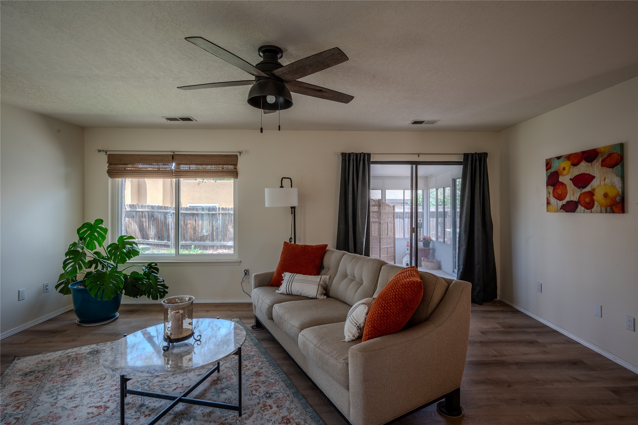 Blissfully snuggled in a cul de sac just around the corner from a lovely park, this single level home has a pitched roof and semi open floor plan. One of the 3 bedrooms is currently an office with double doors. Recent Stucco and roof maintenance done. In addition to the 1600 square feet of living space there is a generous sunroom off the livingroom. This home is lovely and a must see. Call today.