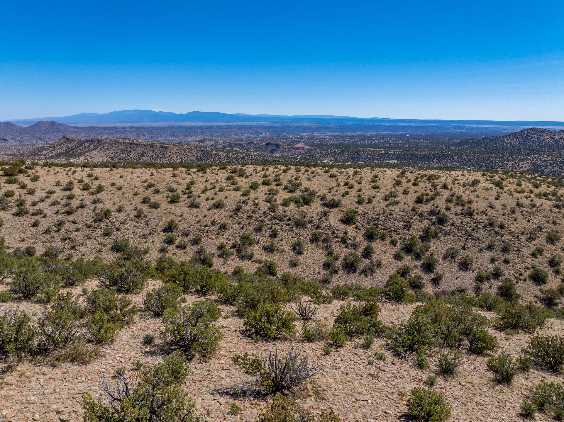 Two hundred and thirty mountain top acres with a PVC dome featuring all modern conveniences near Madrid. On two lots with two wells, this private getaway awaits the adventurous soul who wants to get above it all while still being connected. With 360 degree views from the mountain top, and the dome sited on a slope with amazing views of the Sangre de Cristo's, buyers will find this to be an incomparable view property. This far out, the Milky Way will shine bright, and the wood fired hot tub is the perfect place to stargaze from after a day of exploring the mountain. The dome has a small kitchen, bathroom, loft storage area, mini-split for heating and cooling, a luxurious glamping hideout or a cozy full time home. The solar system is modern and robust, and sewage is handled by an innovative bio-gas system. Closer than it feels, the property is just a half mile from the pavement, but that half mile is a steep and rocky climb, and a 4x4 with some clearance is recommended.