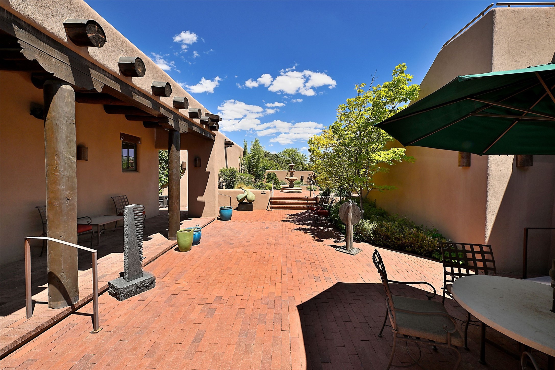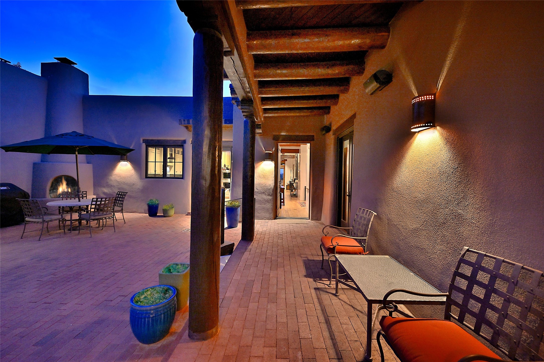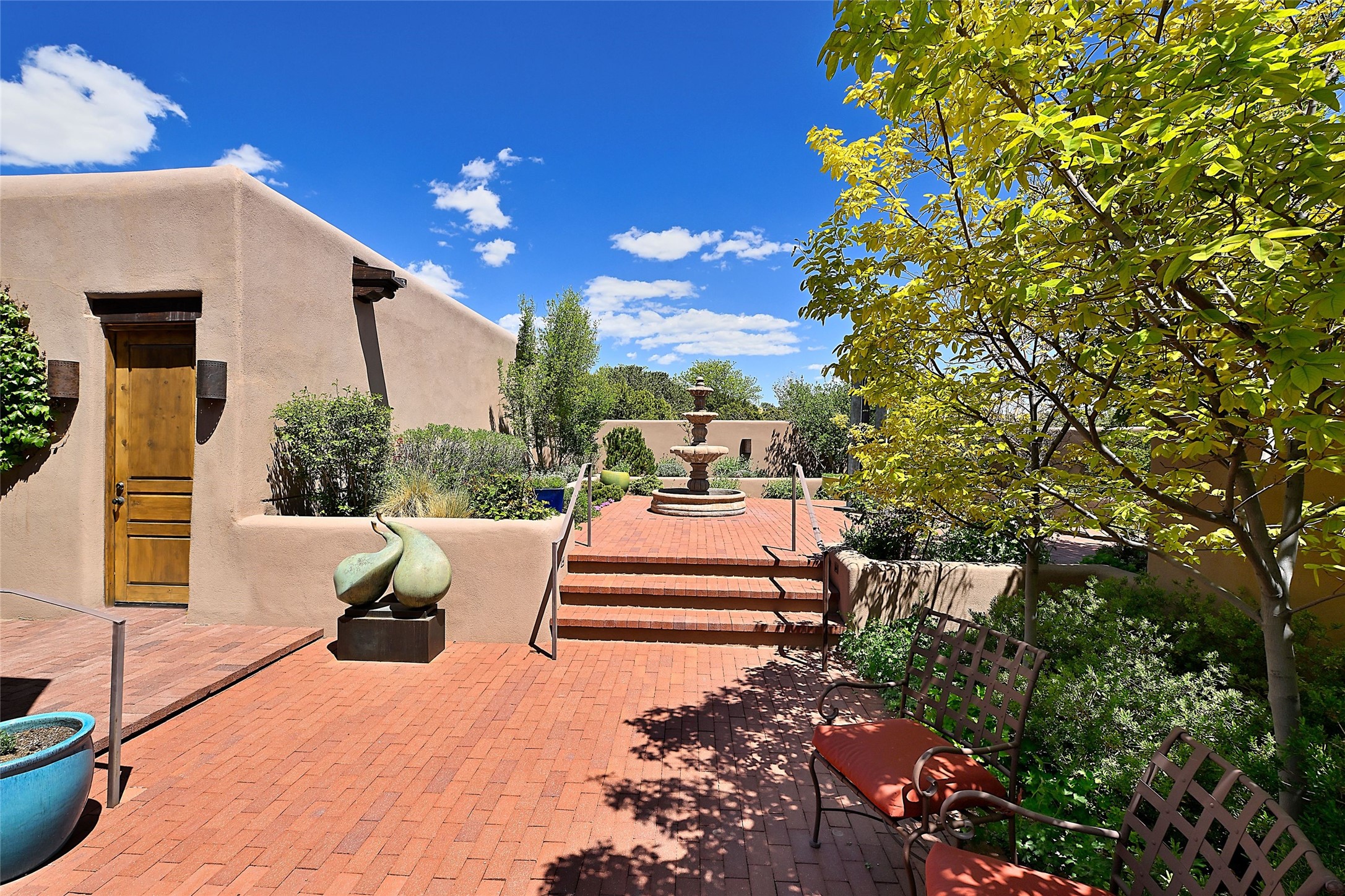 Sited on a scenic hill, this charming New Mexico residence offers breathtaking views and the perfect blend of privacy, comfort, and timeless Southwestern appeal. Surrounded by stunning, low-maintenance gardens and multiple outdoor spaces, this property invites you to relax and soak in the incredible weather and spectacular sunsets. Portals and patios wrap the home, creating a seamless flow between indoor and outdoor living. Whether you're enjoying a quiet morning coffee or entertaining guests under the vast, clear blue skies, every corner is thoughtfully designed for comfort and connection with the outdoors. Inside, the expansive primary suite is a true retreat, featuring two generous walk-in closets and a luxurious bath. A well-appointed guest suite offers ample closet space and a cozy office nook, ideal for working or unwinding. The kitchen is up to the minute in fittings and function while retaining authentic New Mexico charm. It opens to a vast patio and garden area, creating an ideal space for alfresco dining and gatherings. Adding to the property's appeal is a separate casita, complete with a mini kitchen and bath--perfect for guests, extended family, or creative studio use. This exceptional hilltop home offers beauty, serenity, and true New Mexican character at every turn.