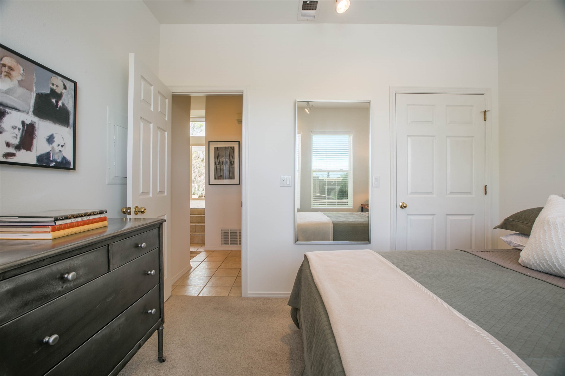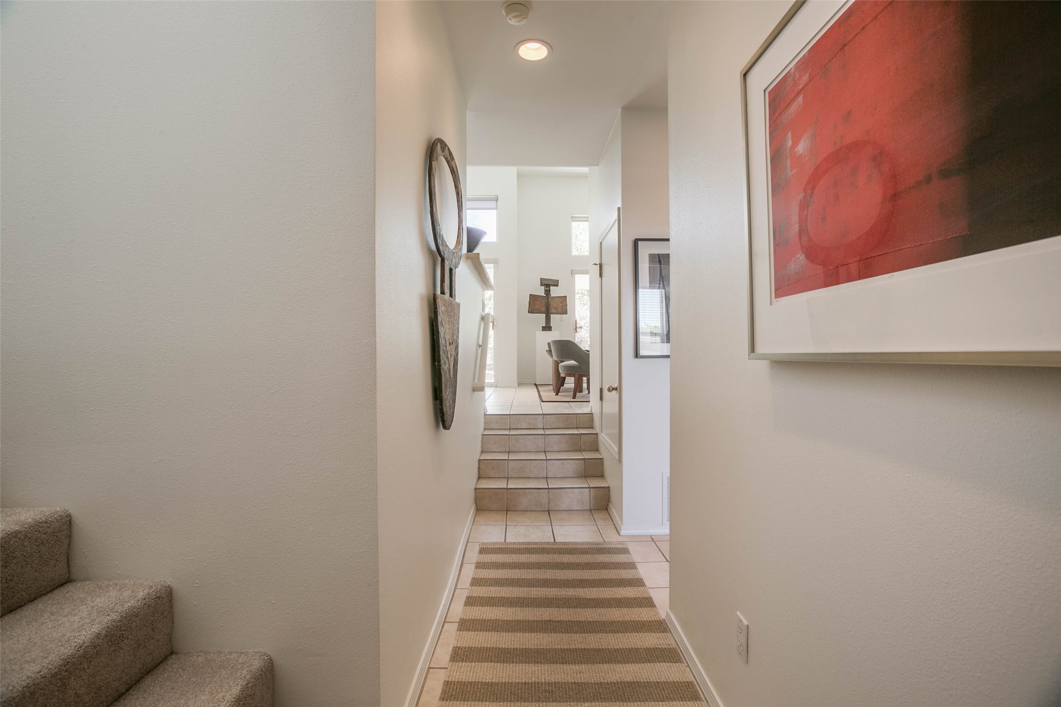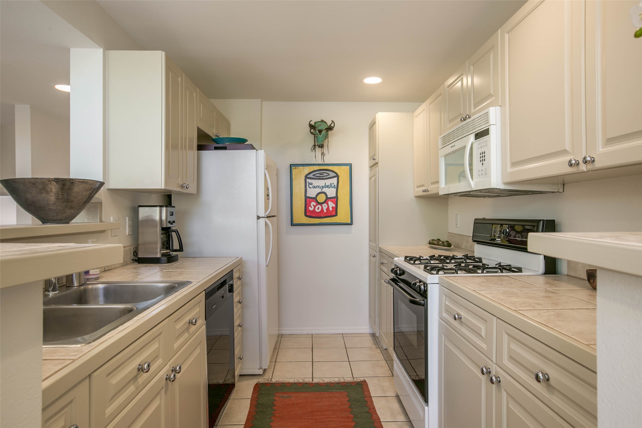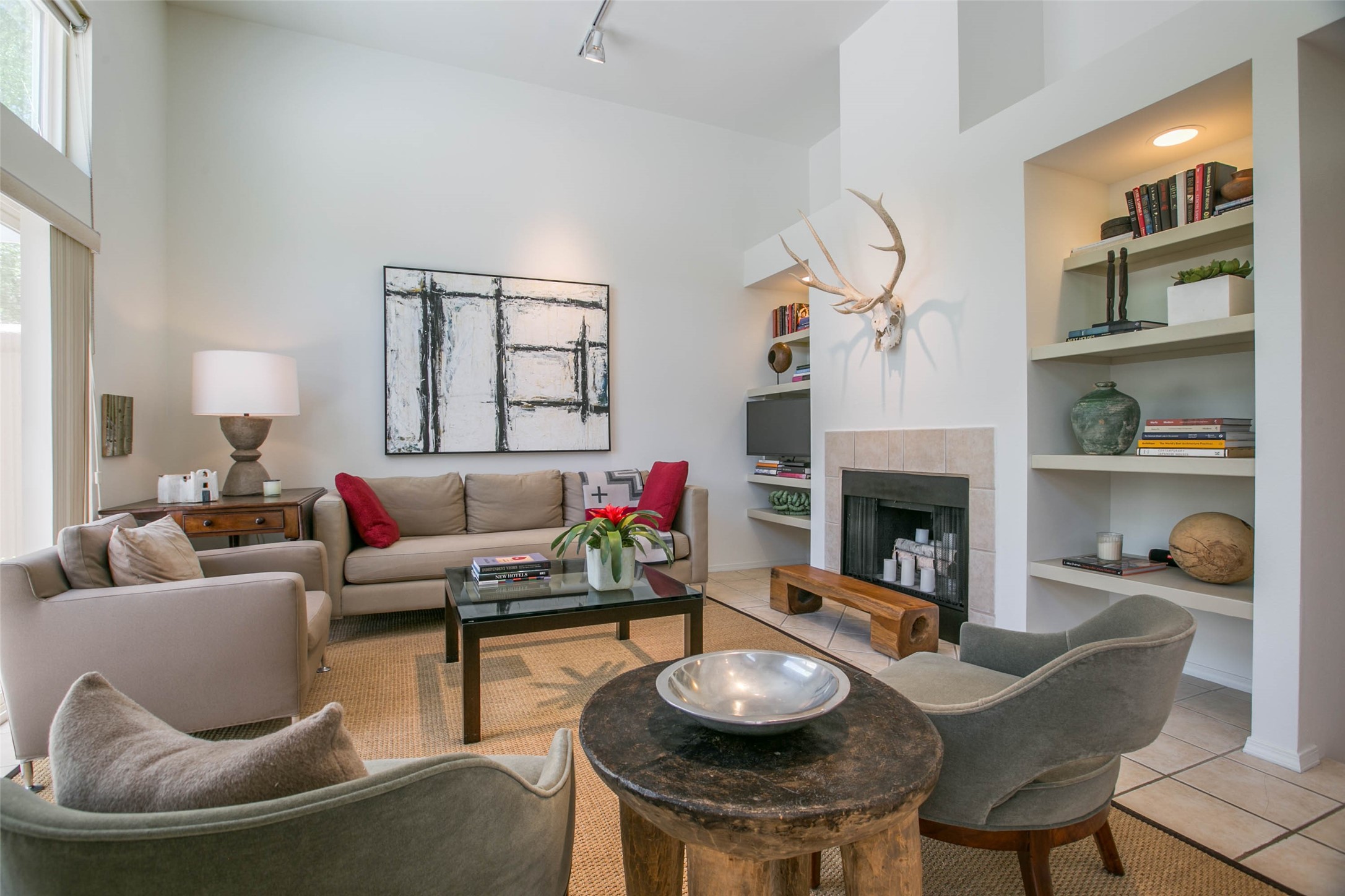 Price now includes all interior and exterior furnishings, This condo is a gem! Its location near the historic downtown district and Fort Marcy Park, along with the nearby hiking trails, shopping, and dining options, makes it a prime spot for leisure and convenience. The natural light flowing into the unit and the double patio doors leading to a cozy outdoor space with views offer a delightful living experience. With two spacious bedrooms, each with a walk-in closets, 2 full bathrooms, and a washer dryer set-up, this home provides comfort and practicality. The open layout of the main floor living area, complete with raised ceilings and a kitchen overlooking the living space with fireplace, adds to the charm of the property. The inclusion of tile floors, carpeted bedrooms, and a luxury feel throughout the home creates a comfortable and inviting atmosphere. Additionally, all furniture, dcor, artwork, and essentials for a "lock and leave" home adds further convenience for potential buyers. Steel sculpture outside does not convey. One private covered parking space and additional parking is available. It sounds like an ideal place for anyone seeking a private and luxurious living space in Historic Santa Fe!