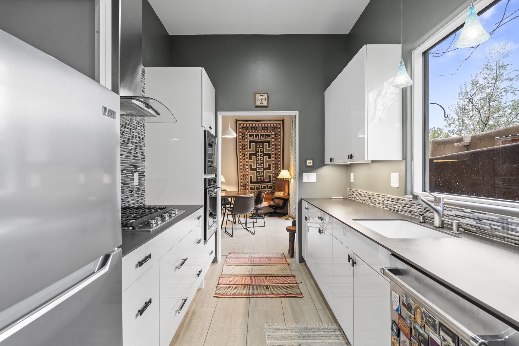 Welcome to your Santa Fe sanctuary, perfectly situated just minutes from the heart of Santa Fe. Enjoy unparalleled access to the historic Plaza, the world renowned Canyon Road art district, and the peaceful waterfalls along the Santa Fe River Trail. This home offers the rare blend of convenience and serenity, tucked away in one of the city's most sought after and walkable neighborhoods.Inside, you'll find classic Santa Fe style with thoughtful, modern updates throughout--wood beam ceilings, warm plaster walls, and stylish fixtures that add a contemporary edge while honoring the region's heritage. Natural light fills the space, creating a warm and inviting ambiance.Step outside into a tranquil backyard retreat, Zen-like setting designed for relaxation and reflection. Whether you're sipping your morning coffee, hosting a sunset dinner, or simply unwinding this is a serene backyard. This is more than a home, It's a lifestyle. A perfect blend of culture, comfort, and calm, all in the center of Santa Fe's most iconic surroundings.Absolutely amazing Investment property as well, please ask the Listing Agent about Rental Spread.
