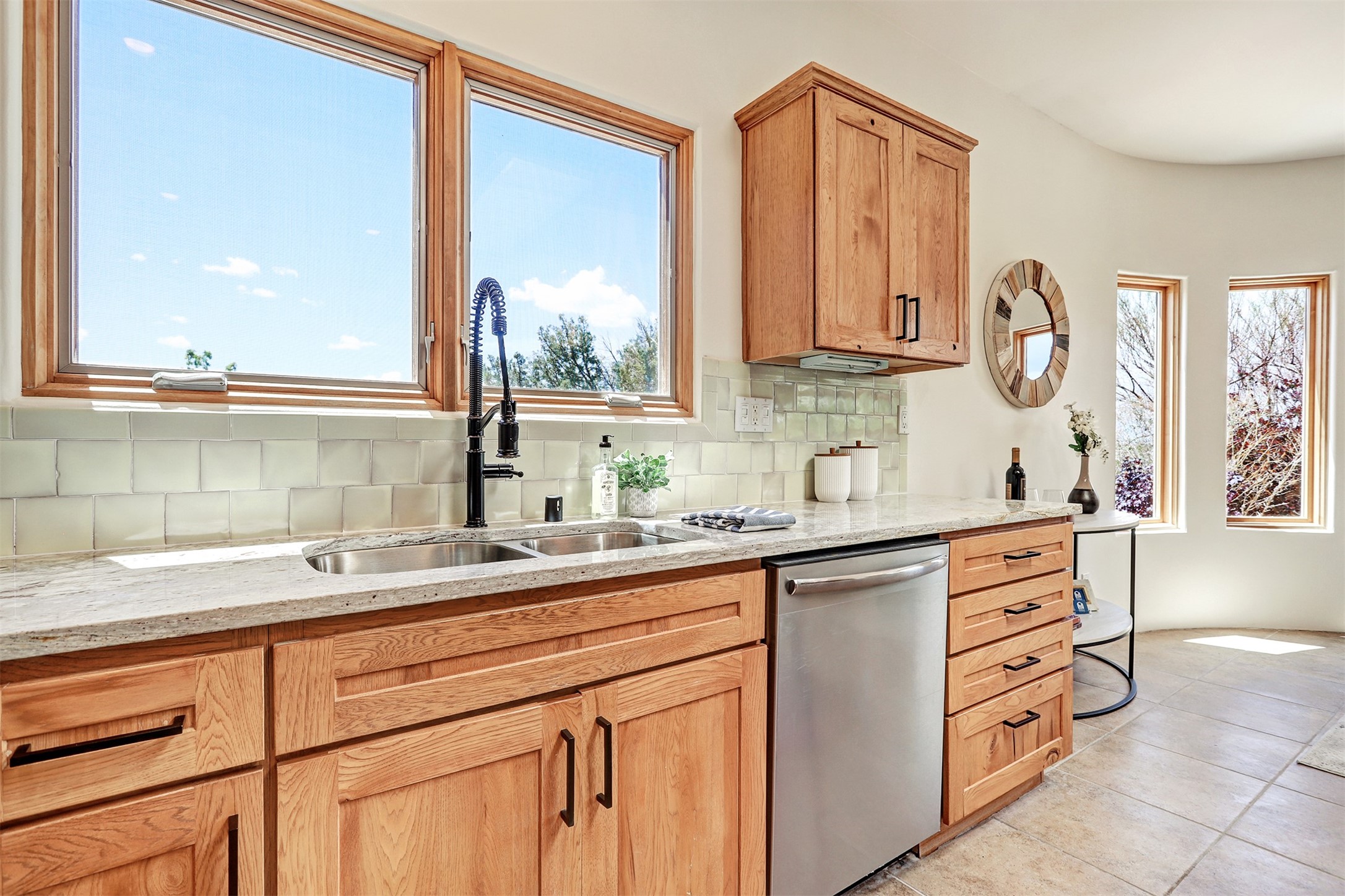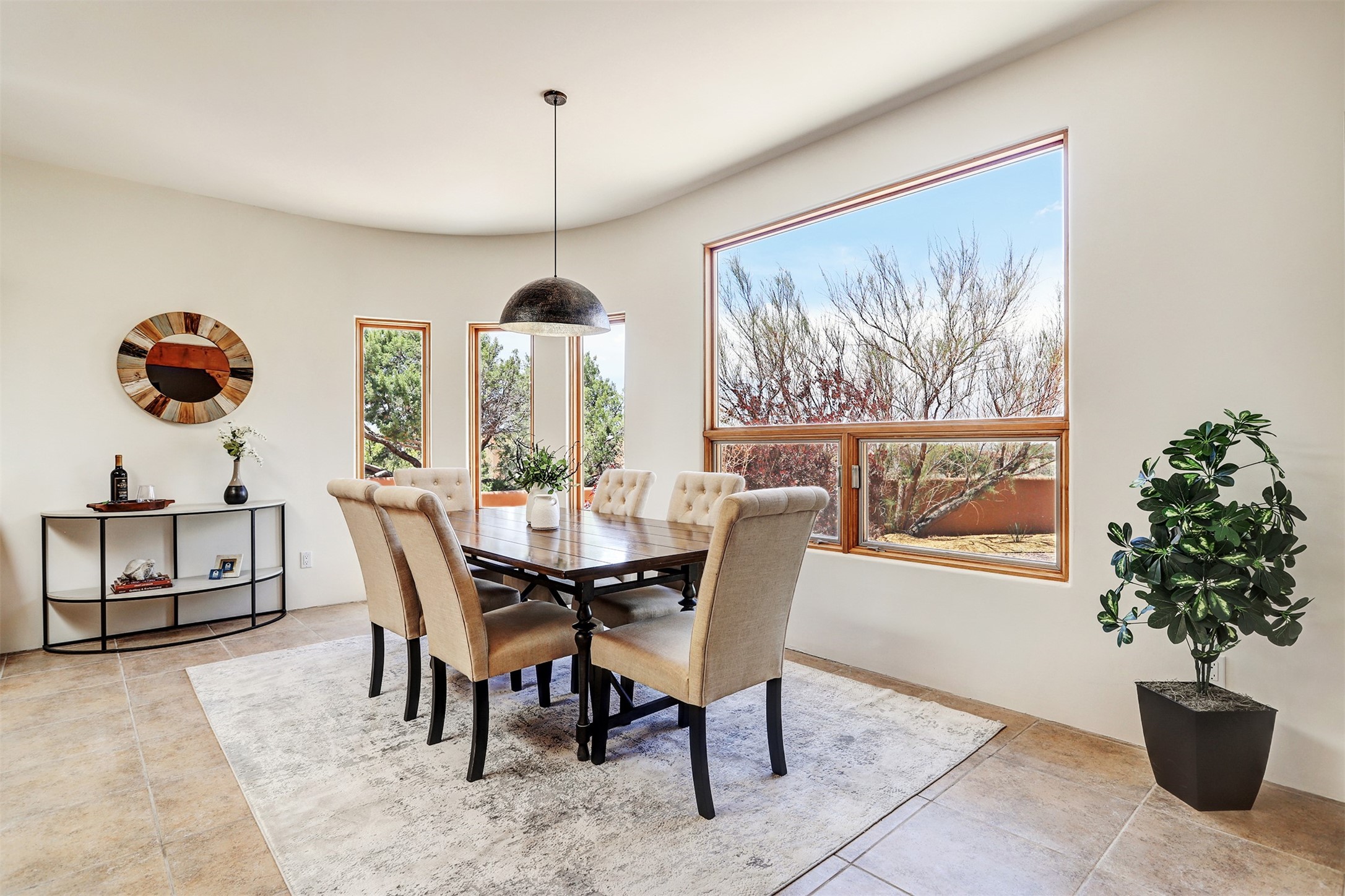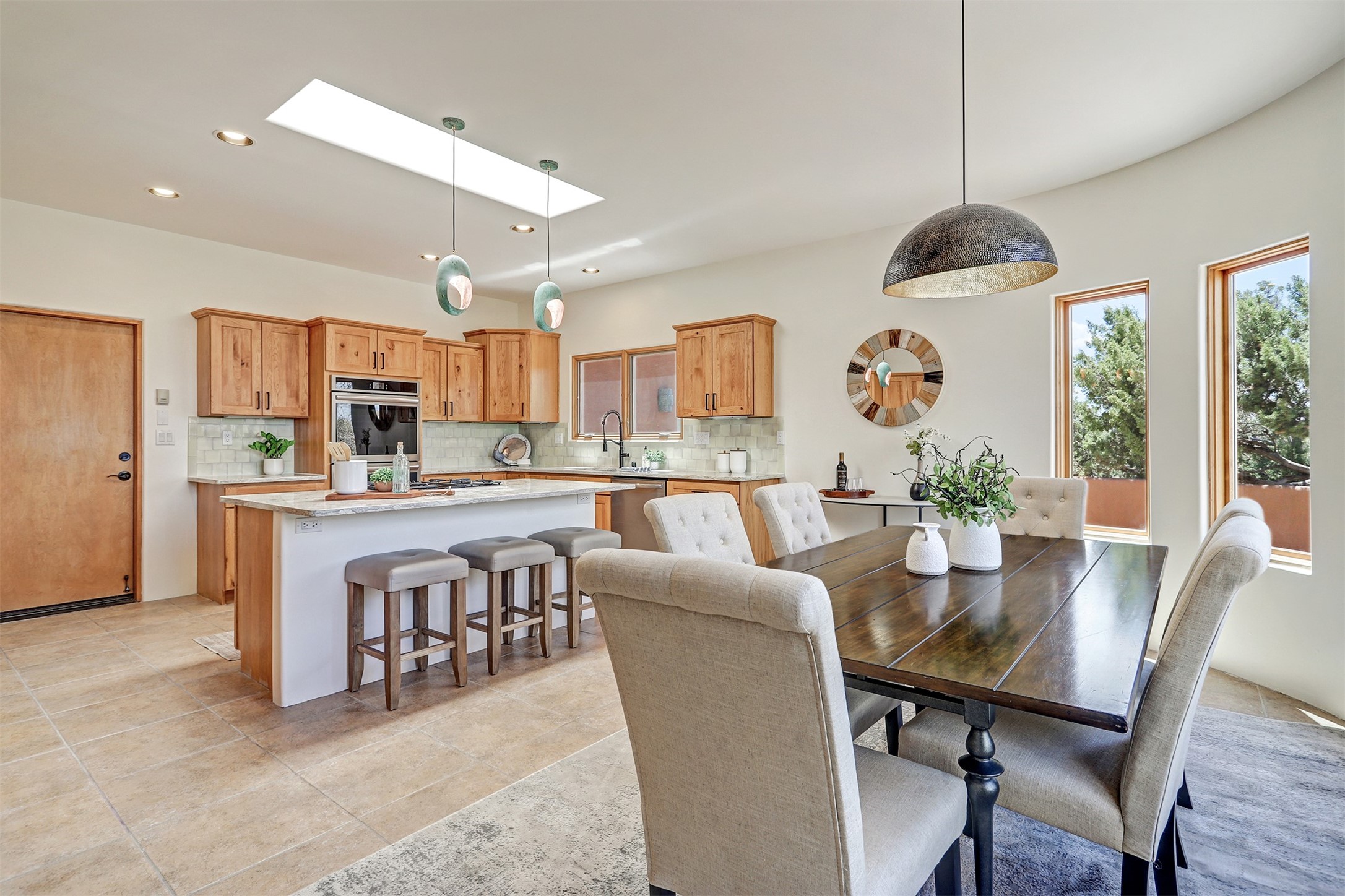 Welcome to this extraordinary residence in the highly desirable Eldorado, where Southwestern elegance meets modern comfort. Upon entering, you're greeted by soaring vaulted ceilings, exquisite tongue-and-groove woodwork, and beautiful vigas, setting the stage for this home's timeless design. The spacious living area, anchored by a traditional kiva fireplace, flows seamlessly into a chef-inspired kitchen. Featuring custom handmade tile backsplash, granite countertops, elegantly designed cabinetry, and brand-new stainless steel appliances, this kitchen is perfect for both everyday living and entertaining. The primary suite is a true retreat, offering a kiva fireplace, a luxurious ensuite, and extraordinary views of the surrounding mountains, providing the perfect sanctuary. Step outside to the private outdoor portal, adorned with tongue-and-groove ceilings and vigas, offering a peaceful setting for relaxation or entertaining. The front and back of the home boast breathtaking mountain views, adding an ever-changing, picturesque backdrop to daily life. This meticulously crafted home has been thoughtfully upgraded to offer a seamless blend of style and functionality. Located in the coveted Eldorado community, this home offers an ideal combination of privacy and convenience. Eldorado is known for its expansive open spaces, dark night skies, and a vibrant, close-knit community. Enjoy miles of walking, biking, and equestrian trails, along with a community center that features a pool, tennis and pickleball courts, and dog parks. Only a short drive to downtown Santa Fe, you'll have access to the city's galleries, fine dining, and cultural events, offering the best of both worlds. This extraordinary home presents a rare opportunity to live in a serene, natural environment while remaining close to the rich culture and amenities of Santa Fe. Schedule your private showing today to experience this exceptional property in person.