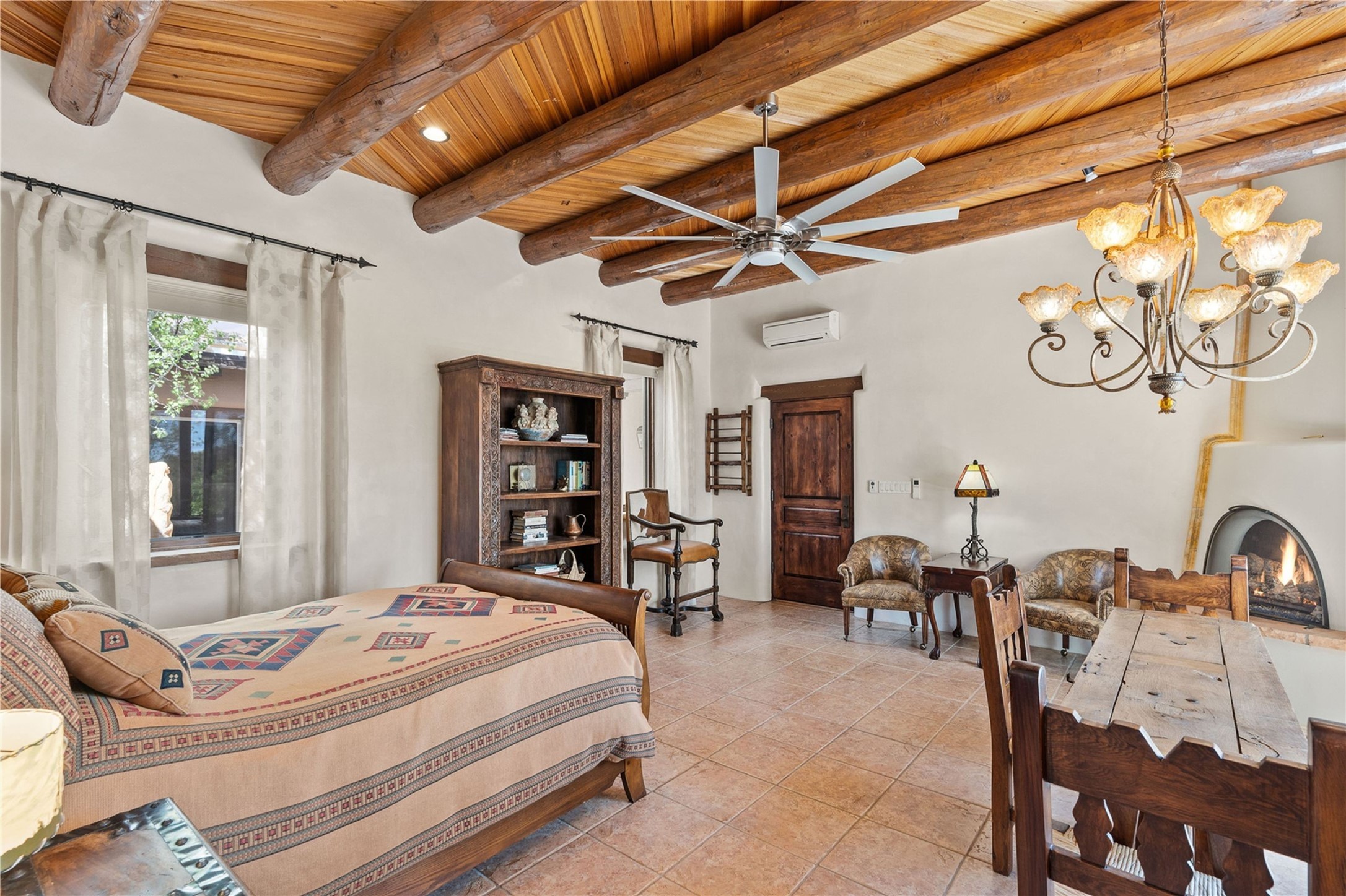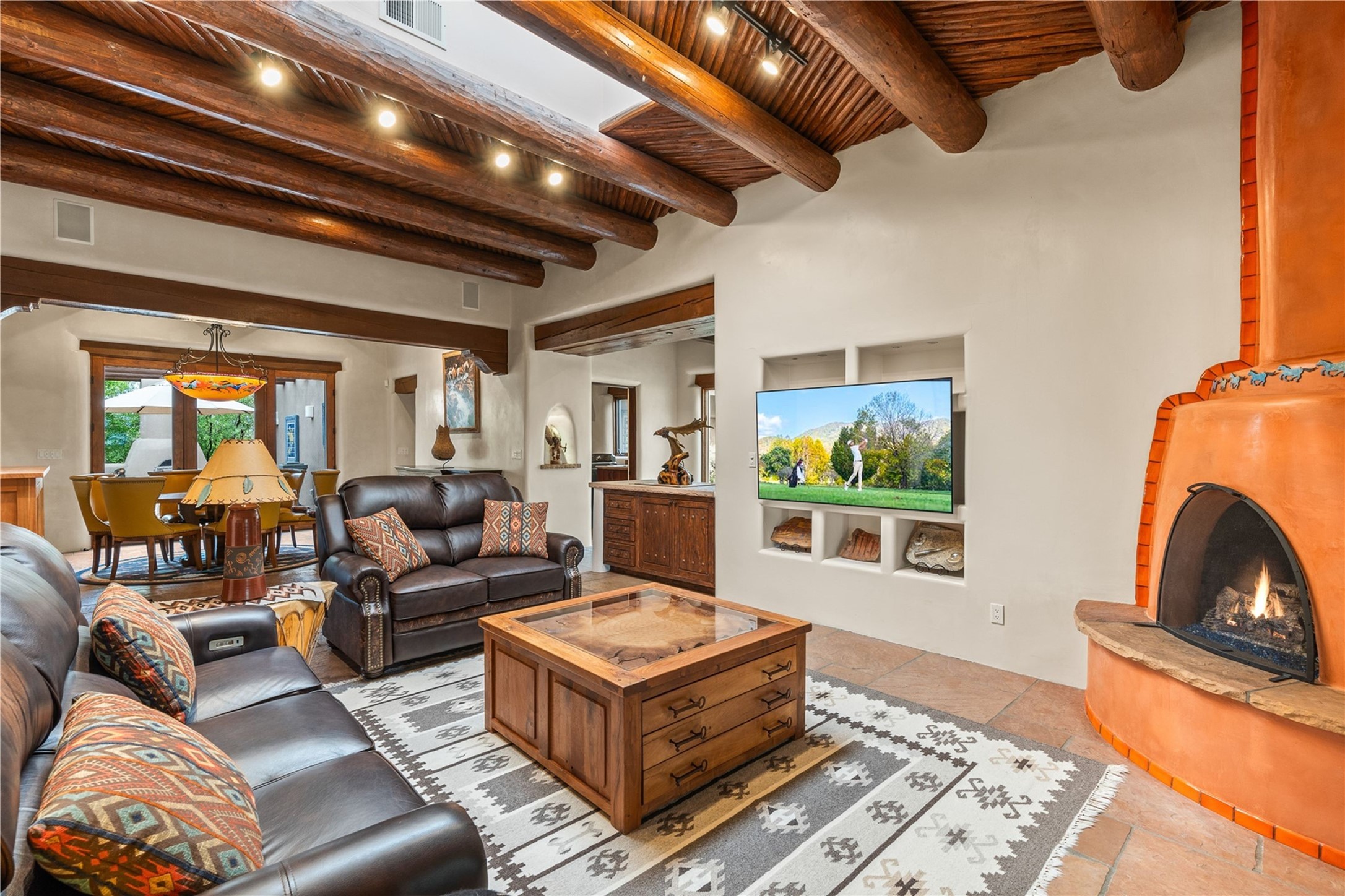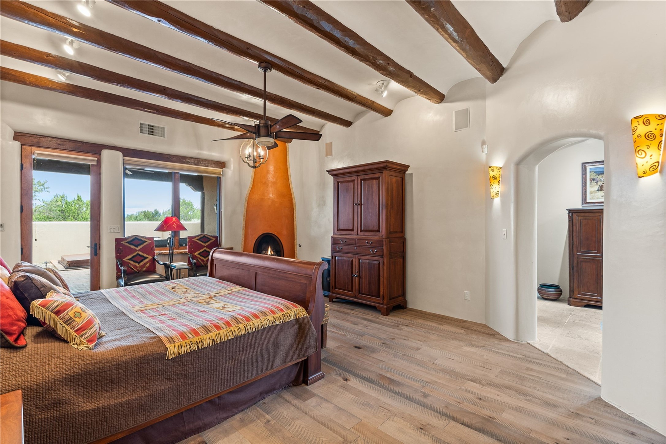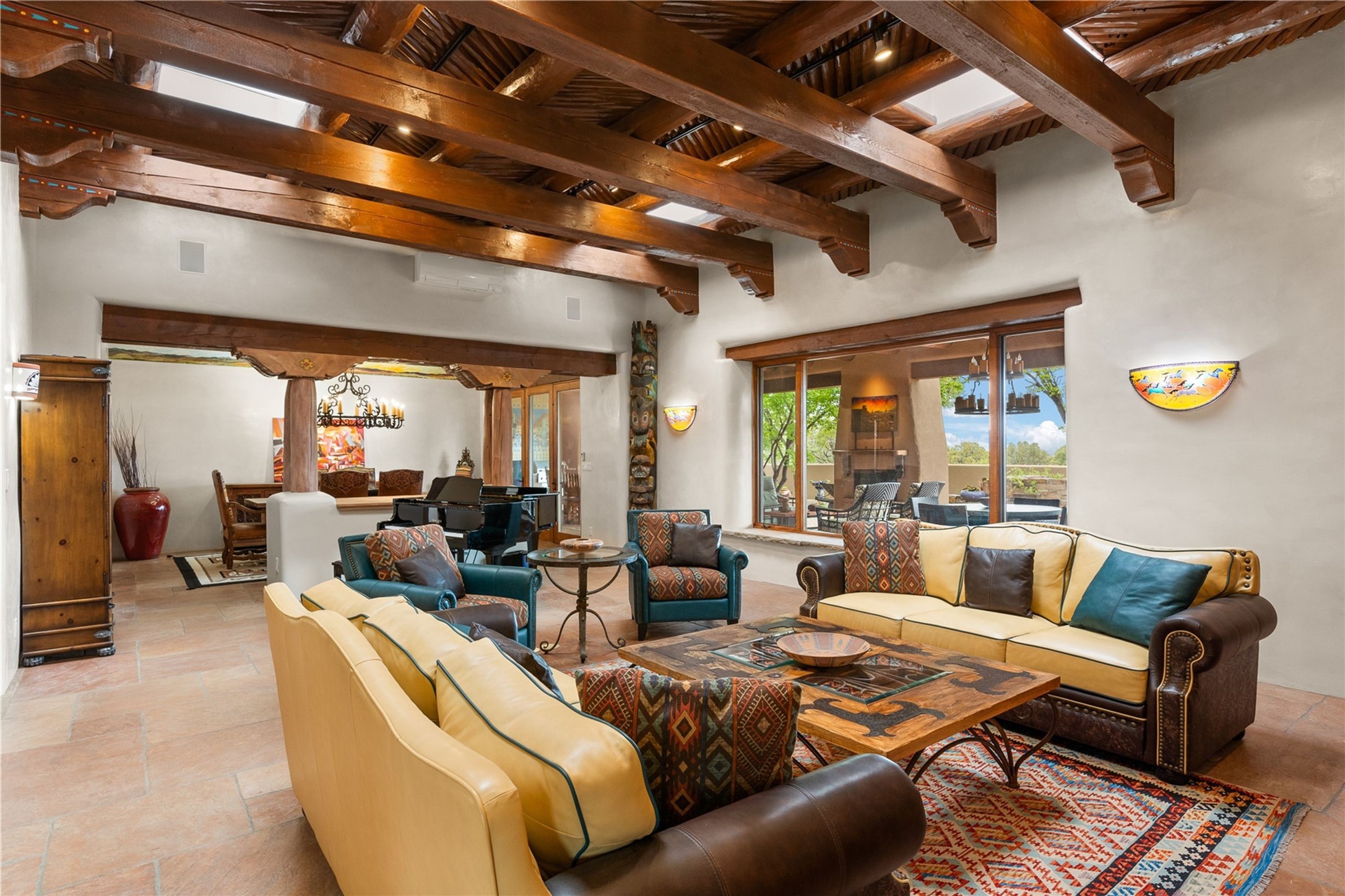 For those seeking the best of Santa Fe, this elegant and classic property delivers quality in every aspect. Set on 2.26 acres in Las Campanas, the 3-bedroom main residence, the beautifully appointed casita, and the masterfully conceived and executed outdoor areas come together to make this a special property. The ideal floorplan sets the grand primary bedroom suite, exercise room, and office opposite the house from the two generous guest suites. Between, are both informal and formal dining and living areas, creating spaces for the spectrum of living with the home. The casita is perfectly distanced to create privacy while providing easy access to the main house through a private courtyard. All the rooms are connected intuitively without a single step. The home is constructed with pumice-crete, a material known for excellent temperature insulation, natural flame resistance, and effective sound dampening. The kitchen serves as a warm and welcoming focal point, while the main living areas (living room, dining room & den) all provide beautiful views of the inspiring sunsets and Jemez Mountains. In addition to the dramatic walled and gated entry courtyard that captures eastern views, the main western portal is one of the most appealing outdoor living/entertaining spaces in all of Santa Fe. Radiant heat, air conditioning, and the three vehicle garage are other details that make this property an ideal primary residence or vacation home. The thoughtfully planned layout, coupled with the impeccable quality create great value for the next owner whether they want to enjoy it as is or bring upon it their own vision. A newly installed roof with a 10-year transferable warranty adds peace of mind for the next owner.