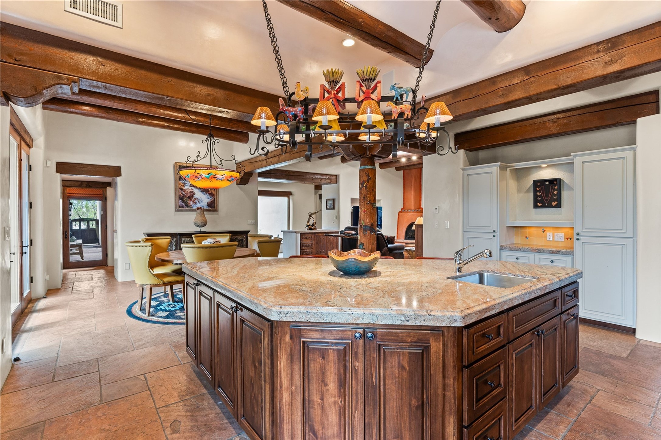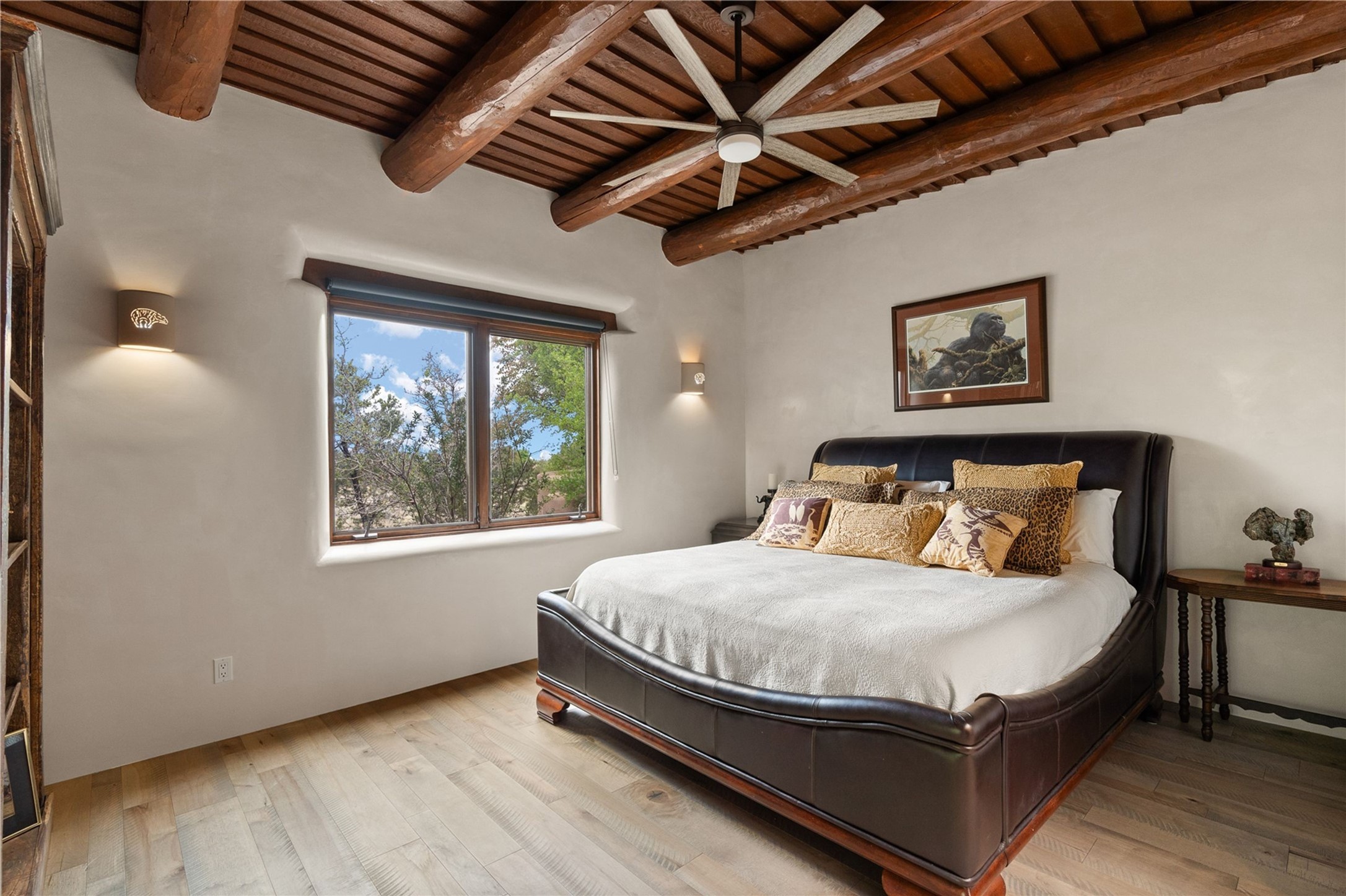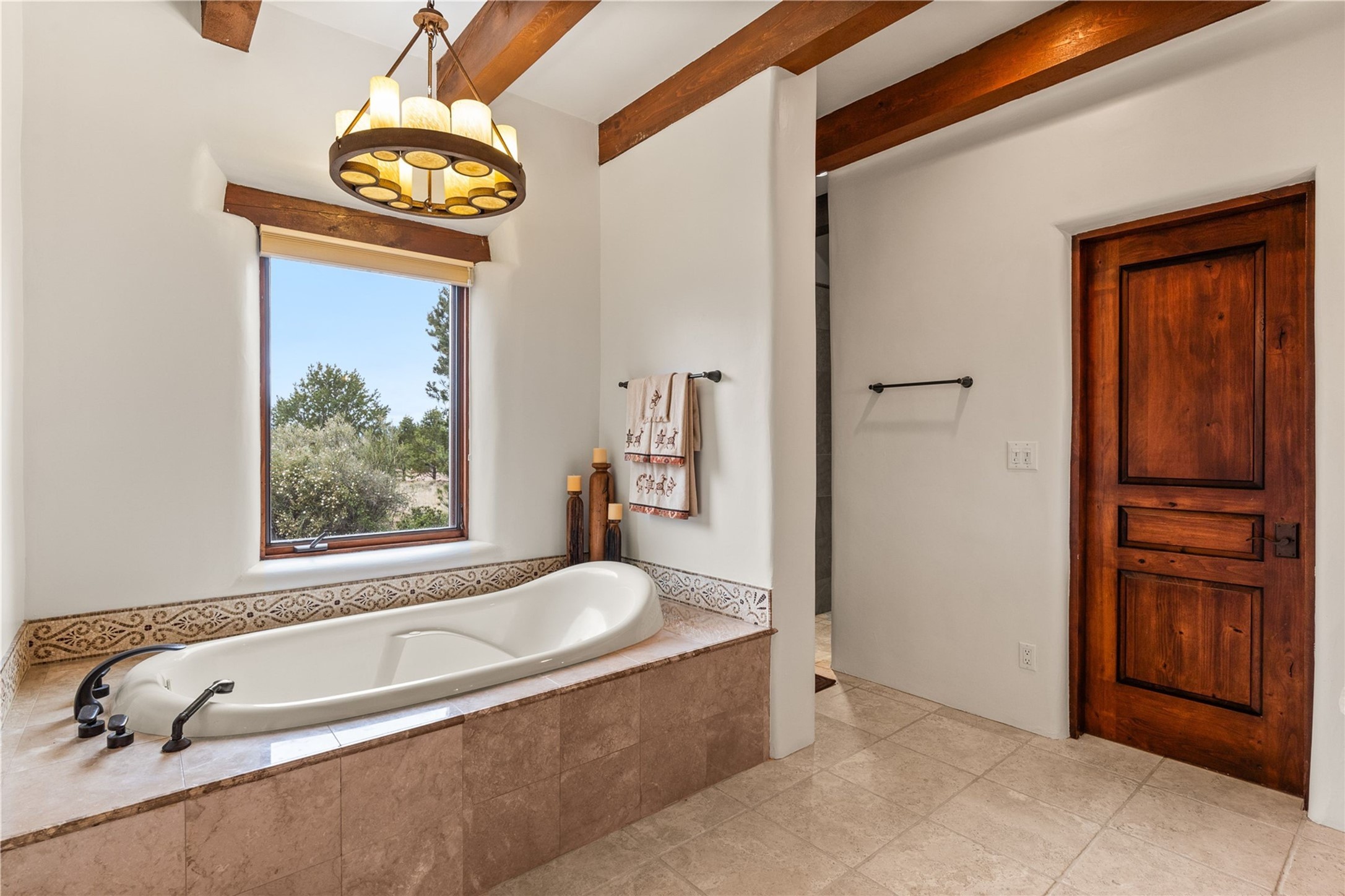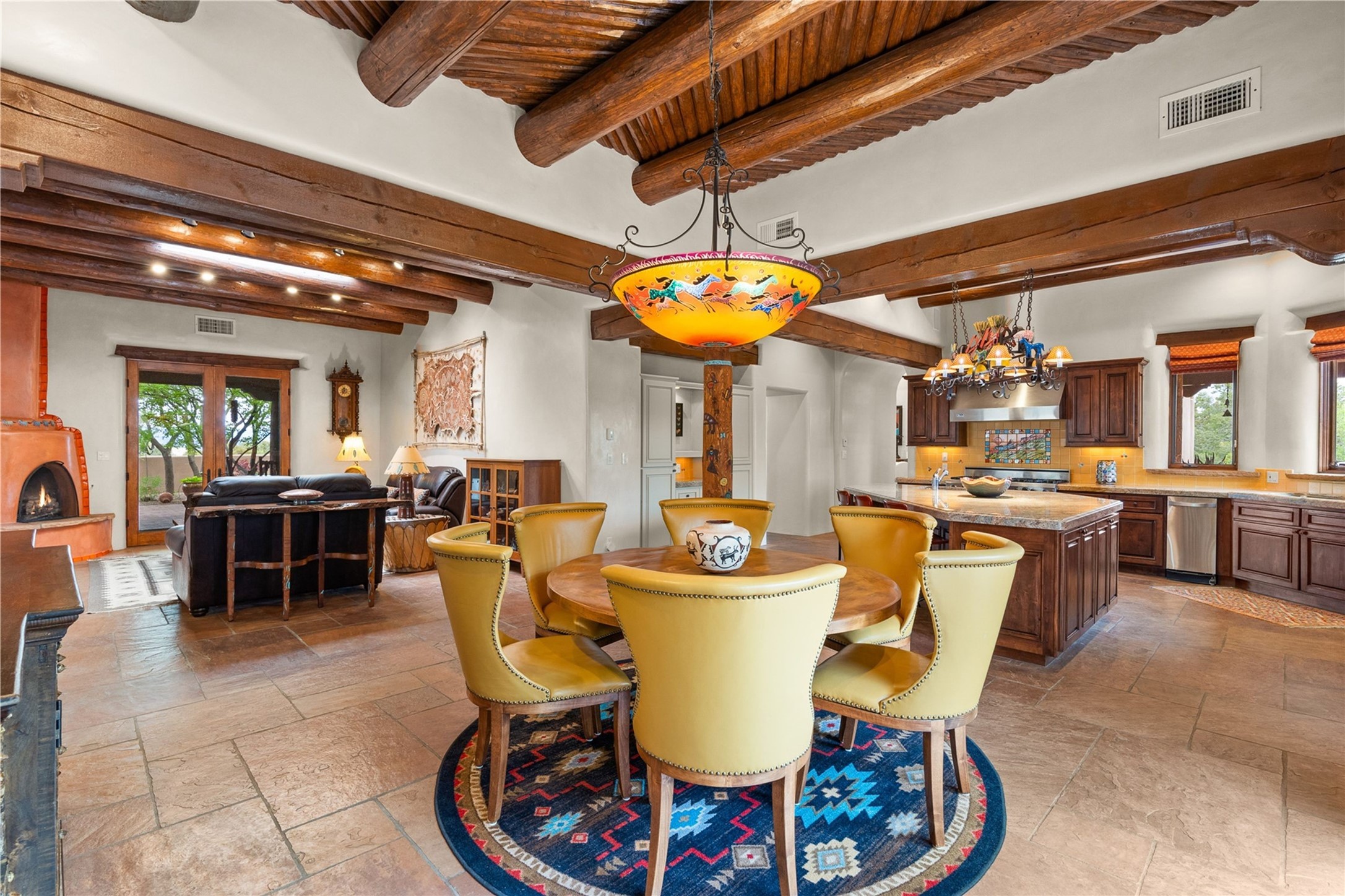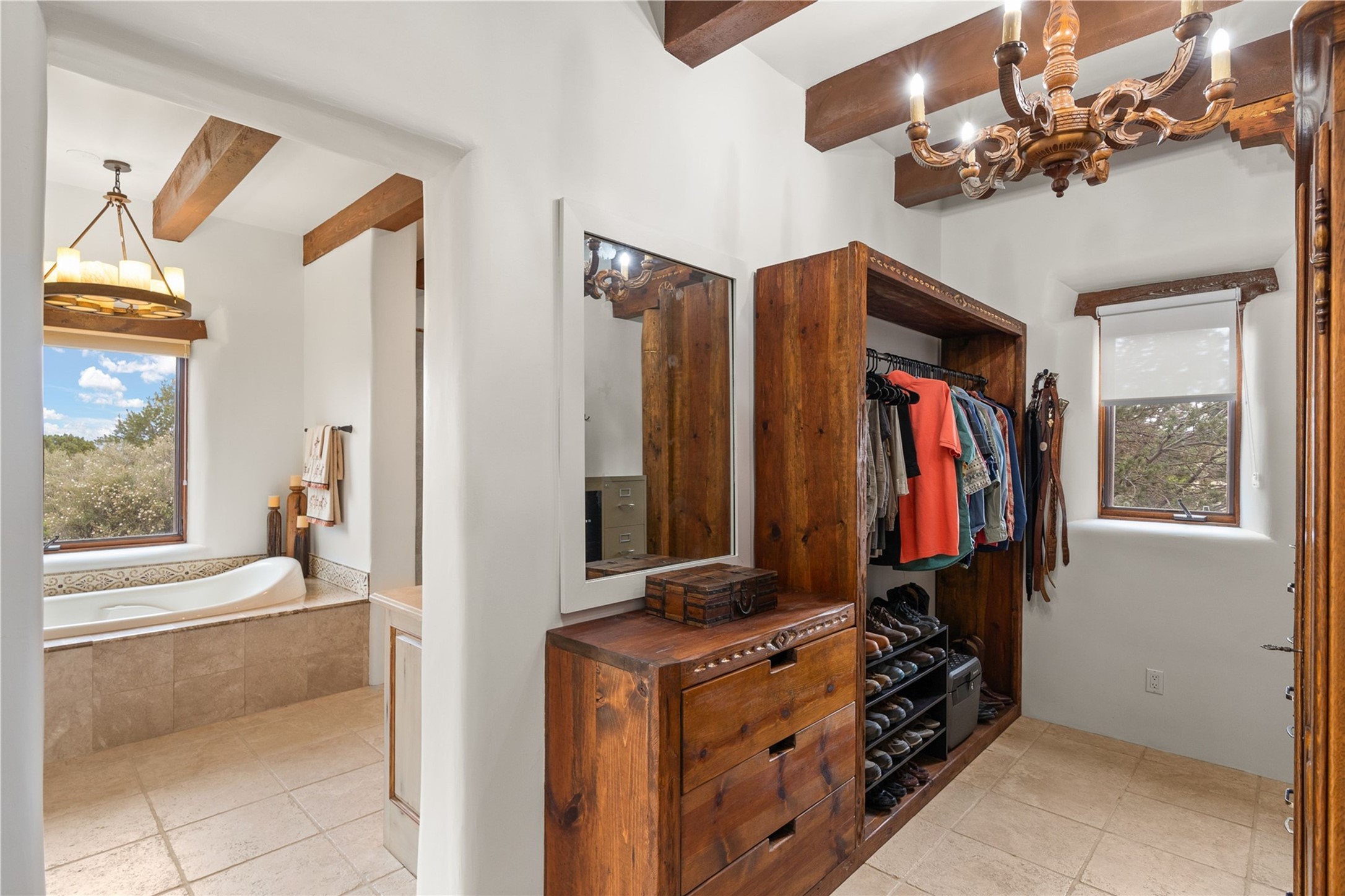 For those seeking the best of Santa Fe, this elegant and classic property delivers quality in every aspect. Set on 2.26 acres in Las Campanas, the 3-bedroom main residence, the beautifully appointed casita, and the masterfully conceived and executed outdoor areas come together to make this a special property. The ideal floorplan sets the grand primary bedroom suite, exercise room, and office opposite the house from the two generous guest suites. Between, are both informal and formal dining and living areas, creating spaces for the spectrum of living with the home. The casita is perfectly distanced to create privacy while providing easy access to the main house through a private courtyard. All the rooms are connected intuitively without a single step. The home is constructed with pumice-crete, a material known for excellent temperature insulation, natural flame resistance, and effective sound dampening. The kitchen serves as a warm and welcoming focal point, while the main living areas (living room, dining room & den) all provide beautiful views of the inspiring sunsets and Jemez Mountains. In addition to the dramatic walled and gated entry courtyard that captures eastern views, the main western portal is one of the most appealing outdoor living/entertaining spaces in all of Santa Fe. Radiant heat, air conditioning, and the three vehicle garage are other details that make this property an ideal primary residence or vacation home. The thoughtfully planned layout, coupled with the impeccable quality create great value for the next owner whether they want to enjoy it as is or bring upon it their own vision. A newly installed roof with a 10-year transferable warranty adds peace of mind for the next owner.