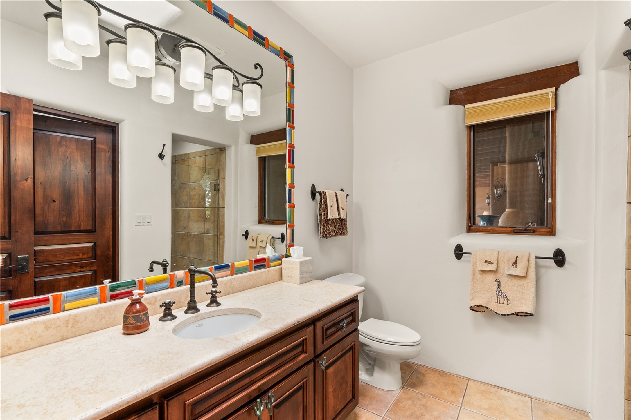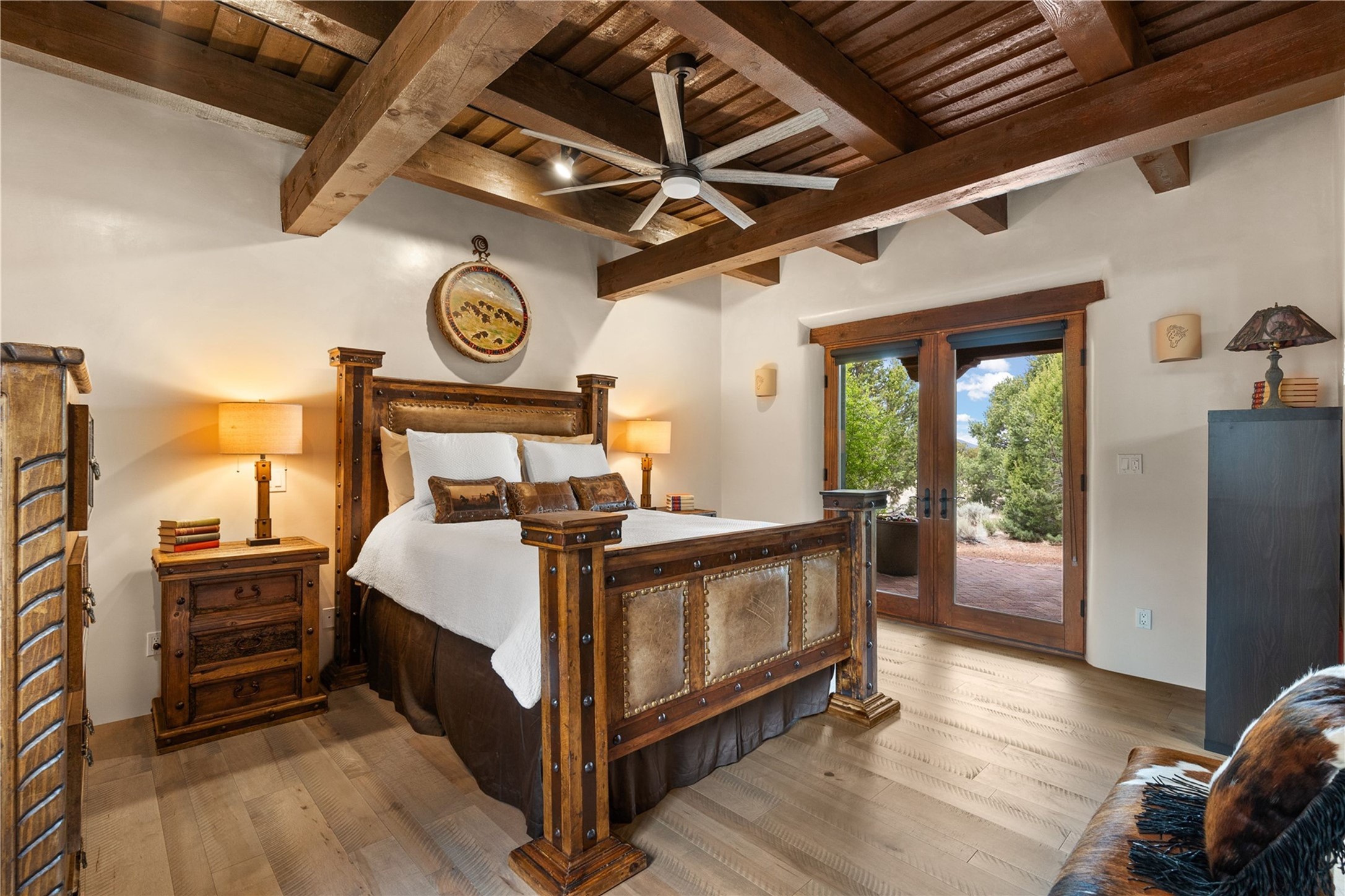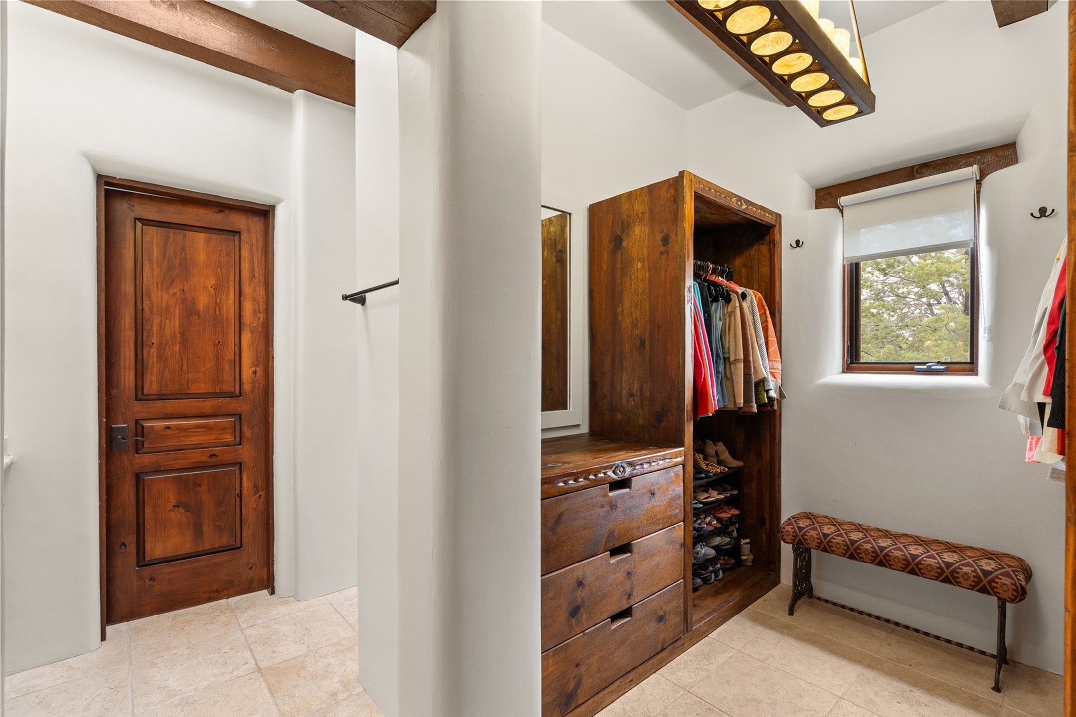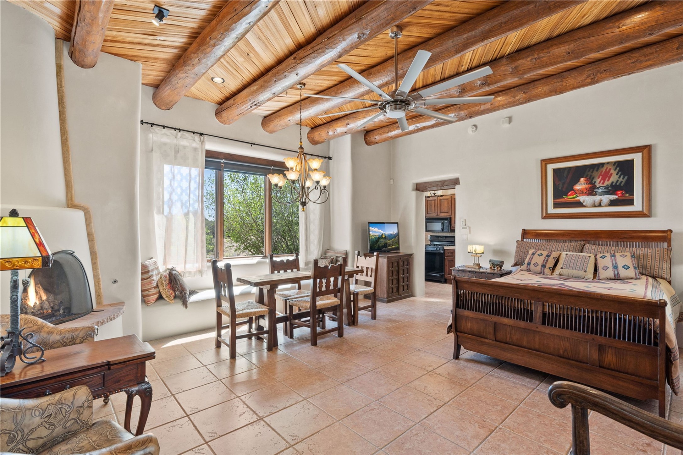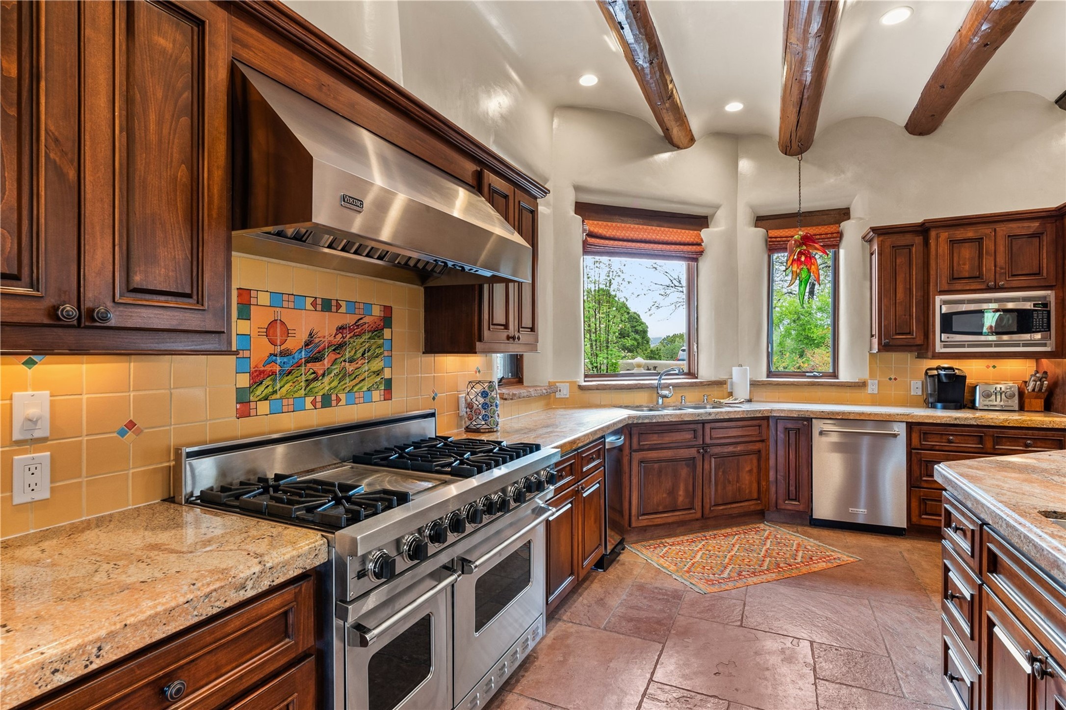 For those seeking the best of Santa Fe, this elegant and classic property delivers quality in every aspect. Set on 2.26 acres in Las Campanas, the 3-bedroom main residence, the beautifully appointed casita, and the masterfully conceived and executed outdoor areas come together to make this a special property. The ideal floorplan sets the grand primary bedroom suite, exercise room, and office opposite the house from the two generous guest suites. Between, are both informal and formal dining and living areas, creating spaces for the spectrum of living with the home. The casita is perfectly distanced to create privacy while providing easy access to the main house through a private courtyard. All the rooms are connected intuitively without a single step. The home is constructed with pumice-crete, a material known for excellent temperature insulation, natural flame resistance, and effective sound dampening. The kitchen serves as a warm and welcoming focal point, while the main living areas (living room, dining room & den) all provide beautiful views of the inspiring sunsets and Jemez Mountains. In addition to the dramatic walled and gated entry courtyard that captures eastern views, the main western portal is one of the most appealing outdoor living/entertaining spaces in all of Santa Fe. Radiant heat, air conditioning, and the three vehicle garage are other details that make this property an ideal primary residence or vacation home. The thoughtfully planned layout, coupled with the impeccable quality create great value for the next owner whether they want to enjoy it as is or bring upon it their own vision. A newly installed roof with a 10-year transferable warranty adds peace of mind for the next owner.