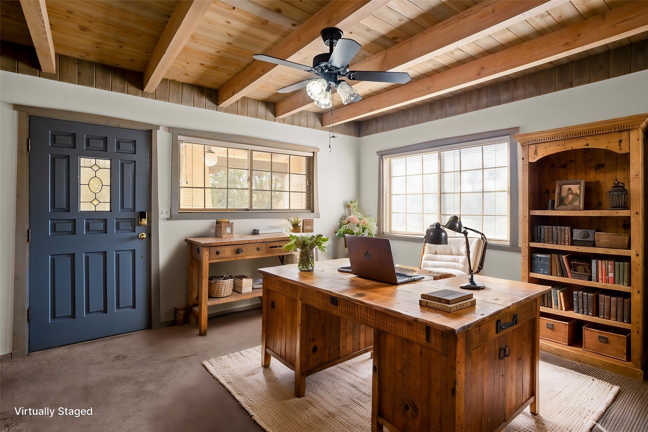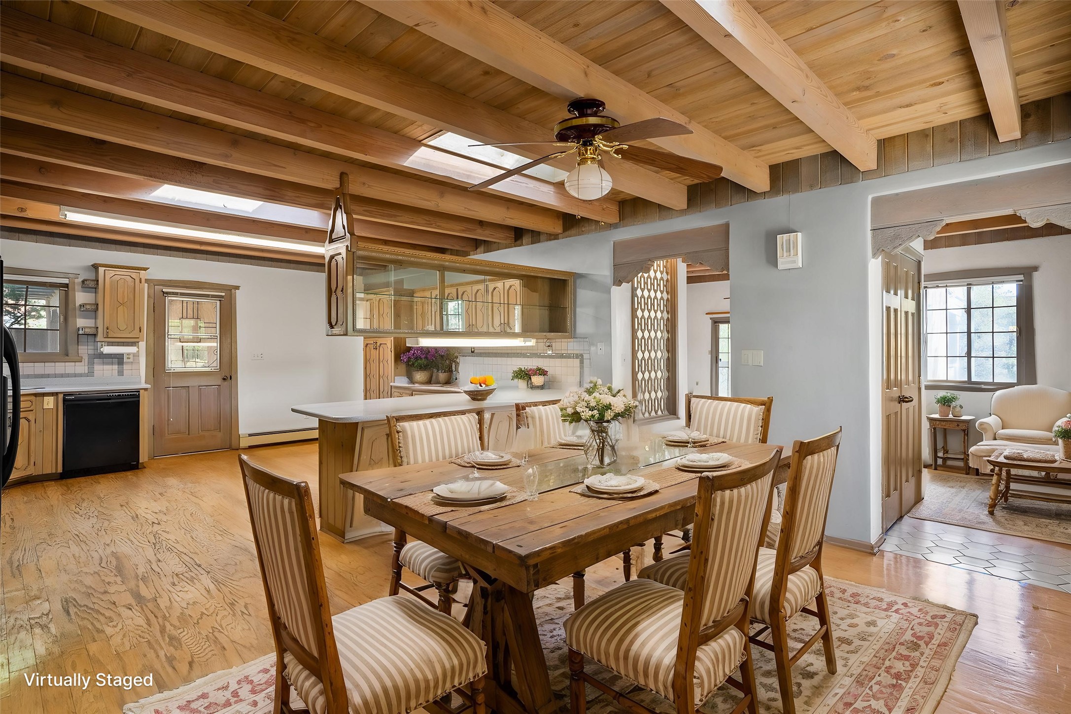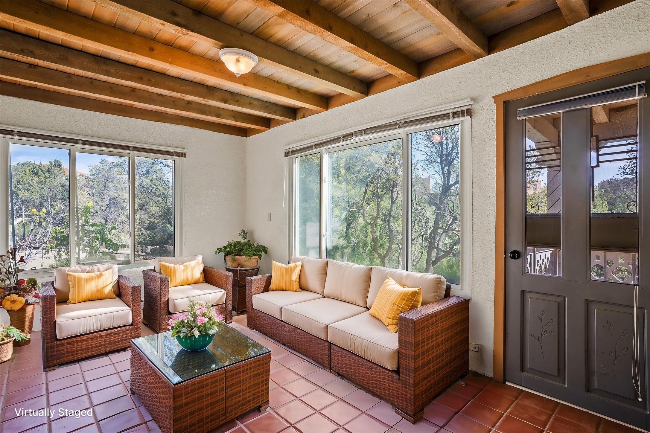 Are you looking for a home where your imagination can truly soar? We've got an exciting opportunity waiting for you in the highly desirable Via Caballero neighborhood, and it's priced with a quick sale in mind! Step into this charming 4-bedroom, 3 1/2-bathroom home, thoughtfully designed across two distinct levels. On the main/street level, you'll discover three comfortable bedrooms, a handy office, and three bathrooms. The spacious living room is a real showstopper with its wonderfully high ceilings, giving it an open and airy feel. It's filled with custom touches and is just waiting for you to add your own personal flair! But wait, there's more! The lower level is a wonderfully flexible space. It features an additional bedroom (which could also make a great office!), a 3/4 bathroom, and a convenient kitchenette area. There's also a large central room and a heated workshop space - just think of the possibilities! It could become your dream gym, a woodworkinghaven, an artist's studio, or whatever your heart desires. Nestled on a generous 1/3 acre lot, this property also boasts its own private well, adding to its unique charm. And you'll love being centrally located in the sought-after Via Caballero area. Whether you're dreaming of a home perfect for multigenerational living, an opportunity to live in one part and rent out another, or a fantastic live/work setup, the possibilities here are truly endless. Where will your dreams take you next in this special home? A little note: one of the owners is a licensed New Mexico Real Estate Broker. We can't wait for you to see it!