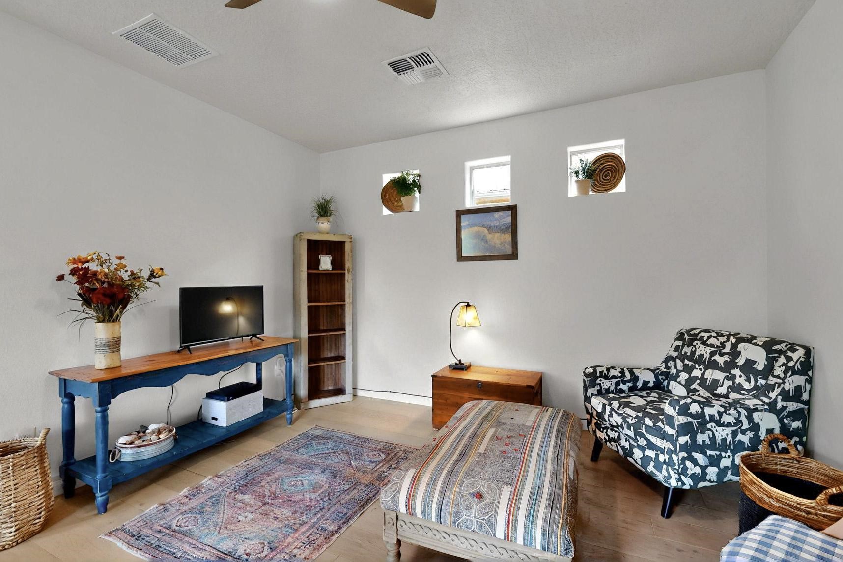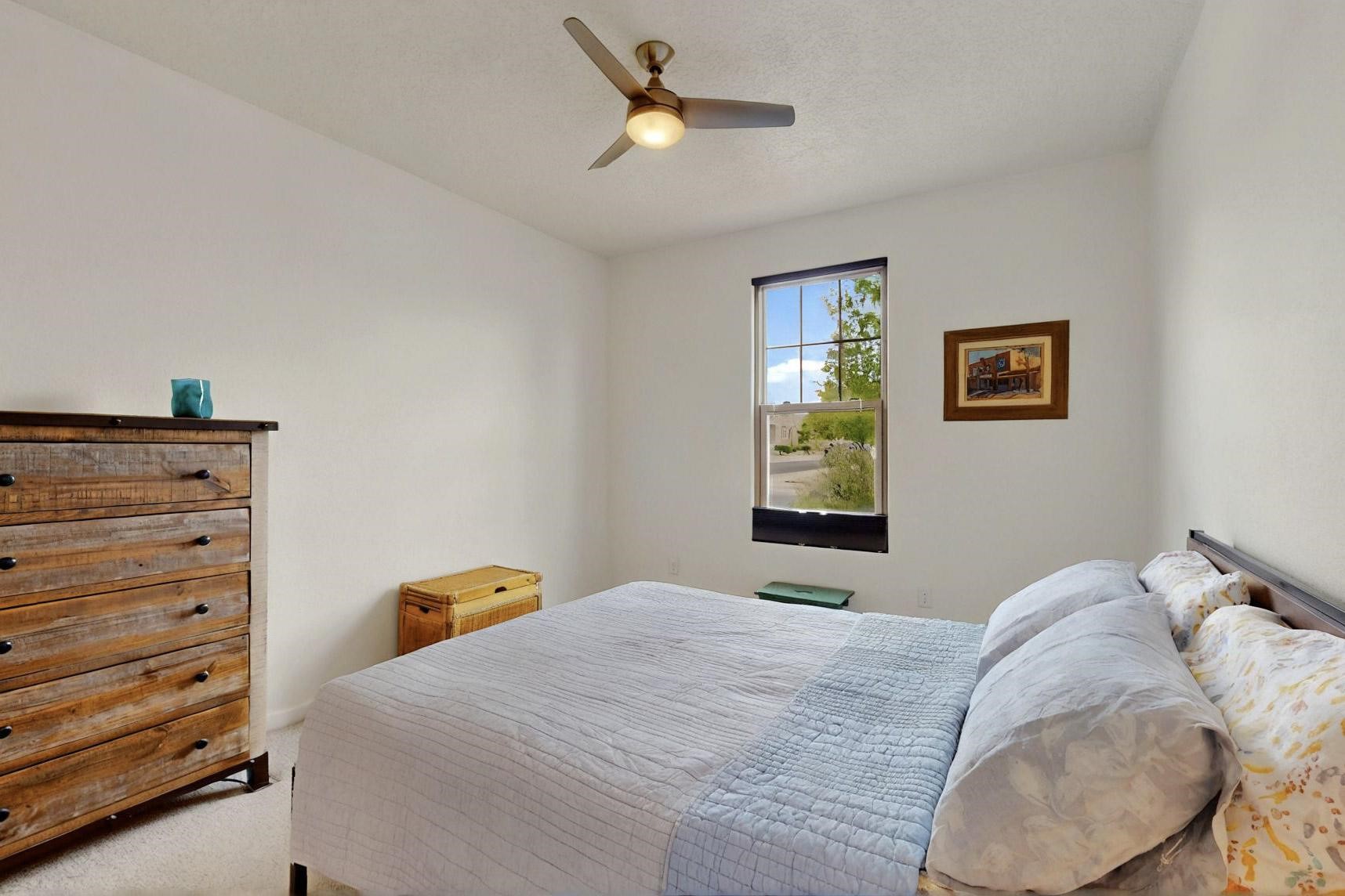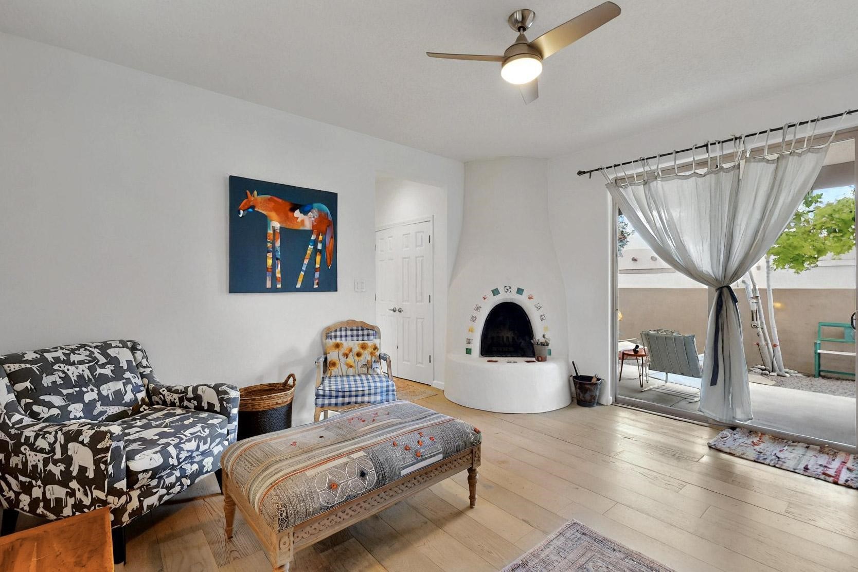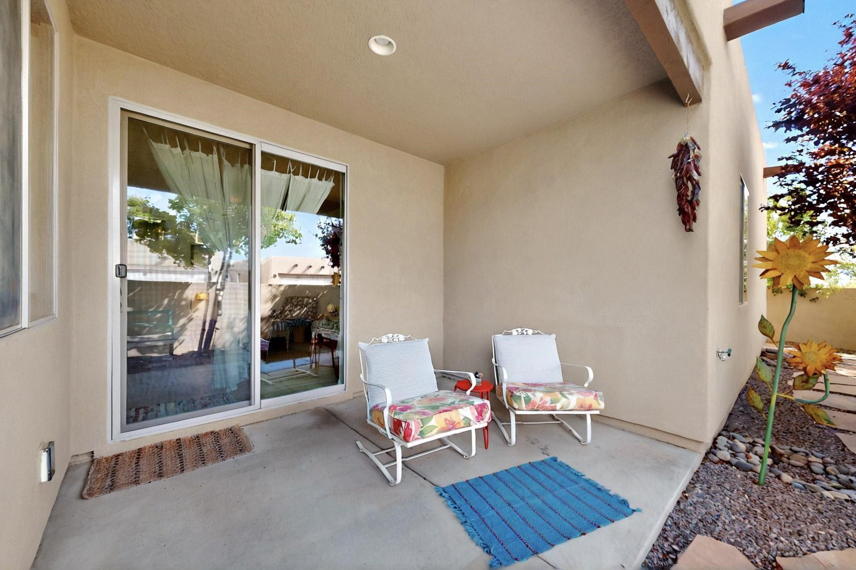 Charming Corner-Lot Gem with Mountain Views! Pride of ownership shines in this lovingly maintained single-owner home, nestled on a desirable corner lot with stunning mountain and sunset views. This 3-bedroom, 2-bathroom residence offers both comfort and style, featuring a finished 1-car attached garage and a beautifully landscaped walled courtyard for added privacy and curb appeal. The expanded driveway, enhanced with pavers, provides both improved parking and a polished appearance, while the courtyard wall has been finished in matching stucco for a cohesive look with the home. Step inside to find a bright, welcoming interior with abundant natural light and thoughtful upgrades throughout. The refreshed kitchen boasts stainless steel appliances, granite countertops, and tile flooring--perfect for both everyday living and entertaining. Relax by the cozy wood-burning kiva fireplace in the well-appointed living room. All bedrooms are outfitted with ceiling fans and 100% wool Berber carpet for a warm and luxurious feel. Enjoy outdoor living under the generously sized covered portal, ideal for dining al fresco or simply taking in the fresh air and views. The property has ash, aspen, and plum trees, adding natural beauty to every season. A Gaco Roof was completed in 2021. Don't miss this rare opportunity to own a well-cared-for home in a peaceful setting with timeless charm and modern touches!