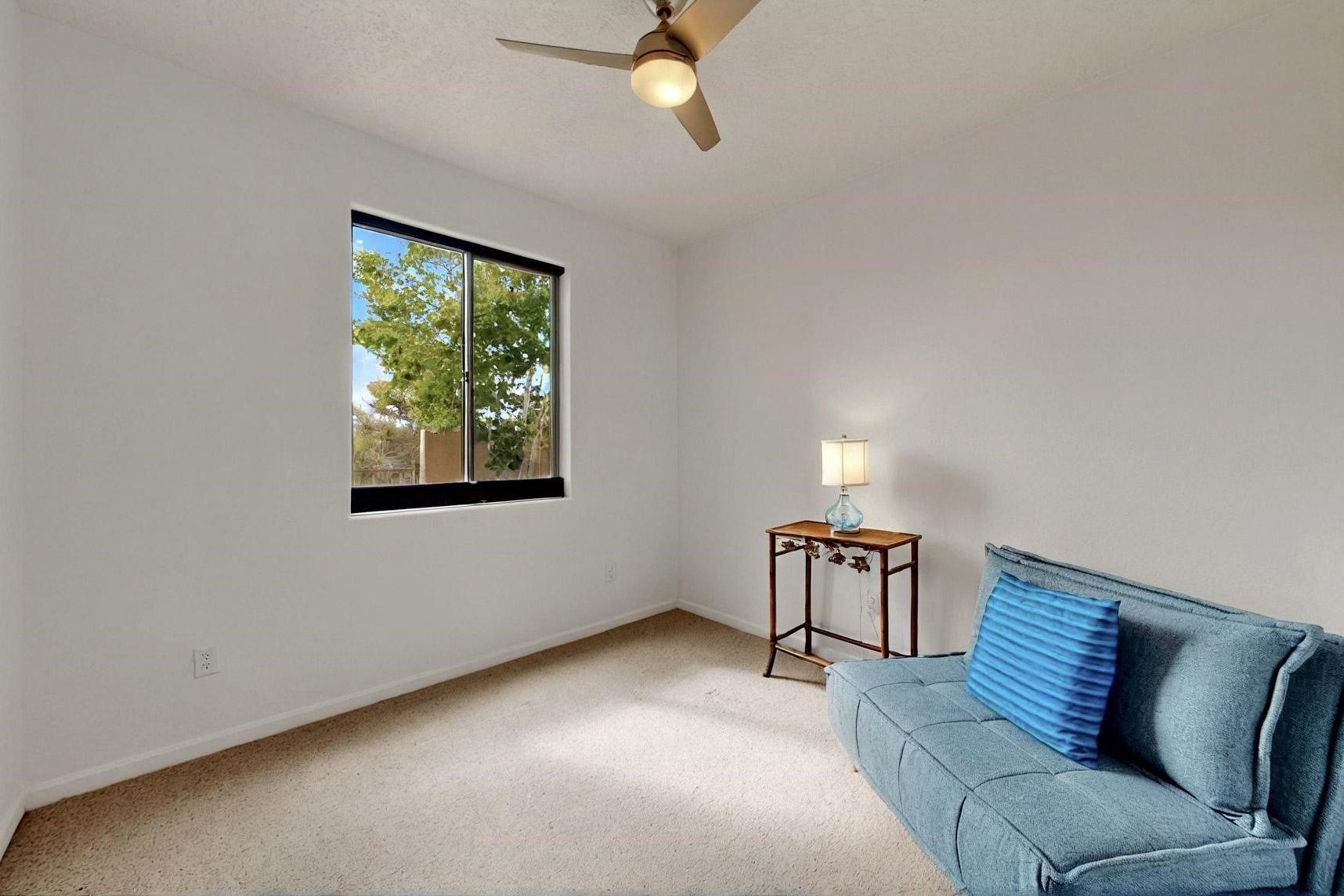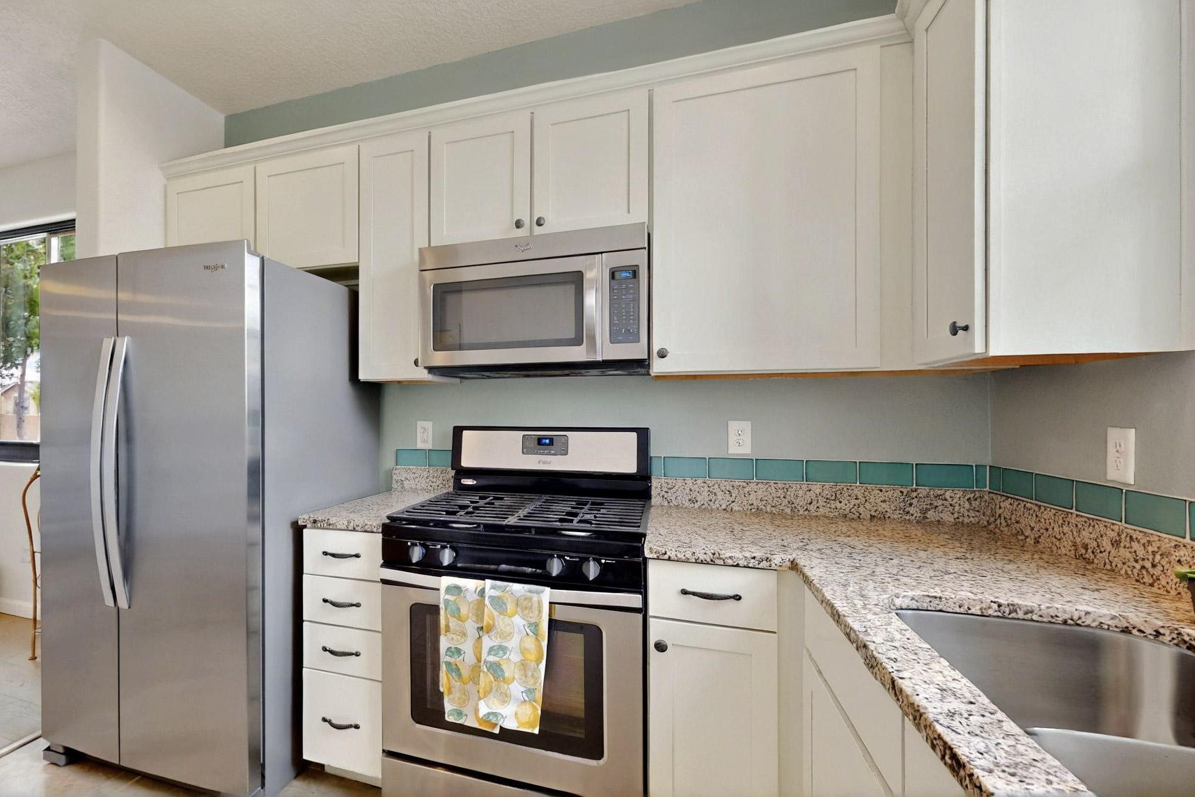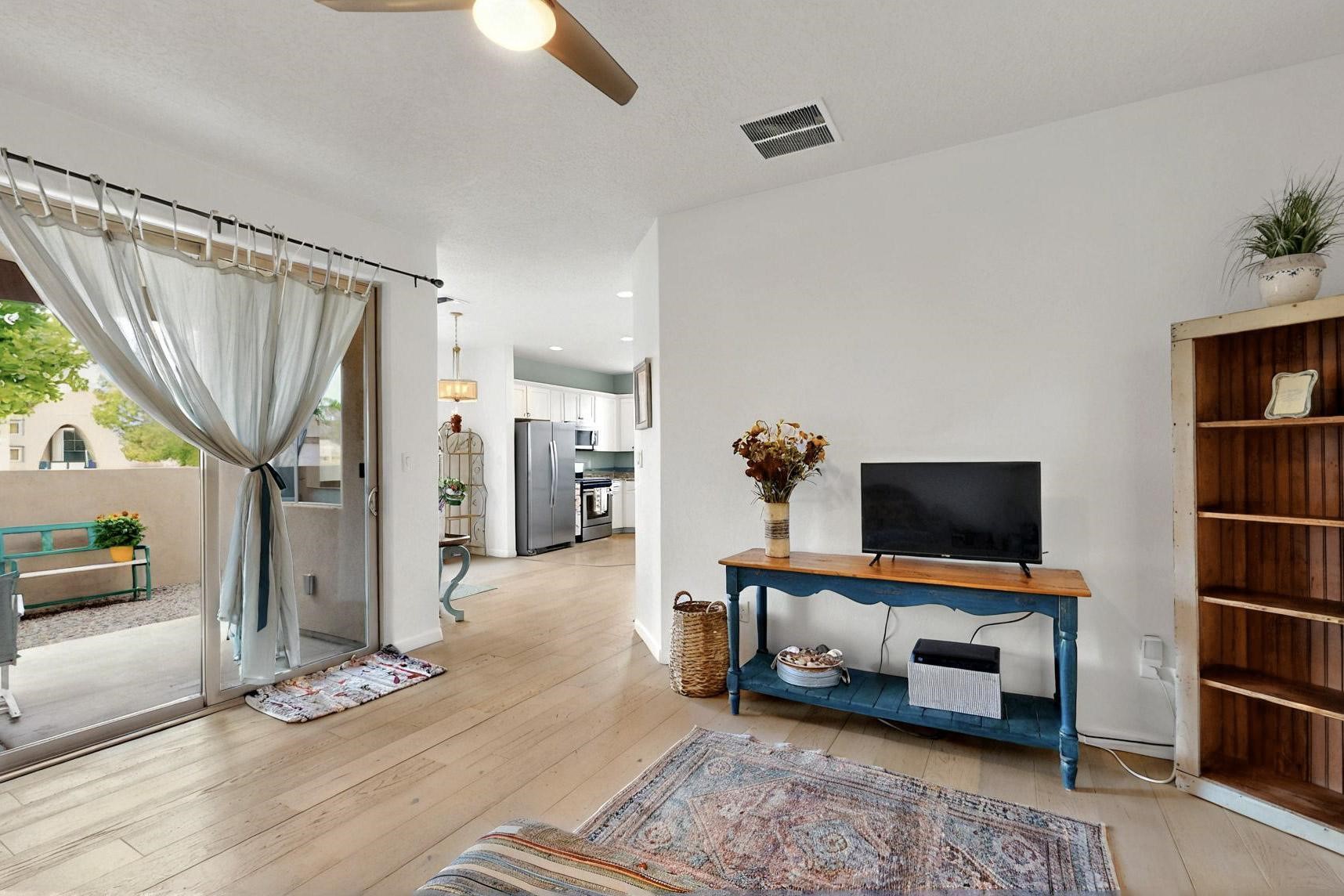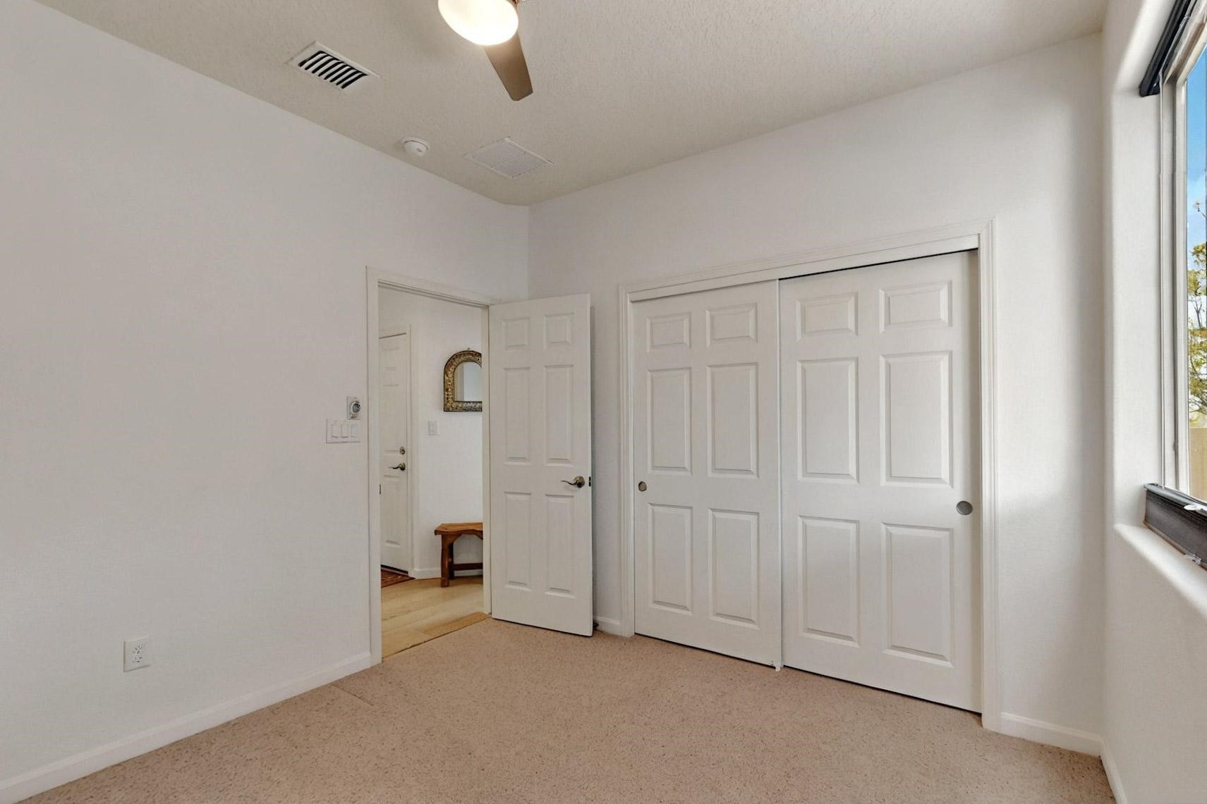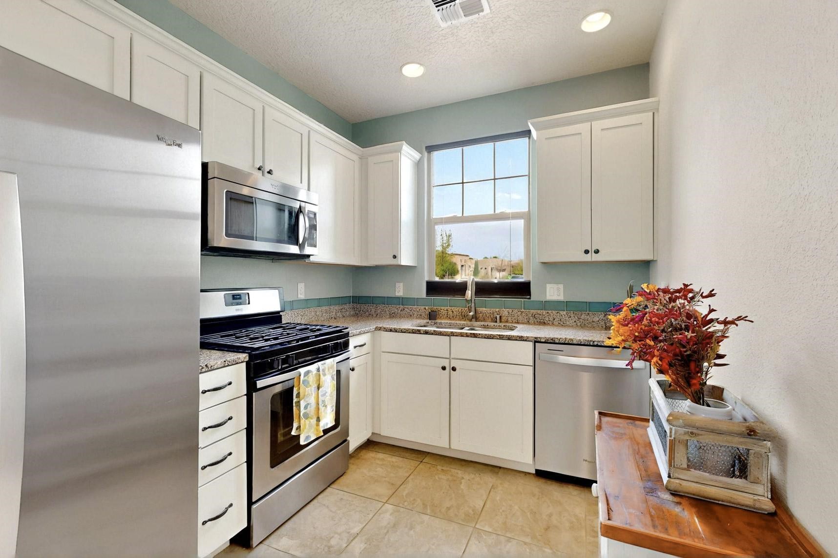 Charming Corner-Lot Gem with Mountain Views! Pride of ownership shines in this lovingly maintained single-owner home, nestled on a desirable corner lot with stunning mountain and sunset views. This 3-bedroom, 2-bathroom residence offers both comfort and style, featuring a finished 1-car attached garage and a beautifully landscaped walled courtyard for added privacy and curb appeal. The expanded driveway, enhanced with pavers, provides both improved parking and a polished appearance, while the courtyard wall has been finished in matching stucco for a cohesive look with the home. Step inside to find a bright, welcoming interior with abundant natural light and thoughtful upgrades throughout. The refreshed kitchen boasts stainless steel appliances, granite countertops, and tile flooring--perfect for both everyday living and entertaining. Relax by the cozy wood-burning kiva fireplace in the well-appointed living room. All bedrooms are outfitted with ceiling fans and 100% wool Berber carpet for a warm and luxurious feel. Enjoy outdoor living under the generously sized covered portal, ideal for dining al fresco or simply taking in the fresh air and views. The property has ash, aspen, and plum trees, adding natural beauty to every season. A Gaco Roof was completed in 2021. Don't miss this rare opportunity to own a well-cared-for home in a peaceful setting with timeless charm and modern touches!