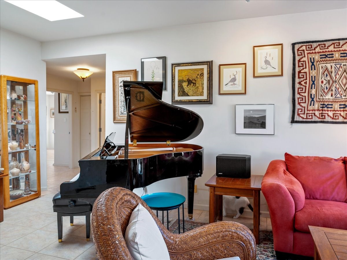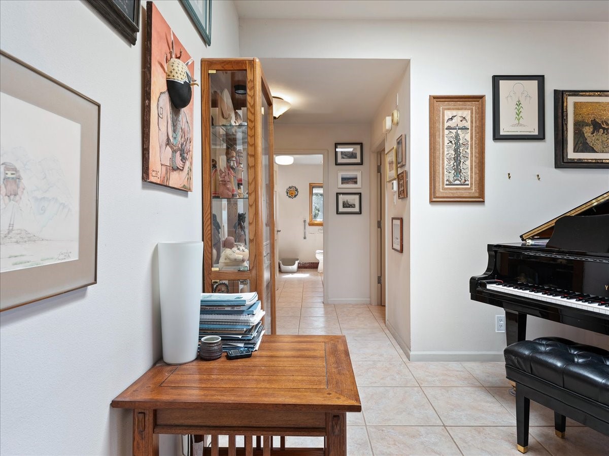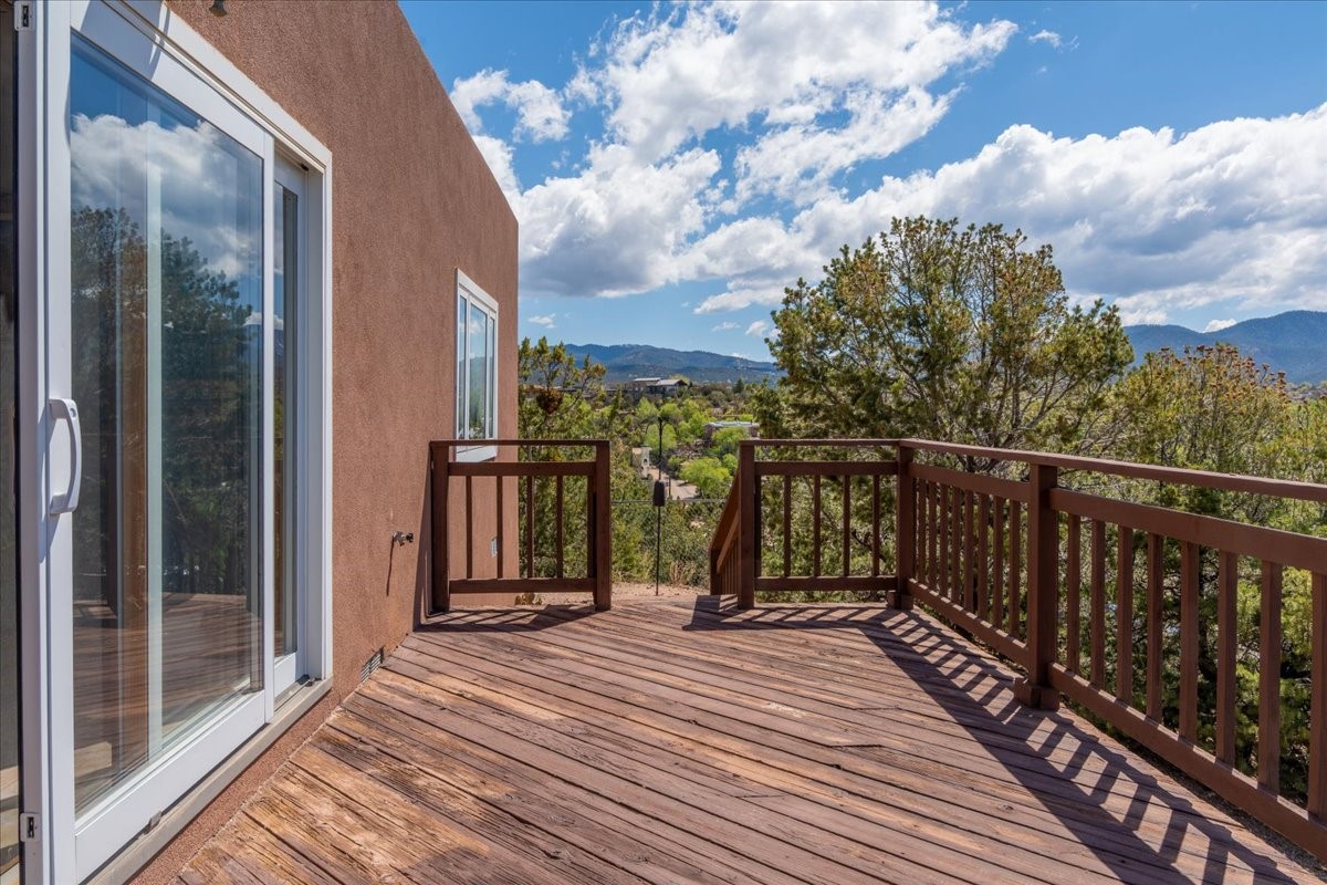 This lovely home is perched on a ridge overlooking Downtown Santa Fe. The viewing deck faces south bringing abundant light into the living space. With 3 Bedrooms/ 2 Baths on half an acre, the 1946 sf feels very open. The large 2 car garage is separate with paved access. Broker present for all showings