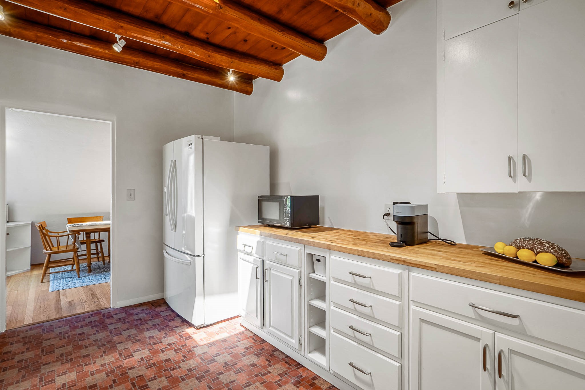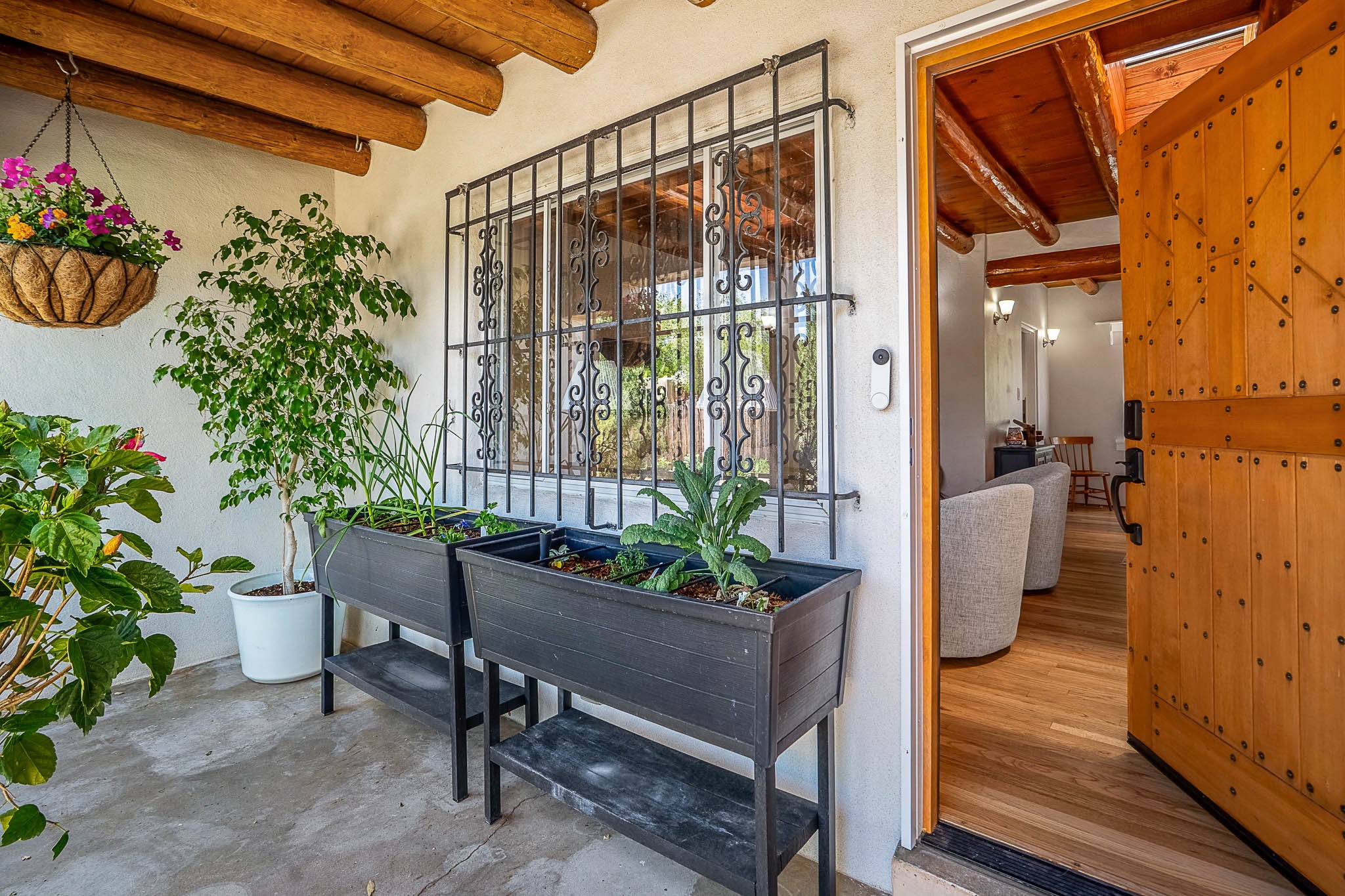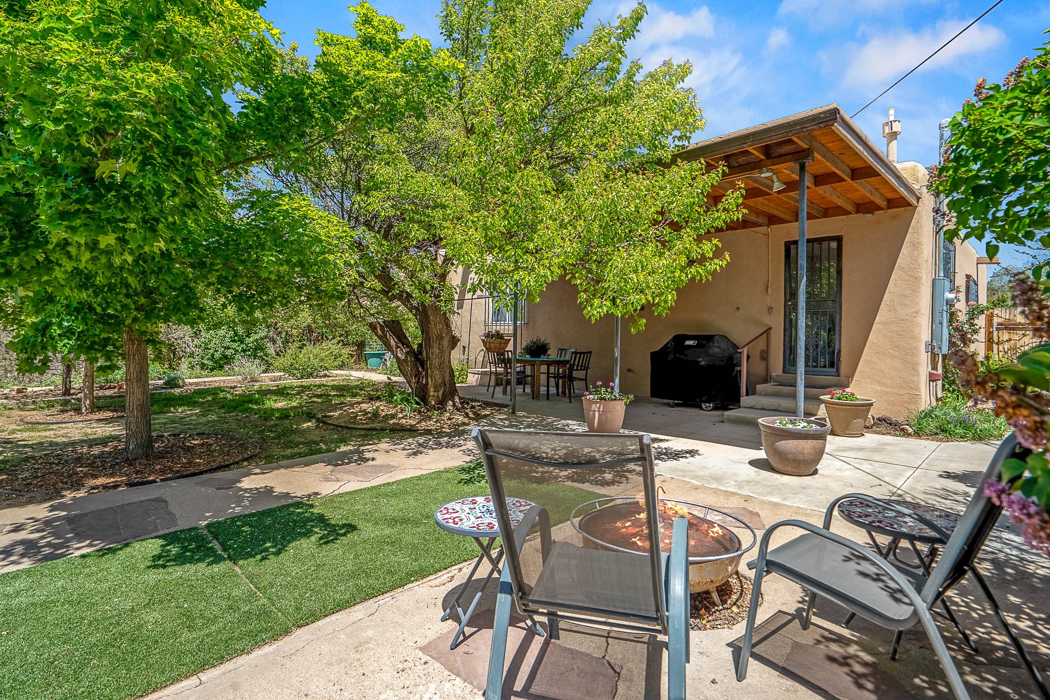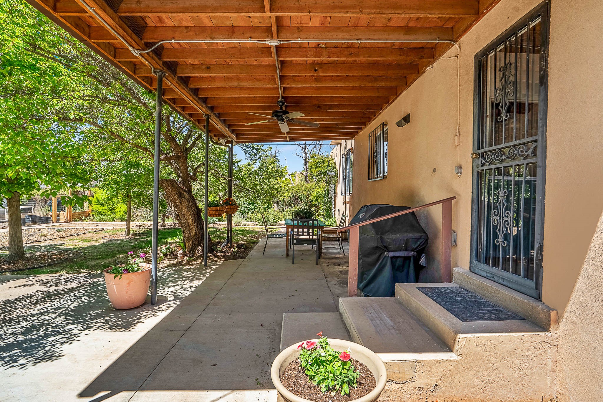 Classic Stamm located in the highly desirable Casa Linda neighborhood. This charming two-bedroom, one-bathroom home is situated within a well established Stamm neighborhood, known for its classic architectural style and central location.Inside, the residence boasts beautiful exposed vigas, original oak hardwood floors throughout (except in the kitchen), and a welcoming kiva wood-burning fireplace, complemented by a traditional nicho. The original solid wood front door has been thoughtfully restored, enhancing the home's unique character and creating a warm and inviting entry.This property also offers modern conveniences such as central cooling, forced air heating, a tankless water heater, and the added benefit of an electric car charger. Recent updates include a newer roof with a transferable 5-year warranty, and for future expansion, blueprints for a primary suite addition & carport are also included. The home is set on a spacious lot, providing ample outdoor living space.Given the desirability of Stamm homes in this area, they tend to be highly sought after and sell quickly. Schedule a showing today!
