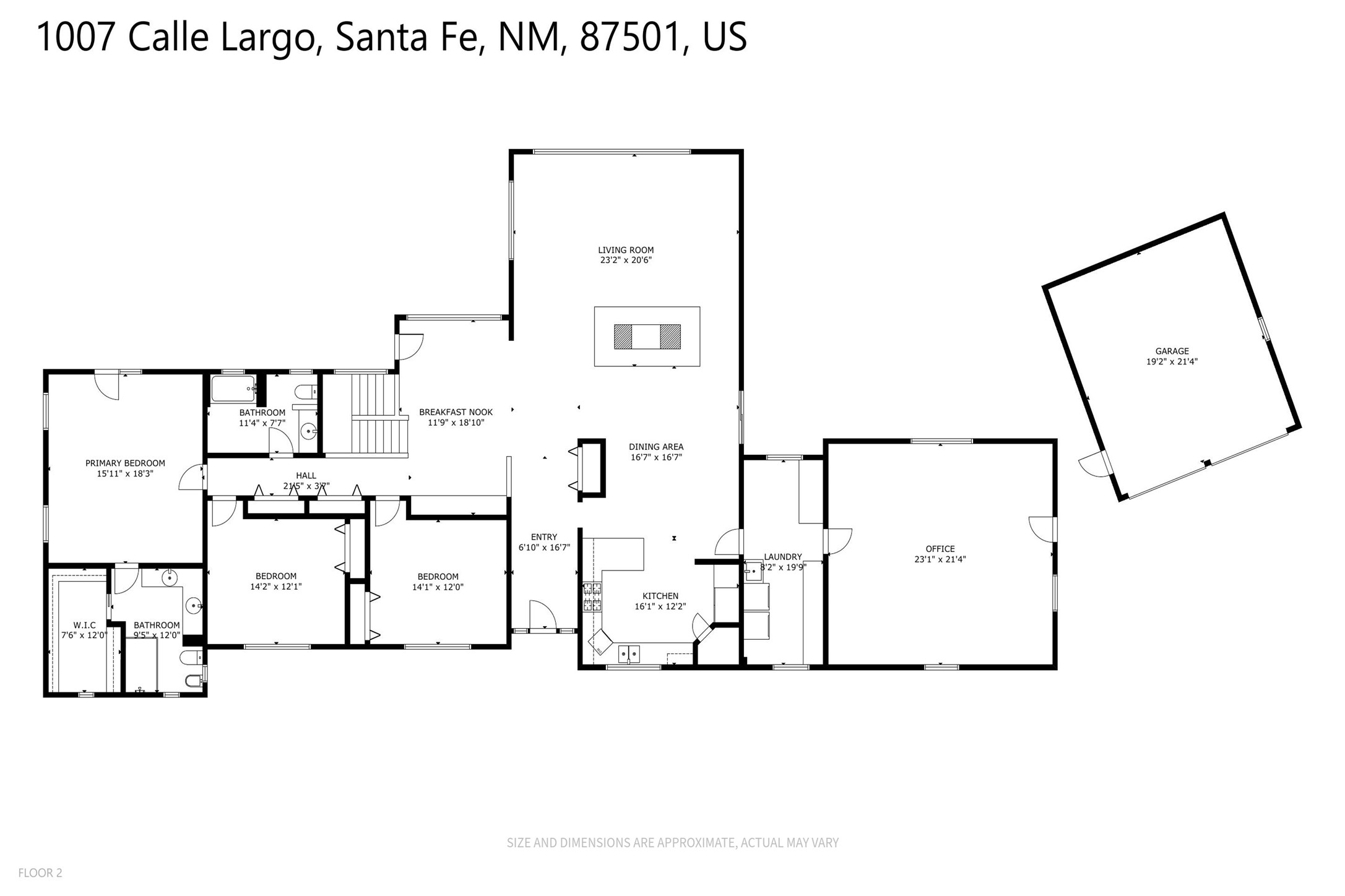 Located on 1.26 acres, a mile from the Plaza in the classic view filled Vista Encantada neighborhood, this home has been beautifully updated and landscaped. With the main living areas all on one level, there is also a one-bedroom lower-level casita with separate entry, full kitchen, big Sangre view and outdoor space. This makes for excellent privacy and separation for either guests, an income producing rental or a home office/studio situation. Entering the main house through a wide front veranda, there is a gracious entry and nice open feel between the living and dining rooms which both enjoy the stacked Anasazi stone fireplace, huge banks of windows to all the mountain views, fantastic light as well as open access to the kitchen. The cook's kitchen has new stainless appliances, granite counters, wine cooler, walk in pantry and plenty of storage. Super mud room/laundry off the kitchen leads to a large office or family room with separate entry and a breezeway to the two-car garage. Off the dining is a private covered bricked patio with views to Sun and Moon mountains, Atalaya, Picacho and the Sangres. Not to mention a private hot tub spot from which to enjoy sunrise or moonrise over the mountains with the sound of the fountain in the background! A sweet music room/game room leads back to the bedroom wing, with great storage for linens and extra outerwear. The two guest bedrooms share a full bath and the primary suite enjoys the big views, opens to a high wrap around ipe wood (a hard wood from South America) deck, gorgeous stacked stone bathroom with bidet and walk in closet with built ins. Down the stairs from the music room is a cozy office or study with a wall of bookcases and an incredible bonus storage room. There are mini splits throughout for summer cooling and solar to nearly eliminate your electric bill!