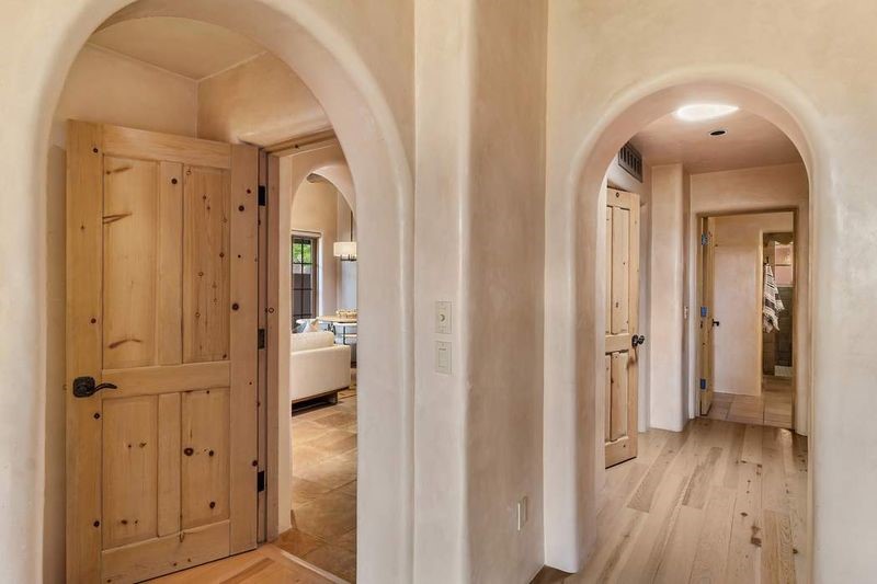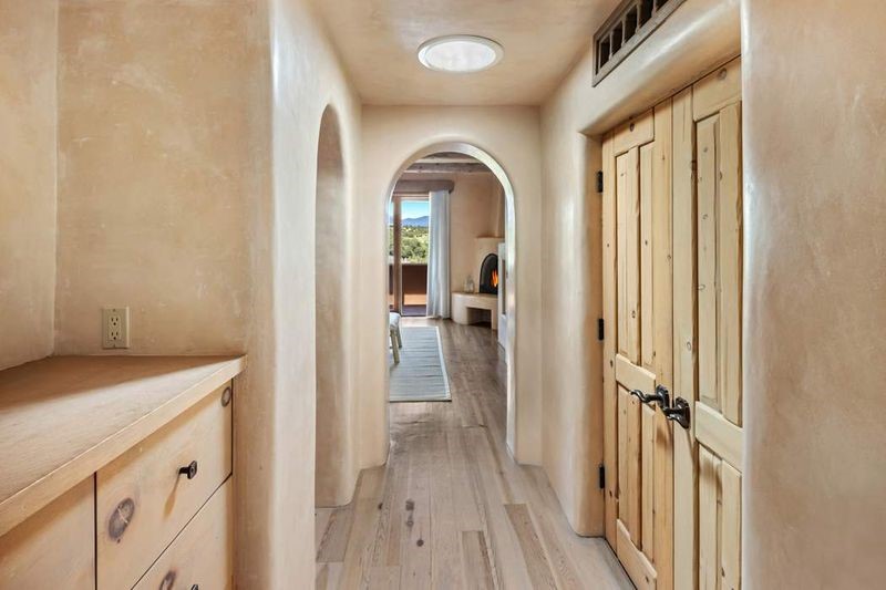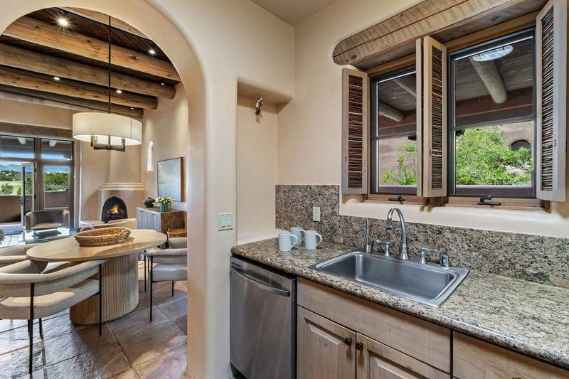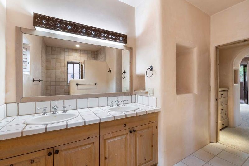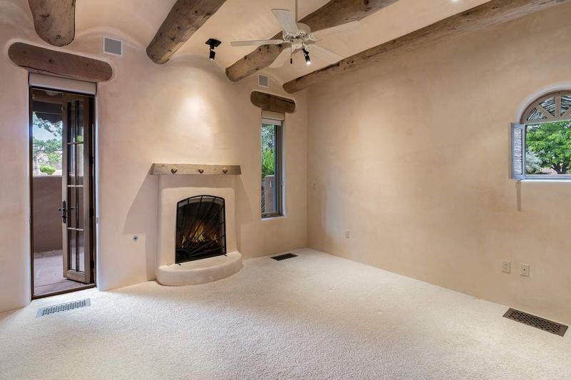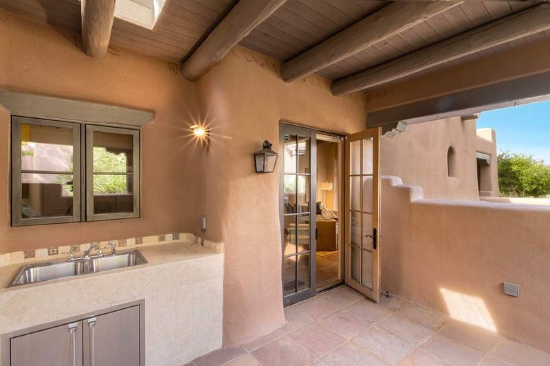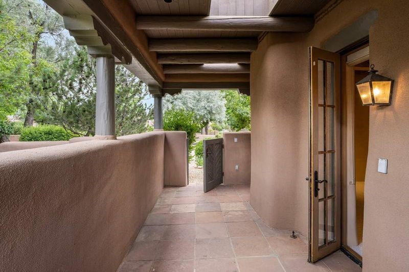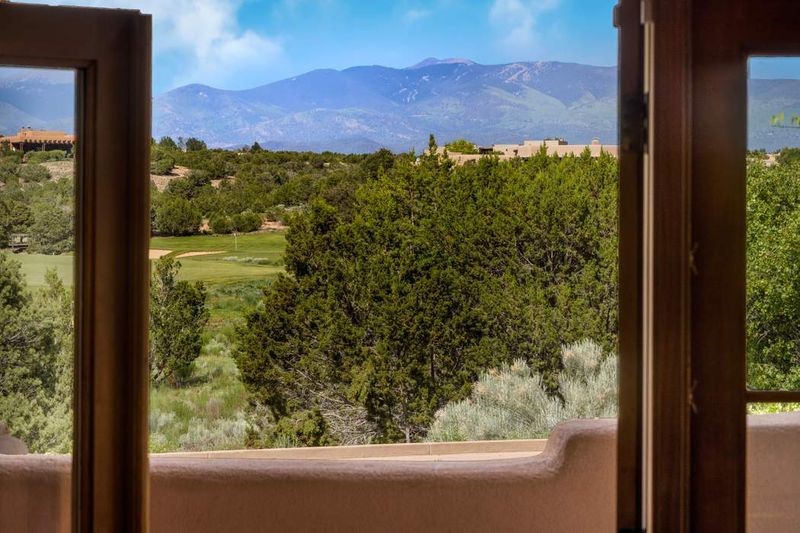 Live the ultimate Las Campanas lifestyle! Located directly across from the 1st tee of the Sunrise Golf Course and The Club at Las Campanas Hacienda Clubhouse, this beautifully designed, 2,664 square foot, single level residence, with stunning Sangre de Cristo Mountain and golf course views, is a rare offering and not to be missed! Located in the Club Casitas neighborhood, within the famed community of Las Campanas, this exceptional home is sited in a rare, park-like setting, with lushly landscape grounds and walking paths, all of which are maintained by the HOA and delights with a true sense of community. Design feature highlights include the three spacious, well-appointed owner's suites, each with spa-like baths, walk-in closets and, covered and enclosed portals and separate entrances. Entertaining is a joy with the welcoming great room which opens to the kitchen, outdoor BBQ, and vast outdoor seating and dining areas, all of which are fully enclosed for privacy and pets. Ideal as a perfect secondary lock and leave residence, or primary residence, this incredible Las Campanas home offers rare adobe construction, an expansive and private front entrance courtyard, one of the best sited patios in all of Las Campanas with a Kiva fireplace, soft arches and creamy plaster walls throughout, soaring great room ceilings with rich vigas accents and a thoughtful floor plan with desirable separation of space, including a separate entrance for the fully independent guest wing. Walking distance to The Club at Las Campanas Clubhouse, the Sunrise and Sunset Golf Courses and The Club at Las Campanas Fitness, Pool, Spa and Tennis Center, this exceptional home boasts the finest level of craftsmanship, has been well maintained and is move-in ready. Membership to The Club at Las Campanas is optional and by invitation only.