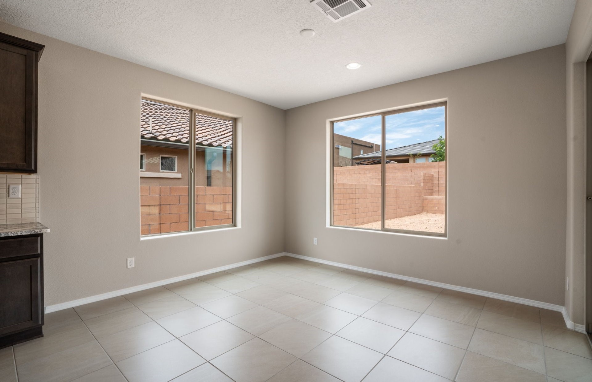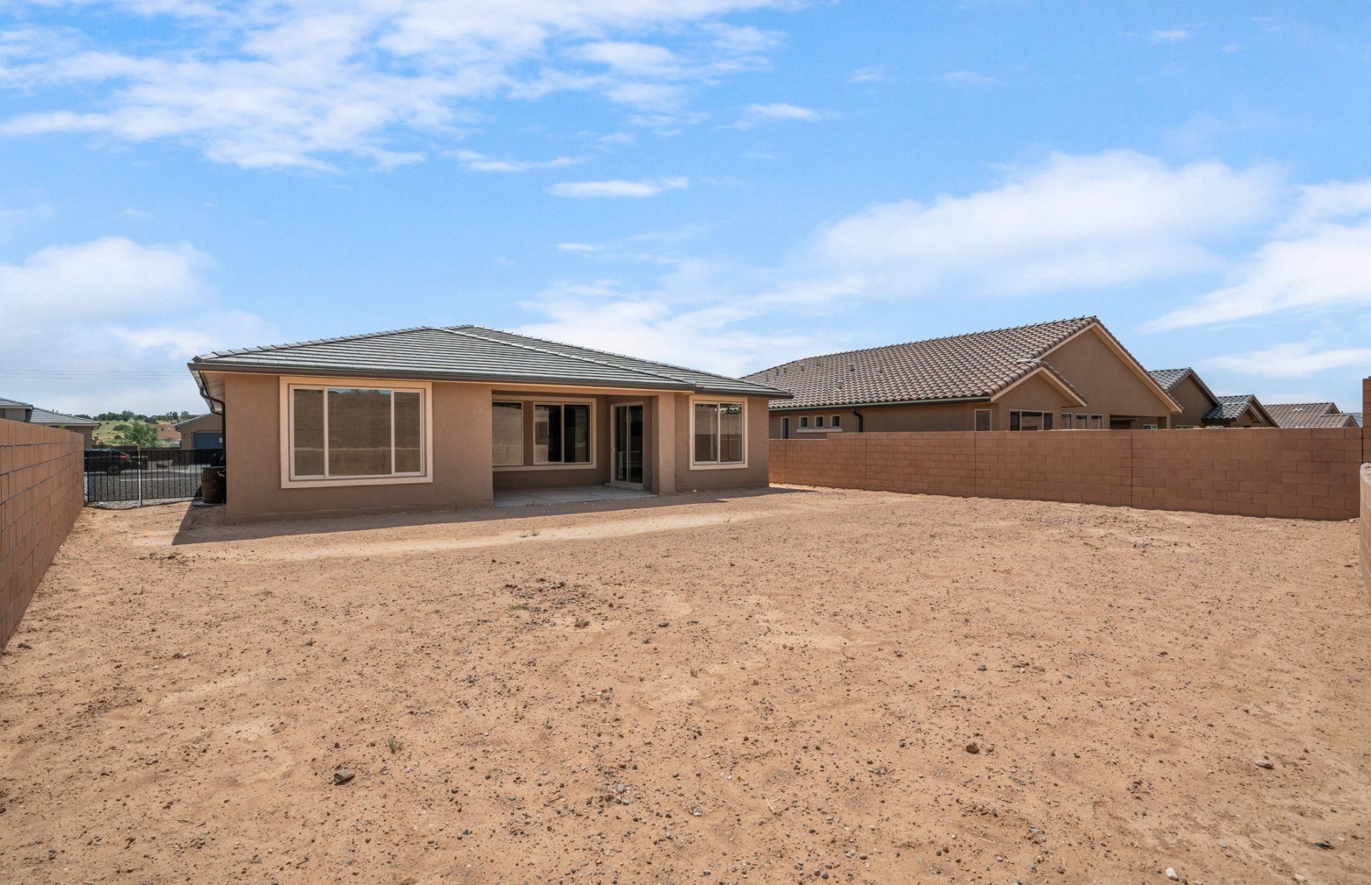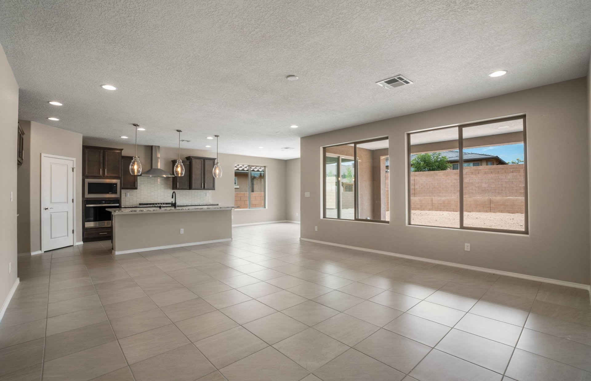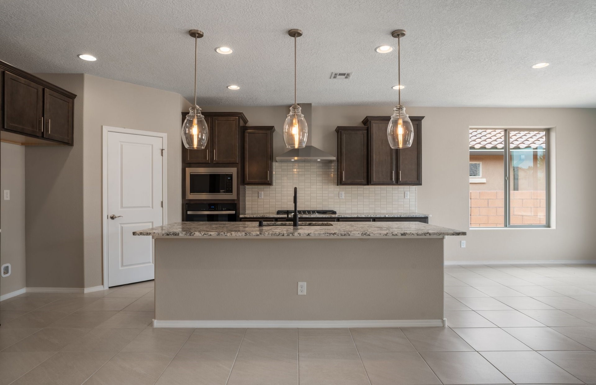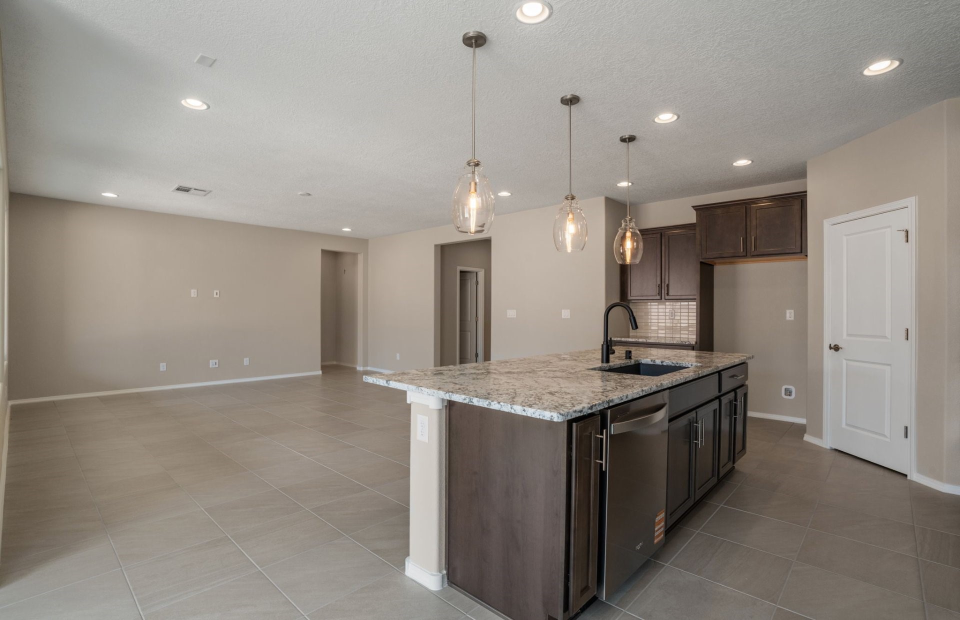 Welcome to this beautifully designed single-story home that blends comfort, function, and style. Featuring a thoughtful split-bedroom layout, this 3-bedroom, 2.5-bath home offers both privacy and open-concept living, ideal for entertaining.At the heart of the home is a gourmet kitchen with a large island, stunning granite countertops, and ample cabinet space--perfect for home chefs and hosting gatherings. The adjacent dining and living areas flow seamlessly, all highlighted by beautiful tile flooring that adds both elegance and durability. A flex space provides endless possibilities--use it as a home office, playroom, gym, or guest area to suit your lifestyle. The primary suite is tucked away for maximum privacy and includes a spacious en-suite bath and generous walk-in closet. Step outside to your own private oasis: a covered back patio opens to an oversized backyard, offering room to relax, garden, or create your dream outdoor retreat.