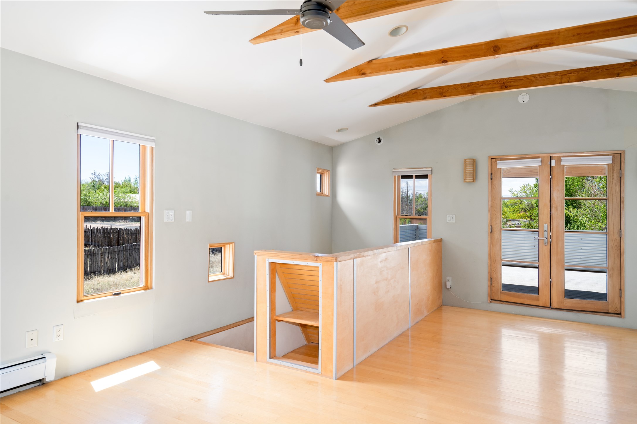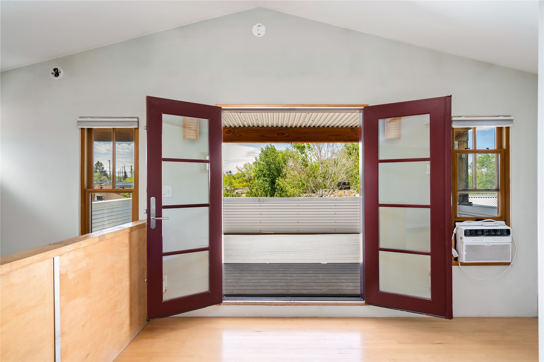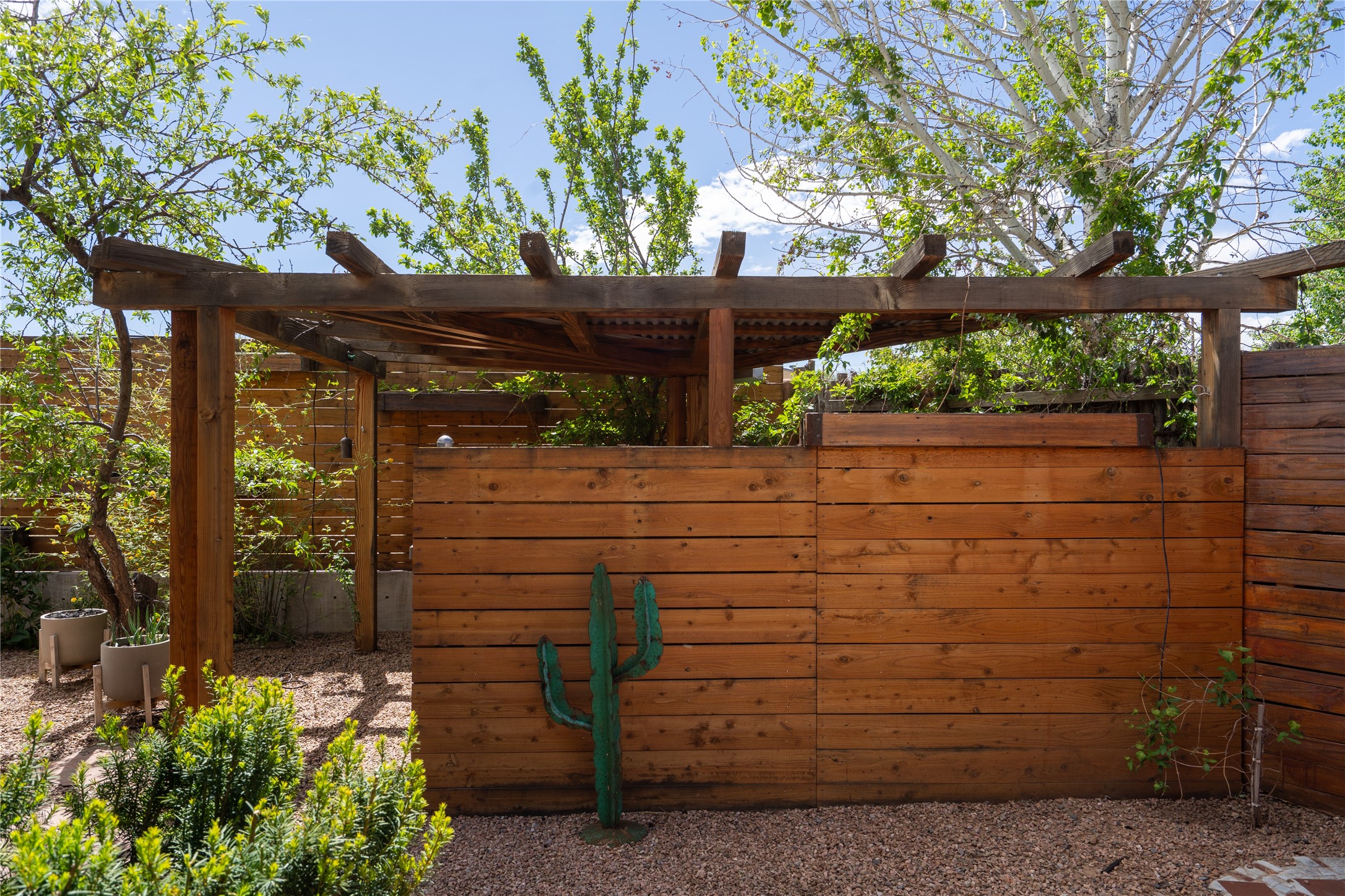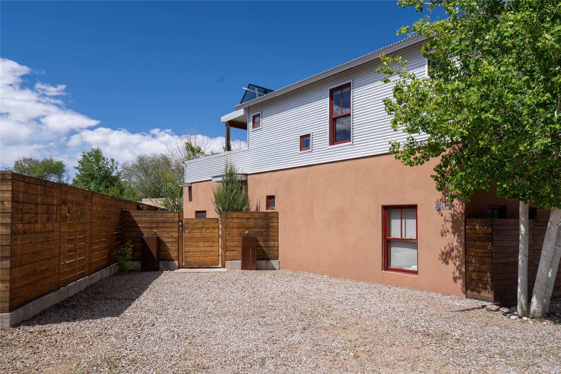 Price Reduced November 4th, and now offering $25,000 in Seller concessions to use toward improvements or apply as needed. Modern Adobe Retreat with Private Casita. Timeless adobe meets modern elegance in this thoughtfully designed 3-bed, 2-bath home. Open and full of light, a full bath, kitchen, open living areas, and two bedrooms are downstairs. The upstairs primary suite offers privacy, views, and a spacious balcony. Inside is serene, with exposed wooden beams, hand troweled clay walls, and in floor radiant heat.A separate 1-bed casita, complete with private entrance, open kitchen-living space, dedicated office, and private yard space will be inviting for your guests, income, or multigenerational living.Outside, mature landscaping frames every view. Dual pet doors offer ease and freedom. A domed adobe storage structure out front and a generous garden shed in the back blend with a pergola-shaded BBQ area to complement the intelligent, inviting layout. A visual palate of earth, wood, metals and light awaits.Private. Flexible. Ready to live in--or to earn.