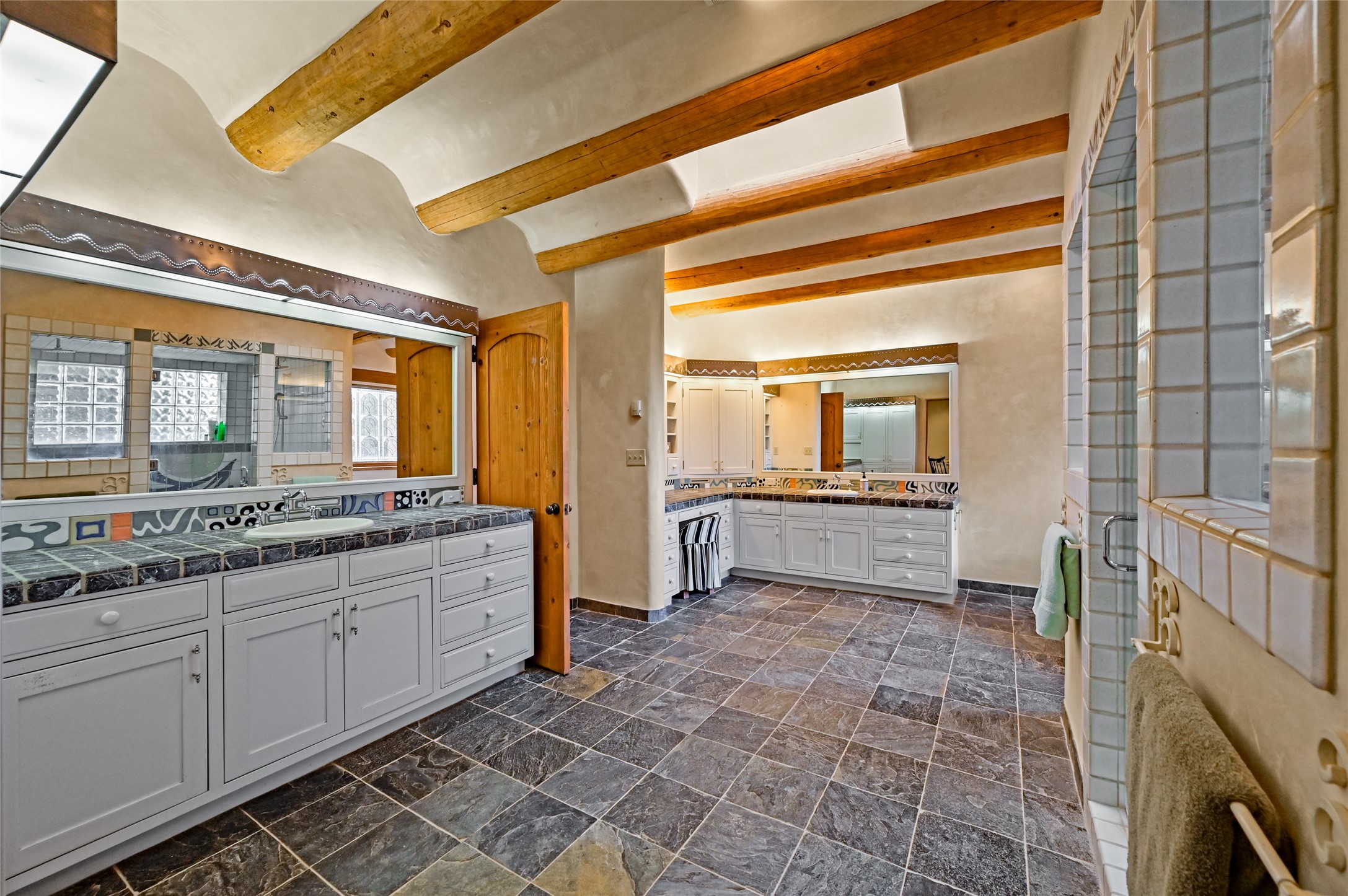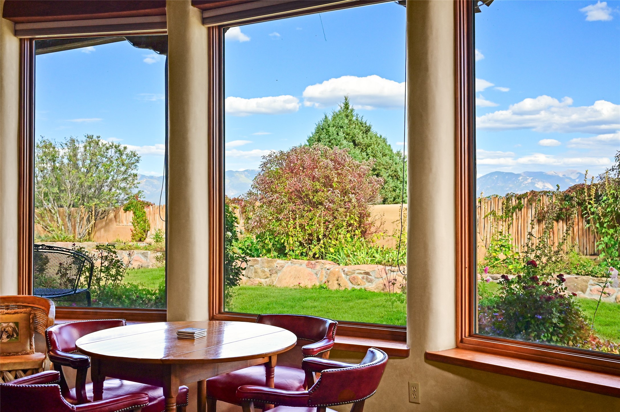Welcome to a truly exceptional Northern New Mexico retreat--110 acres of serene beauty and luxurious living. This remarkable property features a stunning 4-bedroom, 3-bath primary residence once showcased in Enchanted Homes magazine, a testament to its timeless design, high-level craftsmanship, and one-of-a-kind charm.Inside, you'll find hand-carved beams, a magnificent stone fireplace, and warm, inviting spaces designed for comfort and elegance. The chef's kitchen is a dream for culinary enthusiasts, while multiple private patios and lush, thoughtfully landscaped gardens create a true oasis in the desert--perfect for quiet mornings, lively gatherings, and starlit evenings.Conveniently located just 10 quick minutes west of the Taos Regional Airport, this extraordinary estate is as functional as it is beautiful. A grid-tied solar system, private well, and high-speed fiber optic internet ensure modern sustainability and convenience. The land includes well-appointed outbuildings: storage, tack room, hay barn, and a 3-bedroom, 2-bath manufactured caretaker's home--ideal for guests, a ranch manager, or extended family.Take in breathtaking 360-degree views from every angle and enjoy the option for an elk hunting license, adding unique appeal for outdoor enthusiasts. Whether you dream of tending gardens, riding horses, or simply soaking up the peace and privacy under expansive skies, this property invites you to experience the very best of refined country living.If you've been searching for a luxurious private sanctuary that must be seen to be truly appreciated, this is the one.