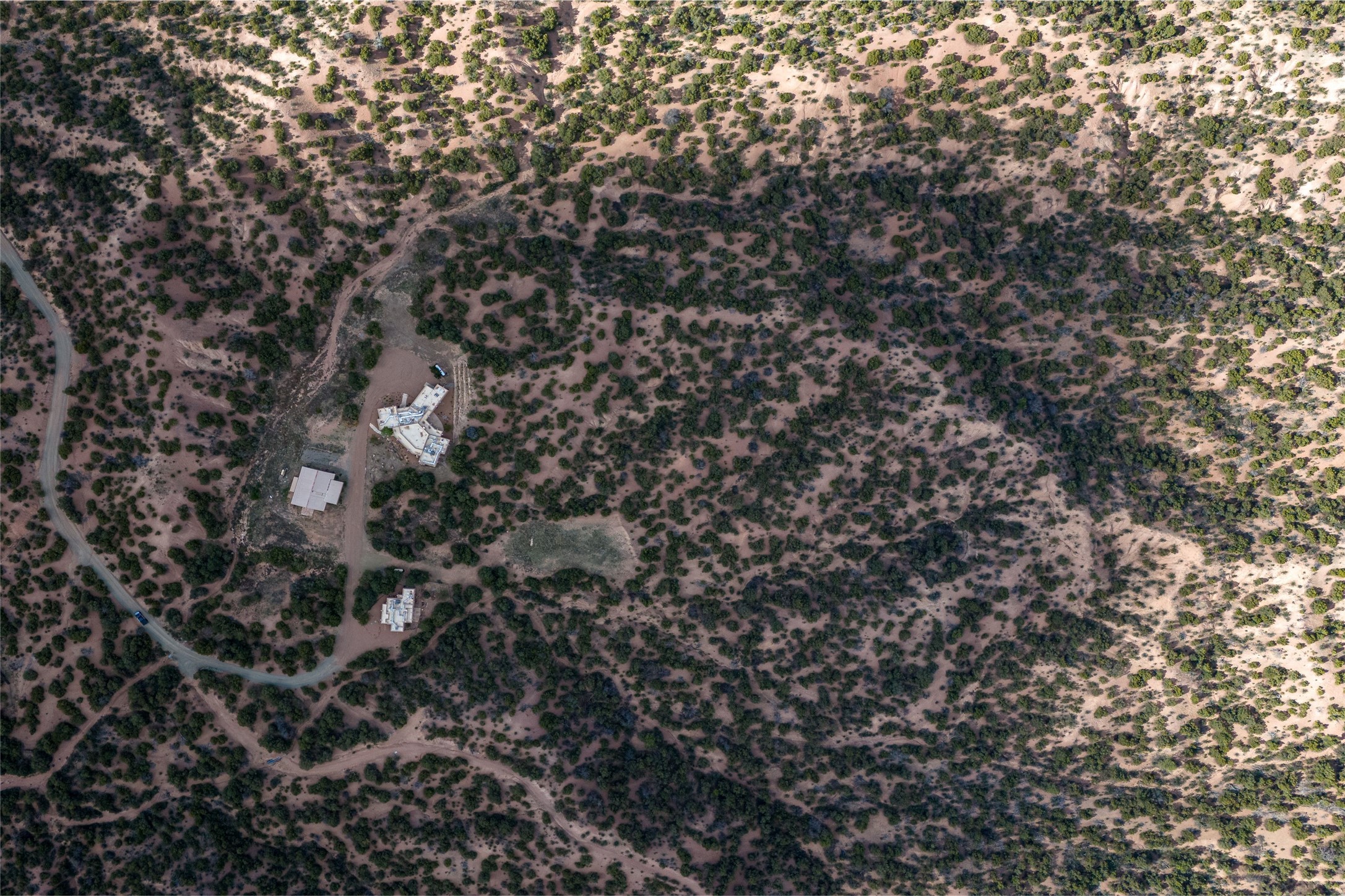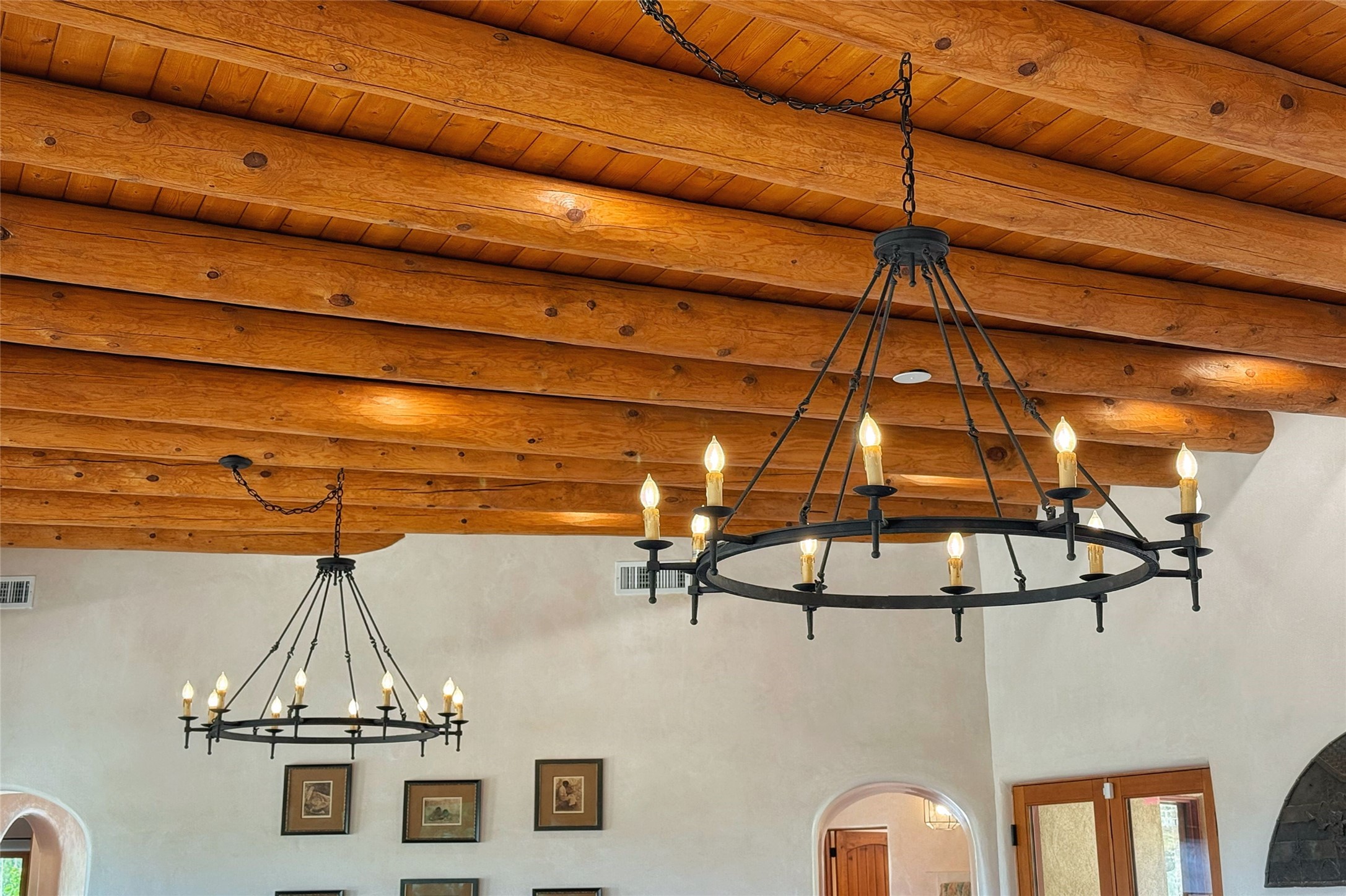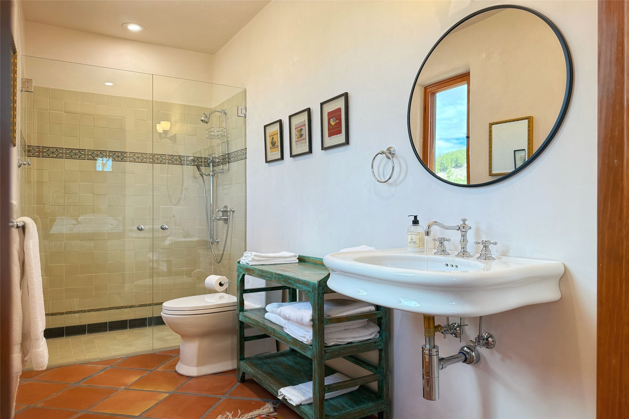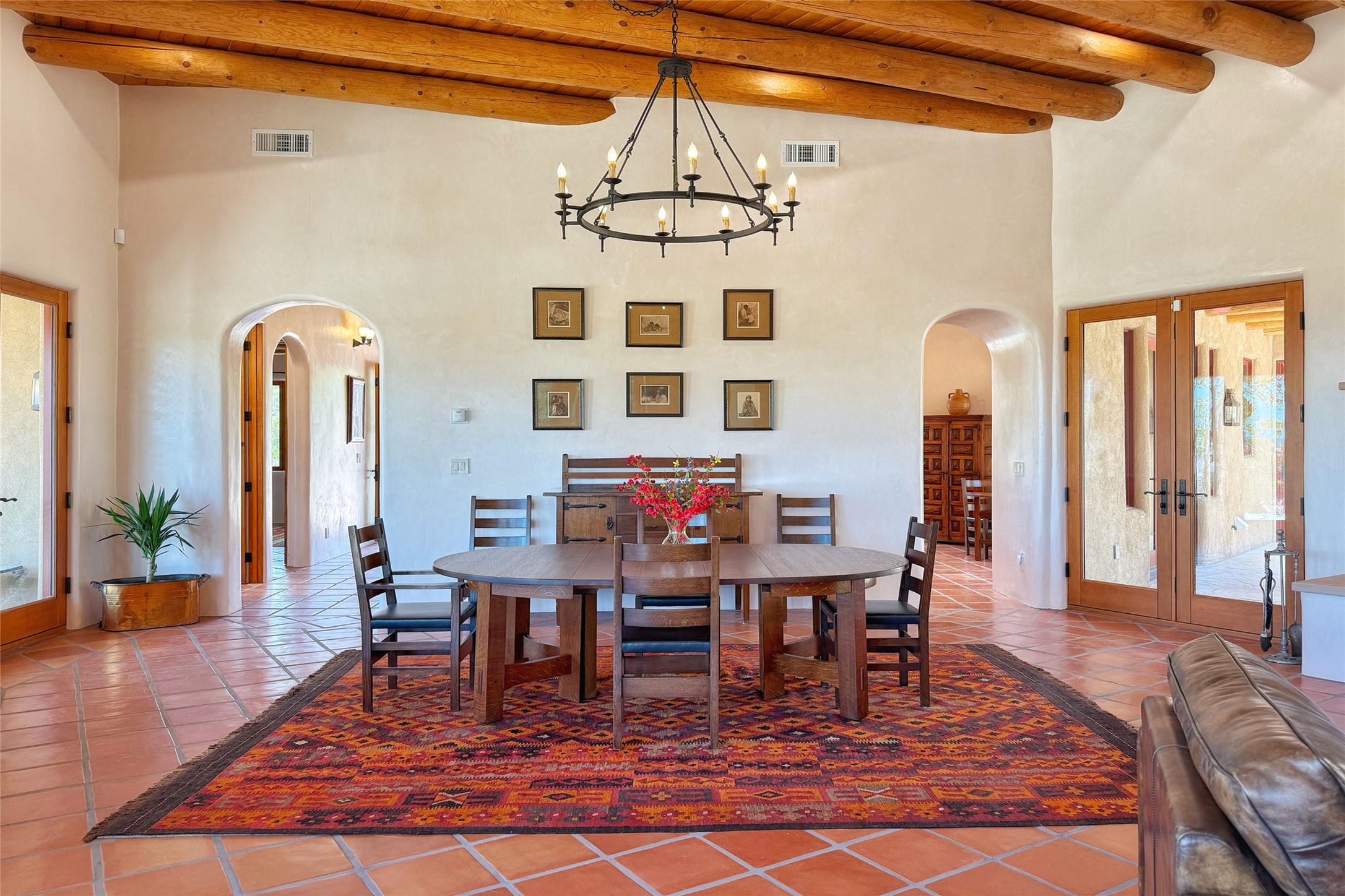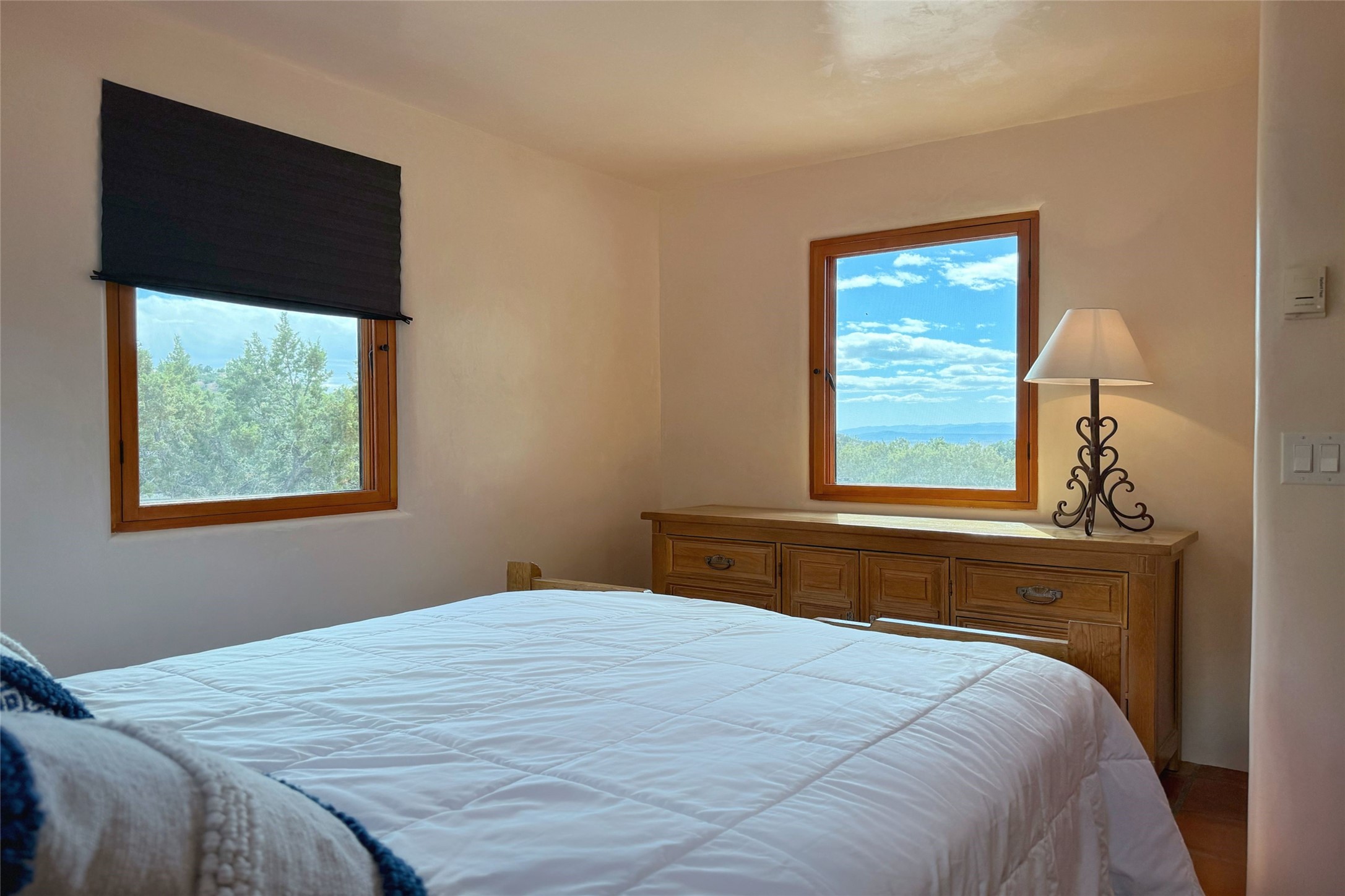 Southwest Elegance Meets Modern Luxury - Tesuque Estate Near Santa FeExperience timeless charm and refined upgrades in this exceptional Tesuque estate just 15 minutes from downtown Santa Fe. The property includes a beautifully renovated main house, a private guesthouse, and a versatile third structure ideal as a studio, barn, or additional guest quarters.The main residence showcases superior craftsmanship with diamond plaster walls, Loewen windows and doors, and Saltillo tile floors. The chef's kitchen features SubZero and Wolf appliances, an Asko dishwasher, an imported porcelain farmhouse sink, and striking Taj Mahal quartz countertops. The great room impresses with soaring ceilings, dual chandeliers, a wood-burning fireplace, and expansive western views, flowing onto two covered flagstone patios--perfect for indoor-outdoor living.The primary suite offers a luxurious retreat with its own fireplace, a spa-like bath with soaking tub, walk-in shower, dual pedestal sinks, and an adjacent study with fireplace and patio access. Two additional bedrooms complete the home--one with ensuite bath, the other with access to a nearby half bath. Comforts include radiant floor heating and central A/C.The guesthouse offers two bedrooms and two baths, with upgrades mirroring the main home: diamond plaster walls, quartz countertops, radiant heating, central A/C, and Loewen windows. Its primary suite features a kiva fireplace, soaking tub, and walk-in shower, while the second bedroom enjoys tranquil western views. A cozy living/dining area with kiva fireplace and a private flagstone patio complete the space.Set on a beautifully landscaped lot with mature junipers, fenced areas, and irrigated gardens, this private estate offers peace and elegance just minutes from the heart of Santa Fe.