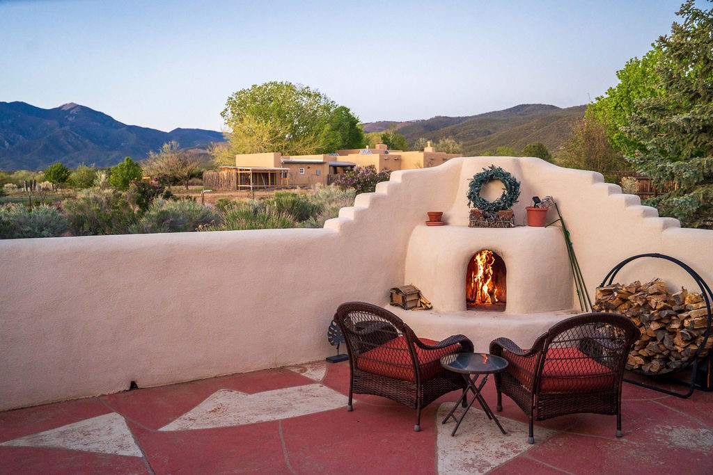 Welcome to this beautiful well maintained home in the Vegas de Taos Subdivision discover comfort and community in this desirable neighborhood with spectacular mountain and sunset views. Enjoy municipal services, newly paved roads, sidewalks, and underground utilities in a setting that feels both peaceful and connected. This property is just five minutes from historic Taos Plaza, offering easy access to shopping, dining, art, and culture. Step inside to an open and welcoming great room with vaulted 14 foot tongue and groove ceilings and a spacious kitchen with peninsula designed for both culinary creativity and casual gatherings. A sunlit sitting area tucked into a curved nook creates an ideal space for reading, reflection, or relaxation. The home features radiant floor heating and tile throughout including closets adding comfort and ease of maintenance. The great room includes thoughtful design accents that reflect the regions Southwestern character, while built-in electrical floor outlets allow for flexible furniture placement. This well-appointed residence includes 3 bedrooms and 2.5 bathrooms, providing both functionality and privacy. The generously sized primary suite features a walk-in closet and an ensuite bathroom with a skylight, claw foot soaking tub with hand held shower, double sinks, and a separate walk in shower. The second full bathroom conveniently located between the two additional bedrooms also includes a walk in shower with a built in bench. A discreetly located powder room off the great room offers added convenience for guests. A gas fireplace in the living area enhances the cozy atmosphere during cooler seasons, while three swamp coolers help maintain comfort during warmer months. Outdoor living is effortless, with a patio that offers unobstructed views of Pueblo Peak and access from both the great room and primary bedroom. A traditional kiva fireplace invites year-round enjoyment, and a four person hot tub provides a relaxing retreat for stargazing or listening to elk bugling in the distance. The two-car garage includes ample built-in storage and an additional refrigerator/freezer, with both keypad entry and automatic openers. The fully fenced, three-quarter-acre lot is designed for low-maintenance care and is enhanced by mature trees including cottonwoods and evergreens that add privacy and natural beauty. This thoughtfully designed home offers comfort, functionality, and scenic surroundings, all within minutes of the cultural and recreational amenities of Taos. Whether you're looking for a full time residence, a mountain getaway, or an easy to maintain base in the heart of Northern New Mexico, this home offers comfort, community, and that unmistakable Taos spirit. Location, lifestyle, and livability this is Vegas de Taos.