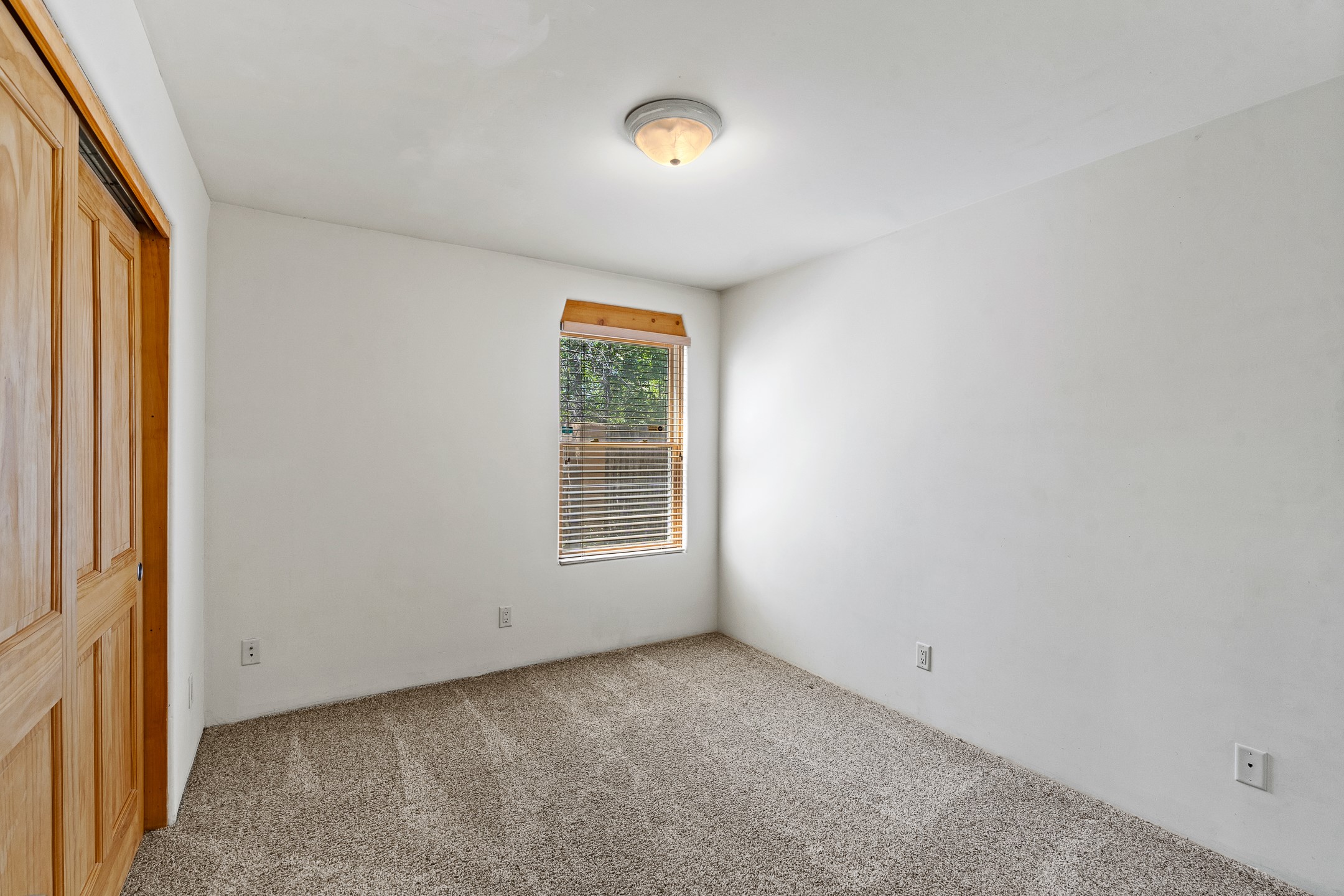 A versatile and charming property featuring a 3-bedroom, 2-bath main house plus a separate 1-bedroom, 1-bath guest house; ideal for rental income, extended family, or a home studio. The main house offers a spacious living area with tile floors, wood-beamed ceilings, and a traditional kiva fireplace, opening into the dining and kitchen area and a lovely covered patio area in a fully fenced yard. The primary suite includes a private bath and walk-in closet. A two-car garage adds to the flexible usage of the property. The guest house has its own entrance and includes a living area, kitchenette, bedroom, and full bath. There is also a washer / dryer hook-up, and it is separately metered. Centrally located, less than a 10-minute walk to restaurants such as Escondido and Tumbleroot Brewery, and a 10-minute drive to the Plaza.