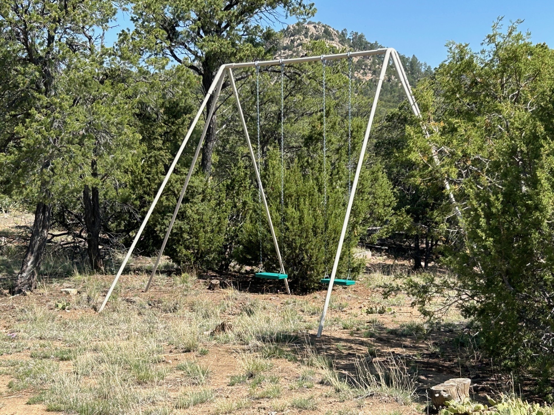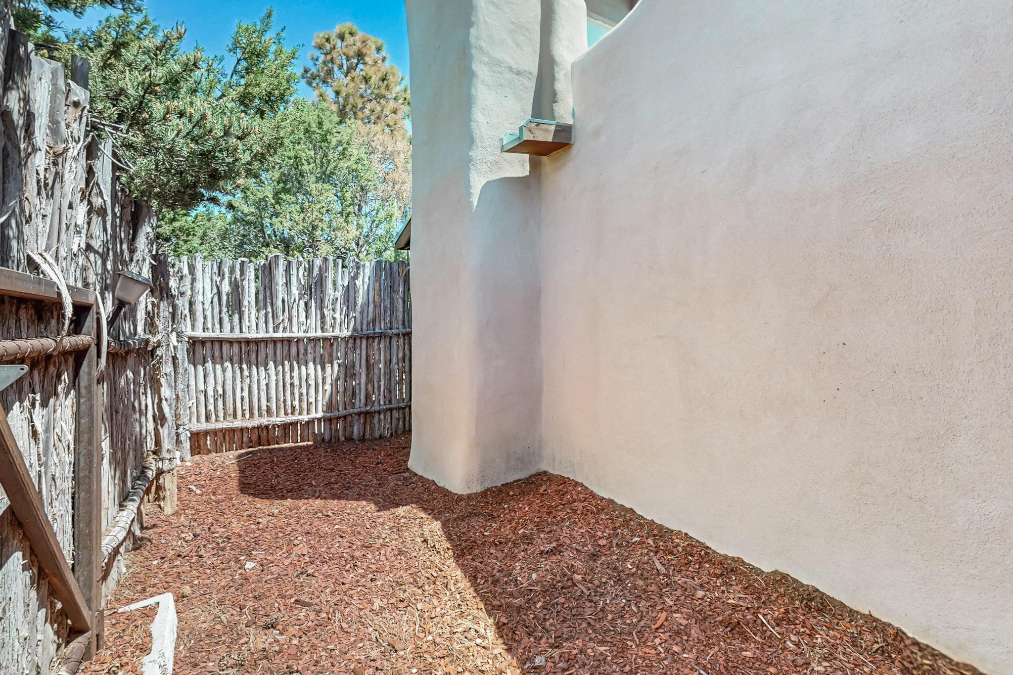 Tucked along the iconic Old Santa Fe Trail, ideal as a primary or get away residence, this enchanting adobe & frame-built appx 3147 sqft main home with an appx 480 sqft attached studio offers country living yet only 8 miles from the heart of downtown Santa Fe & close to amenities & restaurants (Harrys Rd House, El Gancho & more). Perfectly sited on 7.56 acres comprised of 4.56 acres + an additional lot of 3 acres, this property captures breathtaking panoramas of the Pecos & Galisteo Basins, Sandia & Jemez Mountains, & spectacular sunsets. Inside, you'll find a warm & inviting layout with a living room, kitchen with eat in nook, dining area, the charming "bottle" entry, a pantry, 3 bedrooms and 2.5 bathrooms, with a 3-car garage setup: a one-car attached garage w/ storage/workshop space, plus a detached two-car garage--all in an engaging split-level design full of Santa Fe charm & character with hand-crafted details including vigas, carved lintels, stain glass accents & more. The passive solar design with large south-facing windows & a pellet stove is efficient for heating, while adobe construction helps maintain comfortable indoor temperatures year-round. The wonderful appx 480-sqft studio with its own entrance, half bath, stainless steel work area, tongue & groove ceiling, sink & a propane heater--ideal as a home office, playroom, fitness or media room, or an easy guest suite conversion. Features/amenities include: NEW SEPTIC TANK, brick, tile & wood floors, kitchen with a conventional/convection oven, Bosch dishwasher & refrigerator, Pella windows, Artesanos fixtures, handmade tiles, solid wood doors, a balcony, peaceful patios, a pond, covered portals, walled courtyard, flagstone walkways, regraded and graveled driveway (no dirt) and more. There's even a dedicated "dog room" or additional storage leading to an appx 8-foot coyote-fenced enclosure. Gardeners will love the spacious greenhouse with sink & walled garden with apple trees ready for planting and harvest.