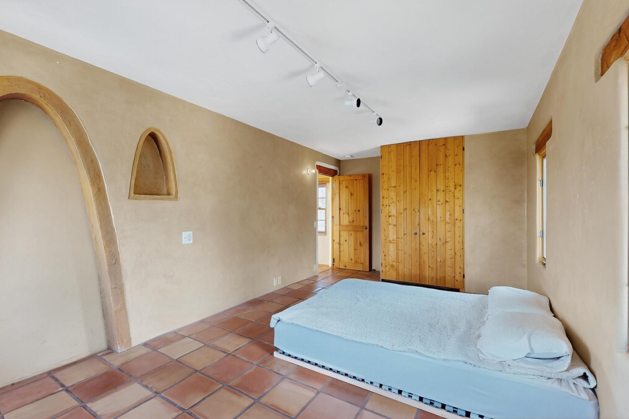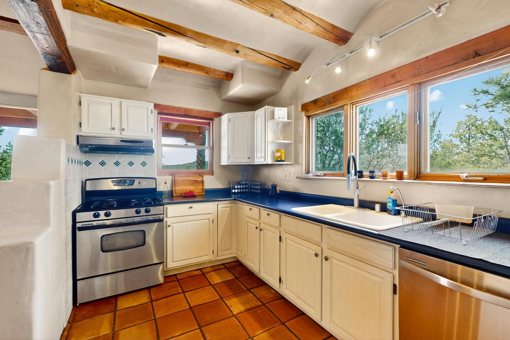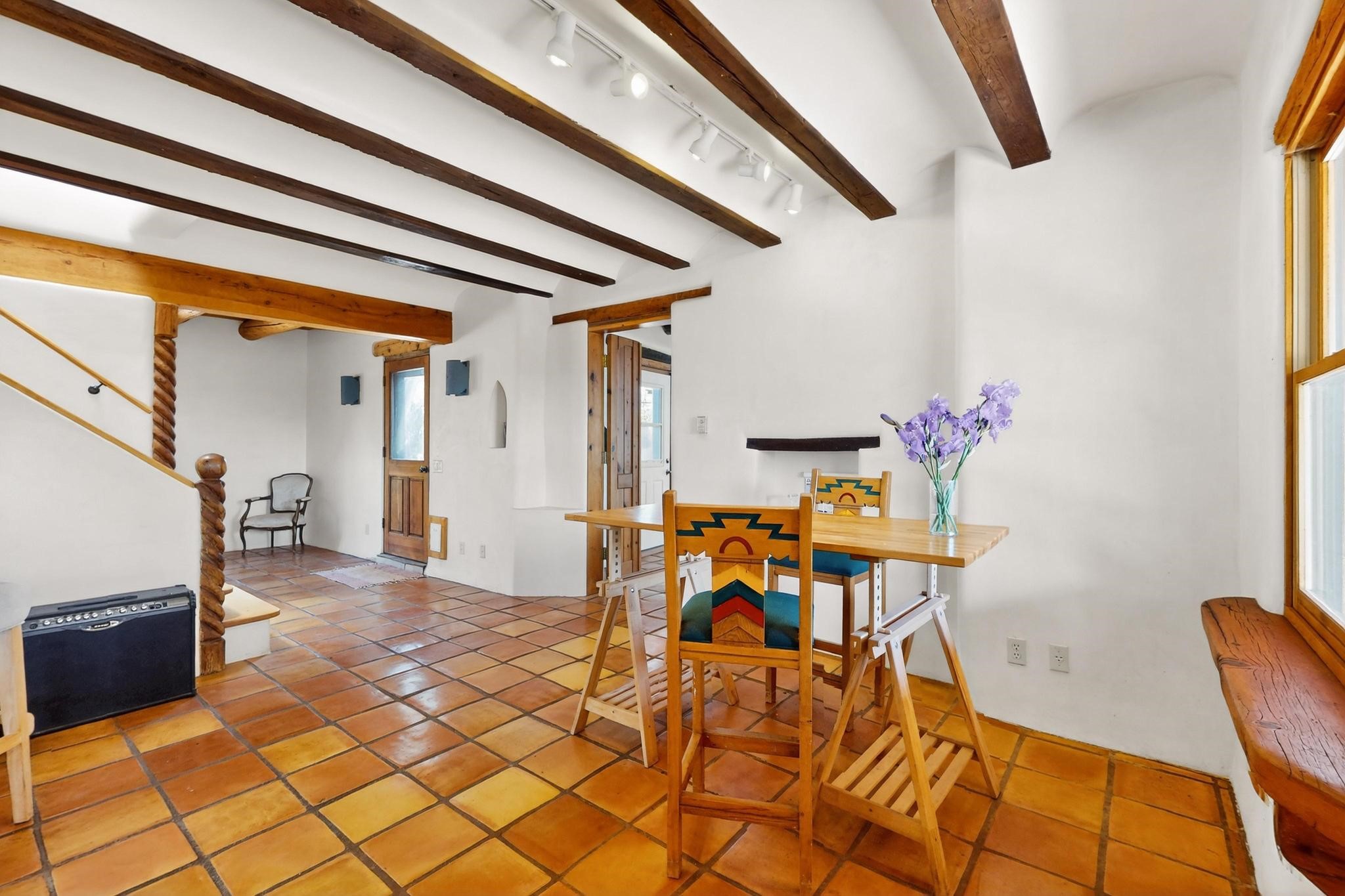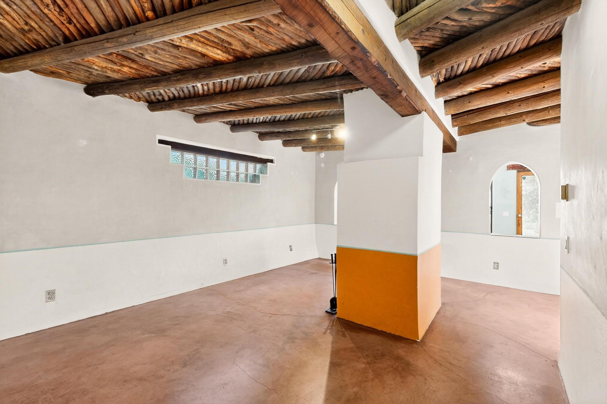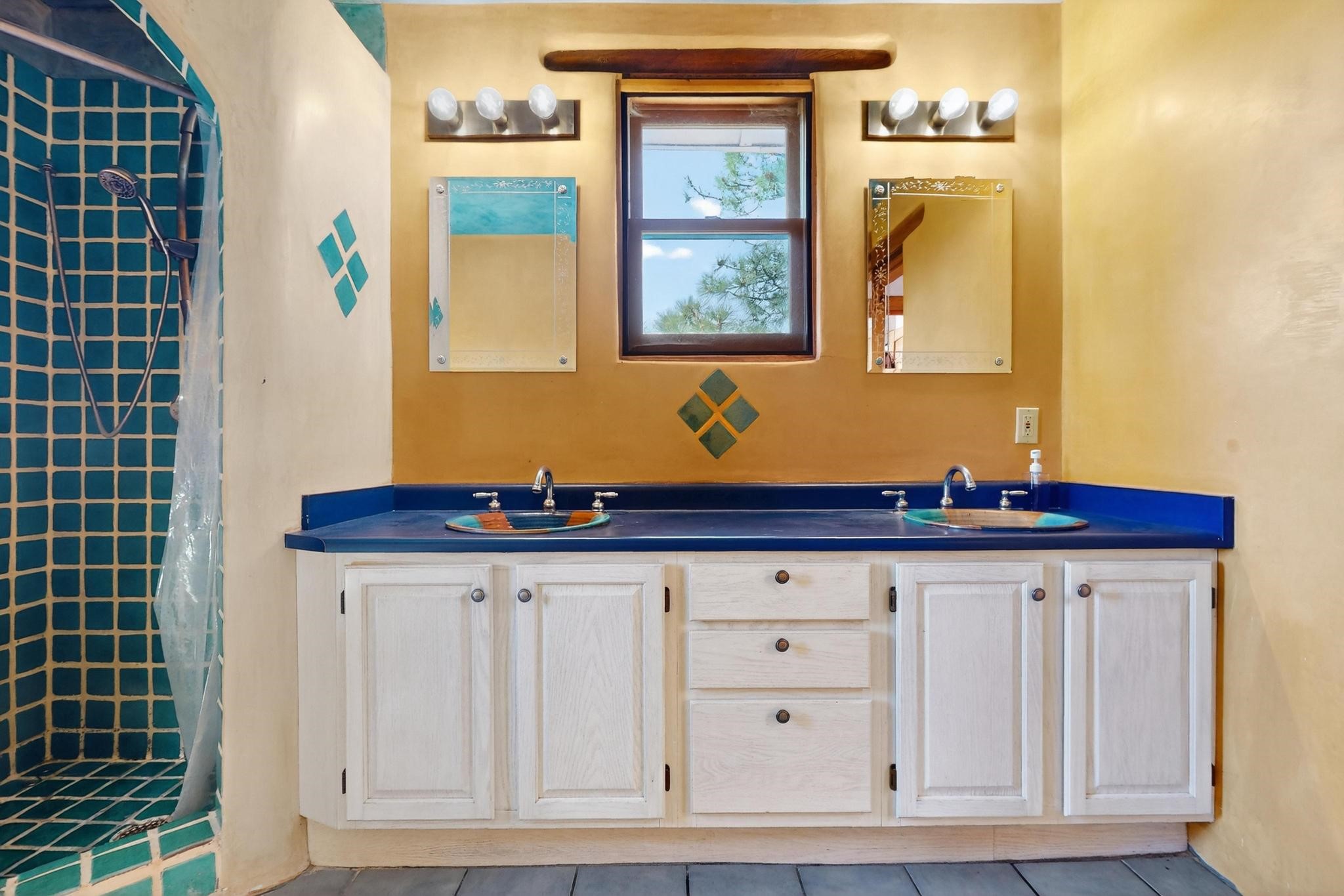Two houses reside on this beautiful 5 Acre property that is nestled among old growth pine trees, offering numerous possibilities and conveniently located about 20 minutes from town The property features two distinct homes and a studio/workshop, all within a peaceful natural environment. House #A includes 2 bedrooms, 1 bath, fireplace, stained concrete floors, hard trowel plaster walls, radiant heat, a loft, and vigas, and a private deck. House #B known as the "Lily Pad House" offers 3 bedrooms, 2 baths, fireplace, saltillo tiles, vigas, radiant heat, hard trowel plaster, wood floors, vigas, spacious kitchen, portal, and delightful koi pond with lilies. Additionally, there is a versatile studio/workshop, consisting of an enclosed vintage travel trailer perfect for guests, and an attached site-built studio/workshop, providing multiple potential uses. The property also benefits from a private well, storage sheds, and no Homeowners Association.