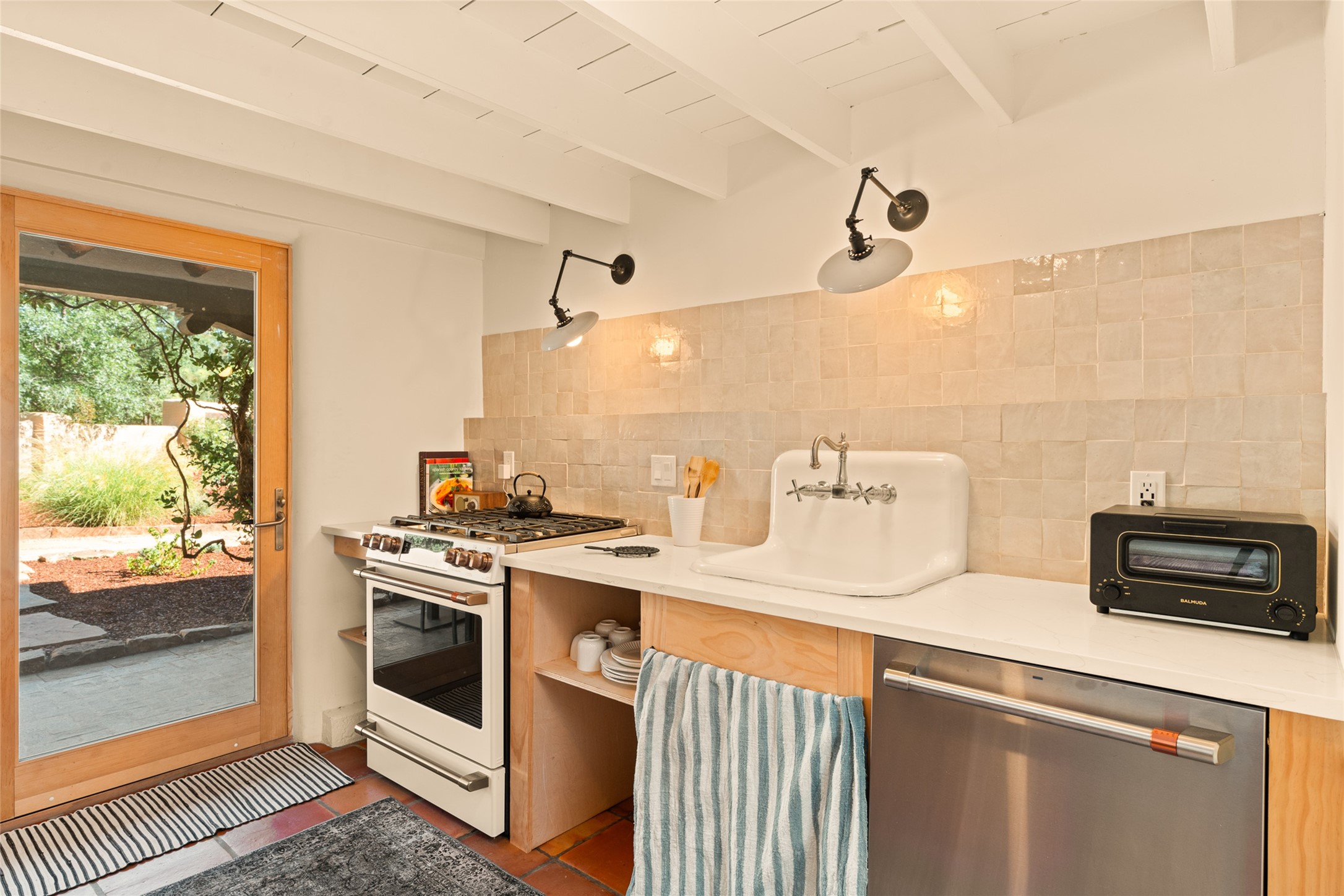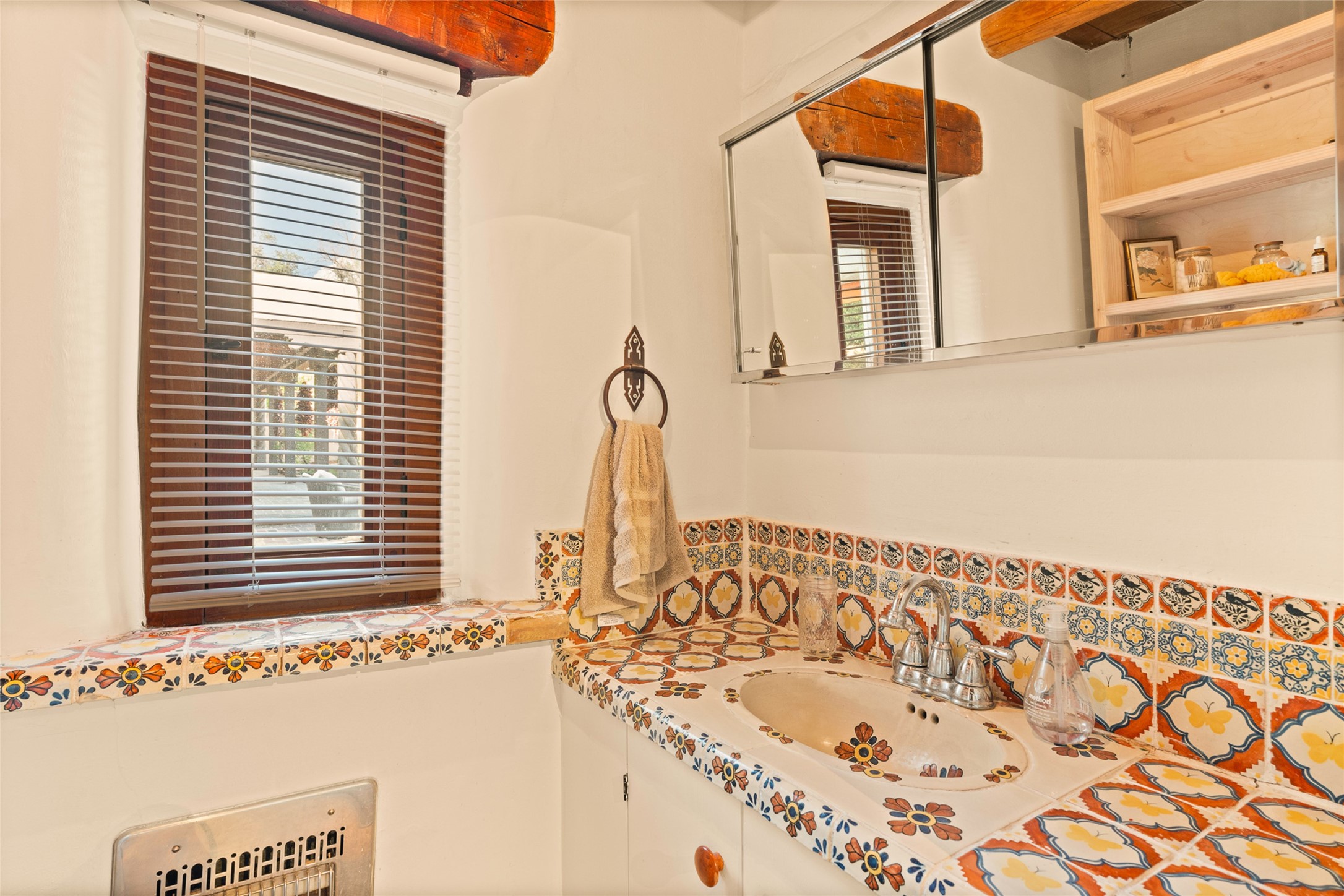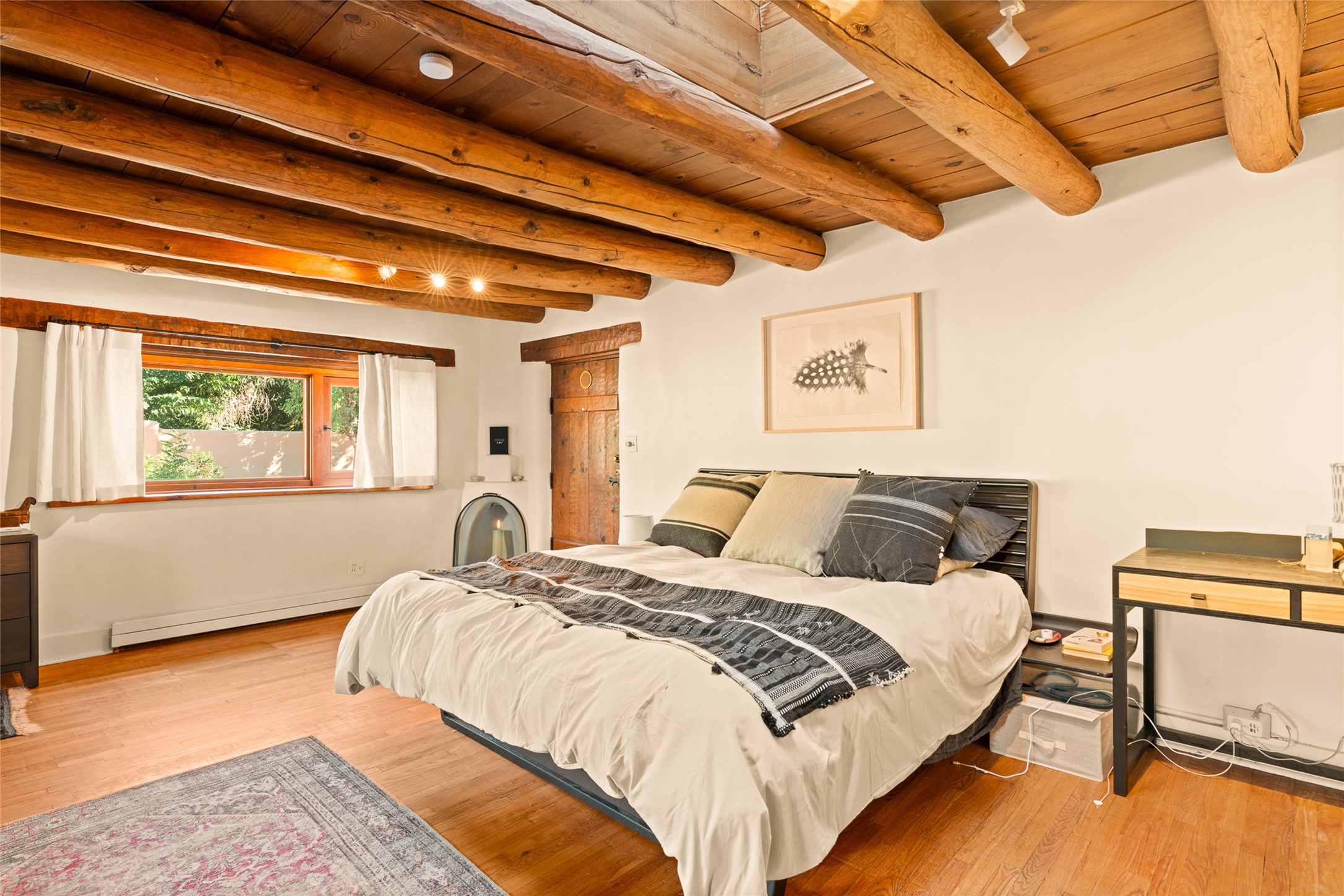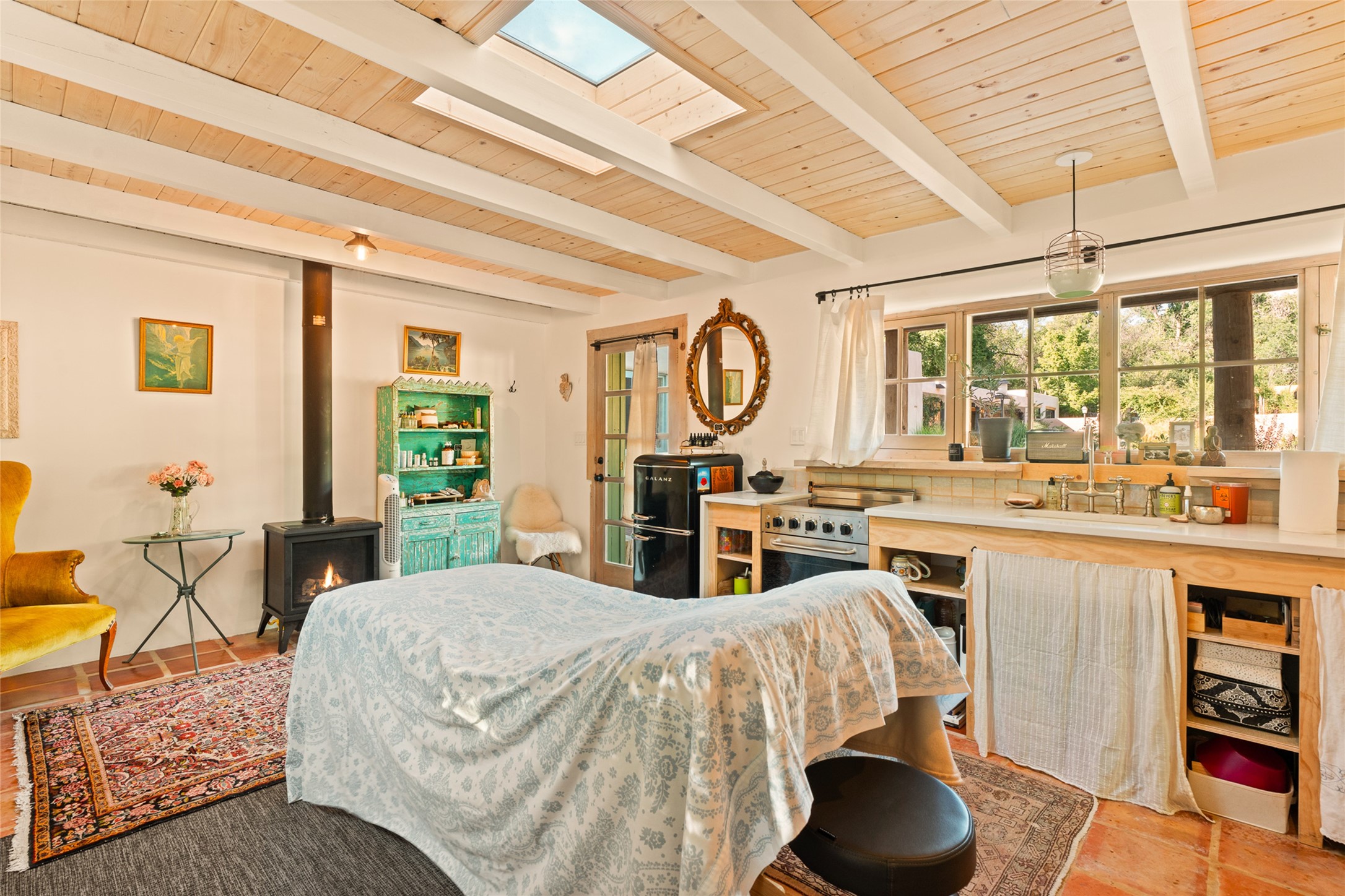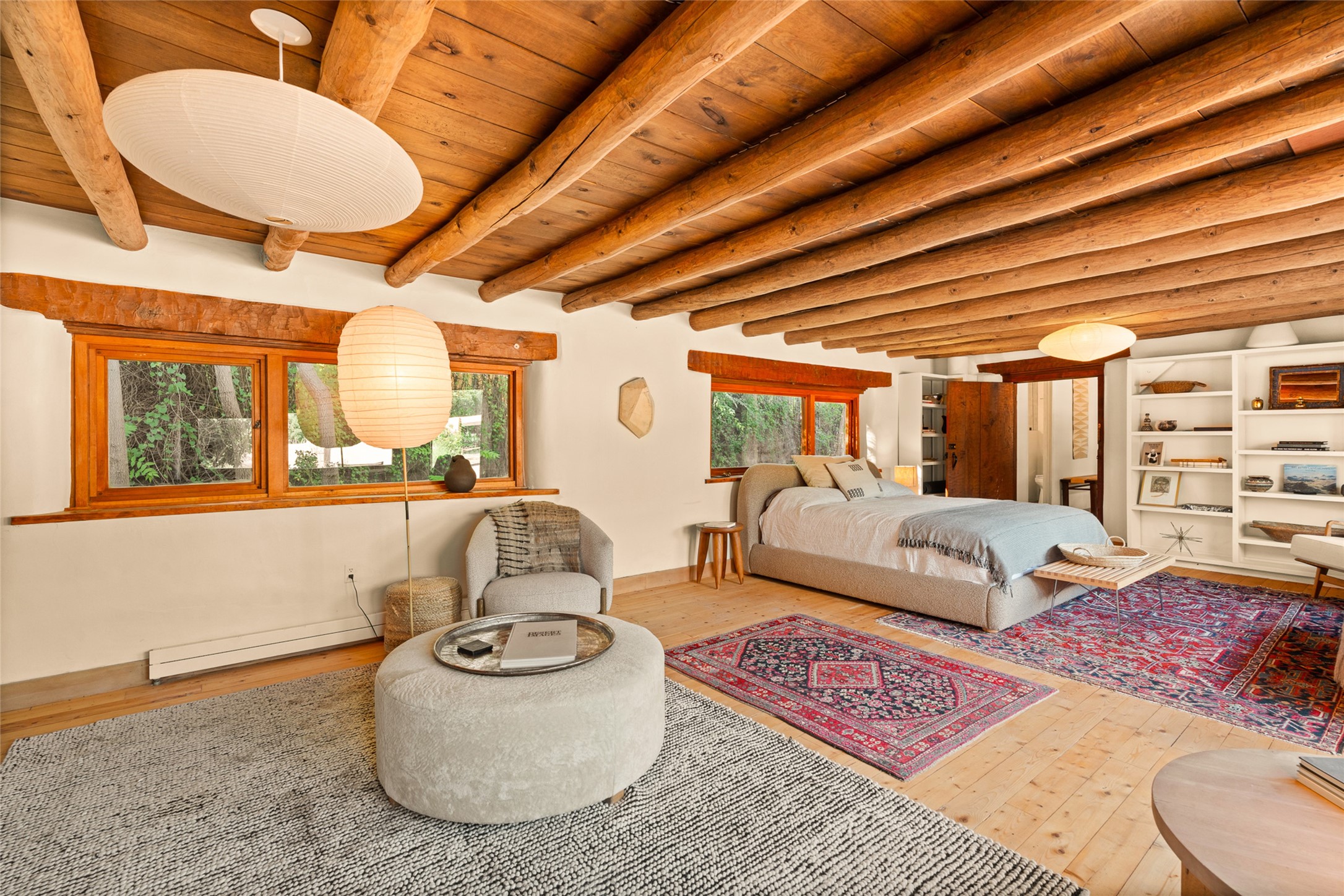 Recently updated with a rich old world charm and history (formerly El Cuervito Ranch), this private and gated compound is situated in the lush village of Tesuque just steps away from El Nido Restaurant, the famed Tesuque Village Market and the world-renowned Santa Fe Opera. Consisting of 0.754 beautifully manicured acres, the entry courtyard has stone pathways and seasonal greenery, creating a warm and inviting playground for the senses. The property consists of a main house (two bedrooms/two baths), guesthouse (one bedroom/one bath), and three separate studio spaces all served by both a shared well and the Tesuque Community Water System. The interiors of these adobe and frame constructed homes are washed with light and have vast tree-lined views in every direction. Formal living spaces open out onto a plethora of indoor/outdoor entertaining options with sitting portals weaving the beauty of nature into the living environment. There is a nice separation of space between the structures, but the property also offers many uses as it is zoned Rural Commercial, allowing many business options for the homeowner. Classic in style, this sensuous property has been fitted with mini-split heating and A/C, plastered walls, wood floors, vigas and beams, completely walled and tucked away in one of Santa Fe's finest idyllic locales.