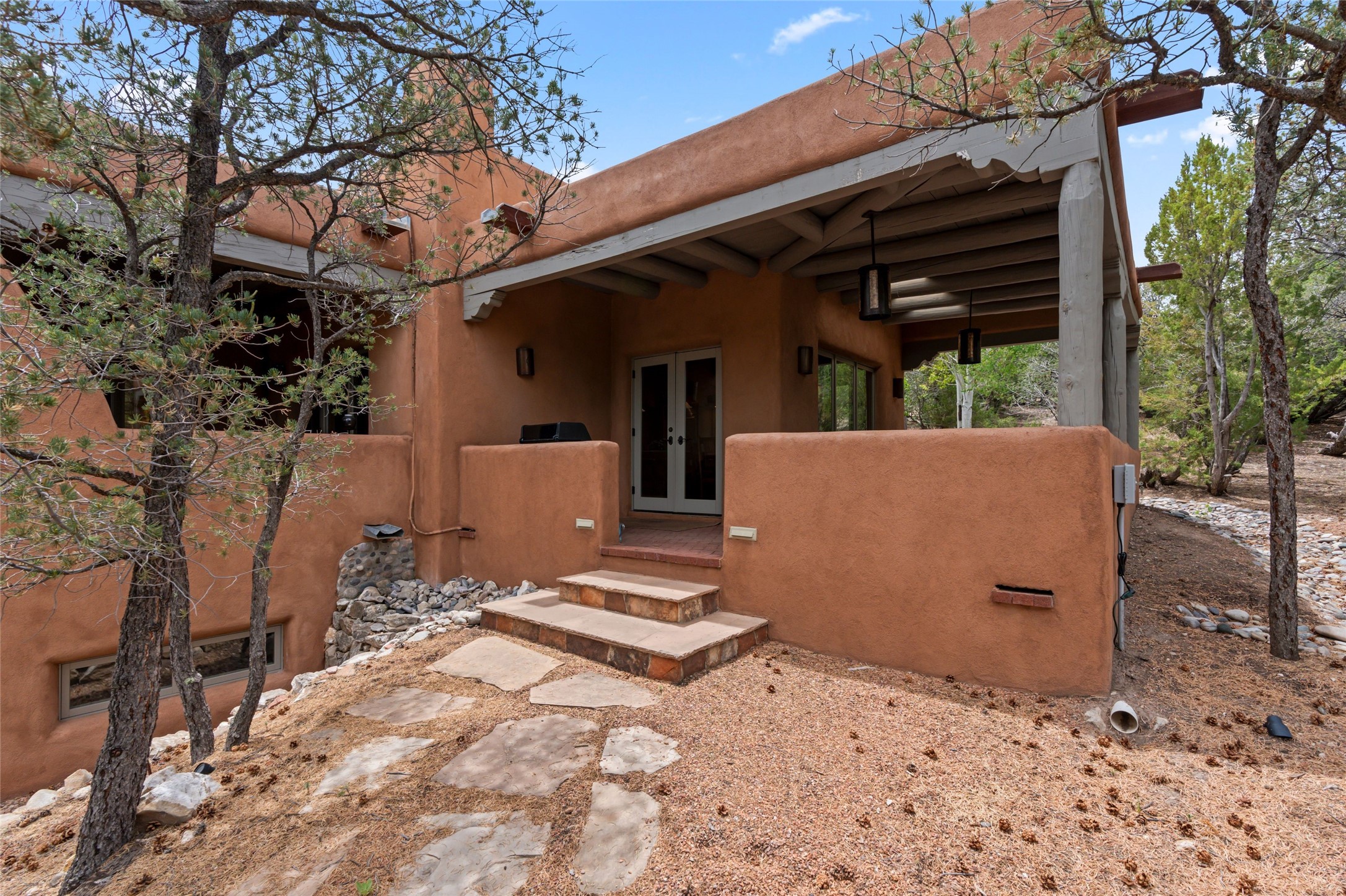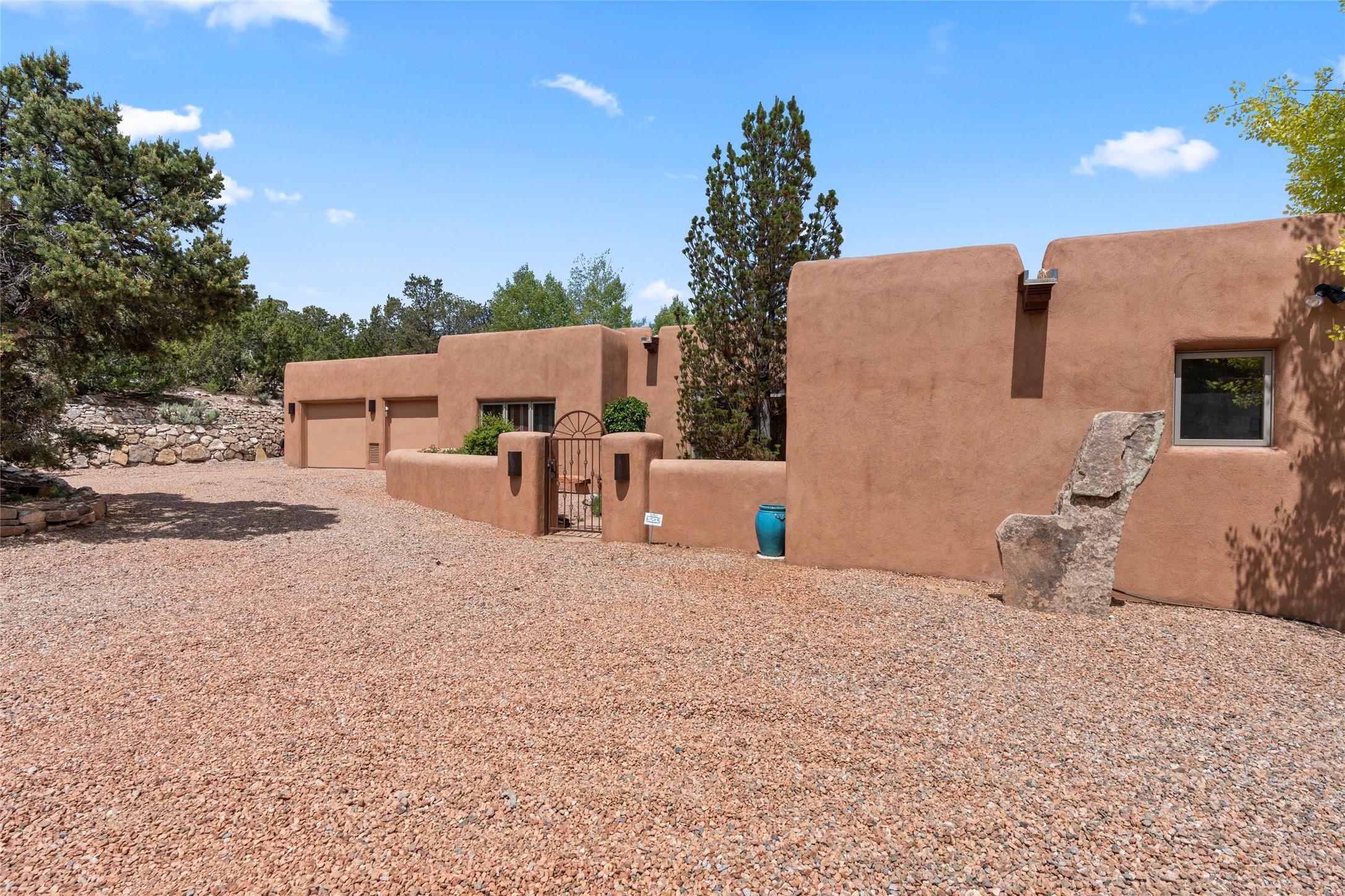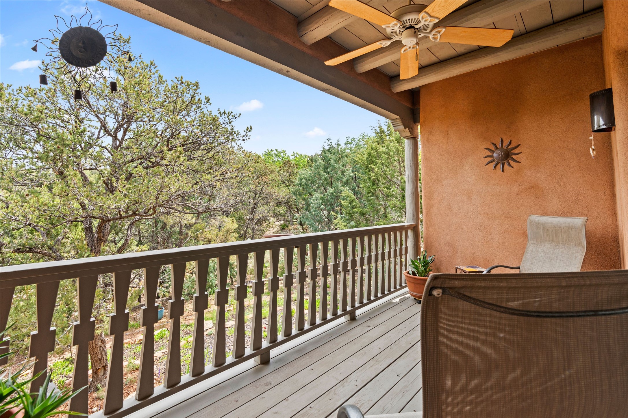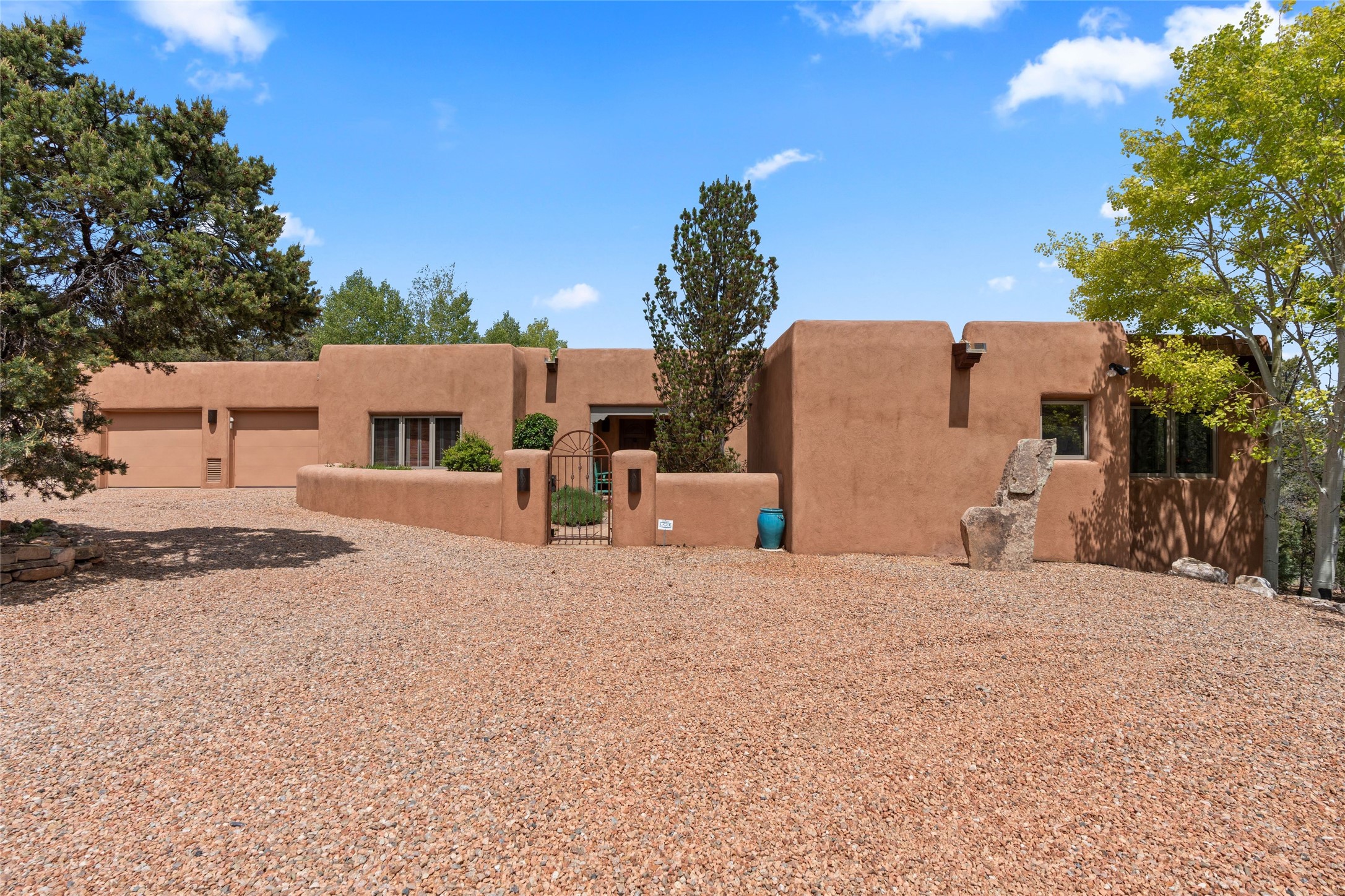 Tucked into the serene hills just above the historic Santa Fe Plaza, this timeless adobe-style residence offers the quintessential blend of Southwestern charm and refined privacy. With over 3,000 square feet of elegant living space, this three-bedroom sanctuary also includes a versatile den or office--perfect for quiet workdays or creative pursuits.Classic vigas, kiva fireplaces, and thick plaster walls showcase the rich architectural heritage of Northern New Mexico, while expansive windows frame peek-a-boo views of the surrounding mountains and distant sunsets. Thoughtfully positioned for tranquility, the property feels worlds away yet remains just minutes from the heart of Santa Fe's galleries, shops, and world-class dining.The open floor plan includes amazing access to multiple outdoor portals. Located on the main level, the primary suite features wood floors, his / hers closets and a sitting room just off the bath. On lower level you will find 2 guest bedrooms and a full bathroom. Whether hosting under the stars on a peaceful patio or retreating into a cozy reading nook, this home embodies the spirit of Santa Fe living--where authenticity meets effortless comfort.