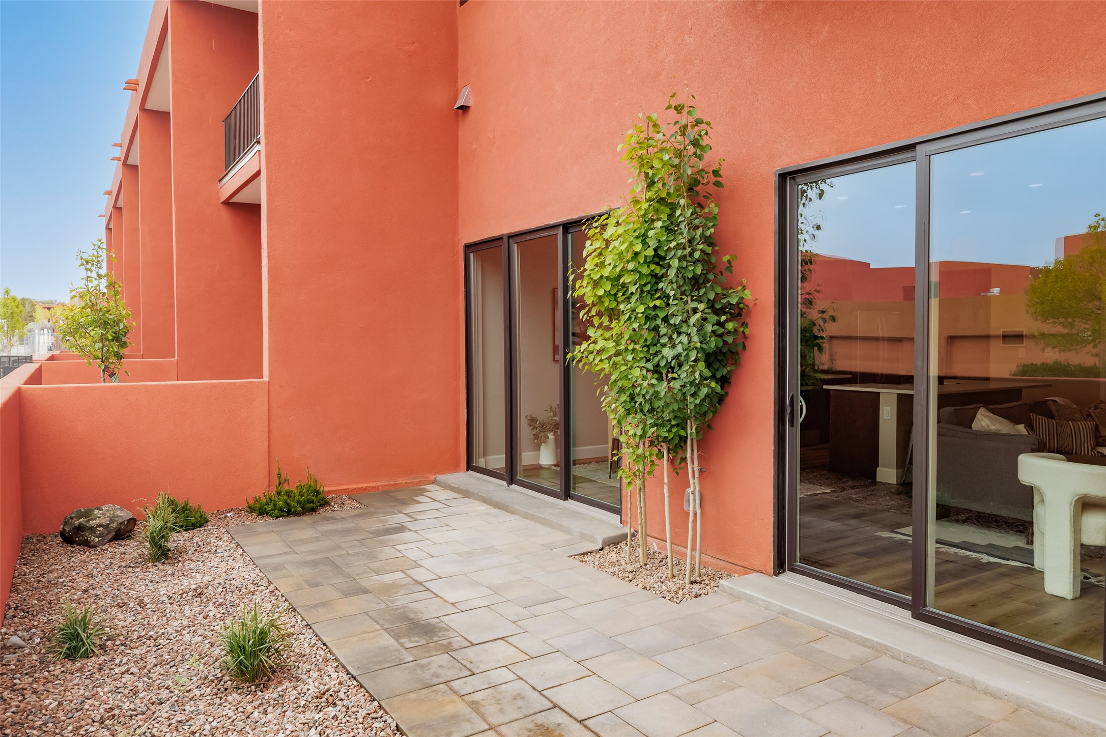 Welcome to Zocalo, Santa Fe -- This exceptional end unit is a gem within the community, combining luxury and practicality. Step into the spacious great room, featuring MODERN GRAY TONES and beautiful SPC luxury vinyl flooring. The space is enhanced by a sleek beverage bar and a contemporary fireplace, perfect for entertaining or relaxing evenings. The kitchen and bathrooms are adorned with white and grey quartz countertops, adding elegance and brightness. In the primary suite, enjoy a second fireplace, creating a luxurious retreat for restful nights. Outside, the upgraded landscaping complements the stunning Santa Fe climate, offering a peaceful setting for outdoor enjoyment.