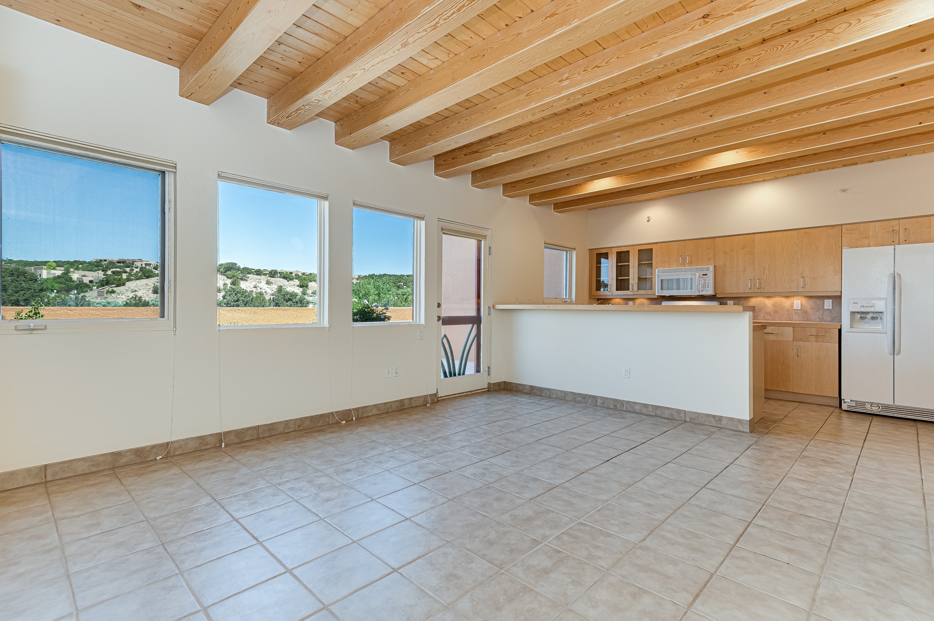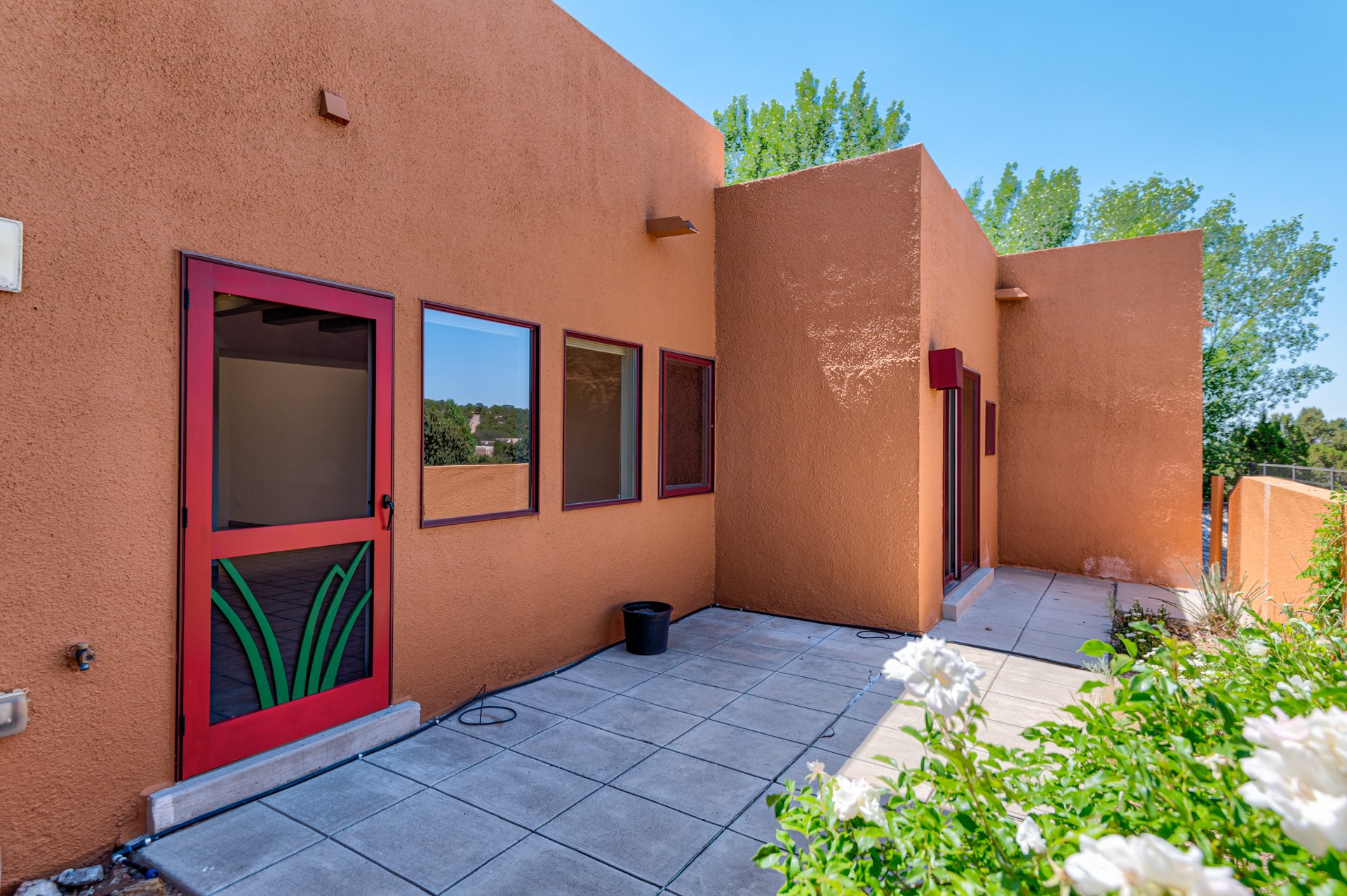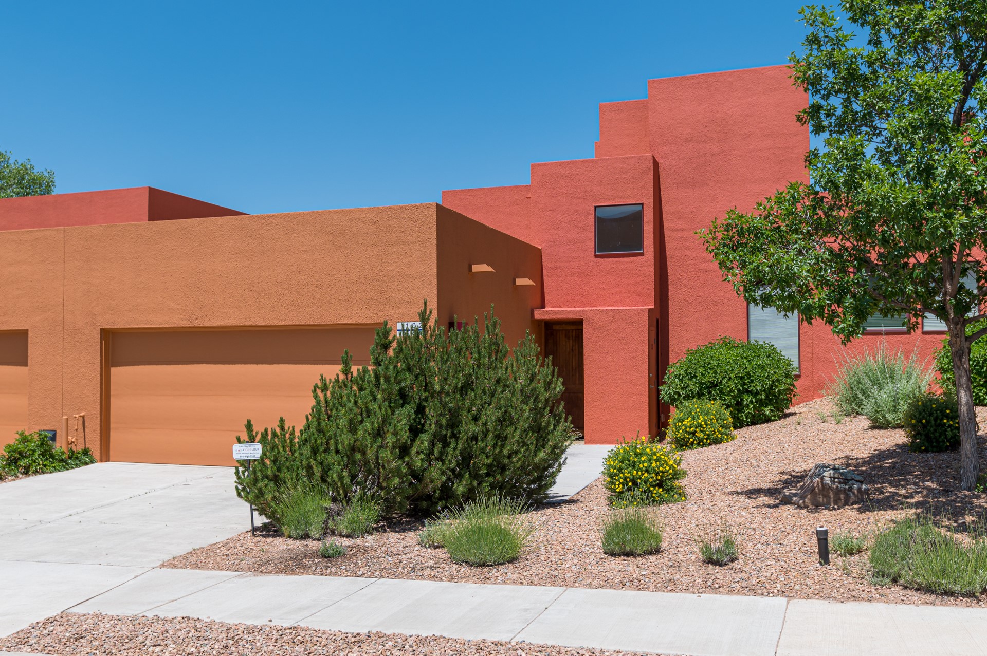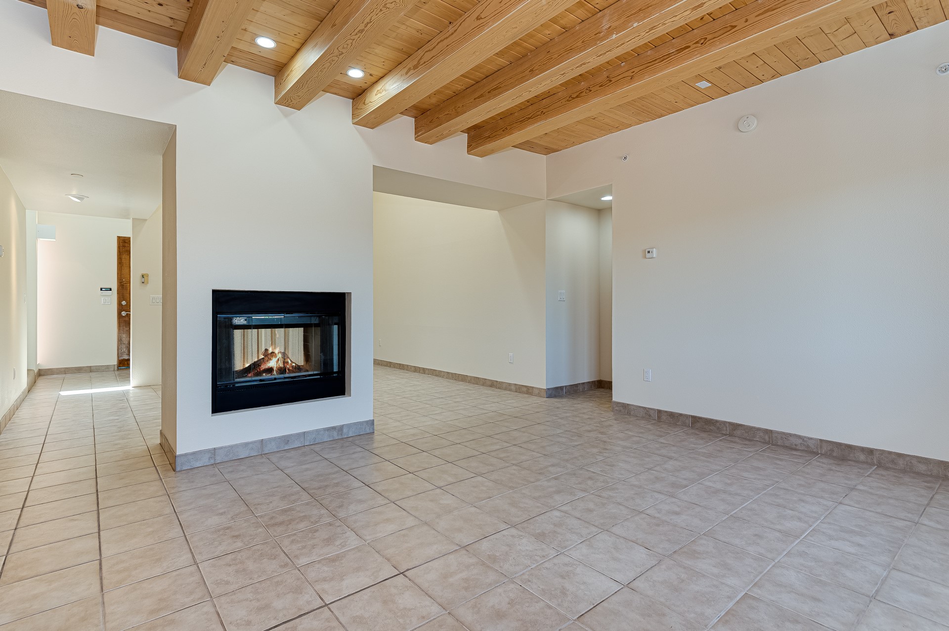 This home features one of the most popular floor plans built at Zocalo and is located in one of the most desirable areas, facing west over- looking the arroyo and hillside. This light filled home has two master suites one on the main floor and one upstairs with a balcony. Access the private patio off the living room or master bedroom. The dining room includes high ceilings with skylights, the living room and kitchen features a wood ceiling. A double-sided wood burning fireplace separates the dining room and living area. This home has a lot to offer including ground level living, ample storage and no wasted space. Located in the beautiful Zocalo Condominium complex designed by World renowned Mexican architect Ricardo Legorreta and located just minutes from downtown and all that Santa Fe offers in shopping, museums and services. Community amenities include two fitness facilities, a clubhouse, pool and spa.