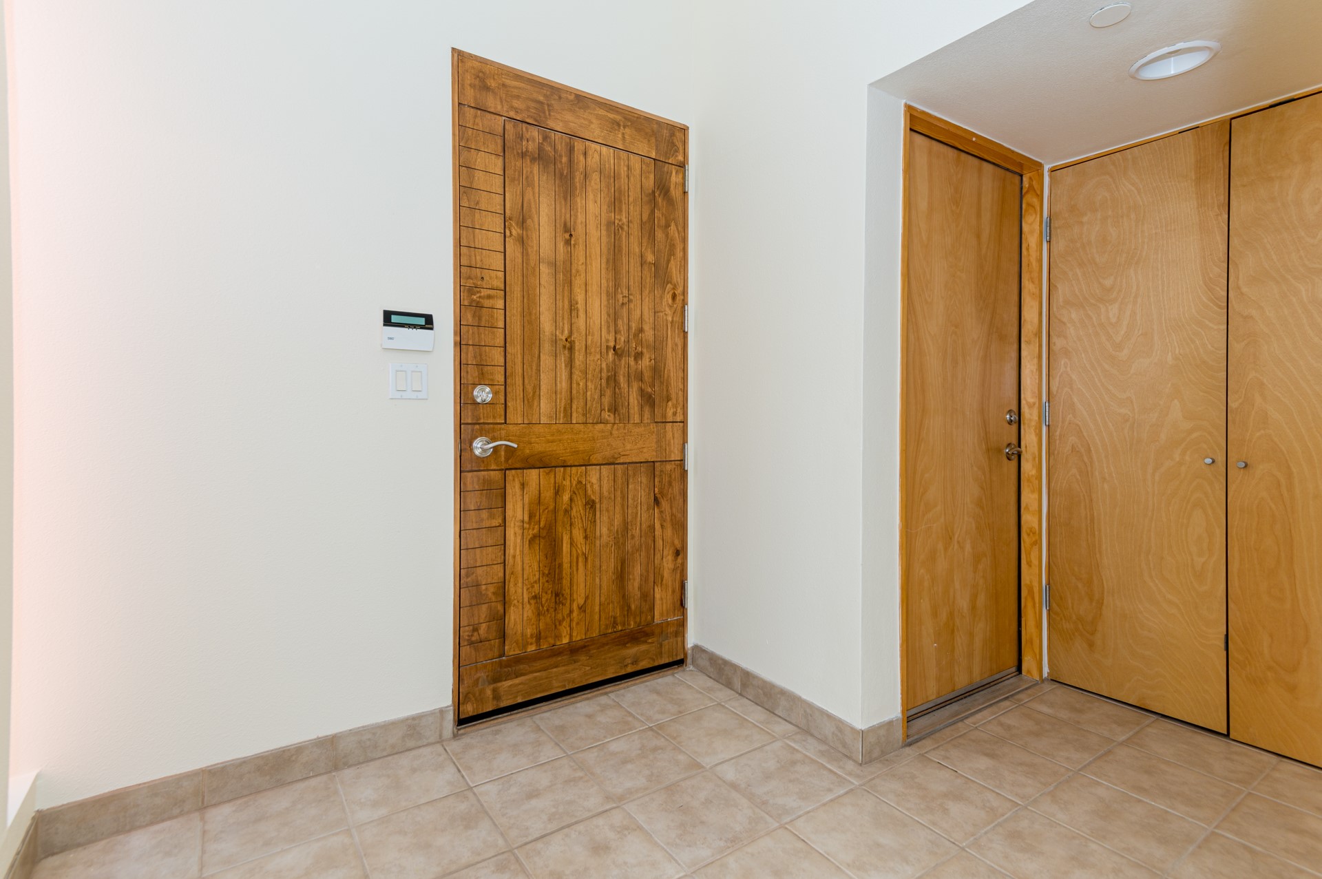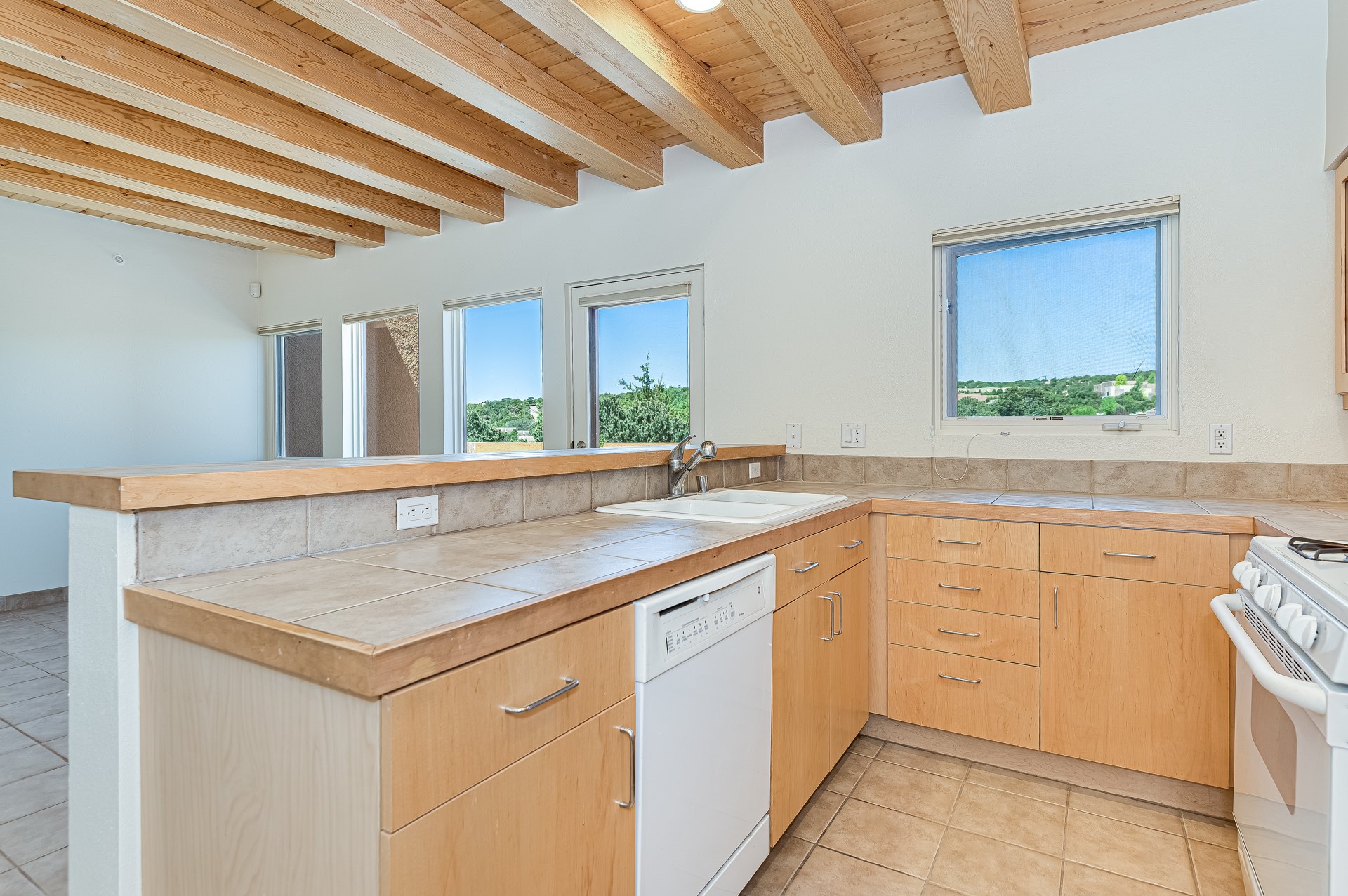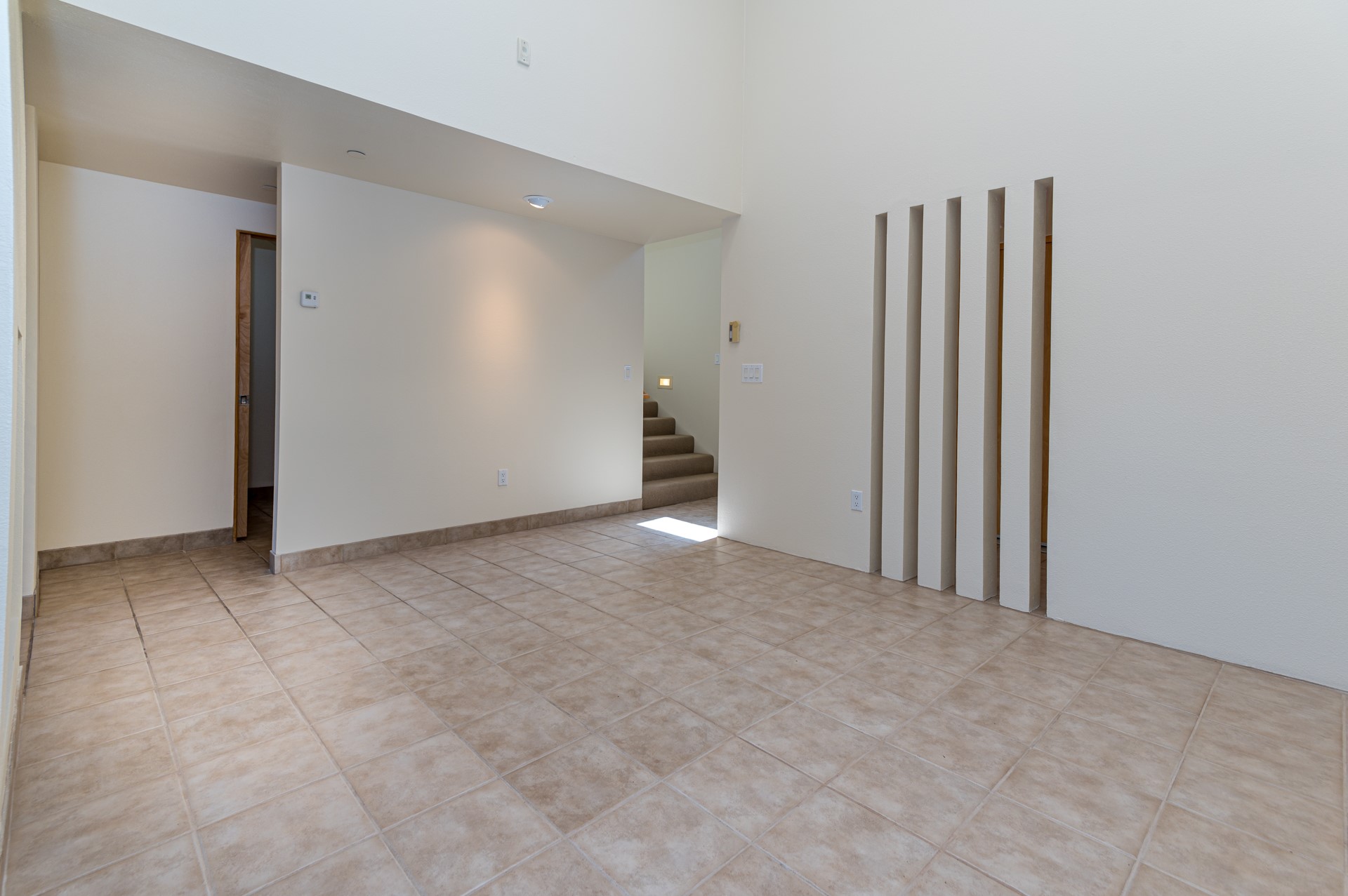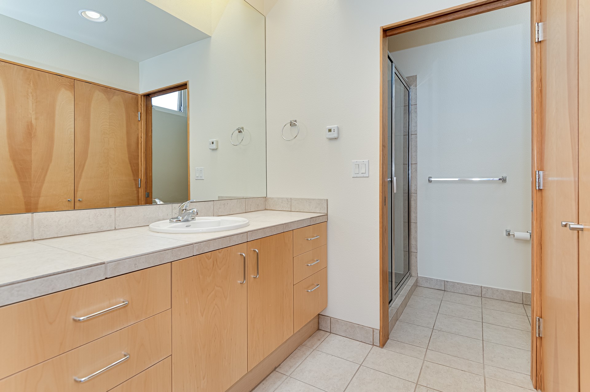 This home features one of the most popular floor plans built at Zocalo and is located in one of the most desirable areas, facing west over- looking the arroyo and hillside. This light filled home has two master suites one on the main floor and one upstairs with a balcony. Access the private patio off the living room or master bedroom. The dining room includes high ceilings with skylights, the living room and kitchen features a wood ceiling. A double-sided wood burning fireplace separates the dining room and living area. This home has a lot to offer including ground level living, ample storage and no wasted space. Located in the beautiful Zocalo Condominium complex designed by World renowned Mexican architect Ricardo Legorreta and located just minutes from downtown and all that Santa Fe offers in shopping, museums and services. Community amenities include two fitness facilities, a clubhouse, pool and spa.